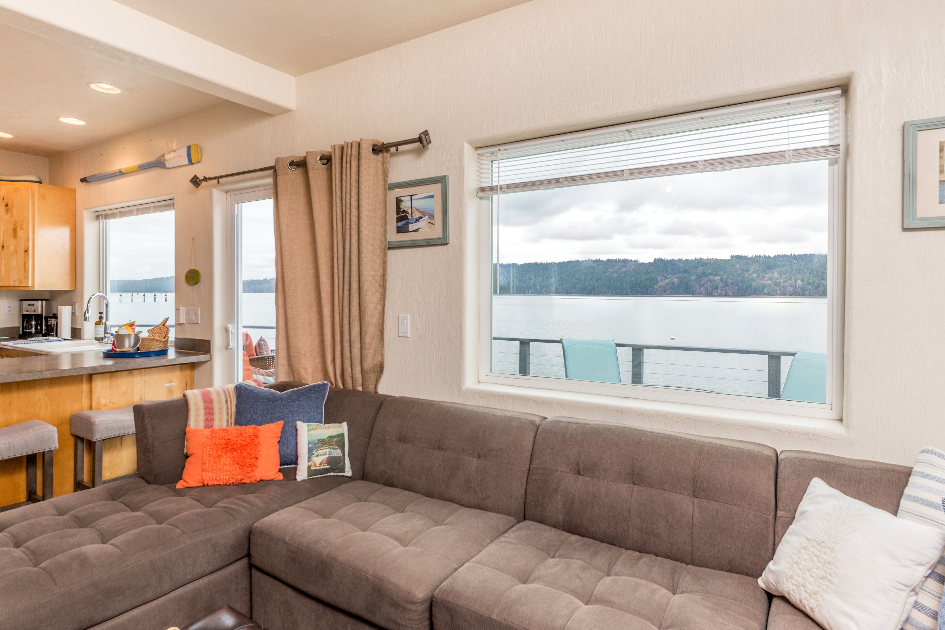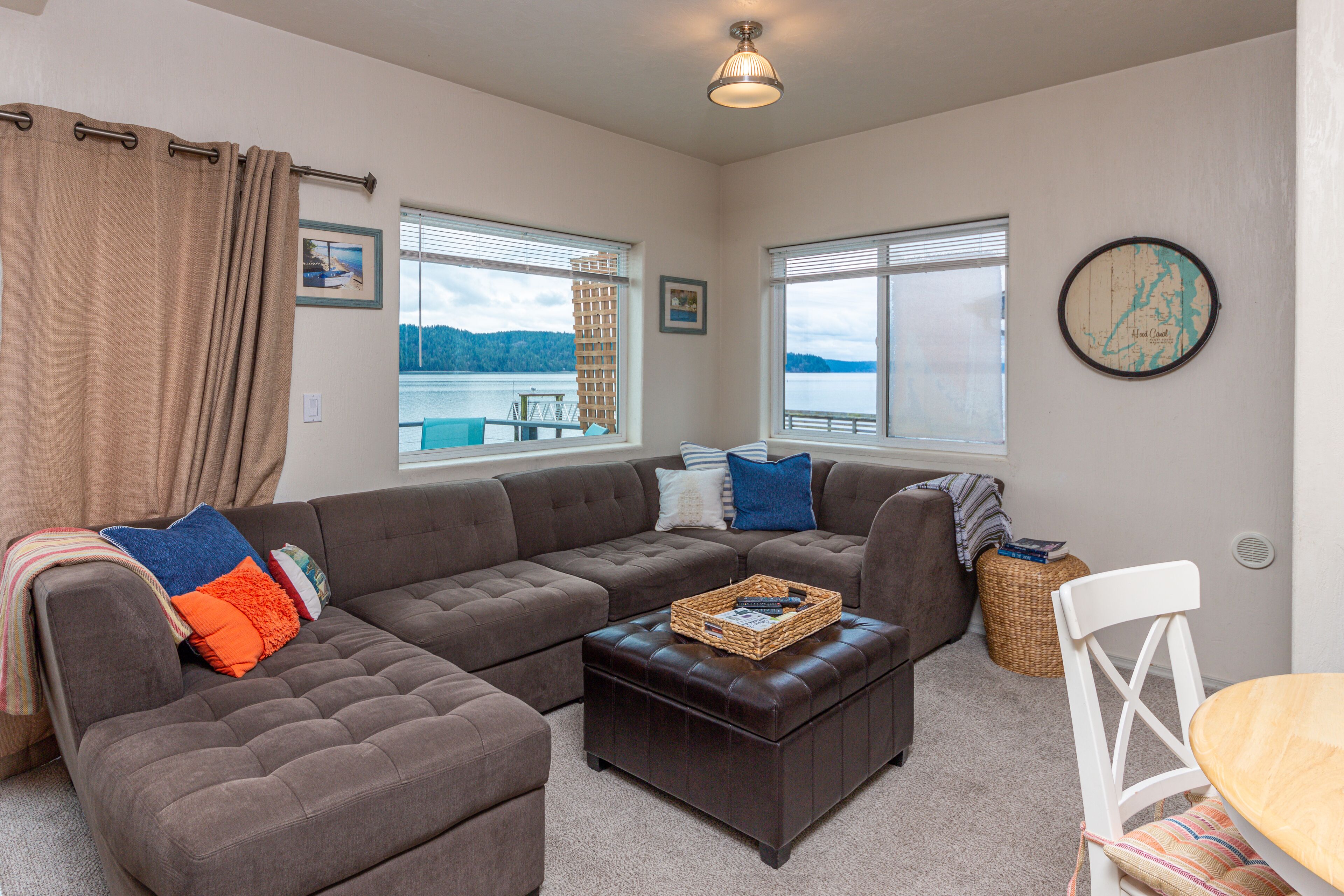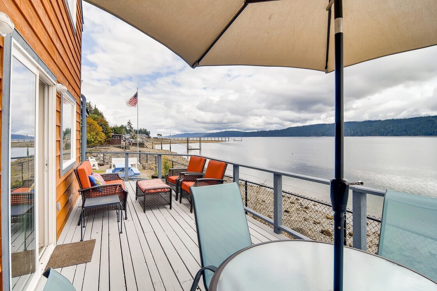 The Giggle Fish~Beachfront- Pet Friendly Hood Canal Getaway Welcome to Giggle Fish on Hood Canal! Our waterfront beach home is the ideal place to relax and take in the peaceful views of Hood Canal. With three bedrooms, it comfortably accommodates six people. Our property is fenced all the way around and is pet friendly. There are many places to relax, inside and out. With decks off both the beach...