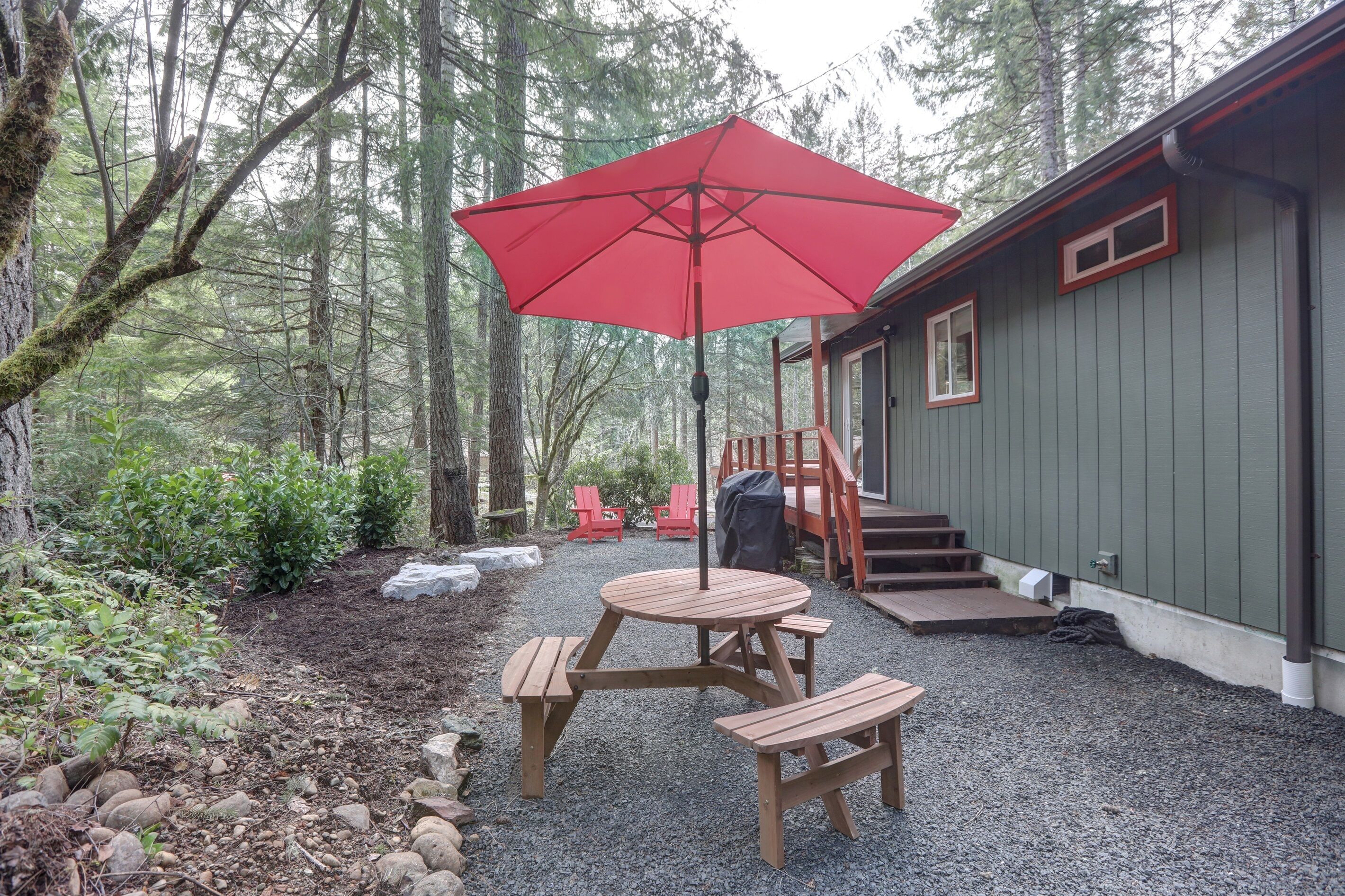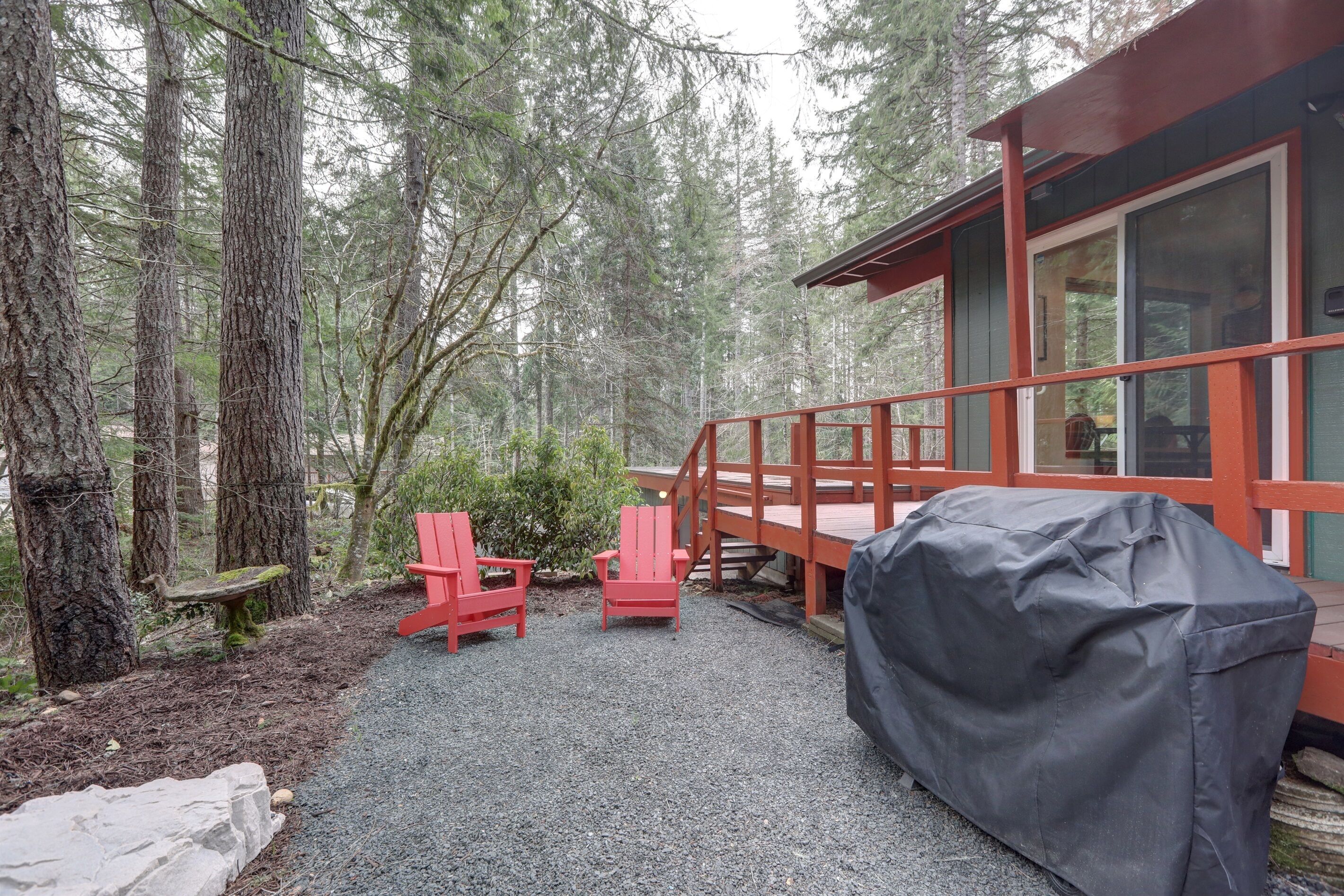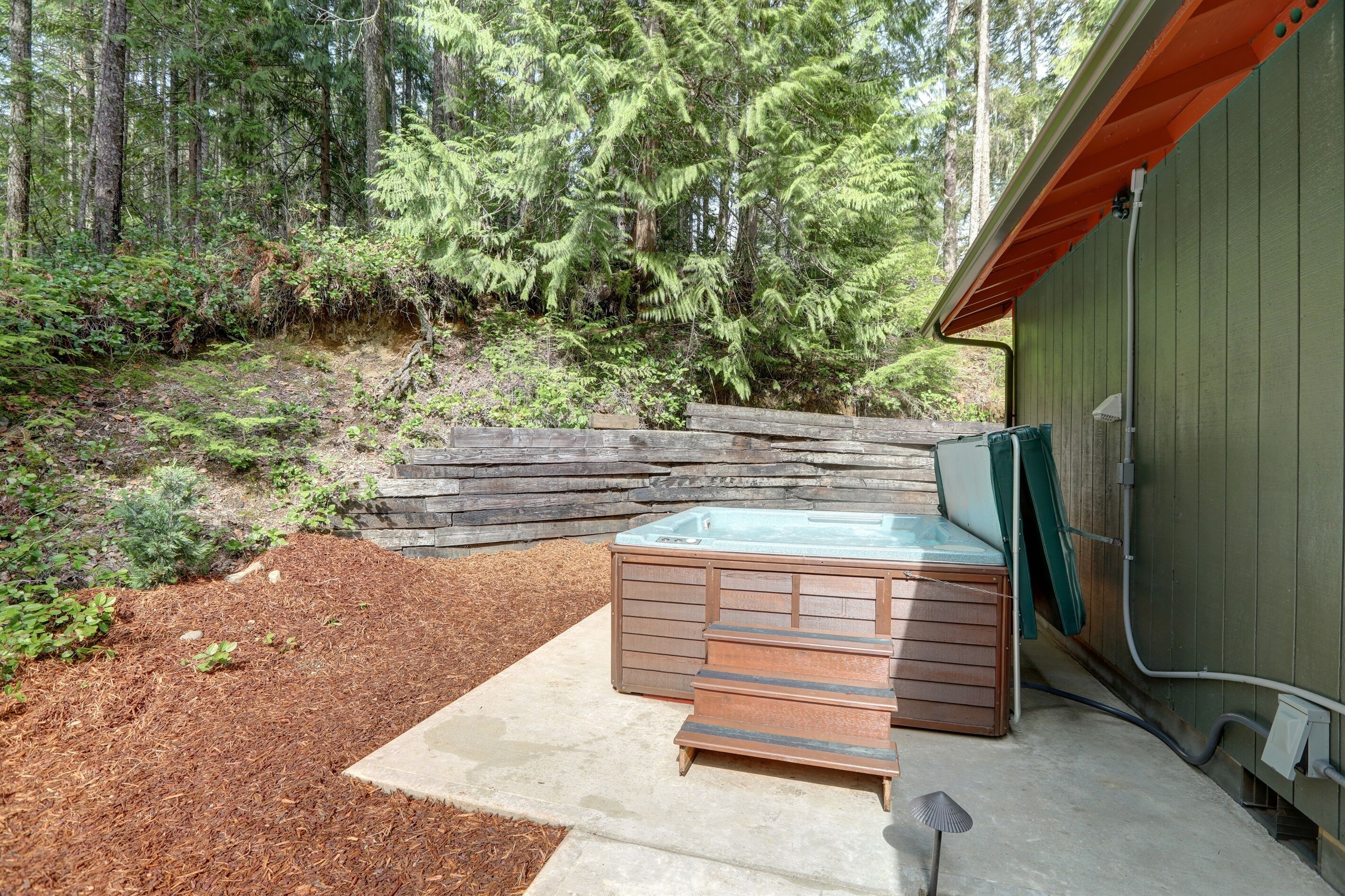 Hiker's Retreat, NEW Hot Tub & FirePit, EV Charger Welcome to Hiker's Retreat at Lake Cushman, your perfect base camp whether you're here to enjoy a relaxing getaway to the lake or to explore the hikes of the Olympic National Park.Hiker's Retreat is a comfy two-bedroom, two-bathroom cabin fully renovated with comfort in mind allowing you to unwind after your adventures. Featuring all-new furniture and beds, air conditioning, a newly renovated kitchen and bathrooms, and a large NEW private hot tub for you to relax in ultimate comfort after a day of exploring the Olympic Peninsula. For modern convenience, we've also added an EV charger for electric vehicles! For an active day at the lake, guests of Hiker's Retreat also get a Guest Pass for lake access at all of the private, beautifully maintained Lake Cushman parks, featuring swimming beaches, boat launches, playgrounds, horseshoe pits, volleyball, and basketball courts, all minutes away from the cabin.Cabin Features: Main Living Area: Great room with modern amenities and elegant decor creates a luxurious ambiance with cozy cabin touches, and comfortable furniture centered around a freestanding propane fireplace, featuring a sleeper sofa, leather chairs, and a rocking chair, all with footrests for you to truly "kick your feet back and relax." - There is a large Smart TV with a DVD player for entertainment and DVD library of movies. Use your logins to easily access all the streaming platforms, such as Netflix, Sling, Hulu, and Prime, thanks to blazing-fast WiFi (500mps). - The cabin is also filled with puzzles and board games to entertain everyone. - Air Conditioning to keep the cabin cool in summer months- The rocking chair by the fireplace is perfect for curling up and reading a book.Kitchen/ Dining Area: The new, large kitchen is open to the main living area with a butcherblock breakfast bar with four seats. The kitchen is equipped with all of the essentials (and then some!), including: - Jenn-Aire range- Refrigerator with icemaker- Dishwasher- Microwave- A coffee station stocked with Keurig coffee, a traditional brew coffee maker, and French Press will give you the caffeine boost before tackling an early morning hike. - The kitchen also has all the gadgets you might need: - Blender- Electric Hand Mixer- Air Fryer- Toaster- Tea kettle- Waffle maker and electric griddle- Popcorn maker- All the essential spices to help prepare your next feast- BBQ Tools- Marshmallow roasting skewersSleeping: Rest is essential on your getaway, so the bedrooms all have the following: - New luxury mattresses- Crisp new linens- Ceiling fans- Alarm Clocks with USB Chargers- Blackout shades- Box fans available- Luggage racksBedroom 1: (Primary Bedroom)- Decorated in Pendleton colors, bedroom one sleeps up to four. - King-sized bed- Twin Daybed with twin pull-out trundle bed. Nightstand w/ reading light w/ built-in wireless charging- ROKU Smart TV- Work from-home station with desk and comfy work chair. A computer monitor is available, please request it when booking.- Large attached, fully remodeled main bathroom with tiled walk-in shower with Washer/ Dryer available for use during your stayBedroom 2: - Decorated in a National park theme, bedroom two provides sleeping for two in two twin beds.- Closet with hanging storage for guests and extra linensBathrooms:- Both bathrooms are renovated and have new fixtures- Stocked with Shampoo, Conditioner, and Body Wash- Makeup Remover towels and Q-tips- Extra bath towels, washcloths, and hot tub towels providedOutside the Cabin: The cabin is situated on a quiet, wooded lot with areas to enjoy the immediate surroundings: - Large Hot Tub: Soak up nature in the private hot tub surrounded by trees. Look at the stars as you unwind after a day at the lake or an adventurous hike.- BBQ Area: Propane BBQ is available for your use located outside the kitchen. There is also a wooded sitting area with two Adirondack chairs to keep the chef company while they grill. - Fire Pit: There is a wood-burning firepit in the back area of the lot with Adirondack chairs, perfect for a S'mores campfire with the kids. Wood is not provided (available at the nearby Lake Cushman Store) and is subject to any area burn bans in effect. - Covered Deck: The sunny front covered deck is perfect for a morning cup of coffee with 4 Adirondack Chairs.Pets: One well-trained dog is welcome at $50 per stay. Please indicate if you'll be bringing your dog when booking. Dogs are not allowed on the furniture; please use the dog bed provided. Excessive pet hair/mess found on furniture and linens resulting in extra cleaning efforts will be charged accordingly. We have dog food and water dishes and provide pet waste bags. Please clean up after your dog. Dogs must be on a leash at all times. Please do not leave pets unattended inside or outside. Check trail guides, as not all hikes are dog friendly. Parking: There is ample off-street parking for up to 5 cars in the driveways/room for a trailer with a boat. Note: No street parking is permitted, and RV's are allowed to be parked in the driveway, but they cannot be occupied during the stay. Maximum occupancy for the property is 6 guests total. Guest access:The entire home is included in this rental. Guest access will be granted via a door code. The garage is locked and not for guest use.Activities:For a more rugged adventure, set up a guided hiking excursion with our Professional Guide & Photographer, who can show you area hikes for all skill levels and capture the experience for you with professional photography of the tour! Whether an easy hike of Staircase Rapids or a climb to the top of Mt. Ellinor is on your list, Hiker's Retreat provides quick access to many nearby hikes and area State Parks. Contact the host for more information on guided hikes and photography excursions available. Additional Info About the Home:- We believe our home to be child and family-friendly, but the home is not child-proofed. Please do not leave