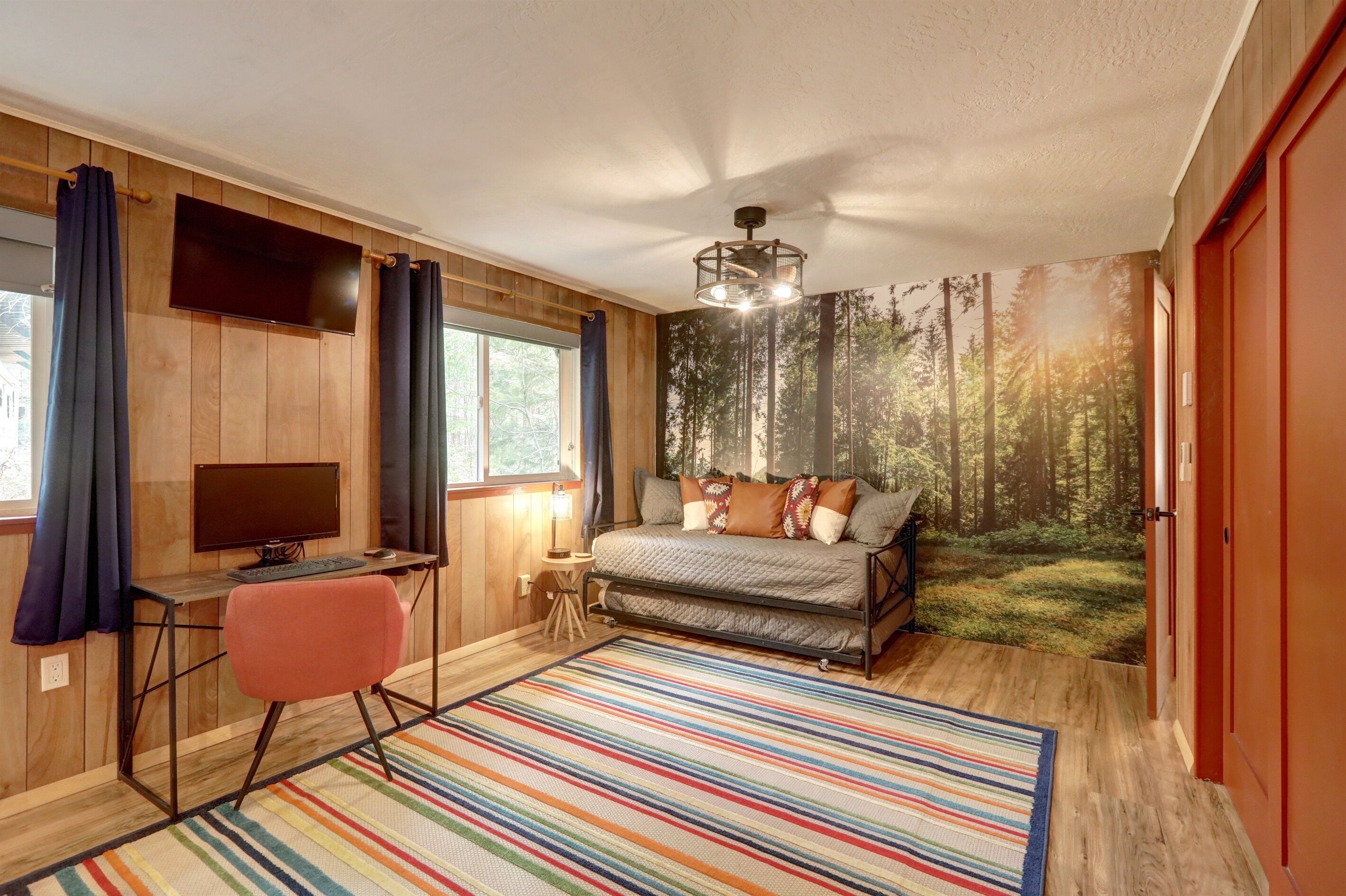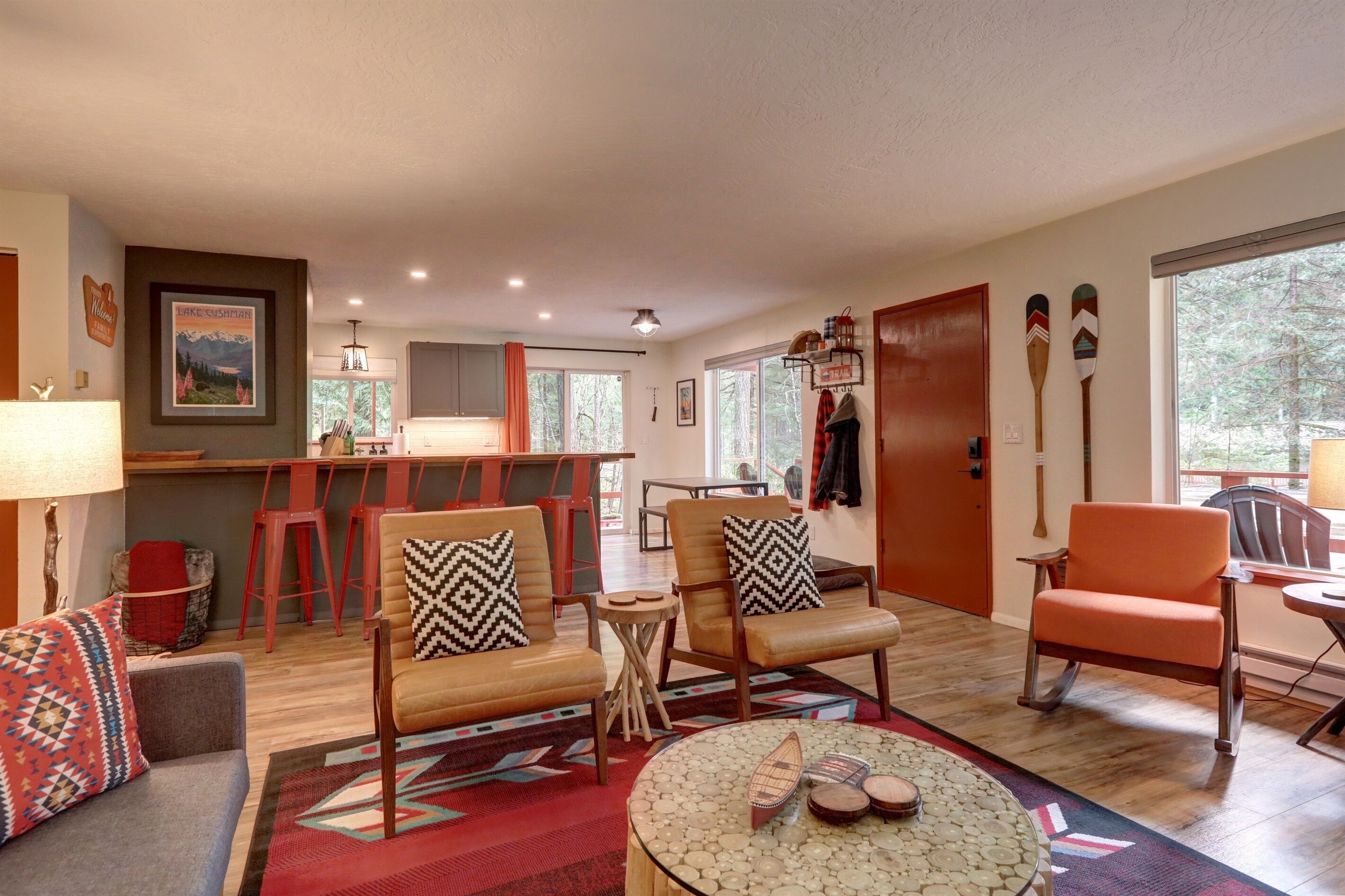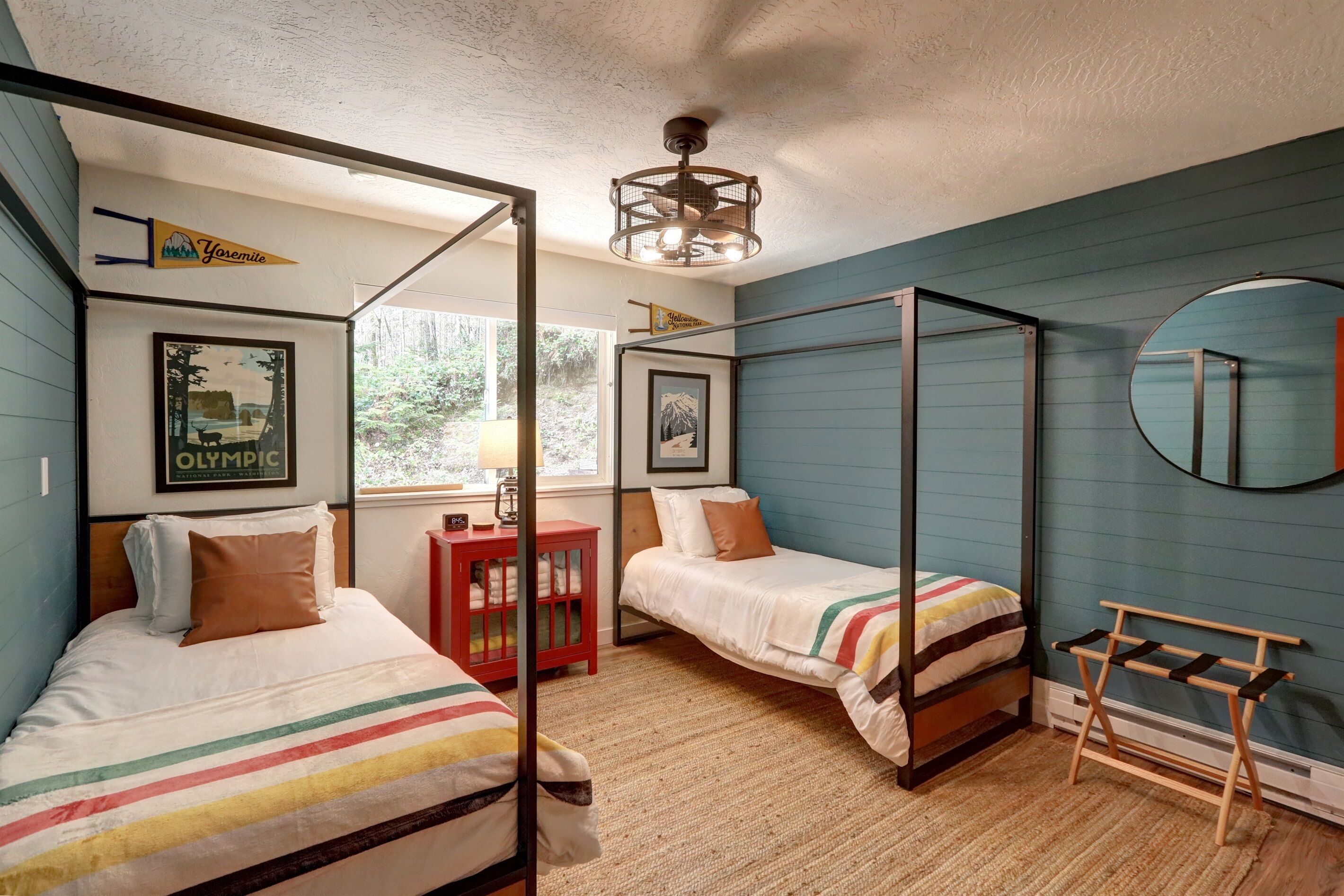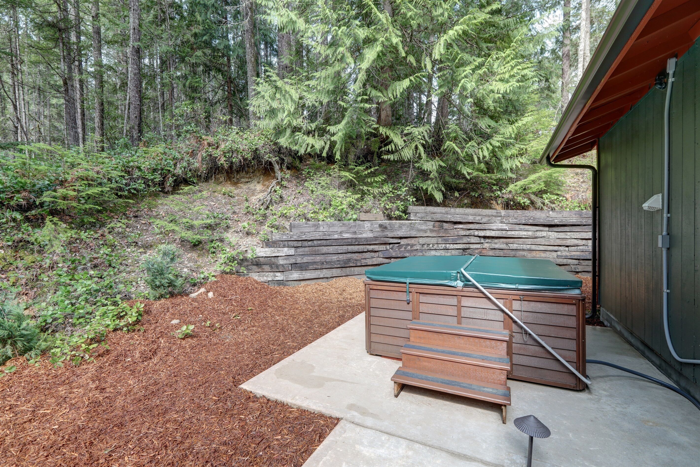Hiker's Retreat, NEW Hot Tub & FirePit, EV Charger Welcome to Hiker's Retreat at Lake Cushman, your perfect base camp whether you're here to enjoy a relaxing getaway to the lake or to explore the hikes of the Olympic National Park.Hiker's Retreat is a comfy two-bedroom, two-bathroom cabin fully renovated with comfort in mind allowing you to unwind after your adventures. Featuring all-new furniture and beds, air conditioning, a newly renovated kitchen and bathrooms, and a large NEW private hot tub for you to relax in ultimate comfort after a day of exploring the Olympic Peninsula. For modern convenience, we've also added an EV charger for electric vehicles! For an active day at the lake, guests of Hiker's Retreat also get a Guest Pass for lake access at all of the private, beautifully maintained Lake Cushman parks, featuring swimming beaches, boat launches, playgrounds, horseshoe pits, volleyball, and basketball courts, all minutes away from the cabin.Cabin Features: Main Living Area: Great room with modern amenities and elegant decor creates a luxurious ambiance with cozy cabin touches, and comfortable furniture centered around a freestanding propane fireplace, featuring a sleeper sofa, leather chairs, and a rocking chair, all with footrests for you to truly "kick your feet back and relax." - There is a large Smart TV with a DVD player for entertainment and DVD library of movies. Use your logins to easily access all the streaming platforms, such as Netflix, Sling, Hulu, and Prime, thanks to blazing-fast WiFi (500mps). - The cabin is also filled with puzzles and board games to entertain everyone. - Air Conditioning to keep the cabin cool in summer months- The rocking chair by the fireplace is perfect for curling up and reading a book.Kitchen/ Dining Area: The new, large kitchen is open to the main living area with a butcherblock breakfast bar with four seats. The kitchen is equipped with all of the essentials (and then some!), including: - Jenn-Aire range- Refrigerator with icemaker- Dishwasher- Microwave- A coffee station stocked with Keurig coffee, a traditional brew coffee maker, and French Press will give you the caffeine boost before tackling an early morning hike. - The kitchen also has all the gadgets you might need: - Blender- Electric Hand Mixer- Air Fryer- Toaster- Tea kettle- Waffle maker and electric griddle- Popcorn maker- All the essential spices to help prepare your next feast- BBQ Tools- Marshmallow roasting skewersSleeping: Rest is essential on your getaway, so the bedrooms all have the following: - New luxury mattresses- Crisp new linens- Ceiling fans- Alarm Clocks with USB Chargers- Blackout shades- Box fans available- Luggage racksBedroom 1: (Primary Bedroom)- Decorated in Pendleton colors, bedroom one sleeps up to four. - King-sized bed- Twin Daybed with twin pull-out trundle bed. Nightstand w/ reading light w/ built-in wireless charging- ROKU Smart TV- Work from-home station with desk and comfy work chair. A computer monitor is available, please request it when booking.- Large attached, fully remodeled main bathroom with tiled walk-in shower with Washer/ Dryer available for use during your stayBedroom 2: - Decorated in a National park theme, bedroom two provides sleeping for two in two twin beds.- Closet with hanging storage for guests and extra linensBathrooms:- Both bathrooms are renovated and have new fixtures- Stocked with Shampoo, Conditioner, and Body Wash- Makeup Remover towels and Q-tips- Extra bath towels, washcloths, and hot tub towels providedOutside the Cabin: The cabin is situated on a quiet, wooded lot with areas to enjoy the immediate surroundings: - Large Hot Tub: Soak up nature in the private hot tub surrounded by trees. Look at the stars as you unwind after a day at the lake or an adventurous hike.- BBQ Area: Propane BBQ is available for your use located outside the kitchen. There is also a wooded sitting area with two Adirondack chairs to keep the chef company while they grill. - Fire Pit: There is a wood-burning firepit in the back area of the lot with Adirondack chairs, perfect for a S'mores campfire with the kids. Wood is not provided (available at the nearby Lake Cushman Store) and is subject to any area burn bans in effect. - Covered Deck: The sunny front covered deck is perfect for a morning cup of coffee with 4 Adirondack Chairs.Pets: One well-trained dog is welcome at $50 per stay. Please indicate if you'll be bringing your dog when booking. Dogs are not allowed on the furniture; please use the dog bed provided. Excessive pet hair/mess found on furniture and linens resulting in extra cleaning efforts will be charged accordingly. We have dog food and water dishes and provide pet waste bags. Please clean up after your dog. Dogs must be on a leash at all times. Please do not leave pets unattended inside or outside. Check trail guides, as not all hikes are dog friendly. Parking: There is ample off-street parking for up to 5 cars in the driveways/room for a trailer with a boat. Note: No street parking is permitted, and RV's are allowed to be parked in the driveway, but they cannot be occupied during the stay. Maximum occupancy for the property is 6 guests total. Guest access:The entire home is included in this rental. Guest access will be granted via a door code. The garage is locked and not for guest use.Activities:For a more rugged adventure, set up a guided hiking excursion with our Professional Guide & Photographer, who can show you area hikes for all skill levels and capture the experience for you with professional photography of the tour! Whether an easy hike of Staircase Rapids or a climb to the top of Mt. Ellinor is on your list, Hiker's Retreat provides quick access to many nearby hikes and area State Parks. Contact the host for more information on guided hikes and photography excursions available. Additional Info About the Home:- We believe our home to be child and family-friendly, but the home is not child-proofed. Please do not leave
