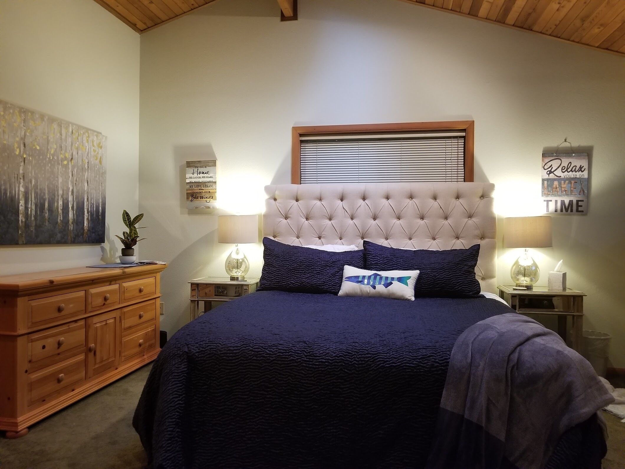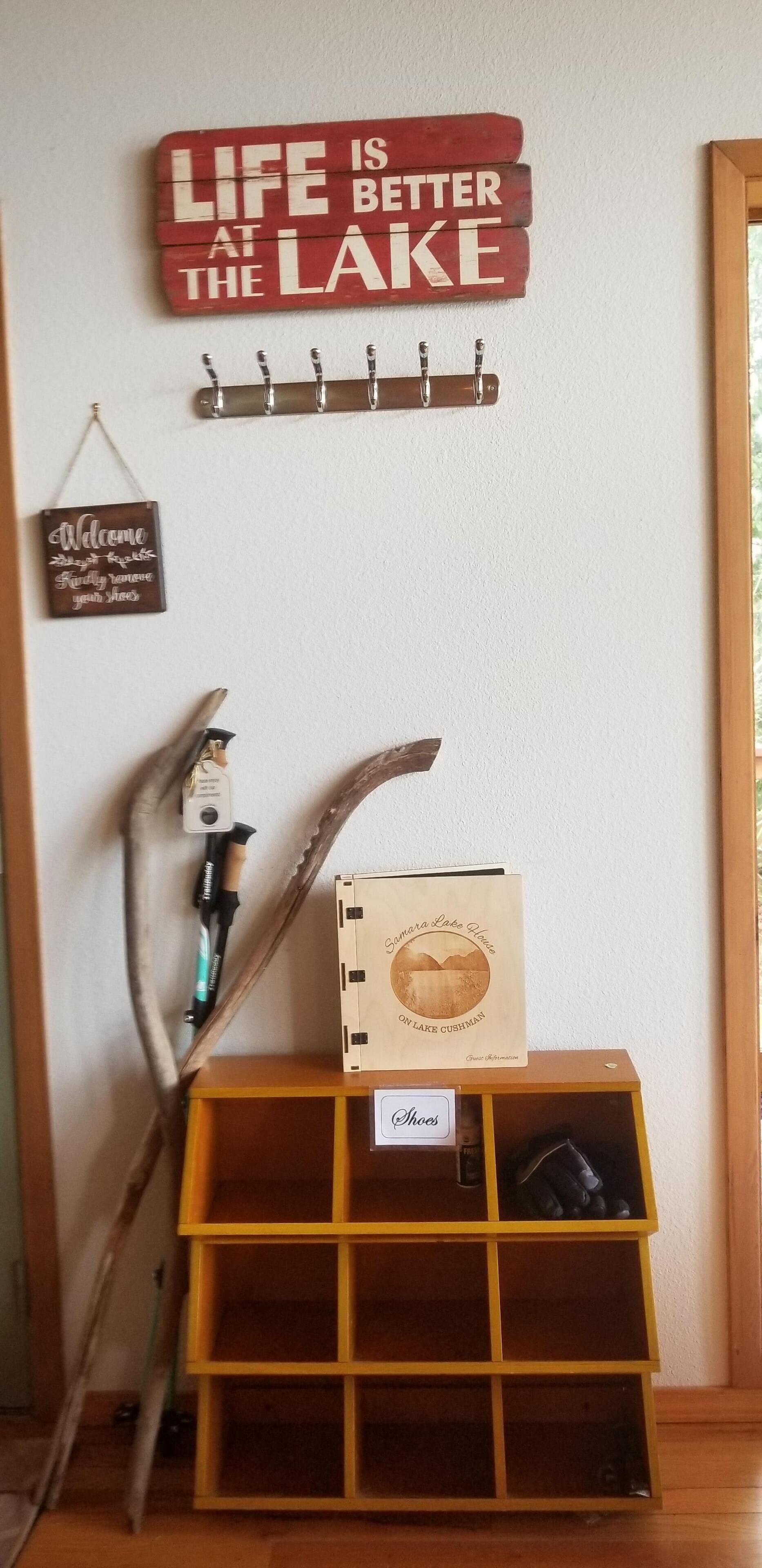 Luxurious Retreat on Lake Cushman, Come and Enjoy! Luxury living meets peaceful serenity. This beautiful destination spot on the shores of Lake Cushman with its breathtaking views of the lake and the Olympic Mountains is waiting for you! Disconnect from the hustle and bustle of modern life and reconnect with nature, family and friends. Kayak and swim from your own private dock, roast marshmallows at your own fire pit, or sip hot cocoa by the fireplace. The possibilities are endless! Life jackets for infants and adults are provided along with three fiberglass single kayaks and one double kayak. If you plan to bring your own boat, please let us know ahead of time as passes are required for launching and parking at this lake. This home offers a well stocked and recently upgraded kitchen with everything you might need, you just provide the food! Home includes washer/dryer, luxury grill, fire pit and skewers for roasting marshmallows, landline phone (Note: no cell phone at the property) high chair, crib, board games galore, large screen TV with surround sound, DVD collection, and a generous selection of books and children's toys. Wifi available. Electric Car Charging Station.This home can comfortably accommodate 8 guests between the 3 bedrooms and two extra comfy pull out sleeper sofas. (Please note: The nightly rates listed are for a maximum of 6 guests. There is an additional nightly charge of $50/night for each additional guest.) The master bedroom features sweeping views of the lake, organic cotton king sized bed and en suite bathroom. Main floor features two bedrooms and an additional full bathroom: two sets of twin US Grown organic cotton bunk beds in one room, and another tastefully decorated room with a queen sized bed. Two full sized pull out sleeper sofas in the living room feature luxurious hypoallergenic, spring/inflatable combo mattresses, no wimpy couch mattresses here! One folding pack and play crib also available. Kids are welcome - unfortunately we are not able to accommodate pets. Thank you for understanding. For additional information on this home, you are welcome to do a web search for "Samara Lake House".
