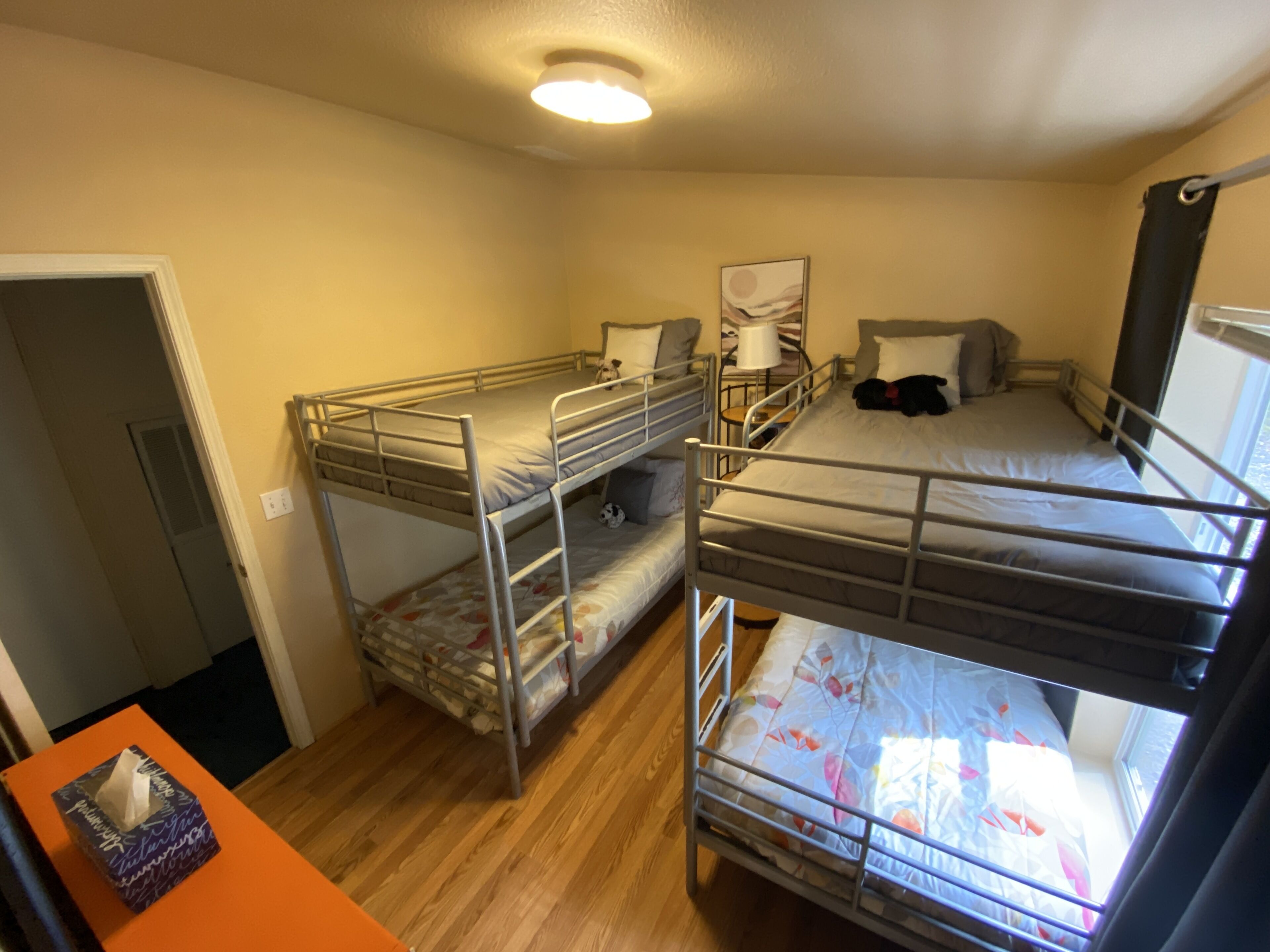 Quiet mountain retreat near Lake Cushman On a ridge at the end of a quiet cul-de-sac, our home is situated in a peaceful, wooded setting with great views of the Olympic Mountains and surrounding forest. The house is ideal for couples, families or small groups with 3-bedrooms and 2 full bathrooms. The location is a wonderful base for adventure - only minutes to Lake Cushman, Lake Kokanee and Hoodsport, and close to many popular hiking trails (Staircase, Mt. Elinor, Big Creek, Lena Lake, Mt. Rose, Murhut Falls… just to name a few).Includes entry pass to Lake Cushman and Kokanee Lake community parks and beaches. Lake Cushman 9-hole public golf course, driving range, clubhouse and tennis courts are less than a mile away.Ten miles from the Staircase entrance to the Olympic National Park, there's hiking available for all abilities.Situated on the Hood Canal, the quaint town of Hoodsport is only three miles away. There you will find a grocery store, a few dining options, wine tasting at the Hoodsport Winery, micro liquor tasting at the Hardware Distillery, and boutique shopping. And, for more dining and shopping options, Shelton is only 16 miles south of Hoodsport on 101.On a quiet double lot, there's lots of room to play both inside and out and many options for entertainment even on a rainy day.- Sleeps up to eight people (1 king bed, 1 queen bed and 4 single beds (bunk style)).- High speed wireless internet.- 62-inch smart TV with Amazon Prime, Netflix and Hulu streaming subscriptions (no cable or local TV stations).- DVD player with dozens of movies.- Board games, books and hiking guides.- Landline phone with unlimited U.S. and Canada calling. Cell coverage varies by carrier but generally is adequate for texts. Check with your carrier to enable Wi-Fi calling.- Fully equipped kitchen.- All towels and bed linens are supplied.- Washer and dryer available for use.- Large propane BBQ grill- Ample parking for multiple cars and/or RV.- Electric vehicle and RV hook-ups.