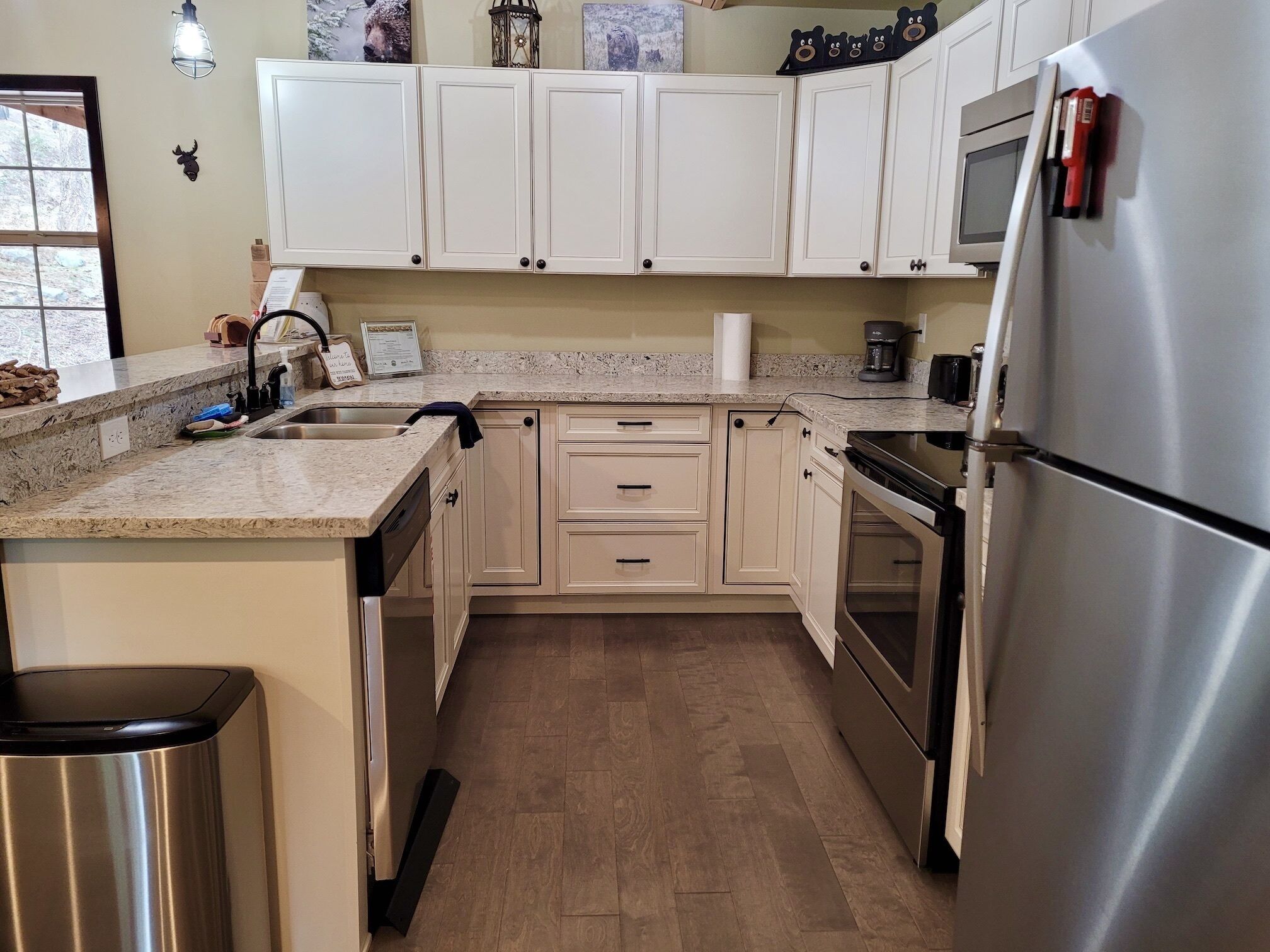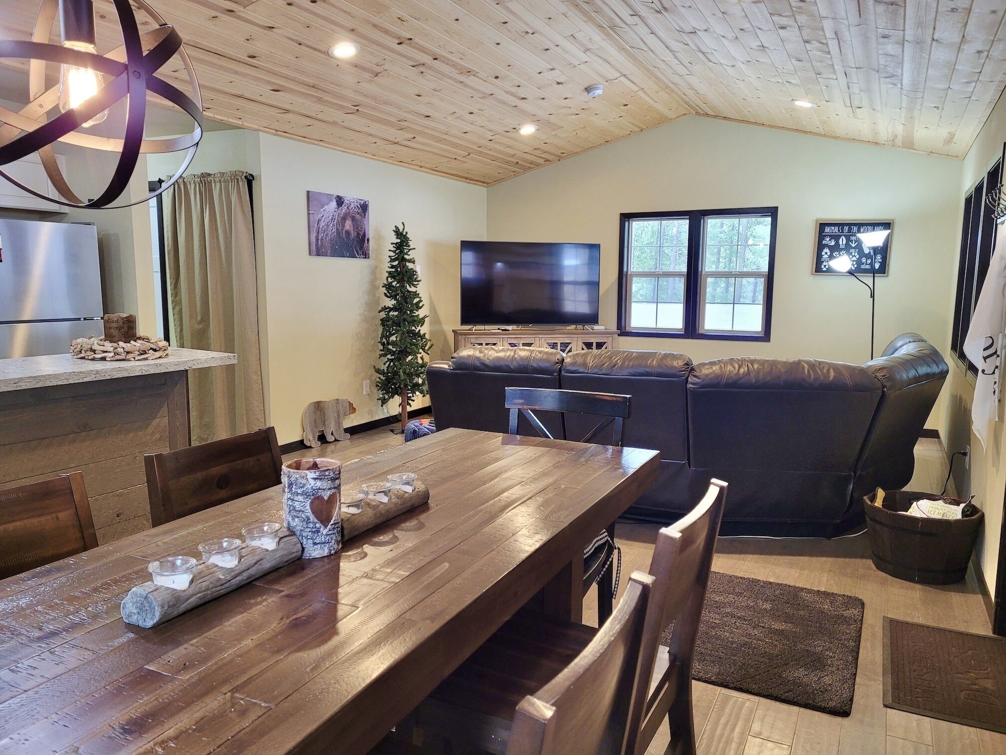Mountain Slopes, Summer Floats Cabin-Dog Friendly and Close to Ski Trail ! Sometimes you just want to get away from it all. Why not stay here? Mountain Slopes, Summer Floats(a pet friendly, legal, licensed nightly rental with a current Okanogan County health permit as required by law) is a 2-bedroom, 2-bath cabin is located in the pine forest at "The Woodlands" development, about 11 miles from Winthrop and 3 from Mazama. Access to the Methow Trail system is close, and soon to be closer with the development of a spur trail that will connect with the greater system-probably by the winter of 2020/2021.The house entrance is easy with one step up to the front porch. Once inside the living/dining/kitchen room extends the full width of the house, letting in plenty of light. There is a large smart TV with Wii and 'tons of movies'. There are also lots of board games, and corn hole set etc…. Seating is ample and comfortable on the reclining couch. The kitchen is well appointed and should offer the accoutrements needed, from soup to lasagna.Just down the hall is a queen room, the common full-bathroom, as well as the double iron-bedstead master suite with private bath. EXTREMELY IMPORTANT YEAR ROUND TRAVEL INFORMATION--READ BEFORE BOOKING A RESERVATION:1)It is the responsibility of the guest to have travel plans in place to travel either over the North Cascades via Highway 20 OR to travel over Steven's Pass through Leavenworth OR to travel I-90 over Snoqualmie to Blewett Pass through Wenatchee and then up the Columbia river to the Methow Valley. If one route is closed, it is the YOUR responsibility to make alternate plans for travel. NO REFUNDS will be given at any time of the year simply because an alternate route must be taken and add additional travel time. Highway 20 is closed in the winter and mountain passes can be closed anytime of the year because of wildfires, rockslides or other occurrences. Directions over all the routes will be sent to. you 3 days before your arrival. Make sure to check pass reports(and they can change while you are en route) and print out the directions before you leave. 2)Trail Access/Closure Information: If you are coming to hike, bike, or ski on a trail or system of trails which happen to be closed before or during your stay, NO REFUNDS WILL BE GIVEN because of this. Trail closures can occur anytime because of fire, rockslides, mud flows...and we have no control over this. There are many hiking, biking trails of various kinds in the Methow Valley. If access to the North Cascades is closed via Hwy 20 because of any reason, NO REFUNDS WILL BE GIVEN because of this. There beautiful hikes in and around our valley that we would be happy to recommend.INTERNET POLICY..PLEASE NOTE:**We strive to provide the best internet service we can get here in the very rural Methow Valley. Internet speeds vary throughout the valley and outages or tech issues can occur that we have no control over, and for these reasons NO REFUNDS are given if the internet is problematic. We also do not guarantee that the internet will meet your work/school needs. Should you have an issue with internet service, please send us a message through VRBO describing the problem. We will then contact you to troubleshoot. If the issue is not resolved, we will then contact the internet provider, and/or homeowner. Please note... our valley is very rural and getting service personnel to fix things in a timely manner can be a challenge. We rent lodging, not office space. Public internet is available at the Winthrop library with enhanced internet speed (parking lot or inside the library). Alternatively, for a fee you can go to the Dropzone in downtown Winthrop. Thank you for your understanding!IMPORTANT WINTER INFORMATION :**Should you travel to the Methow during the winter months it is important to understand that you must be prepared for winter driving(keep chains, shovel...in the car) and all the inconveniences it causes you and the community you are visiting. The weather can be extreme with large snowfalls, unexpected technical issues, frozen pipes, impassable roads/driveways). If it snows while here you will have to wait for plow service just like every other person in the valley. There are a limited number of plow companies and Methow Reservations nor the owners of the house are in control of the plow company schedules. They have many different contracts and many miles of roads, driveways...to plow. If a plow person or a snow shoveler shows up to clear any area around the house, please do not argue with them or turn them away. Move your vehicles if asked. Your cooperation and patience are required especially after any significant snow accumulation. Should you get stuck you can call Classic Towing in Twisp, WA