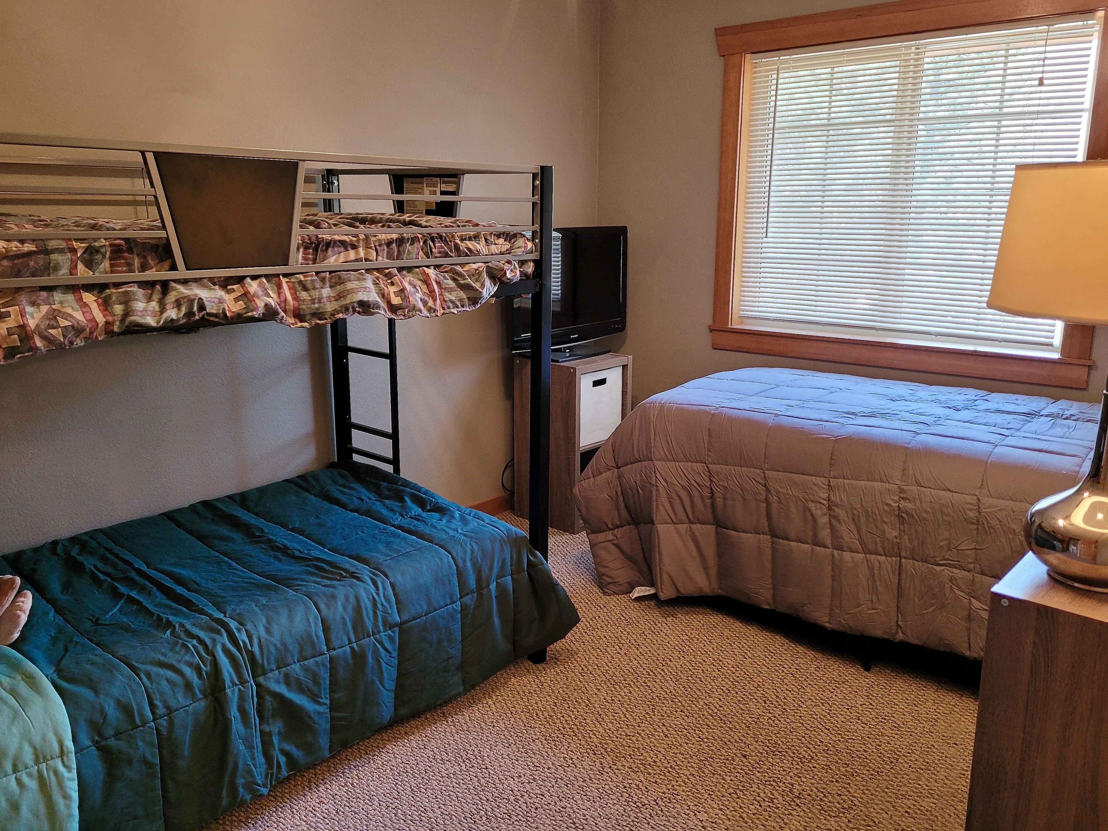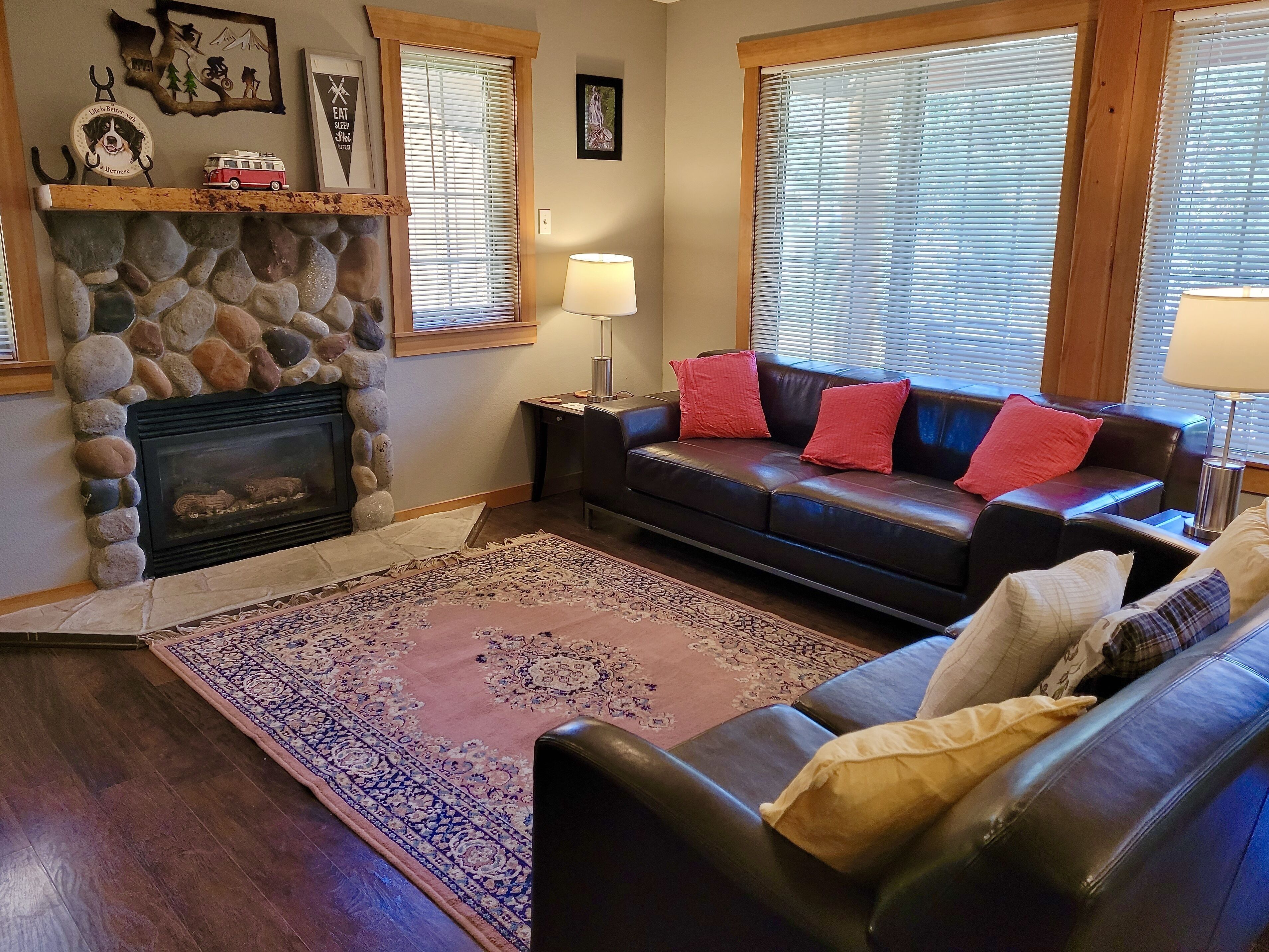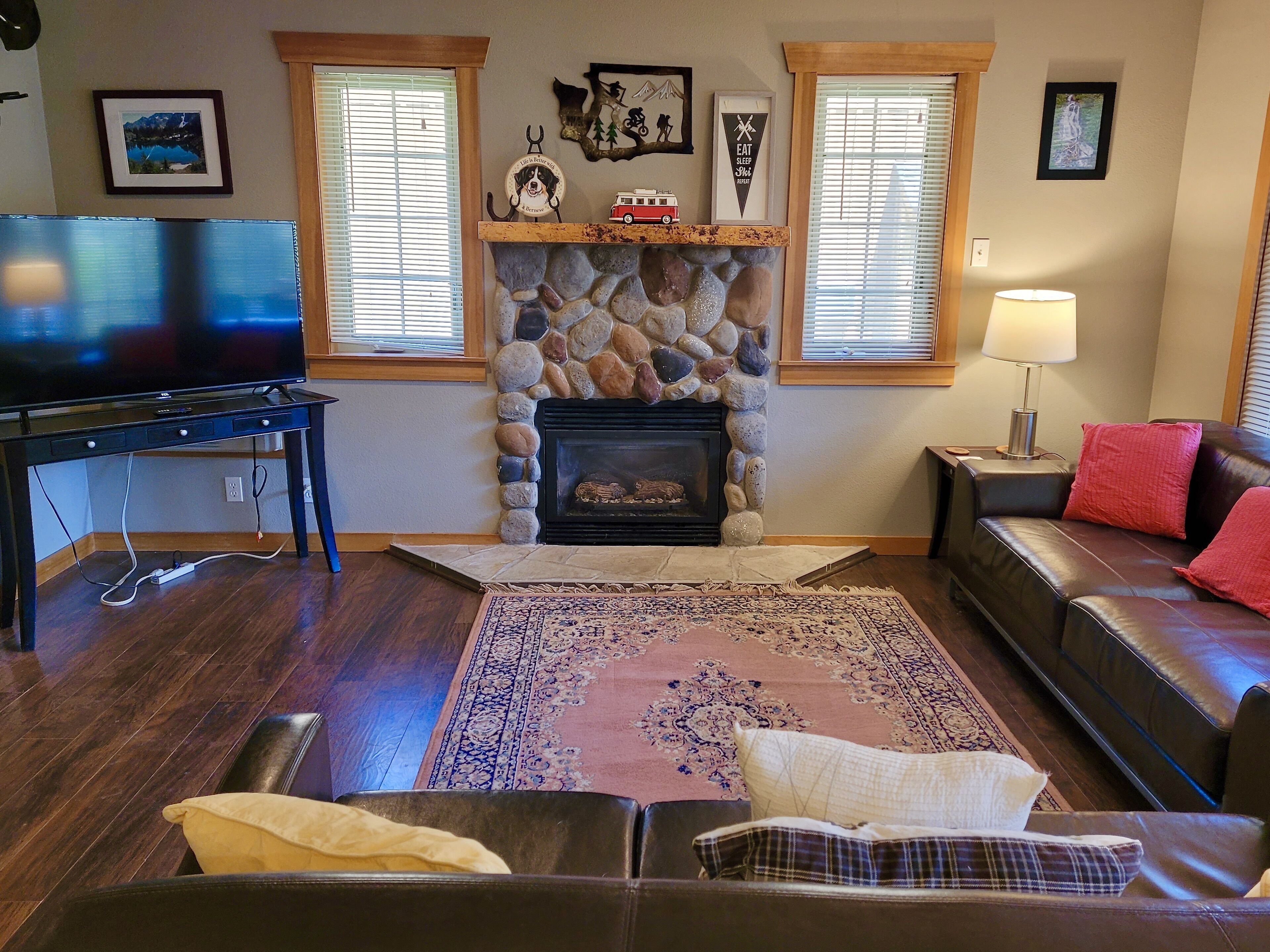 Towering Pines-Dog Friendly, Walk to Ski trail and Close to Town! Towering Pines Condominium is a dog friendly(limit 1),1840 square foot, comfortably decorated vacation getaway located in the Old West town of Winthrop. Our getaway provides the perfect lodging accommodations for your Methow Valley adventure. At the south edge of Winthrop, it is an easy walk to the grocery store and other conveniences and a less than a five-minute drive (or short bike ride) to the ice rink and MVSTA ski/bike trail heads. For a more leisurely outing, just one more minute (or short walk/bike over the suspension bridge) and you are in town with access to all the cafes, restaurants, bookstore, and more.On the main floor is a fully equipped kitchen with separate dining area. The cozy living room has a stone gas fireplace, a smart TV, with 2 leather couches. The dining room table has seating for 6, with additional seating at the kitchen bar counter, to provide ample comfortable space for your group and guests. A/C is available. A half bath is off the living room. There is 20 MB high speed internet for your personal use or for working remotely. A washer/dryer is off the kitchen.This townhome has 3 fully-furnished bedrooms and 2 baths on the second floor. The master bedroom has a king bed, with A/C and private bath. The second bedroom has a queen bed; and the third, a twin, and bunk bed. These two bedrooms share a full bathroom, and also have A/C units.Parking is available for 3 cars immediately in front of the unit. Access to the garage for secure bicycle or ski storage, and ski waxing is available upon request.The home has puzzles and games galore. Also enjoy the Smart TV with several streaming apps logged in or bring your own log in info. There is a DVD player and some videos available for use as well as The Internet access includes wireless boosters for the upstairs. There is a Nintendo 64 in the twin room. There are boot dryers, clothes drying racks, ironing board/iron, and a baby gate.Need more space check for availability of Unit #1 next door!EXTREMELY IMPORTANT YEAR ROUND TRAVEL INFORMATION--READ BEFORE BOOKING A RESERVATION:1)It is the responsibility of the guest to have travel plans in place to travel either over the North Cascades via Highway 20 OR to travel over Steven's Pass through Leavenworth OR to travel I-90 over Snoqualmie to Blewett Pass through Wenatchee and then up the Columbia river to the Methow Valley. If one route is closed, it is the YOUR responsibility to make alternate plans for travel. NO REFUNDS will be given at any time of the year simply because an alternate route must be taken and add additional travel time. Highway 20 is closed in the winter and mountain passes can be closed anytime of the year because of wildfires, rockslides or other occurrences. Directions over all the routes will be sent to. you 3 days before your arrival. Make sure to check pass reports(and they can change while you are en route) and print out the directions before you leave. 2)Trail Access/Closure Information: If you are coming to hike, bike, or ski on a trail or system of trails which happen to be closed before or during your stay, NO REFUNDS WILL BE GIVEN because of this. Trail closures can occur anytime because of fire, rockslides, mud flows...and we have no control over this. There are many hiking, biking trails of various kinds in the Methow Valley. If access to the North Cascades is closed via Hwy 20 because of any reason, NO REFUNDS WILL BE GIVEN because of this. There beautiful hikes in and around our valley that we would be happy to recommend.