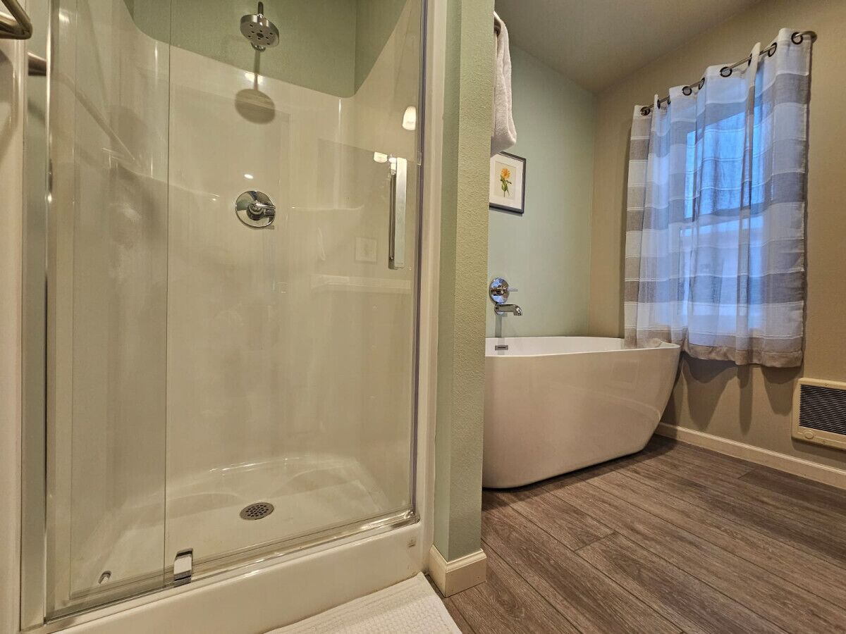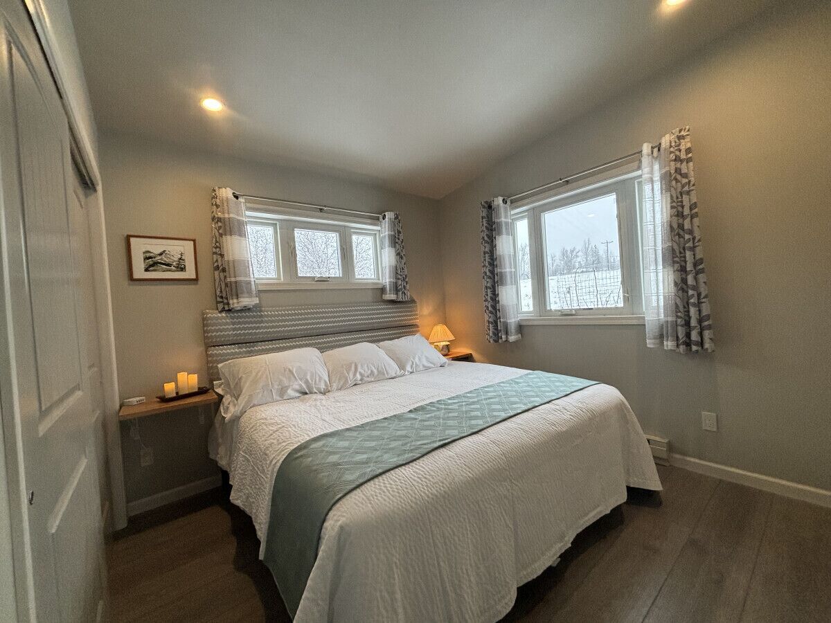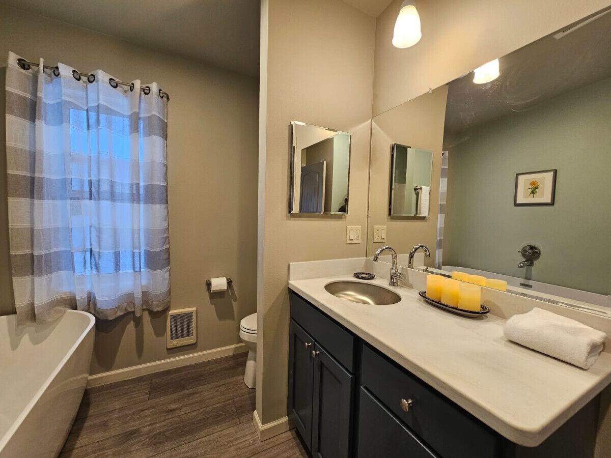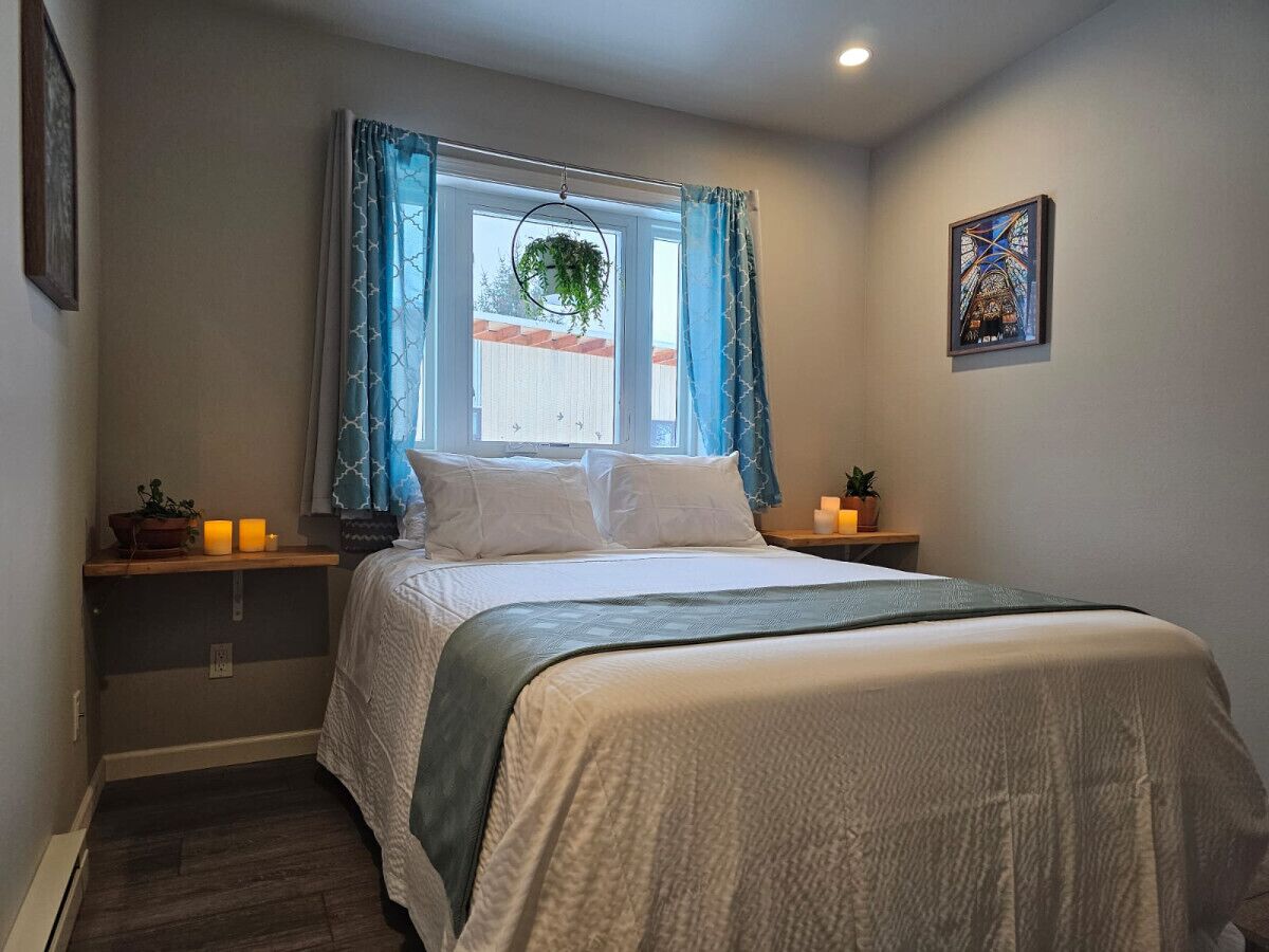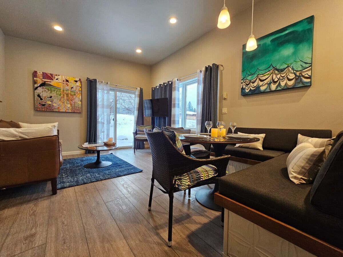 Sunflower Resort Arnica Cabin with its K/Q bed config. is in ultra-quiet Winthrop South community, with a 5 minute walk to downtown on the pedestrian trail. Sunflower Resort Arnica Cabin is a private, modern, pet-friendly, 1000 ft2 cabin w/ 2 BRs/1.5 baths. Located in Winthrop with easy access to all activities, it is right on the ski trail, with just a 5-minute walk to the rink, and 10 minutes to town. Amenities: sun 300 days a year, complete kitchen, 6-ft soaking tub, private 2-car carport, EV charging, blackout curtains, washer/dryer, and private deck. Sunflower Resort has an onsite healing arts center, offering massage, yoga, facials, waxing, full hair and nail care, naturopathic consults, meditation, HoopDance, cooking, acupuncture, full hair and nail care, longevity treatment, etc. HOUSE RULES summary -If lost, key replacement fee is $15.00.-Park only in the two-car carport of your reserved home. No boats, campers, or trailers are allowed without prior permission.-Respect quiet time between 9 pm and 7 am.-No unregistered guests are allowed overnight. During warm weather, a shared outdoor space can be reserved for small gatherings. Larger parties or events are allowed if you reserve the entire resort and these plans are prearranged with the hosts. -Smoking, illegal substances, or firearms of any kind are not allowed anywhere on the premises.PET FEES/Agreement: We allow up to two appropriate dogs per house for the flat fee of $100. Please check the box for this "extra" when finalizing your booking. The pet agreement will be on the kitchen counter and includes the obvious features, such as dogs on leash while at the resort, etc. Your booking confirms your agreement. Contact us if you would like to see this before your arrival.Enjoy your stay! We are so glad you chose to vacation in the Methow Valley and hope you come to love it here as much as we do. It is a peaceful place where treasures are layered, some completely apparent and the rest below the surface awaiting discovery by those who plan to stay a while. Your hosts, Michael & Sierra 1 (206) 458-3883, [email protected]