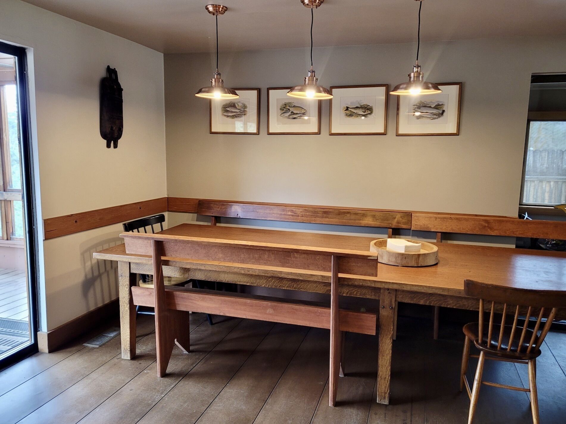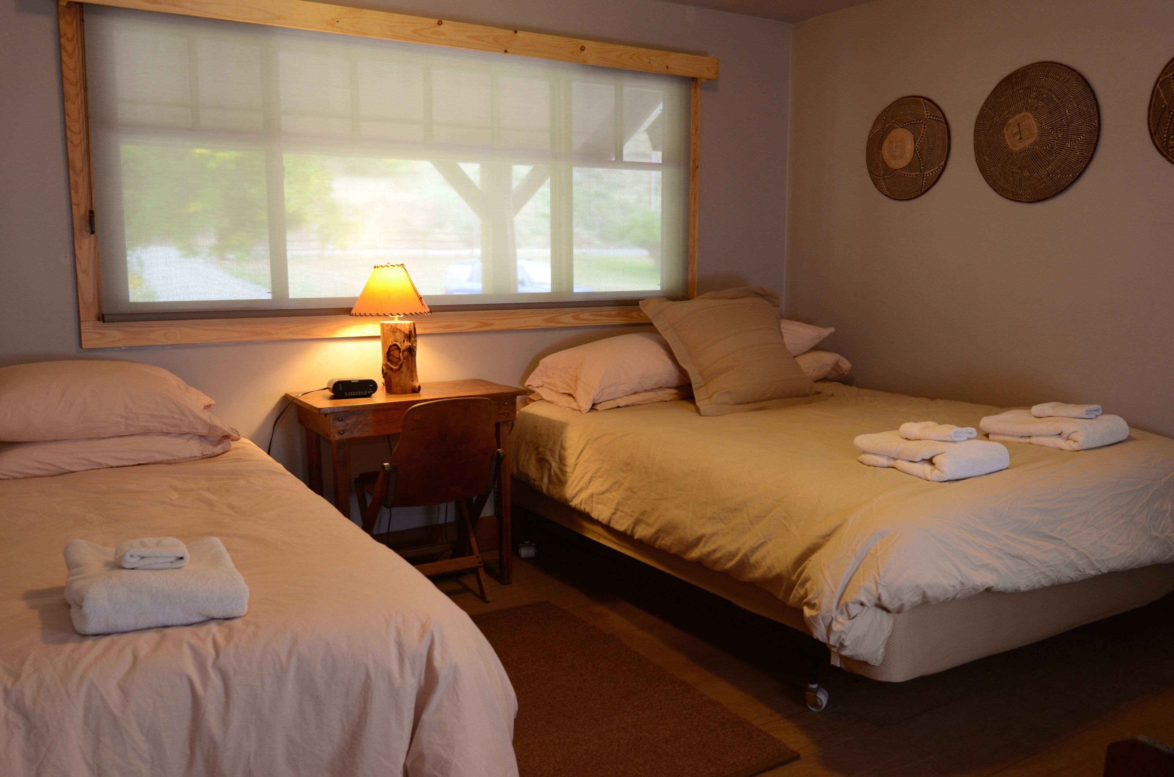 A Bend in the River Lodge - Dog Friendly and Next to the River, 3 Bedroom Option A BEND IN THE RIVER LODGE(a legal and licensed nightly rental in Okanogan Cty)offers spacious room and privacy on a bucolic 5-acre Chewuch River setting 4 miles outside of the Town of Winthrop. The Lodge is dog friendly(2 dog limit) and a great home base for outdoor enthusiasts, with hiking, mountain biking, cross-country skiing nearby.The Lodge 3-bedroom option offers 3 bathrooms, two en-suite, in the Riverside and Western Gate room, and one common bathroom for the Western Gate bedroom. Shampoo and Conditioner are not provided. Body wash and hand soap are provided, as well as hair dryer. Bedroom 1: 1 queen bed, 1 double bed(Full bath,shower/no tub, en-suite) Bedroom 2: 1 queen bed, 1 single bed Bedroom 3: 2 doubles, 1 single bed(Full bath,shower/no tub en-suite)The Lodge has an exceptionally well-equipped kitchen which provides everything you need to cook a feast. We provide salt and whole black peppercorns. Okanogan County Public Health restricts the provision of other cooking staples such as oil and spices. We also provide paper towels, paper napkins, dish detergent, laundry detergent, plastic wrap, aluminum foil, paper facial tissues and toilet paper.Break bread around a 12-foot antique oak table. Enjoy the screened porch that opens from the kitchen, with rocking chairs that look out over a meadow down to the river and the unspoiled hills. There is also a sunroom for morning coffee, near the BBQ deck, which functions as a ski waxing/gear room in the winter. A/C mini splits cool the main floor of the lodge. The deck is outfitted with a cedar picnic table and umbrella. (Please note the BBQ is stored in winter, between Nov 1 and April 1).An A/C minisplit on the main floor and fans are available to keep you cool during the hotter months.A spacious daylight basement recreation room includes a TV, ping pong table and game table. There is a second large picnic table immediately outside of the recreation room.Natural fiber, high quality bed & bath linens have been chosen to assure your comfort. The Lodge is decorated with 'found object' collectibles, artwork & Turkish area rugs to create a warm & inviting interior.We are dog friendly. Dogs are people too, even if they are not permitted on people furniture. We are a smoke-free environment inside, and on the property. Fire pits and fireworks are not permitted. We appreciate your cooperation.Be sure to check out A Bend in the River Cabin by the river for smaller parties or overflow accommodations.The Methow Valley is an apple maggot quarantine area per the Washington State Dept. of Agriculture."The purpose of the apple maggot quarantine is to stop the spread of apple maggot into pest-free areas of the state. State law prohibits the movement of homegrown fruit or raw vegetables from a quarantined area into or through a pest-free area." Please do not bring any homegrown fruit or raw vegetables to A Bend in the River. Store-purchased fruits and vegetables are fine.We will do our best to make your stay with us comfortable and restorative. Thank you...A Bend in the River Lodge crew*2 dog limit($110 flat pet fee)*A Bend in the River Lodge is a smoke free environment. Absolutely no smoking in the cabin or on the premises. Fireworks and outdoor fires are not permitted. Our neighbors keep a close eye on the property and will report any guests that don't comply. Thank you for your cooperation.*