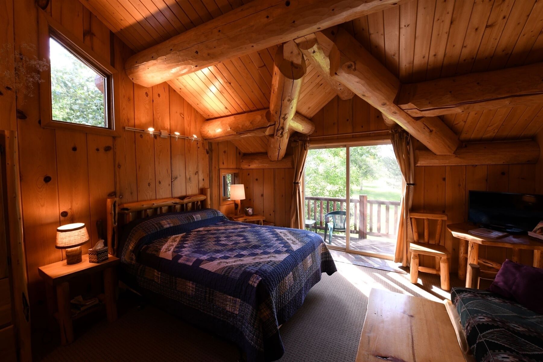 Running Wolf Cabin – 2 BR w/trail access, pool/hot tub The spaceLocated at Wolfridge Resort, Running Wolf Cabin is a two story log townhome. The living area has cathedral ceilings and has an open airy feel. Hardwood floors, log walls, and unique furniture make this cabin feel like a remote escape while still being close to the fun. Upstairs is a studio bedroom with its own kitchenette, bathroom, a...