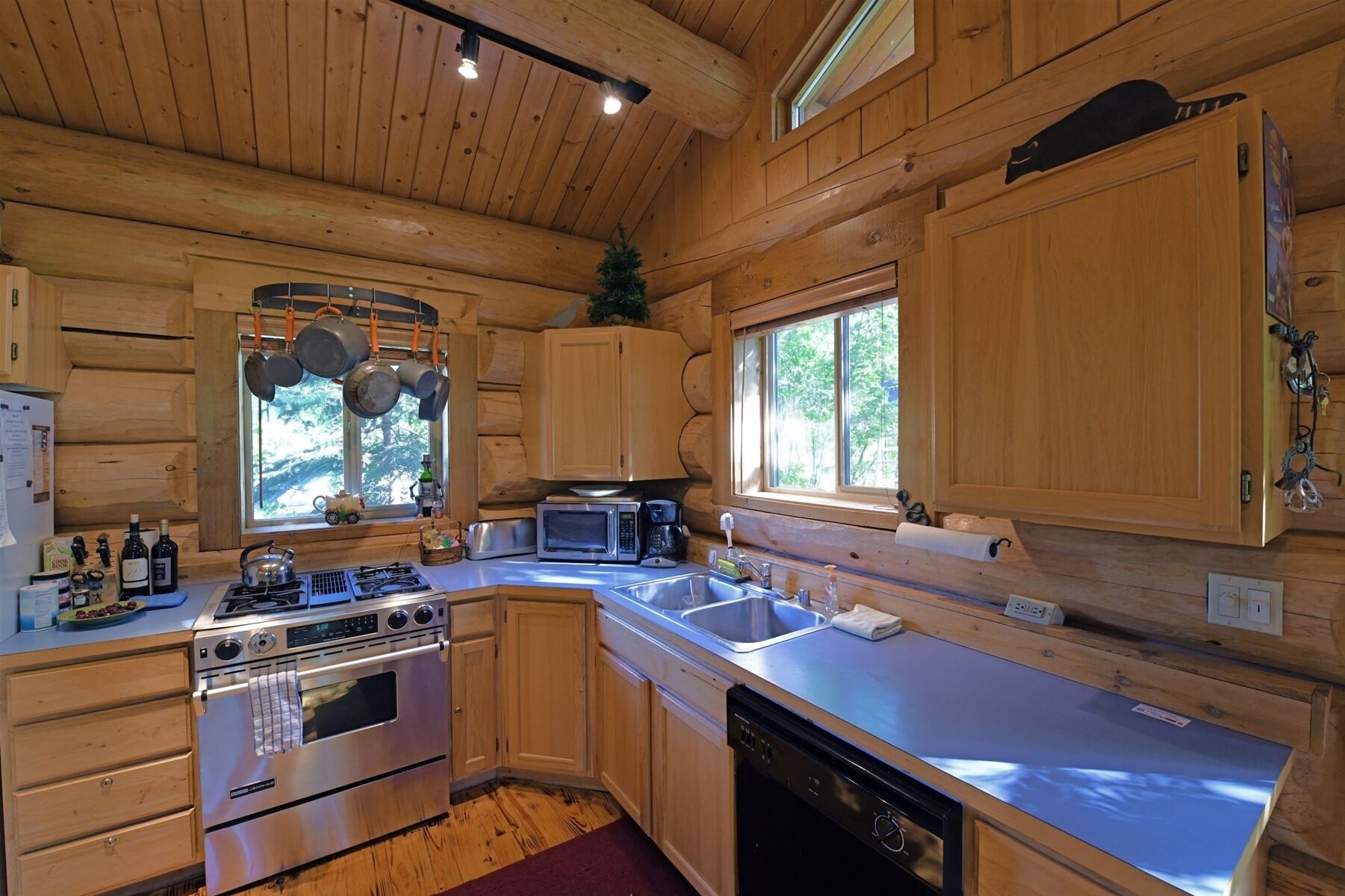 Running Wolf Cabin – 2 BR w/trail access, pool/hot tub The spaceLocated at Wolfridge Resort, Running Wolf Cabin is a two story log townhome. The living area has cathedral ceilings and has an open airy feel. Hardwood floors, log walls, and unique furniture make this cabin feel like a remote escape while still being close to the fun. Upstairs is a studio bedroom with its own kitchenette, bathroom, and balcony.We have over 40 acres of open space and the Methow River is a short walk away. Jump in the pool on those hot summer days after a hike in the hills. In the winter, you can strap on your skis at the front door and ski the Methow Trails System. Warm yourself in the hot tub in the evenings and curl up on the couch with a cup of cocoa. The Wolfridge Resort Property also has a play structure, horseshoes, and a sand volleyball/badminton court. Main Floor:Bedroom with queen bed and single day bedFull bathroomLiving area with futon couch that folds out to a full sized bedFully equipped kitchen with fridge, oven, stove, dishwasher, coffee pot...and the coffee is on us!Upstairs:Queen bed and futon couchBathroom with showerKitchenette with sink, microwave, mini-fridge, coffee pot.A balcony with views up the Methow ValleyFree Wi-Fi and Netflix Guest accessThe place is yours!We have an onsite manager (Gabrielle) who is just a phone call away.