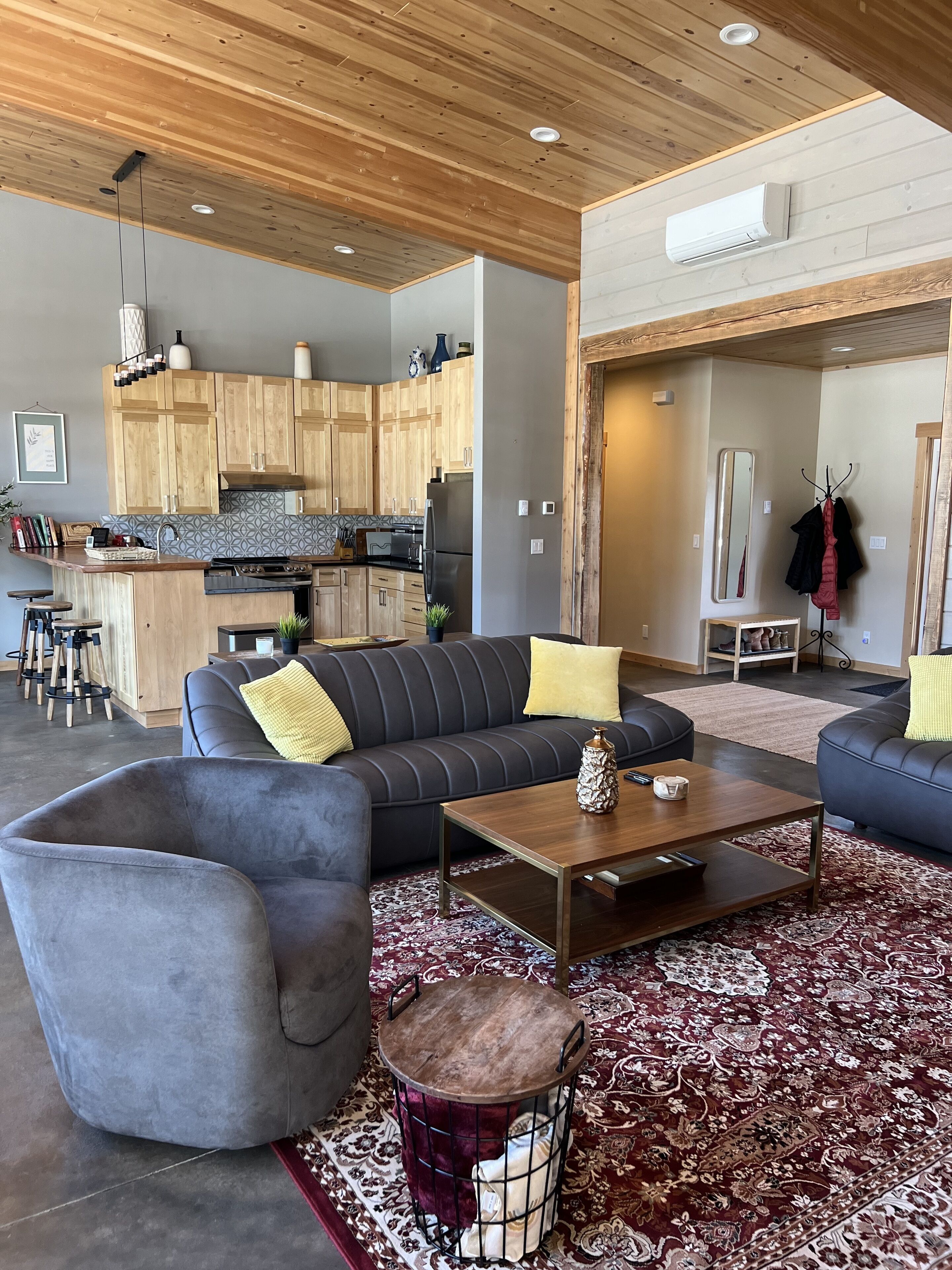 Wolfcreek Lodge - Modern 3 bd house on a ski trail and river access/hiking trail Escape to the breathtaking Methow Valley and experience the ultimate mountain retreat in our brand new, charming Winthrop rental house. With three bedrooms and two bathrooms, and a large main room, our house comfortably accommodates up to nine guests in style and comfort. Also available, separately, an apartment above...