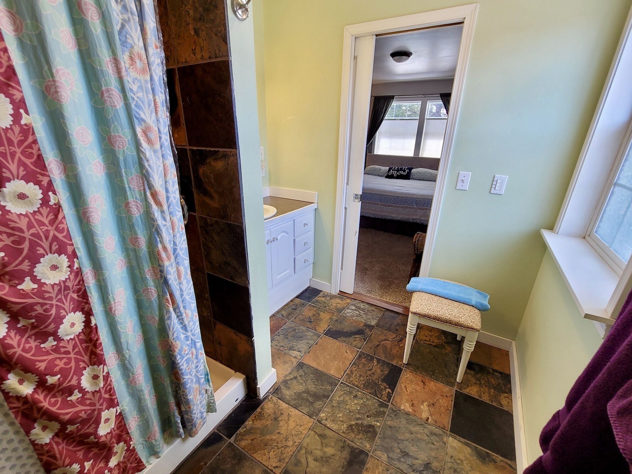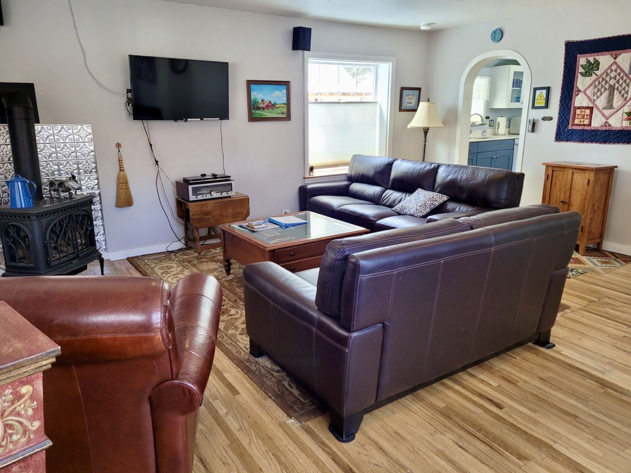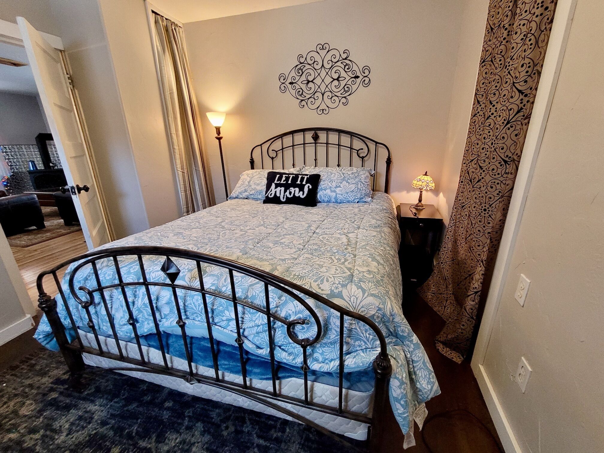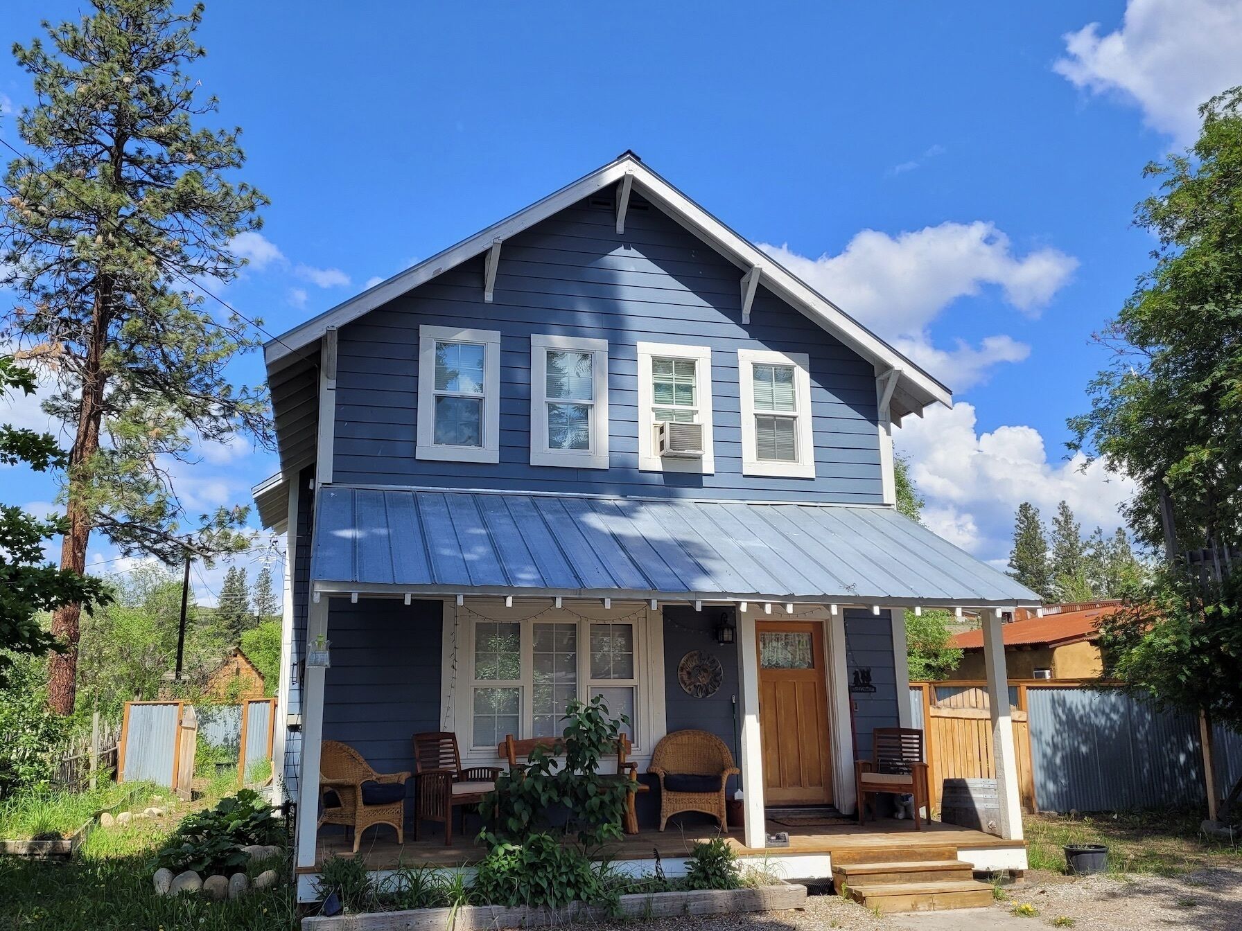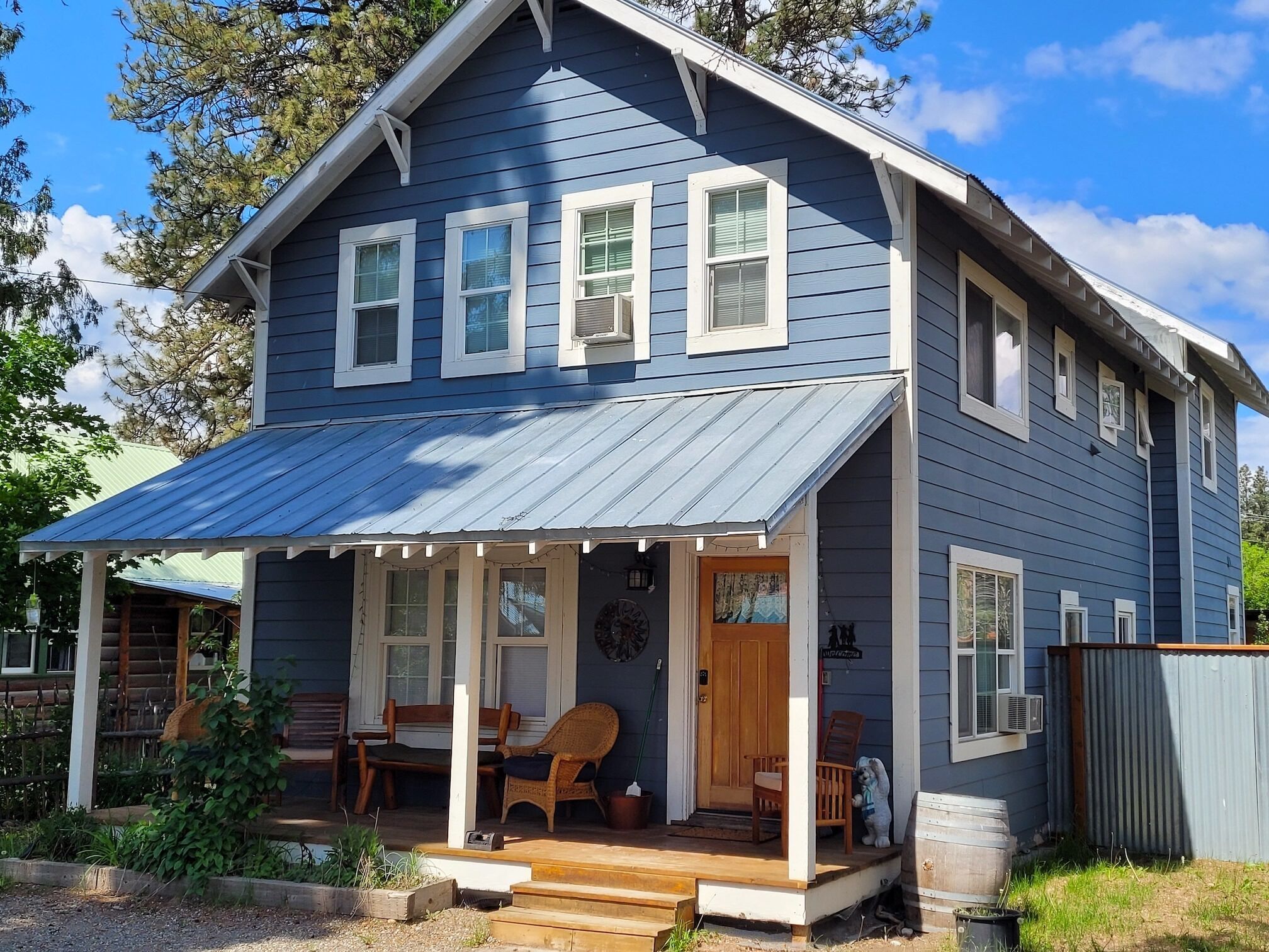 Blue Moon-Dog Friendly and a Short Walk to Winthrop! Blue Moon (a legal, licensed nightly rental with a current Okanogan County health permit as required by law) is dog friendly(2 dog limit) and has a perfect in-town location – walking distance to restaurants, and shops, and all the wonderful outdoor activities Winthrop has to offer. If you’re spending time with friends, or gathering the family, this home has 4 bedrooms with plenty of room for everyone...Welcome to Blue Moon.This dog friendly home is located about 2 blocks from Winthrop's one-and-only 4-way stop. It was once a much smaller house that had a recent remodel, building out the first floor and adding a second floor, while maintaining the charming character of the coved doorways. On the main floor there is a good-sized living room with propane stove and A/C, a bedroom with A/C, large kitchen, and bright dining room. A queen bedroom sits just off the living room along with a common bathroom. The newly remodeled kitchen features new cabinets, countertop, stove, dishwasher, 4-door fridge (open from middle), pots, pans and serving dishes and utensils, slow cooker, full spice rack Panni press, rice cooker, electric fry pan, Cuisinart coffee maker, French press, coffee grinder, one cup Keurig maker(bring your own Keurig coffee) and a stovetop espresso maker. There is a nice big dining room table for all to gather around. Bring your slippers as the kitchen floor can be cool! Free fuzzy socks are provided. There is a ‘mud room’ for your gear, or waxing skis, just before you head upstairs. On the second floor you’ll find a master bedroom with king bed, private bathroom and sunset porch; and another bedroom with a queen size bed and a shared hallway bathroom. At the end of the hallway is a laundry room, plus a 'bonus room', or upstairs rec room, with two double beds and television.Living Room has big-screen Roku TV, DVD player, and vintage stereo with Bluetooth connectivity for personalized music from your phone; and board games. There is a small fenced back yard for your dog to play.There is an EV charger 48amps, J1772/CCS Tesla owners bring NACS to CCS adapter.CenturyLink Wireless Speed test: 24.3 mps download, 2.17 mps upload. T-Mobile service: Free personal hotspot LTE Speed test: 45 mps download, 7.63 upload. (speed will vary)**2 dog limit(dogs only)**FYI-there is an outside security camera on the premises.EXTREMELY IMPORTANT YEAR ROUND TRAVEL INFORMATION--READ BEFORE BOOKING A RESERVATION:1)It is the responsibility of the guest to have travel plans in place to travel either over the North Cascades via Highway 20 OR to travel over Steven's Pass through Leavenworth OR to travel I-90 over Snoqualmie to Blewett Pass through Wenatchee and then up the Columbia river to the Methow Valley. If one route is closed, it is the YOUR responsibility to make alternate plans for travel. NO REFUNDS will be given at any time of the year simply because an alternate route must be taken and add additional travel time. Highway 20 is closed in the winter and mountain passes can be closed anytime of the year because of wildfires, rockslides or other occurrences. Directions over all the routes will be sent to. you 3 days before your arrival. Make sure to check pass reports(and they can change while you are en route) and print out the directions before you leave. 2)Trail Access/Closure Information: If you are coming to hike, bike, or ski on a trail or system of trails which happen to be closed before or during your stay, NO REFUNDS WILL BE GIVEN because of this. Trail closures can occur anytime because of fire, rockslides, mud flows...and we have no control over this. There are many hiking, biking trails of various kinds in the Methow Valley. If access to the North Cascades is closed via Hwy 20 because of any reason, NO REFUNDS WILL BE GIVEN because of this. There beautiful hikes in and around our valley that we would be happy to recommend.INTERNET POLICY..PLEASE NOTE:**We strive to provide the best internet service we can get here in the very rural Methow Valley. Internet speeds vary throughout the valley and outages or tech issues can occur that we have no control over, and for these reasons NO REFUNDS are given if the internet is problematic. We also do not guarantee that the internet will meet your work/school needs. Should you have an issue with internet service, please send us a message through VRBO describing the problem. We will then contact you to troubleshoot. If the issue is not resolved, we will then contact the internet provider, and/or homeowner. Please note... our valley is very rural and getting service personnel to fix things in a timely manner can be a challenge. We rent lodging, not office space. Public internet is available at the Winthrop library with enhanced internet speed (parking lot or inside the library). Alternatively, for a fee you can go to the Dropzone in downtown Winthrop. Thank you for your understanding!IMPORTANT WINTER INFORMATION :**Should you travel to the Methow during the winter months it is important to understand that you must be prepared for winter driving(keep chains, shovel...in the car) and all the inconveniences it causes you and the community you are visiting. The weather can be extreme with large snowfalls, unexpected technical issues, frozen pipes, impassable roads/driveways). If it snows while here you will have to wait for plow service just like every other person in the valley. There are a limited number of plow companies and Methow Reservations nor the owners of the house are in control of the plow company schedules. They have many different contracts and many miles of roads, driveways...to plow. If a plow person or a snow shoveler shows up to clear any area around the house, please do not argue with them or turn them away. Move your vehicles if asked. Your cooperation and patience are required especially after any significant snow accumulation. Should you get stuck you can call Classic Towing in