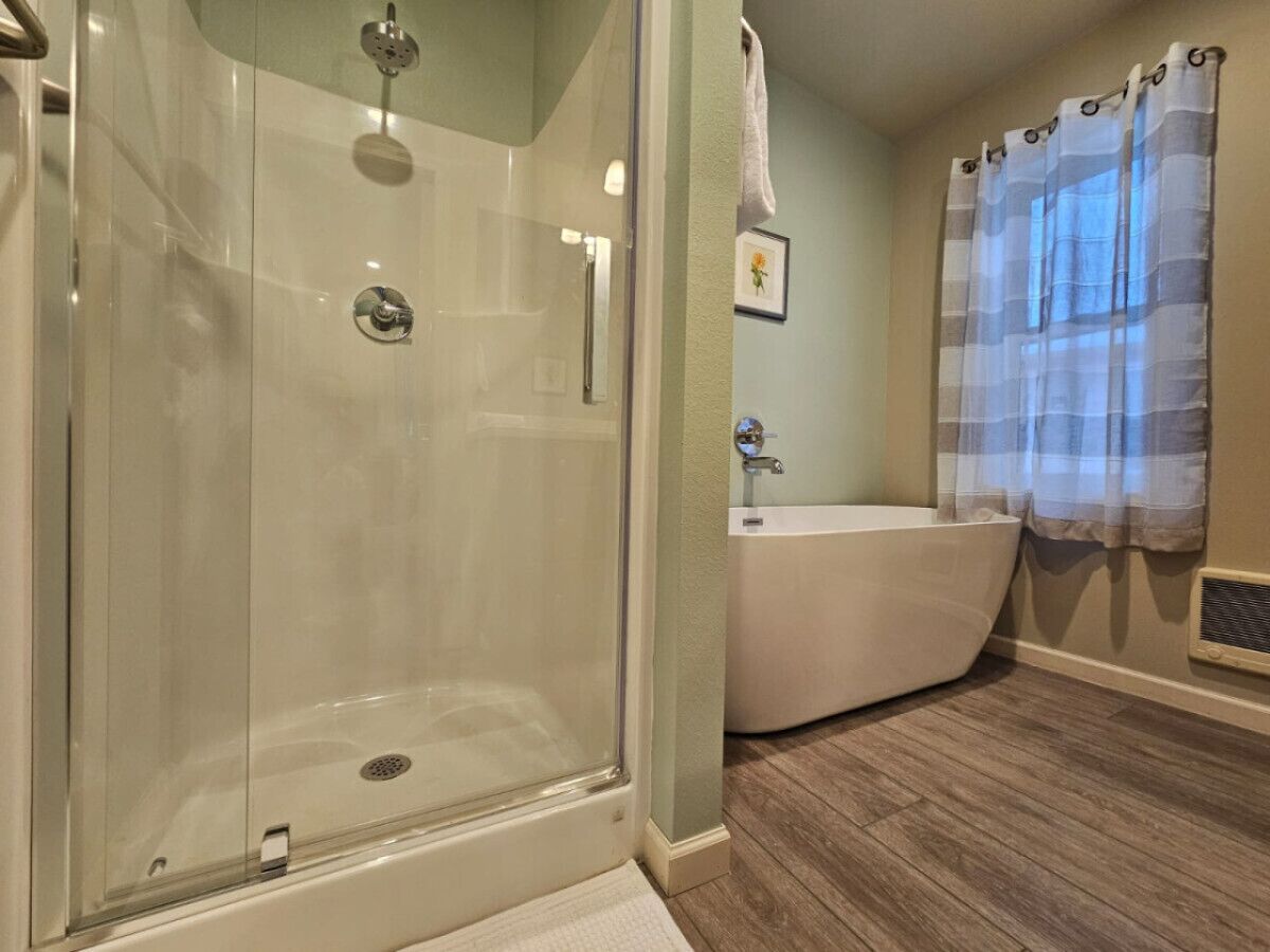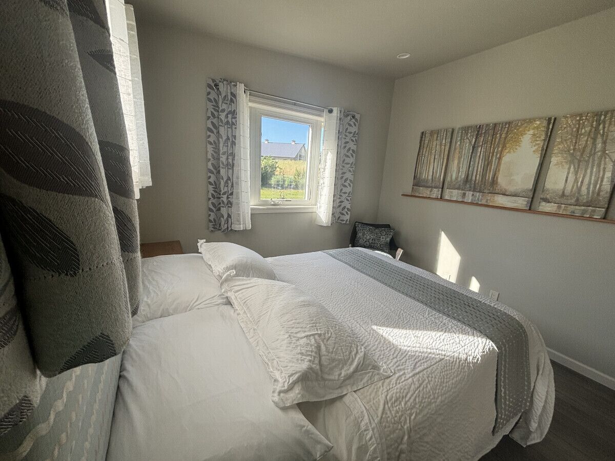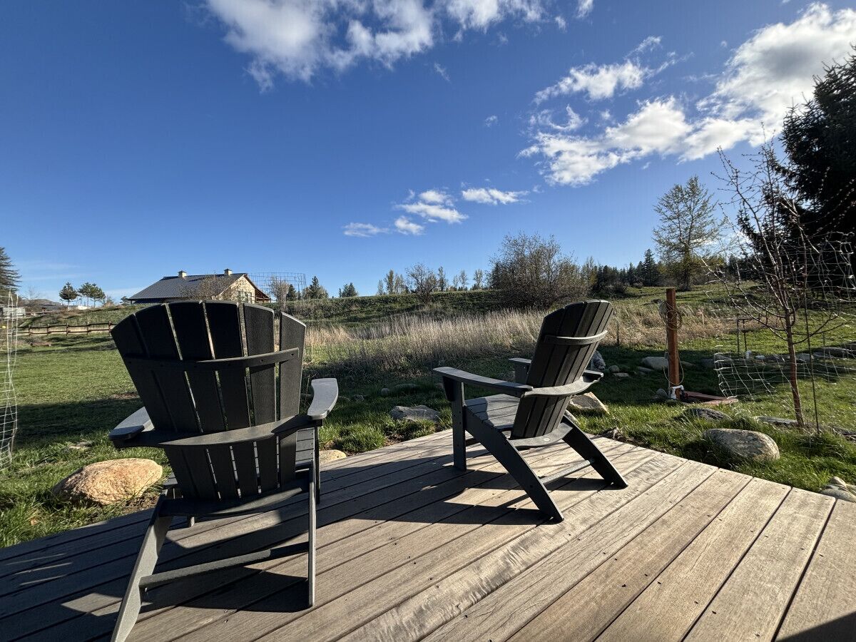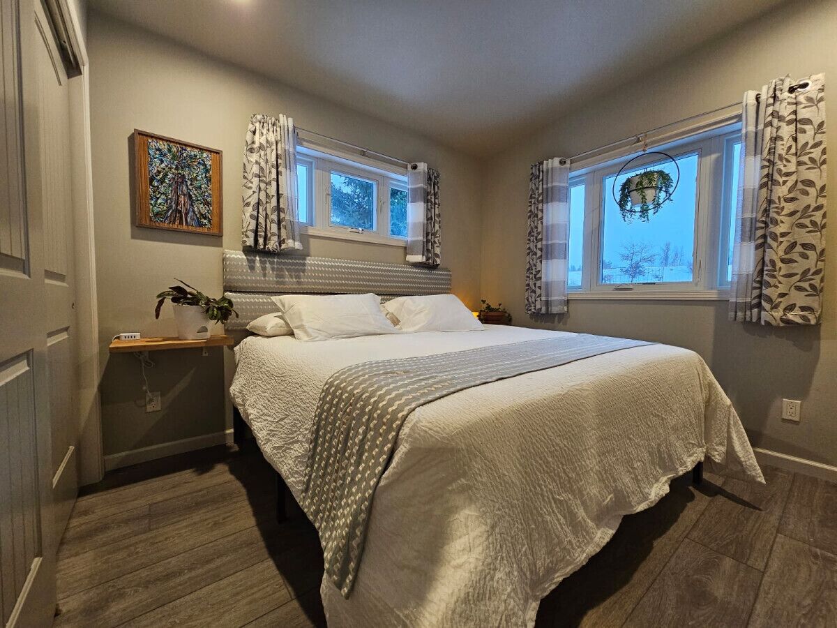 Sunflower Resort Daisy Cabin is in the ultra-quiet Winthrop South community, with a 5 minute walk to downtown on the pedestrian trail. Sunflower Resort Daisy Cabin is a private, modern, pet-and-kid friendly, 1000 square foot cabin with 2 bedrooms and 1.5 baths. The resort is located on its own quiet private lane, surrounded by fields, and yet just a 3-minute walk to the river, 5-minute walk to the rink, and 10 minute walk to Winthrop's historic downtown. With easy access to outdoor sports, the rink, the trails, and the town's restaurants it is a win with everyone in your party. With its 7 complete cabins it is a great choice for a reunion, gathering, or team accommodation. The master suite opens has its own private door to the bathroom, and has a queen 100% organic Avocado latex bed. The guest bedroom is down the hall, and has 2 AvocadoTwin XL beds.Amenities: complete and modern kitchen, 6-ft soaking tub with provided bubble bath, Samsung SmartHub TV, private 2-car carport w/ EV charger, washer/dryer, and private back deck and yard.. Unique to all downtown Winthrop, Sunflower Resort's vacation cabins have an onsite healing arts center that has been , where we offer massage, yoga, personalized facial treatments, naturopathic consults, acupuncture, full hair and nail care, & more. We have a day spa app to facilitate your online booking of services. Most important Sunflower Resort features: -Respect quiet time between 9 pm and 7 am.-No unregistered guests are allowed overnight. During warm weather, there is a shared outdoor space that can be reserved for small gatherings. No larger parties or events are allowed unless you are reserving the entire resort and these plans are prearranged with the hosts. -No smoking of any kind is not allowed anywhere on the premises.-Pet Fees: We allow up to two appropriate dogs per house for an add-on fee of 100.00. -Houses are suitable for toddlers and children. Let us know if you need to borrow child items like high chairs, play-n-pack, outlet covers, etc. There are child-friendly dishes in the house.Enjoy your stay! We are so glad you chose to vacation in the Methow Valley!