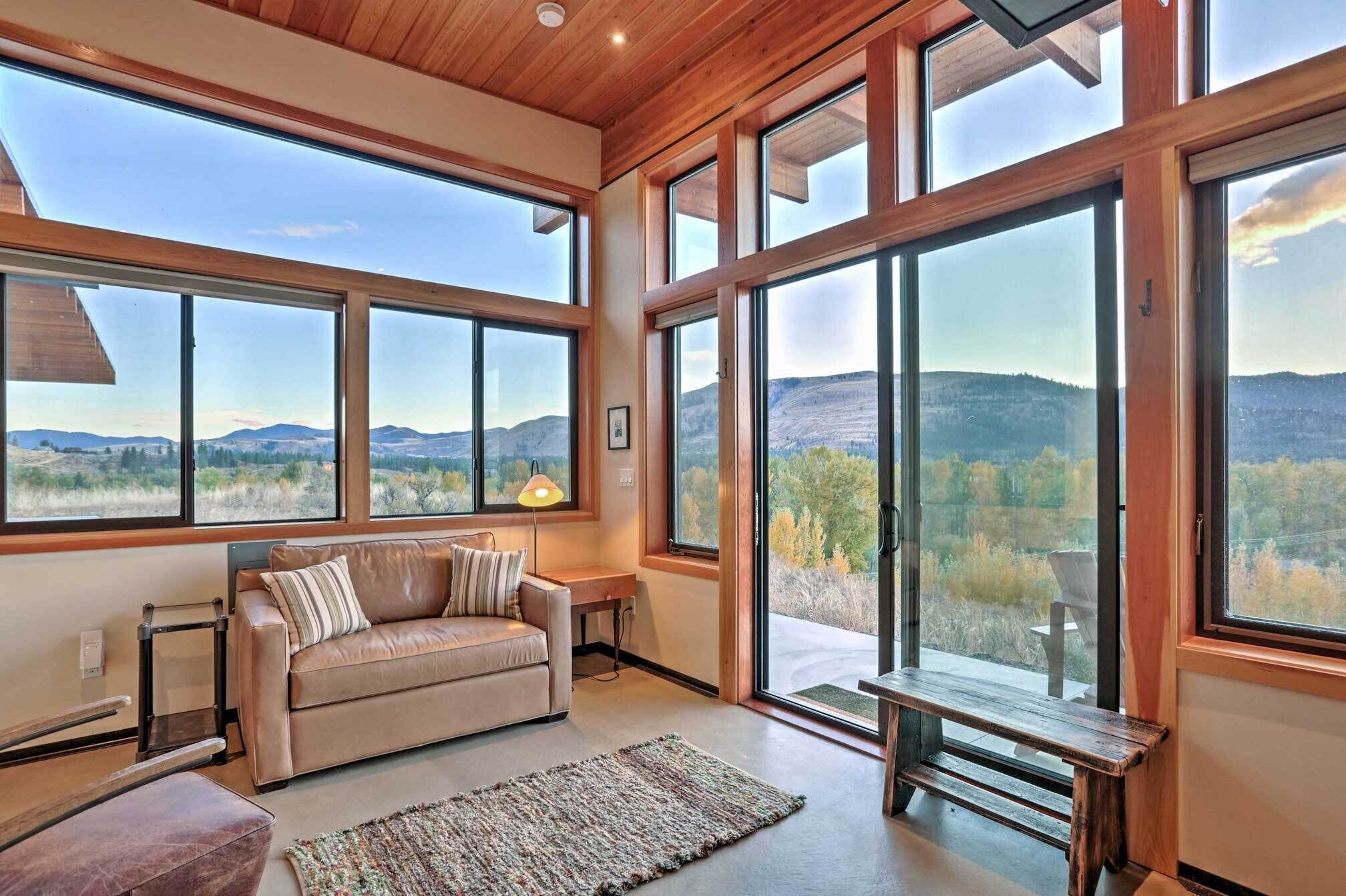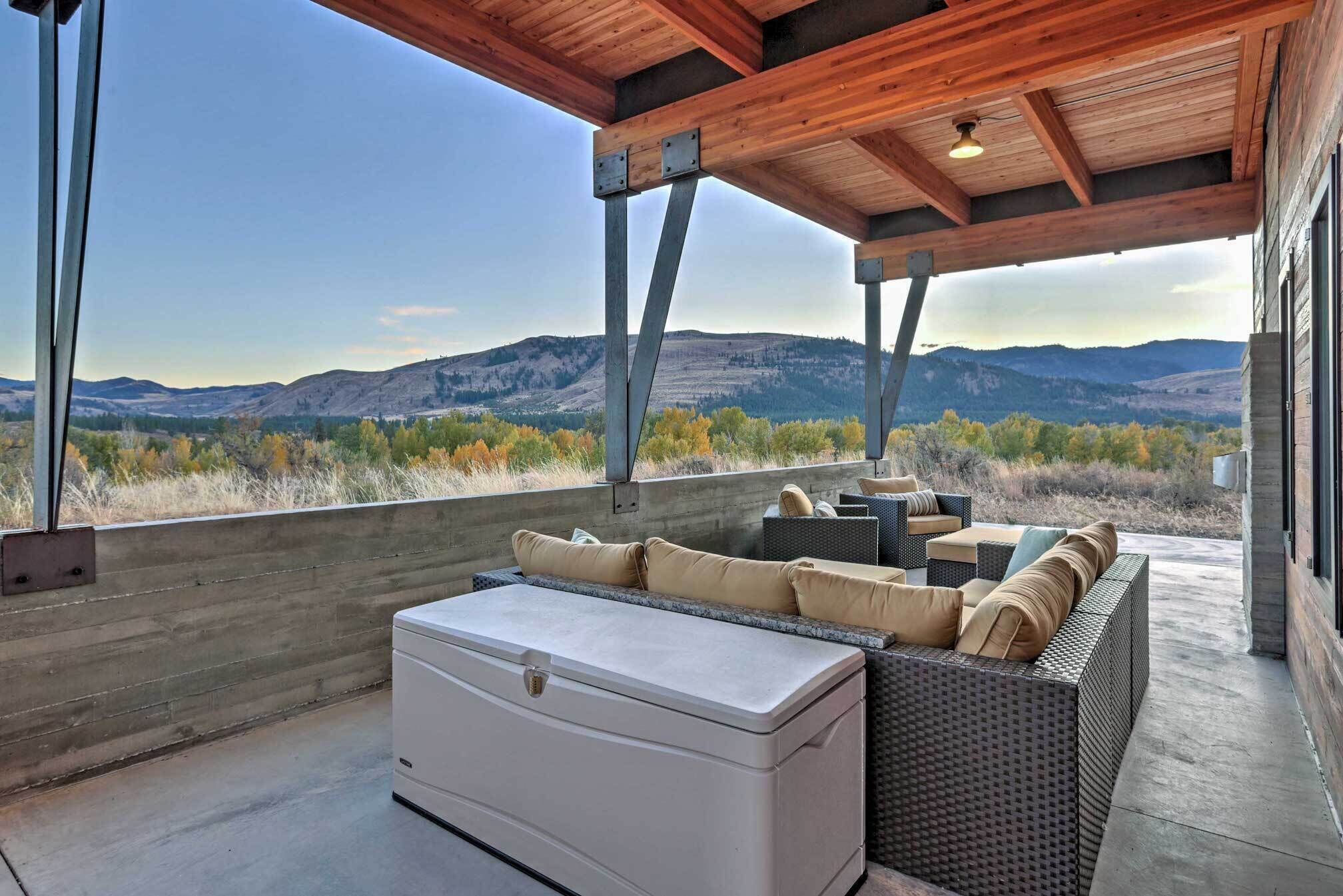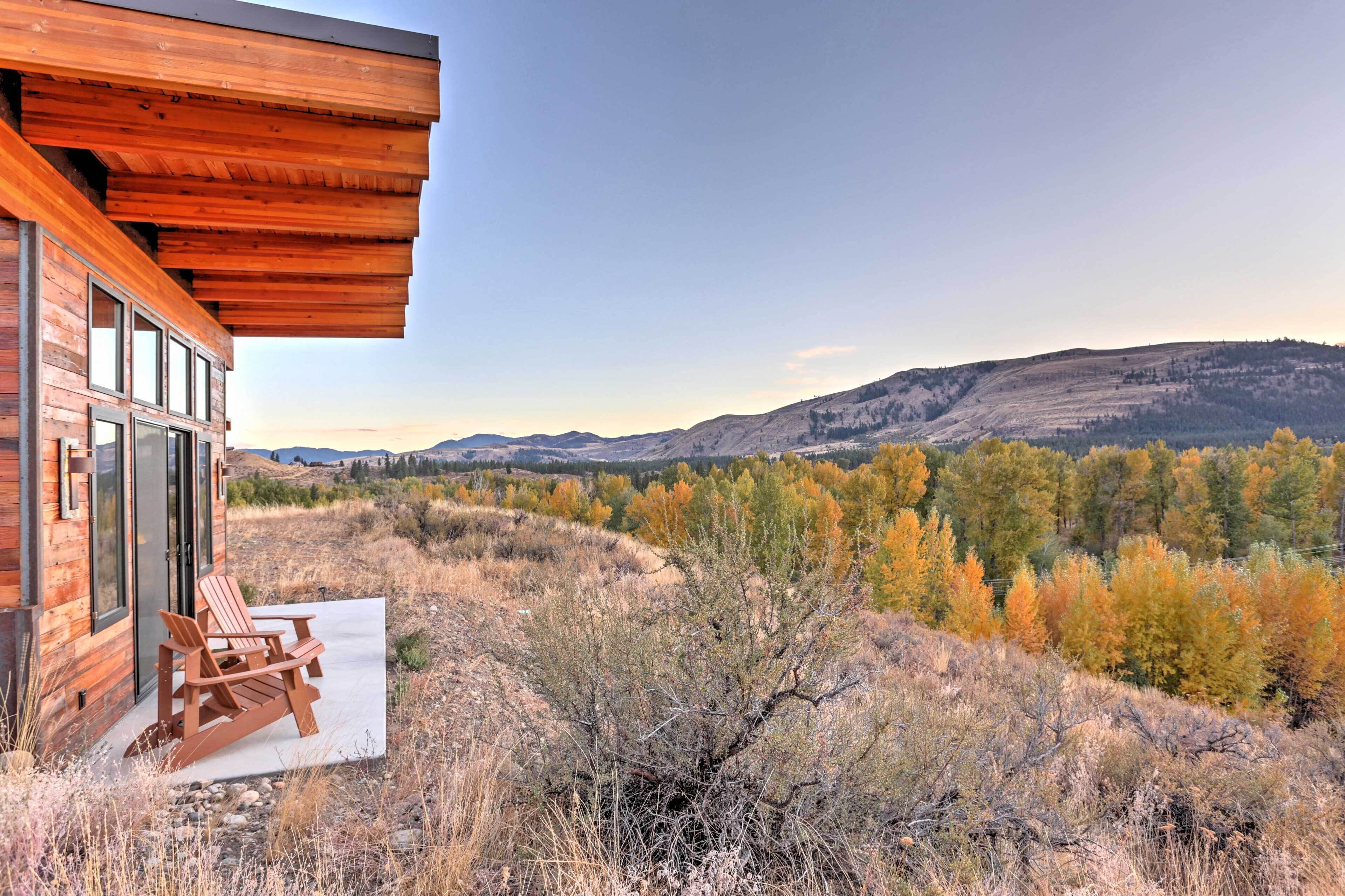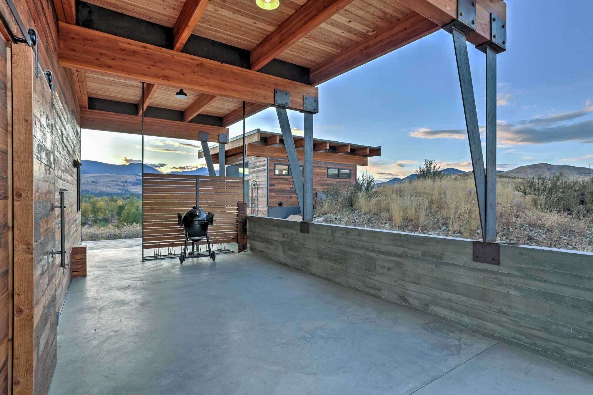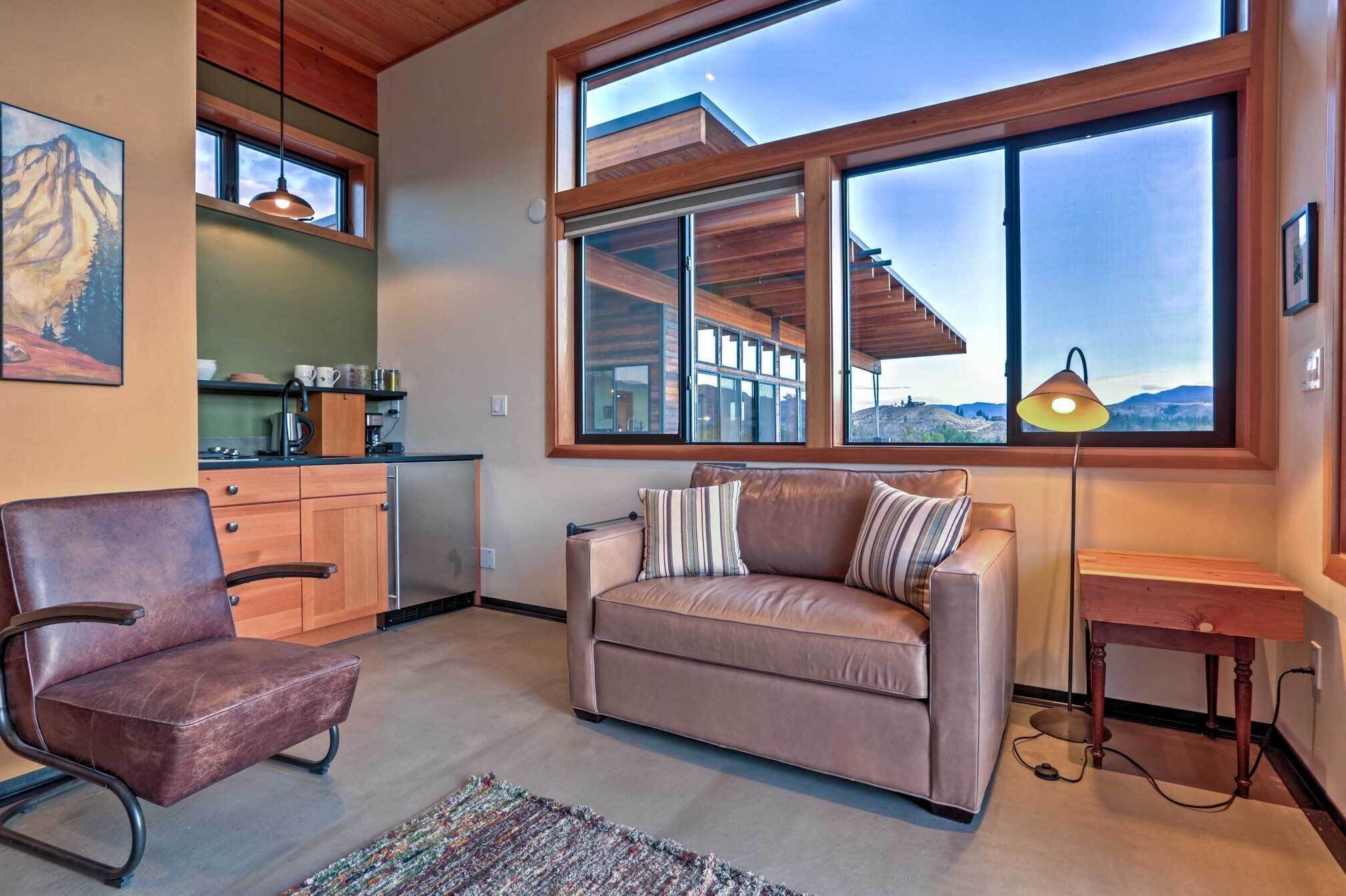 Rain's End-Breathtaking Views, Close to Winthrop! A gorgeous home(a legal, licensed nightly rental with a current Okanogan County health permit as required by law)with breathtaking views, a peaceful location, and upscale amenities, this Winthrop vacation rental is perfect for a romantic getaway. This home includes a main house with 1-bedroom/bathroom and a separate detached studio with a queen bed, as well as a bath/kitchenette. Both, feature picture windows, a fully equipped gourmet kitchen, and an adjacent studio space.Just half a mile from town, this home offers privacy and convenience to shops, restaurants, and outdoor attractions including Methow Trails, Lost River Winery, and Pearrygin Lake State Park! Vibrant sunsets and natural scenery combined with modern flair, outdoor activities, and a lively art scene make this Winthrop vacation home an ideal couple's destination.The home has principal views to the west and north. Sun bathes the interior all year (though there are shades for those summer afternoons). 360-Degree Views. Heated Floors. Open Concept Layout. The main house is one larger space with a master Queen bedroom with full bath. Just outside, on the west side, is a covered patio, with lounge furniture, Adirondack chairs, and gas grill. The kitchen is fully equipped, with dishes, flatware, glassware, there is a pour over style coffee maker and a burr grinder, ice maker, microwave and toaster.Just outside, 15 feet away, is the detached studio. Originally built as an artist's studio/office, it serves as a second living area with a queen bed, bathroom with shower, studio kitchenette and plenty of views. .GENERAL: WiFi, A/C mini split, central heat, washer/dryer, telescope, hair dryer, towels/linens, complimentary toiletries. Not suitable for children under 15 due to decor & sleeping accommodations. Covered parking for 1 car is available, with ample driveway parking.EXTREMELY IMPORTANT YEAR ROUND TRAVEL INFORMATION--READ BEFORE BOOKING A RESERVATION:1)It is the responsibility of the guest to have travel plans in place to travel either over the North Cascades via Highway 20 OR to travel over Steven's Pass through Leavenworth OR to travel I-90 over Snoqualmie to Blewett Pass through Wenatchee and then up the Columbia river to the Methow Valley. If one route is closed, it is the YOUR responsibility to make alternate plans for travel. NO REFUNDS will be given at any time of the year simply because an alternate route must be taken and add additional travel time. Highway 20 is closed in the winter and mountain passes can be closed anytime of the year because of wildfires, rockslides or other occurrences. Directions over all the routes will be sent to. you 3 days before your arrival. Make sure to check pass reports(and they can change while you are en route) and print out the directions before you leave. 2)Trail Access/Closure Information: If you are coming to hike, bike, or ski on a trail or system of trails which happen to be closed before or during your stay, NO REFUNDS WILL BE GIVEN because of this. Trail closures can occur anytime because of fire, rockslides, mud flows...and we have no control over this. There are many hiking, biking trails of various kinds in the Methow Valley. If access to the North Cascades is closed via Hwy 20 because of any reason, NO REFUNDS WILL BE GIVEN because of this. There beautiful hikes in and around our valley that we would be happy to recommend.