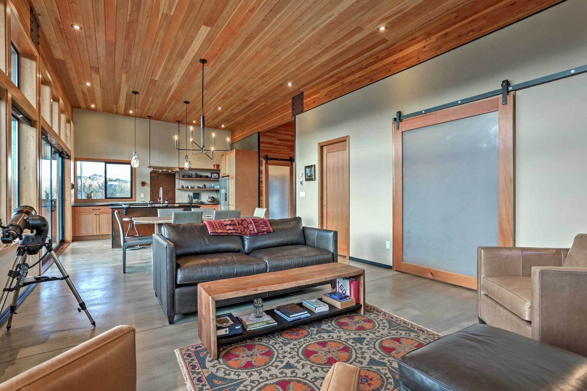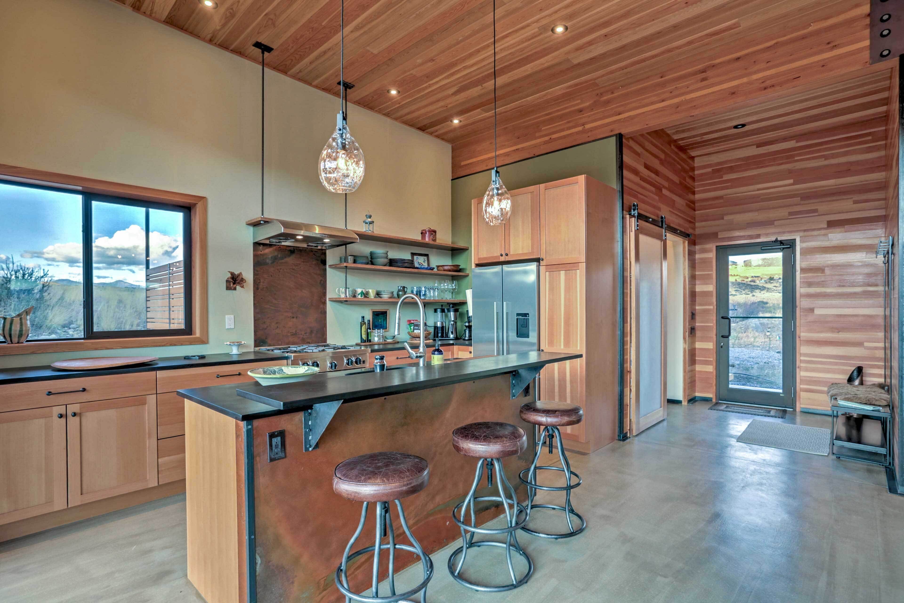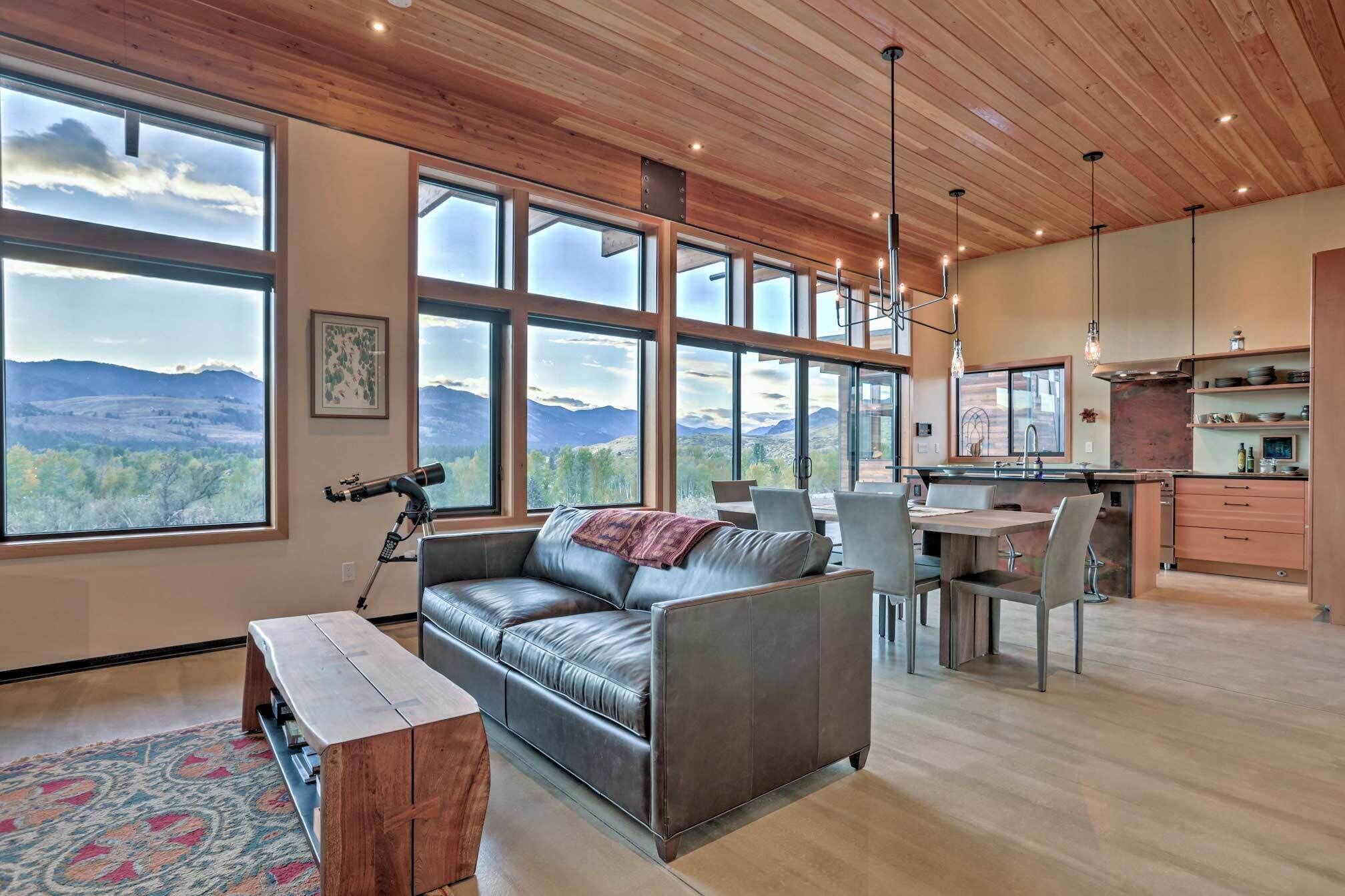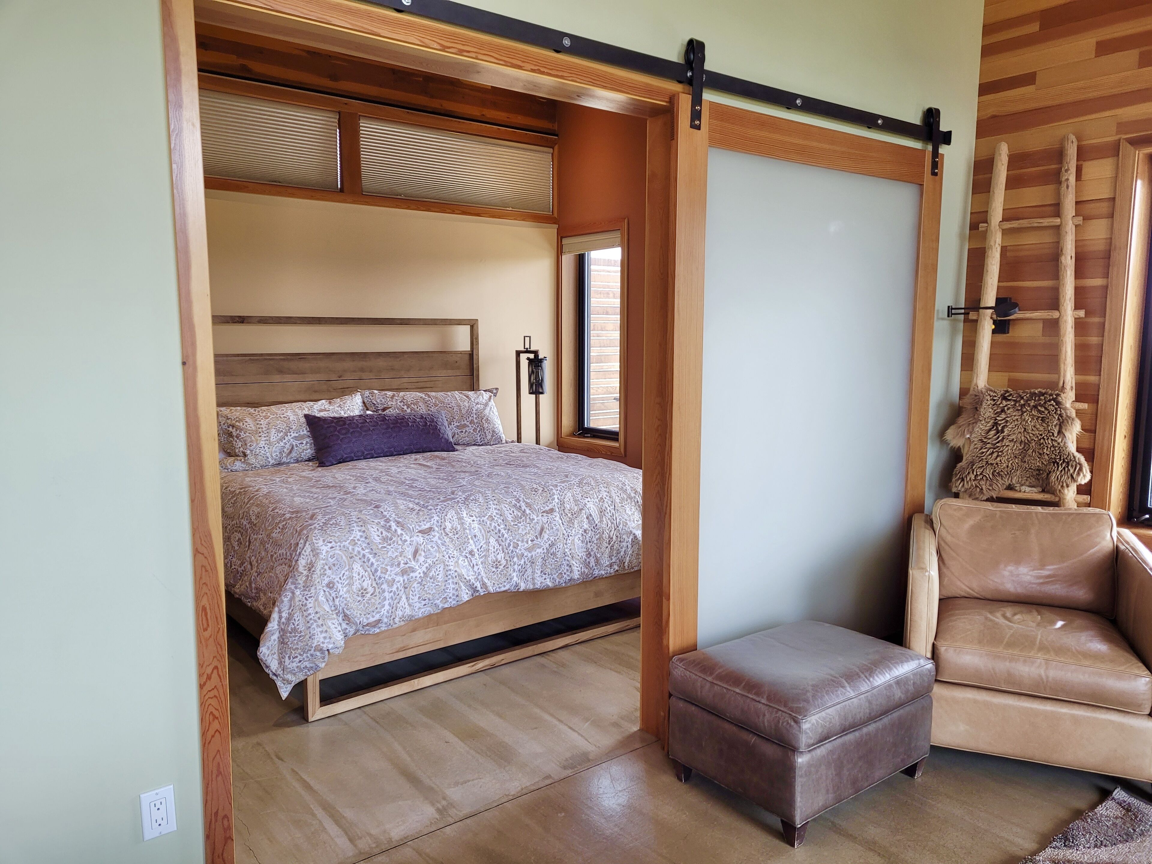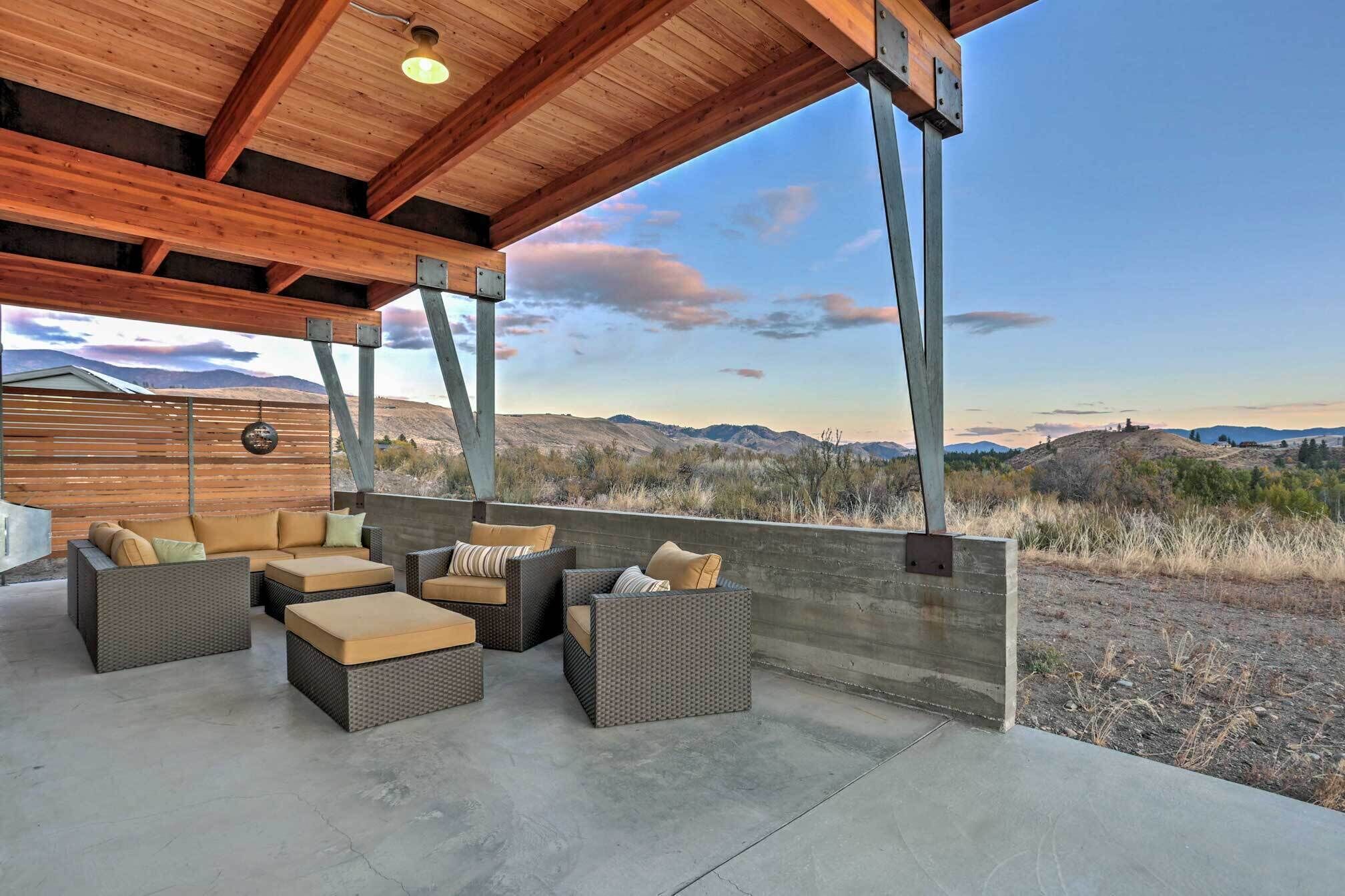 Rain's End-Breathtaking Views, Close to Winthrop! A gorgeous home(a legal, licensed nightly rental with a current Okanogan County health permit as required by law)with breathtaking views, a peaceful location, and upscale amenities, this Winthrop vacation rental is perfect for a romantic getaway. This home includes a main house with 1-bedroom/bathroom and a separate detached studio with a queen bed, as well as a bath/kitchenette. Both, feature picture windows, a fully equipped gourmet kitchen, and an adjacent studio space.Just half a mile from town, this home offers privacy and convenience to shops, restaurants, and outdoor attractions including Methow Trails, Lost River Winery, and Pearrygin Lake State Park! Vibrant sunsets and natural scenery combined with modern flair, outdoor activities, and a lively art scene make this Winthrop vacation home an ideal couple's destination.The home has principal views to the west and north. Sun bathes the interior all year (though there are shades for those summer afternoons). 360-Degree Views. Heated Floors. Open Concept Layout. The main house is one larger space with a master Queen bedroom with full bath. Just outside, on the west side, is a covered patio, with lounge furniture, Adirondack chairs, and gas grill. The kitchen is fully equipped, with dishes, flatware, glassware, there is a pour over style coffee maker and a burr grinder, ice maker, microwave and toaster.Just outside, 15 feet away, is the detached studio. Originally built as an artist's studio/office, it serves as a second living area with a queen bed, bathroom with shower, studio kitchenette and plenty of views. .GENERAL: WiFi, A/C mini split, central heat, washer/dryer, telescope, hair dryer, towels/linens, complimentary toiletries. Not suitable for children under 15 due to decor & sleeping accommodations. Covered parking for 1 car is available, with ample driveway parking.EXTREMELY IMPORTANT YEAR ROUND TRAVEL INFORMATION--READ BEFORE BOOKING A RESERVATION:1)It is the responsibility of the guest to have travel plans in place to travel either over the North Cascades via Highway 20 OR to travel over Steven's Pass through Leavenworth OR to travel I-90 over Snoqualmie to Blewett Pass through Wenatchee and then up the Columbia river to the Methow Valley. If one route is closed, it is the YOUR responsibility to make alternate plans for travel. NO REFUNDS will be given at any time of the year simply because an alternate route must be taken and add additional travel time. Highway 20 is closed in the winter and mountain passes can be closed anytime of the year because of wildfires, rockslides or other occurrences. Directions over all the routes will be sent to. you 3 days before your arrival. Make sure to check pass reports(and they can change while you are en route) and print out the directions before you leave. 2)Trail Access/Closure Information: If you are coming to hike, bike, or ski on a trail or system of trails which happen to be closed before or during your stay, NO REFUNDS WILL BE GIVEN because of this. Trail closures can occur anytime because of fire, rockslides, mud flows...and we have no control over this. There are many hiking, biking trails of various kinds in the Methow Valley. If access to the North Cascades is closed via Hwy 20 because of any reason, NO REFUNDS WILL BE GIVEN because of this. There beautiful hikes in and around our valley that we would be happy to recommend.