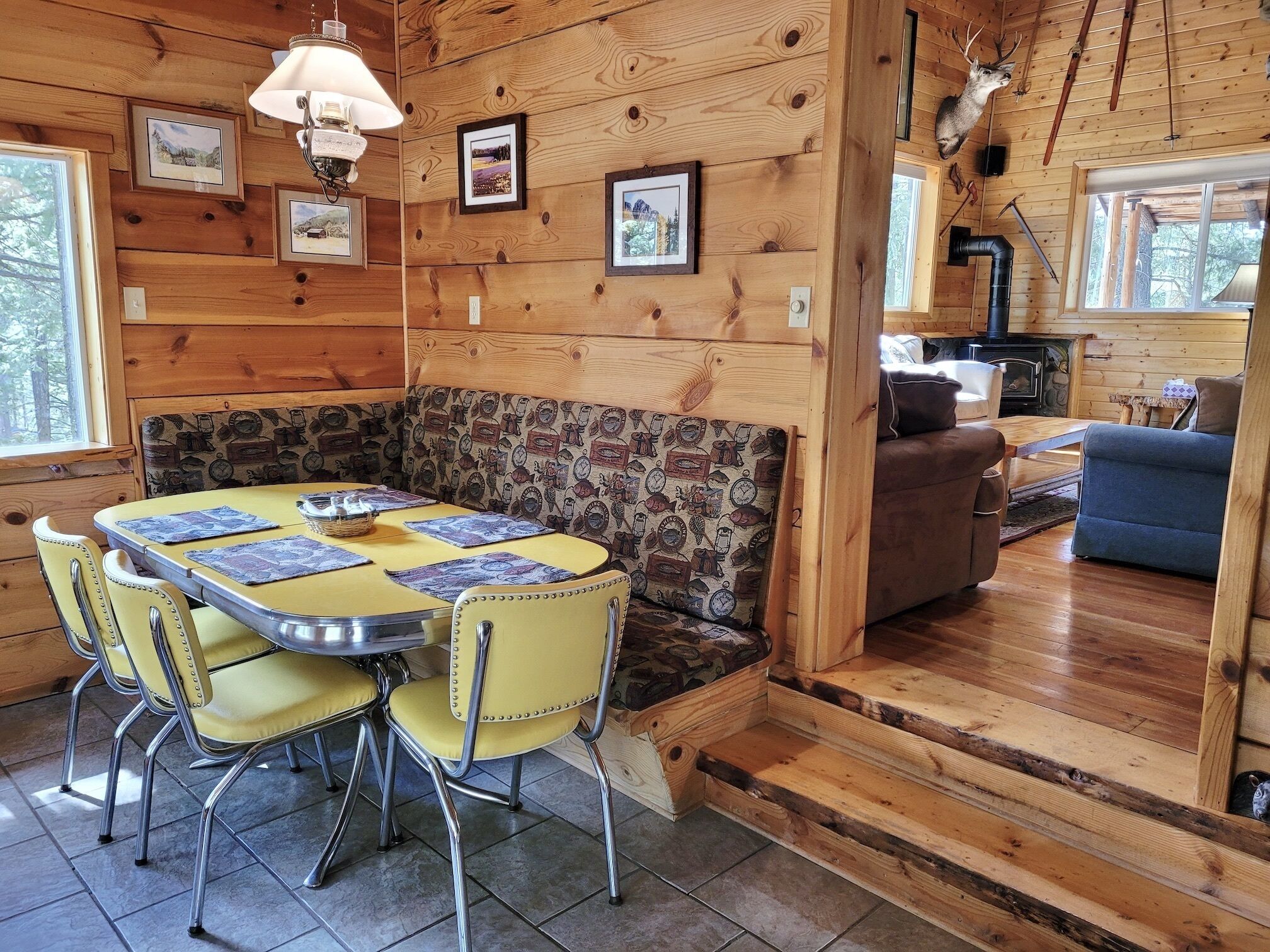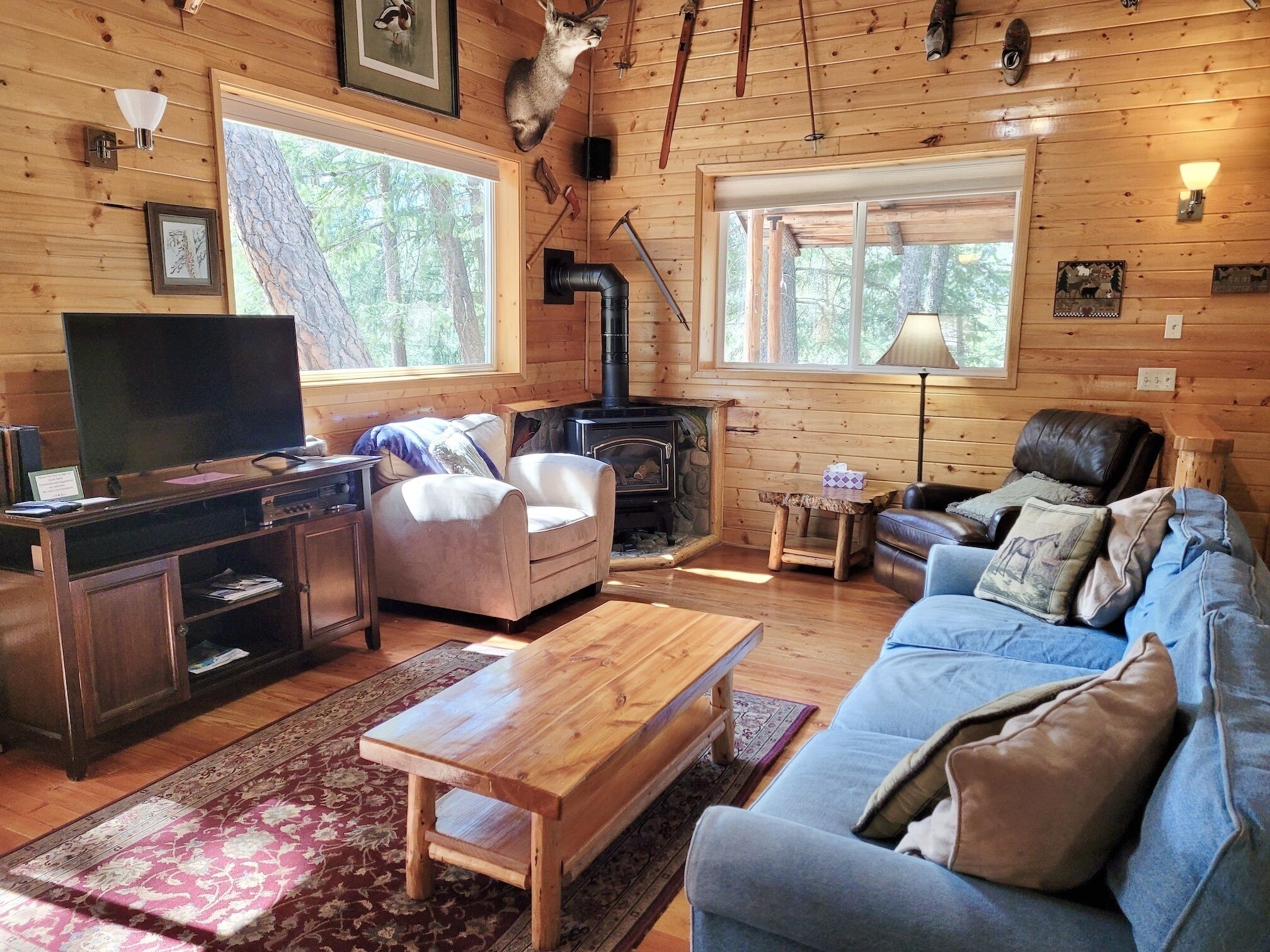 Fawn Creek Hideaway-Dog Friendly, Close to Mazama! Fawn Creek Hideaway(a dog friendly legal, licensed nightly rental with a current Okanogan County health permit as required by law)was built in the 1960's from logs and timber taken from the nearby area. It was one of the first structures in the Edelweiss area and served as a hunter's camp, complete with horse corral for trips into the back country. It was recently remodeled and now has a nicely finished interior.Fawn Creek Hideaway has a fully equipped kitchen w/dishwasher & microwave, a beautiful and newly remodeled enclosed sunny breakfast nook, and living room with gas fireplace. TV/VCR/DVD, CD player, wireless internet and a great entertainment deck with BBQ, and table for relaxing in this wooded setting. I has two queen beds and a full sleeper sofa.EXTREMELY IMPORTANT YEAR ROUND TRAVEL INFORMATION--READ BEFORE BOOKING A RESERVATION:1)It is the responsibility of the guest to have travel plans in place to travel either over the North Cascades via Highway 20 OR to travel over Steven's Pass through Leavenworth OR to travel I-90 over Snoqualmie to Blewett Pass through Wenatchee and then up the Columbia river to the Methow Valley. If one route is closed, it is the YOUR responsibility to make alternate plans for travel. NO REFUNDS will be given at any time of the year simply because an alternate route must be taken and add additional travel time. Highway 20 is closed in the winter and mountain passes can be closed anytime of the year because of wildfires, rockslides or other occurrences. Directions over all the routes will be sent to. you 3 days before your arrival. Make sure to check pass reports(and they can change while you are en route) and print out the directions before you leave. 2)Trail Access/Closure Information: If you are coming to hike, bike, or ski on a trail or system of trails which happen to be closed before or during your stay, NO REFUNDS WILL BE GIVEN because of this. Trail closures can occur anytime because of fire, rockslides, mud flows...and we have no control over this. There are many hiking, biking trails of various kinds in the Methow Valley. If access to the North Cascades is closed via Hwy 20 because of any reason, NO REFUNDS WILL BE GIVEN because of this. There beautiful hikes in and around our valley that we would be happy to recommend.**We have limited wifi due to our location in the valley. Therefore please read the following....INTERNET POLICY**We strive to provide the best internet service we can get here in the very rural Methow Valley. Internet speeds vary throughout the valley and outages or tech issues can occur that we have no control over, and for these reasons NO REFUNDS are given if the internet is problematic. We also do not guarantee that the internet will meet your work/school needs. Should you have an issue with internet service, please send us a message through VRBO describing the problem. We will then contact you to troubleshoot. If the issue is not resolved, we will then contact the internet provider, and/or homeowner. Please note... our valley is very rural and getting service personnel to fix things in a timely manner can be a challenge. We rent lodging, not office space.IMPORTANT WINTER INFORMATION POLICY :**Should you travel to the Methow during the winter months it is important to understand that you must be prepared for winter driving(keep chains, shovel...in the car) and all the inconveniences it causes you and the community you are visiting. The weather can be extreme with large snowfalls, unexpected technical issues, frozen pipes, impassable roads/driveways). If it snows while here you will have to wait for plow service just like every other person in the valley. There are a limited number of plow companies and Methow Reservations nor the owners of the house are in control of the plow company schedules. They have many different contracts and many miles of roads, driveways...to plow. If a plow person or a snow shoveler shows up to clear any area around the house, please do not argue with them or turn them away. Move your vehicles if asked. Your cooperation and patience are required especially after any significant snow accumulation. Should you get stuck you can call Classic Towing in Twisp, WA**WEATHER CONDITIONS**We are not responsible for weather conditions that impact your travel. If you will be arriving during the winter, please be sure you have proper equipment for driving in the snow, and carry tire chains for driving over the passes. Our local roads are always kept open and in good condition for winter travel. There are no refunds for road closures; however, if both Stevens and Snoqualmie mountain passes are closed for more than eight hours and the closures prohibit you from reaching the property, you may reschedule your stay for an arrival within three months of the pass closures. Please note that the North Cascades Pass is always closed during winter. It is the guest's responsibility to check to see on mountain passes before and during travel any time of the year. If one is open an the other closed, the guest is to take the alternate route. No refunds will be given alternative routes can be taken.**Propane Fireplace--The propane stove is a supplemental heating source not the main one. If there should be tech issues or the propane fireplace during your stay, please send a message through vrbo. Methow Reservations and the owner will try to troubleshoot and remedy the problem. If the problem requires a part or there is an issue with the propane company that may take longer that your stay, NO REFUNDS will be given. The guest will use the main electric heating source at any times that the propane stove may be out of operation.