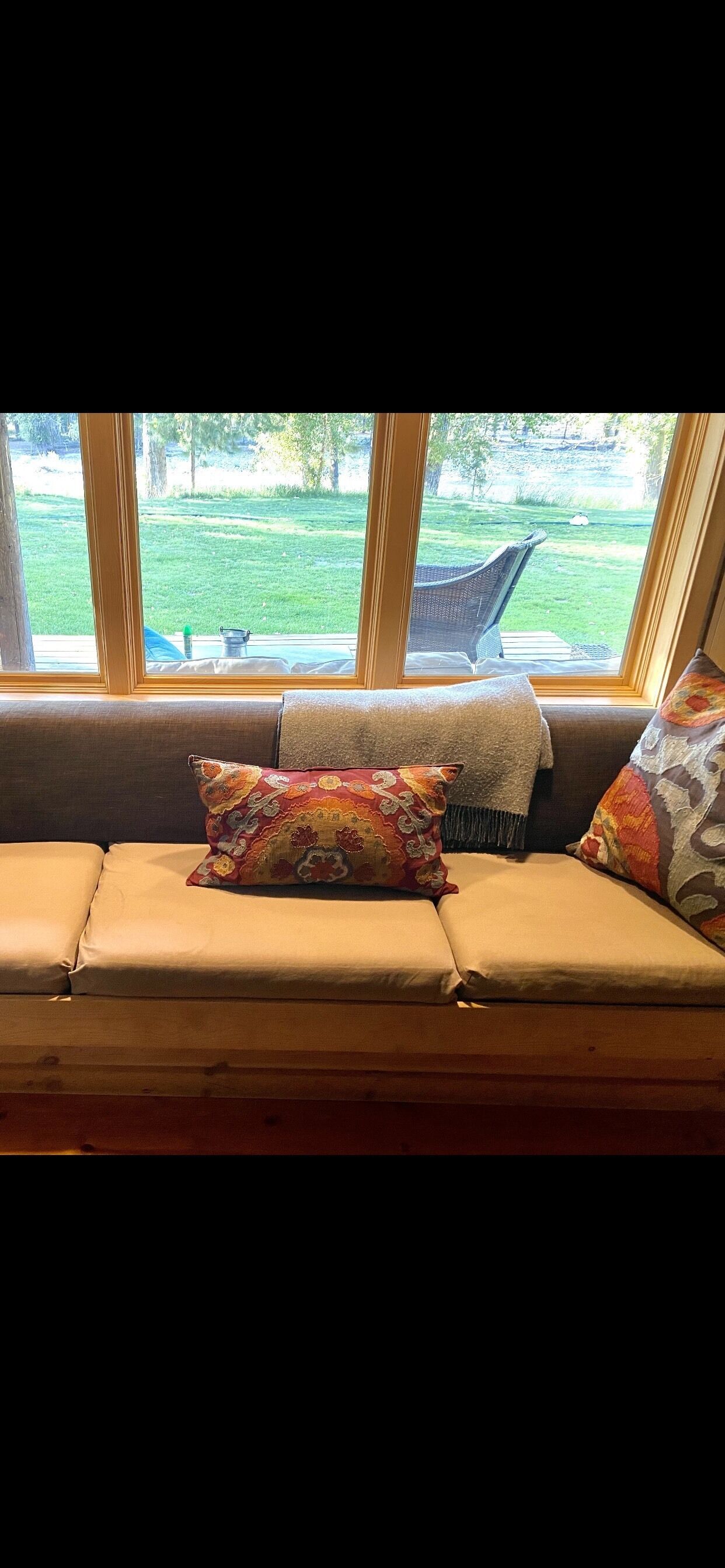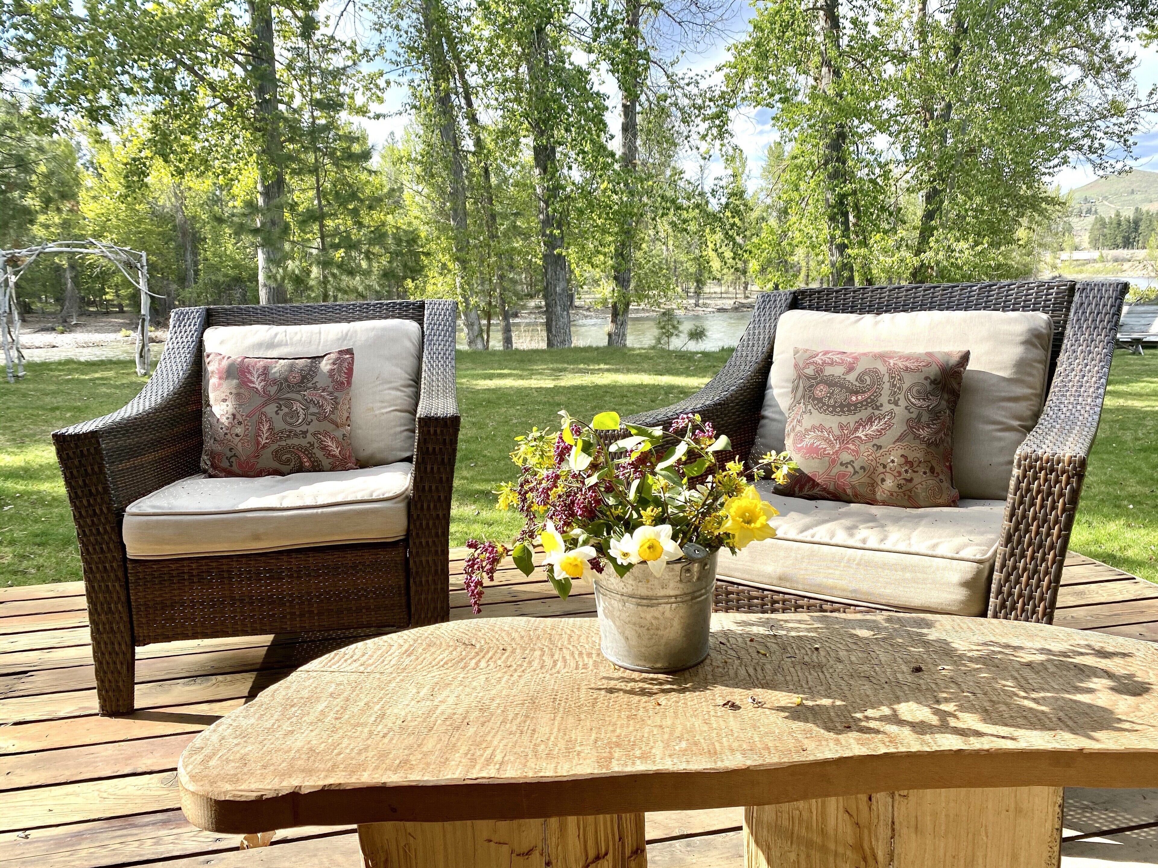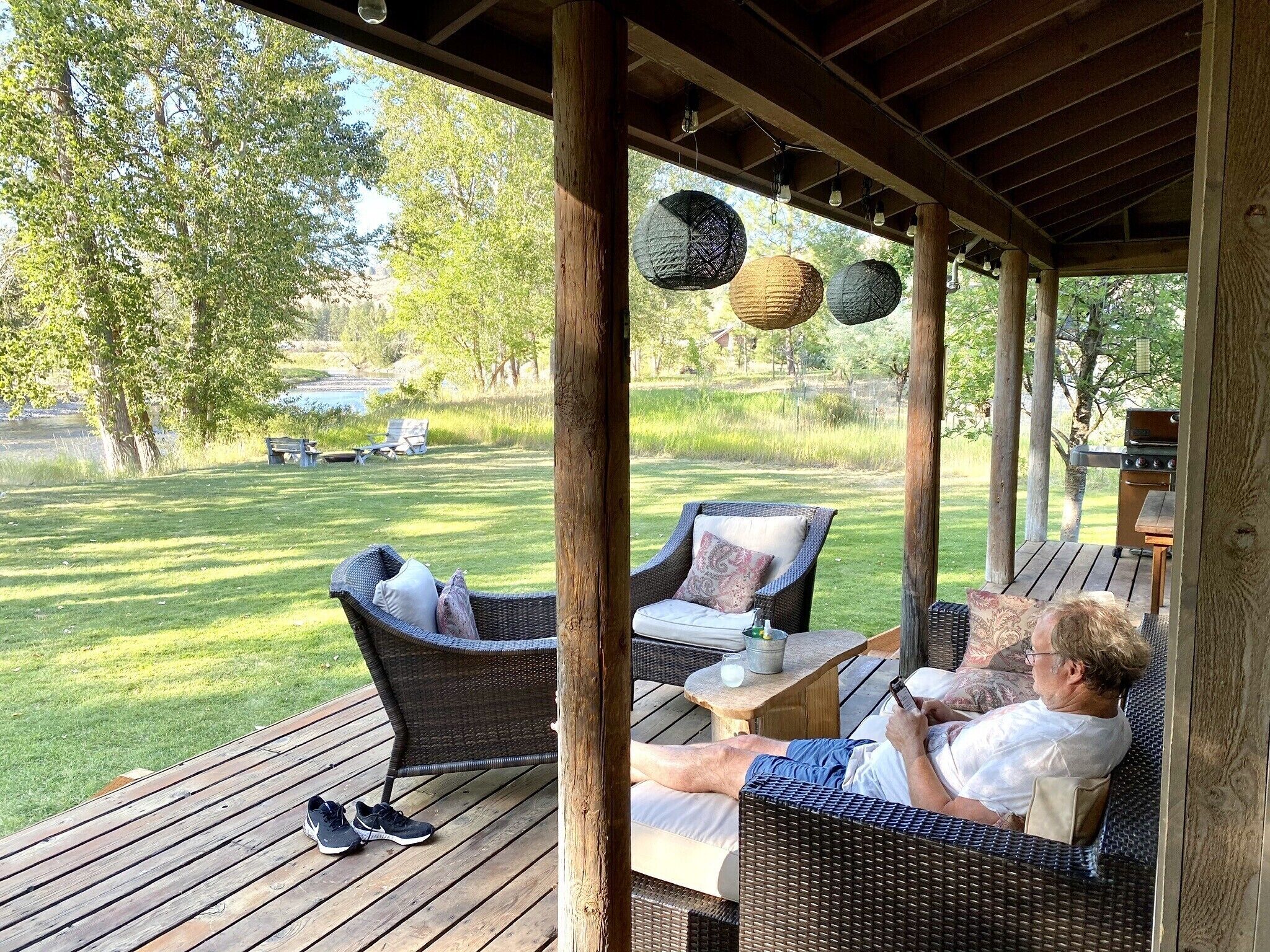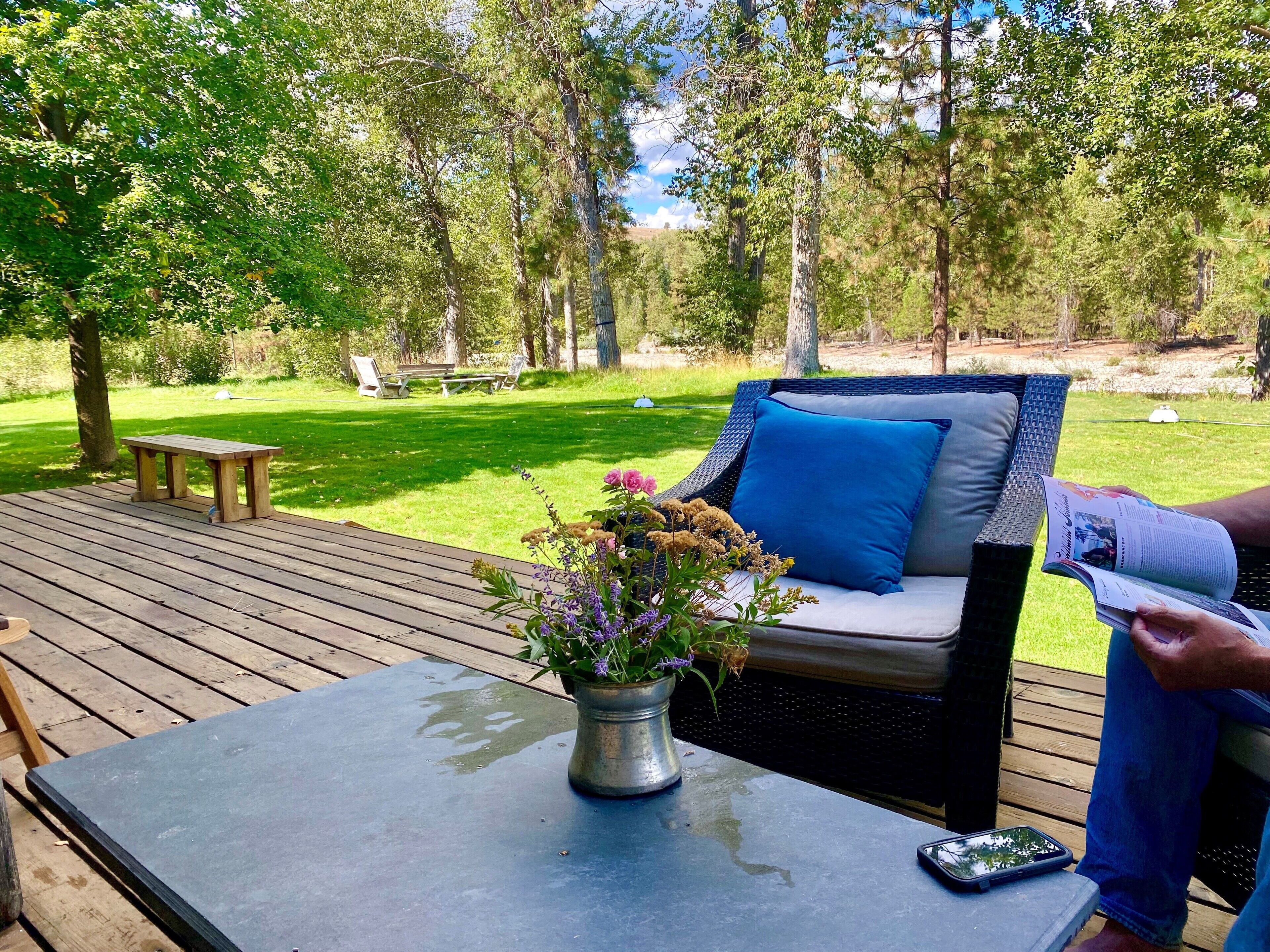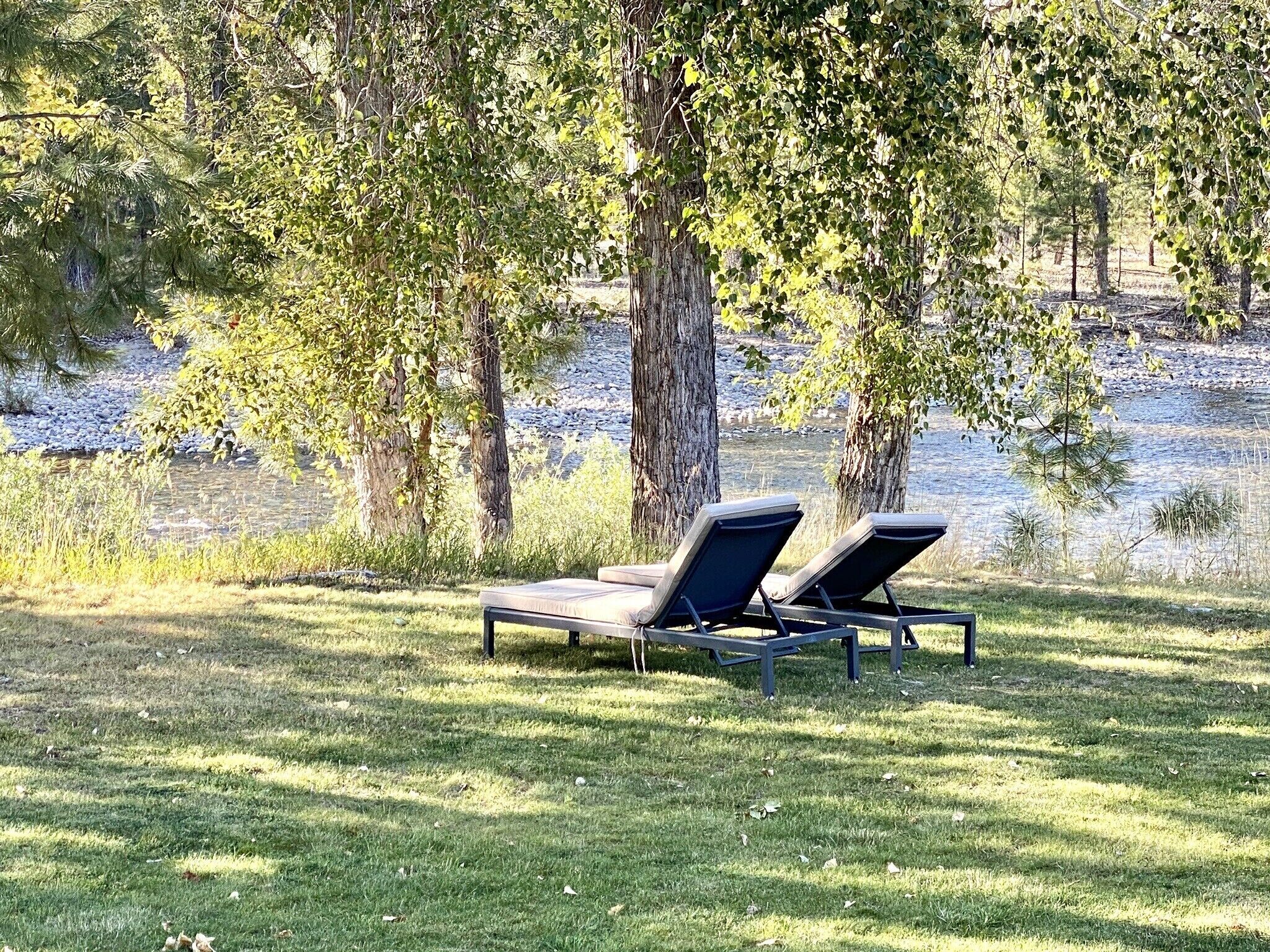 -Lewisia Lodge River Retreat Lewisia Lodge is a beautiful, cozy house (2700 sq. ft.) designed by a local architect situated on 10 acres of one of the most beautiful pieces of Methow Valley Riverfront. The property is all riverfront....and this section of the river includes one of the best swimming and fishing holes anywhere in the area. (It's featured in the book, "Best Swimming Holes In Washington State".) The house is perfect for families, small intimate gatherings of friends, or large groups. We have also hosted several weddings on the property. The house sleeps 10 (if you count the outdoor sleeping porches), (which by the way, are fabulous), and the open layout is perfect for a lot of people to relax comfortably. The upstairs loft sleeps 8 people comfortably. It is separated into 2 large semi-private sections. In one section, there is one queen bed and 2 twins, and in the other, there are 2 queens and 1 twin. On the property, overlooking the swimming and fishing hole, there is a gazebo (with a queen bed) and deck built right out over the river for lounging, entertaining and cocktails. Just below the gazebo is a perfect place to tube the river. We have some inner tubes in the barn. The house is surrounded on all sides by decks and in front of the house, right on the river, is a huge, beautifully mowed lawn for playing games like volleyball, croquet and soccer. (The house is fully stocked with games for the outdoors and board games and movies for cozy winter nights.) It is filled with cozy spots (2 big window seats) to cozy up on, and the focal point of the living room is a huge, beautiful stone fireplace. The house is fully stocked with wood and kindling. In the winter, the area is covered in ample snow and you can ski or snowshoe right out your front door. (We have 6 pairs of snowshoes for your use.) This is one of the most charming places you will ever stay. It is designed for total peace and serenity, and the views from the house are spectacular.Please, if you are looking for a place to party hard and get crazy, please do not come here. This is a home for peace and serenity. We prefer 6 people max., but will consider more upon request.Keywords: Vacation home Riverfront rental Lewisia Retreat