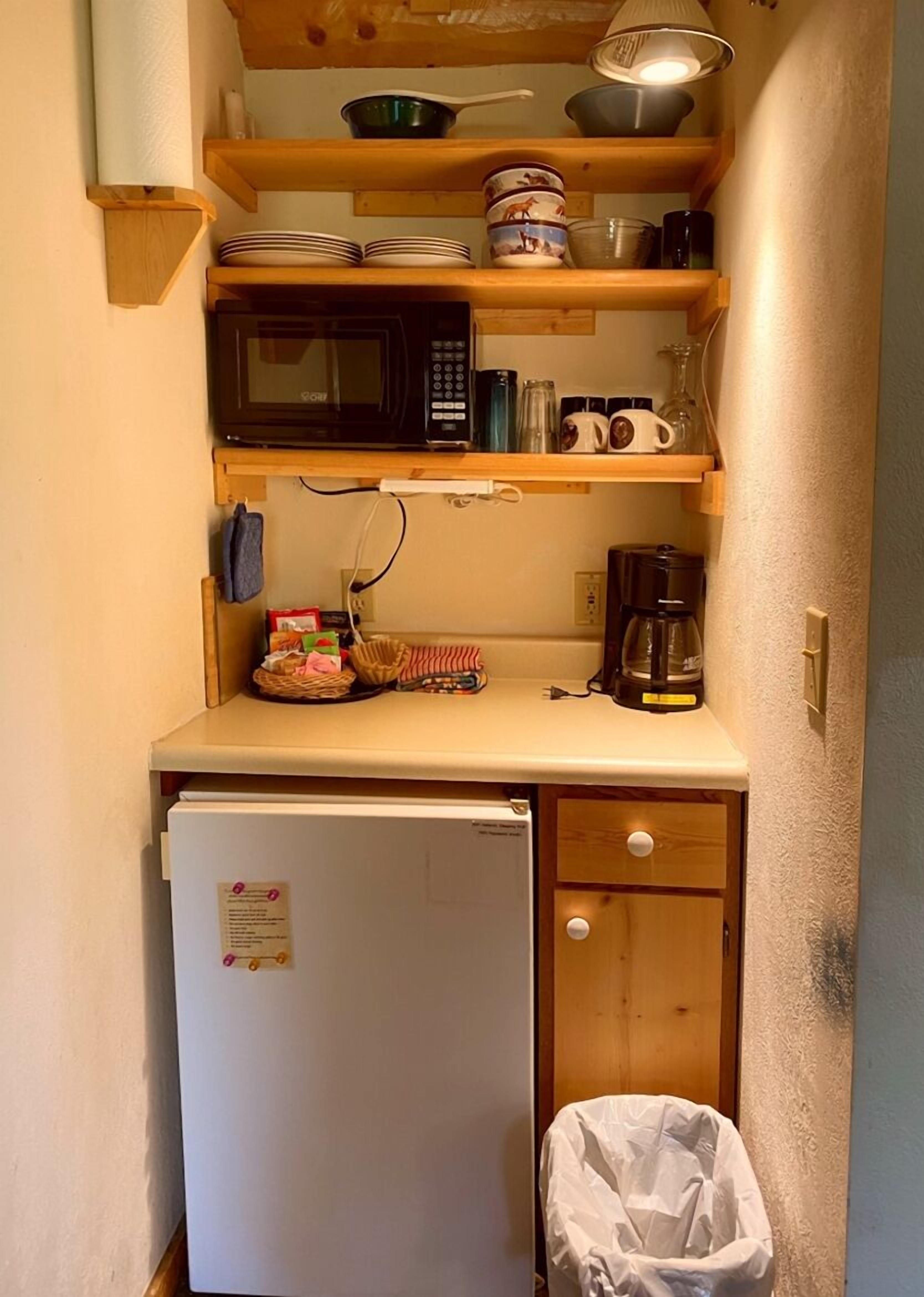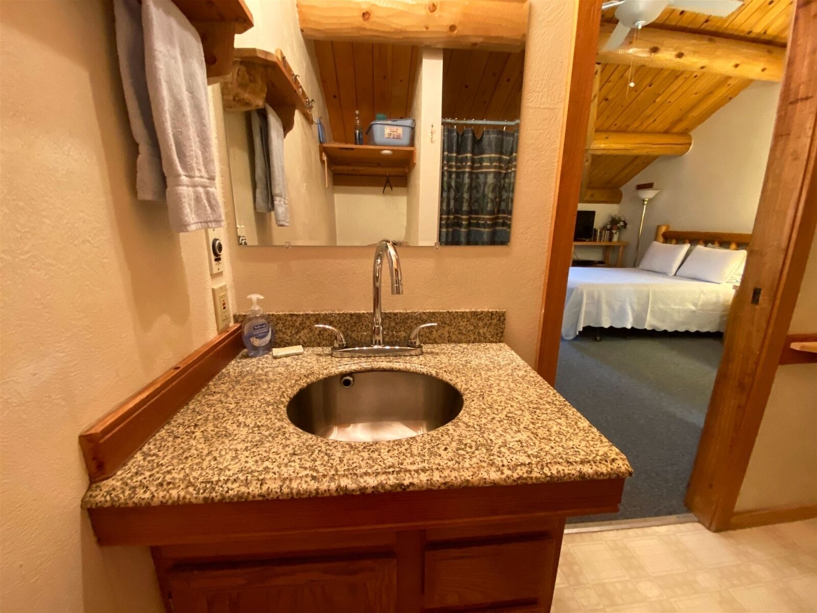 Sleeping Wolf Studio w/ ski trail & river access, pool/hot tub Located at Wolfridge Resort, Sleeping Wolf Studio is one of the closest studios to the ski trail and has views up the Methow Valley from the balcony. The log framed ceiling and vaulted windows provide lots of light all year round. The balcony overlooks the Wolfridge property where you can sit and watch the stars with hot cocoa or sip your morning coffee. The room contains a queen bed and a futon couch that folds out to a full-size bed. The bathroom has a sink and shower. The kitchenette has a sink, mini-fridge, microwave and a coffee pot. You have a private entrance at the top of the stairs.The cabin is on 40 acres of open space and the Methow River is a short walk away. Bike through wildflowers in the spring, jump in the pool on hot summer days after a hike. In the winter, you can strap on your xc skis at the front door and ski North America's largest cross country ski area with over 220 km of perfectly groomed ski trails. Warm yourself in the hot tub in the evenings and curl up on the couch with a cup of cocoa. The open space also has a play structure, horseshoes, and a sand volleyball/badminton court.Access to the pool and hot tub (seasonal use). Spa towels, complimentary toiletries and hair dryer are provided.Recently upgraded wifi for remote workPrivate entranceQueen bed and futon couchBathroom with showerKitchenette with sink, microwave, mini-fridge, coffee pot and dishesBalcony with views of the Methow Valley and the ski trails