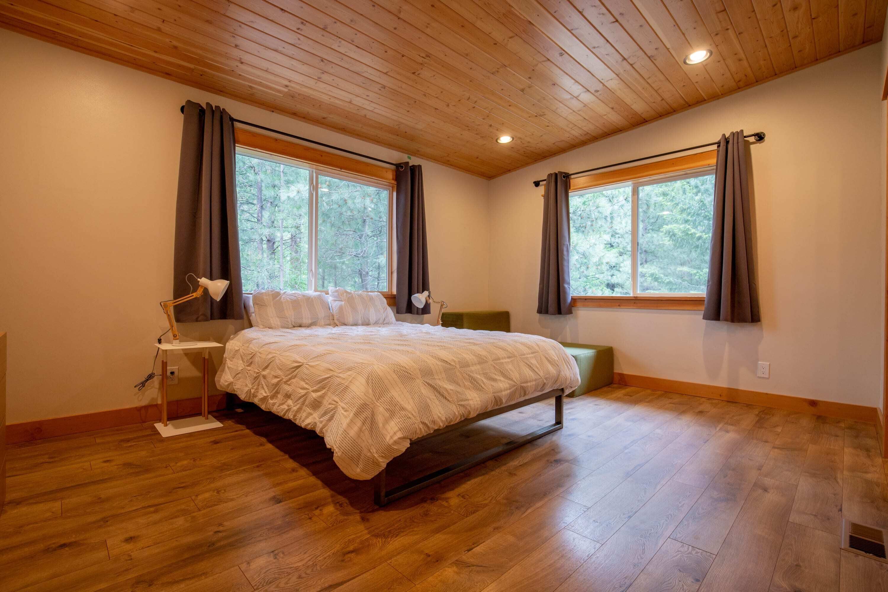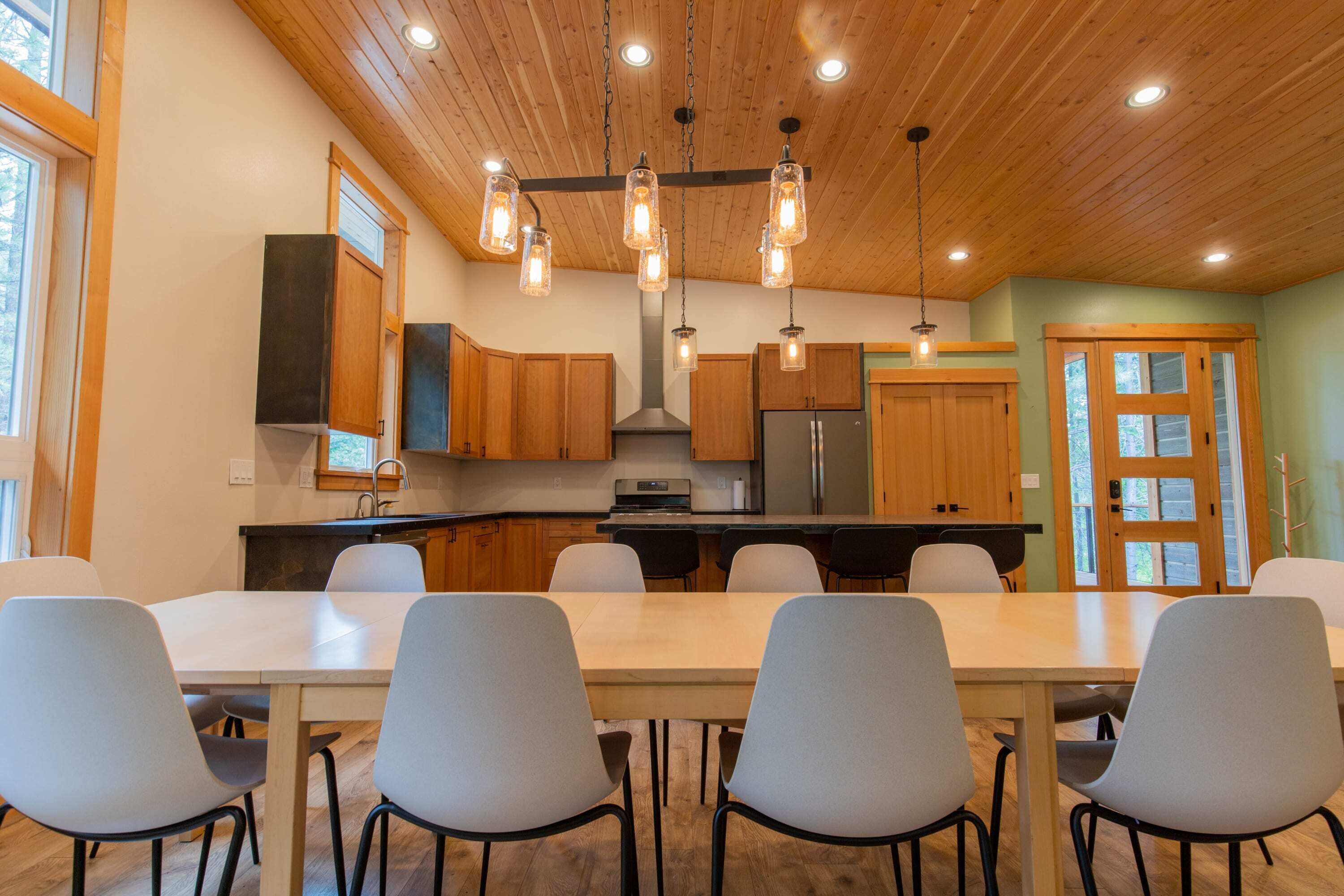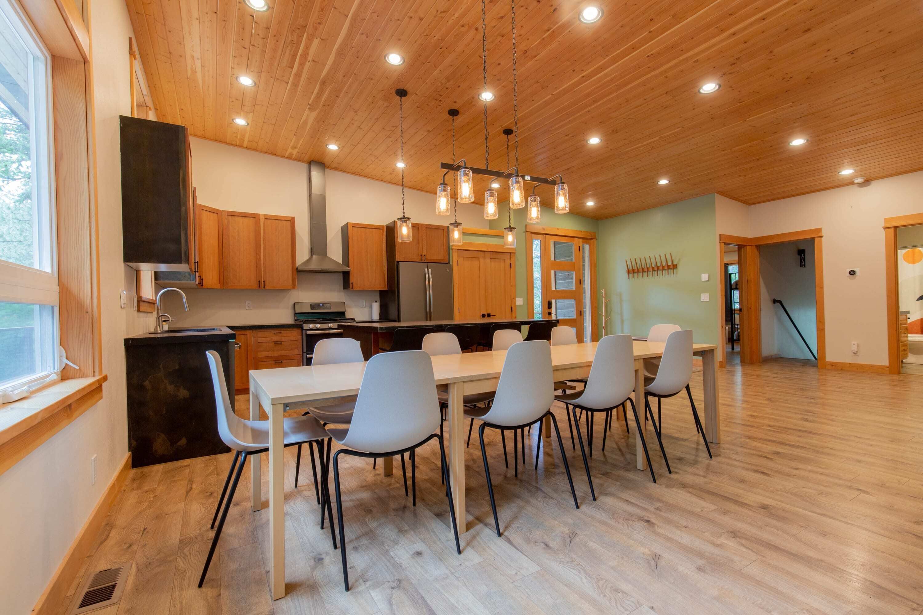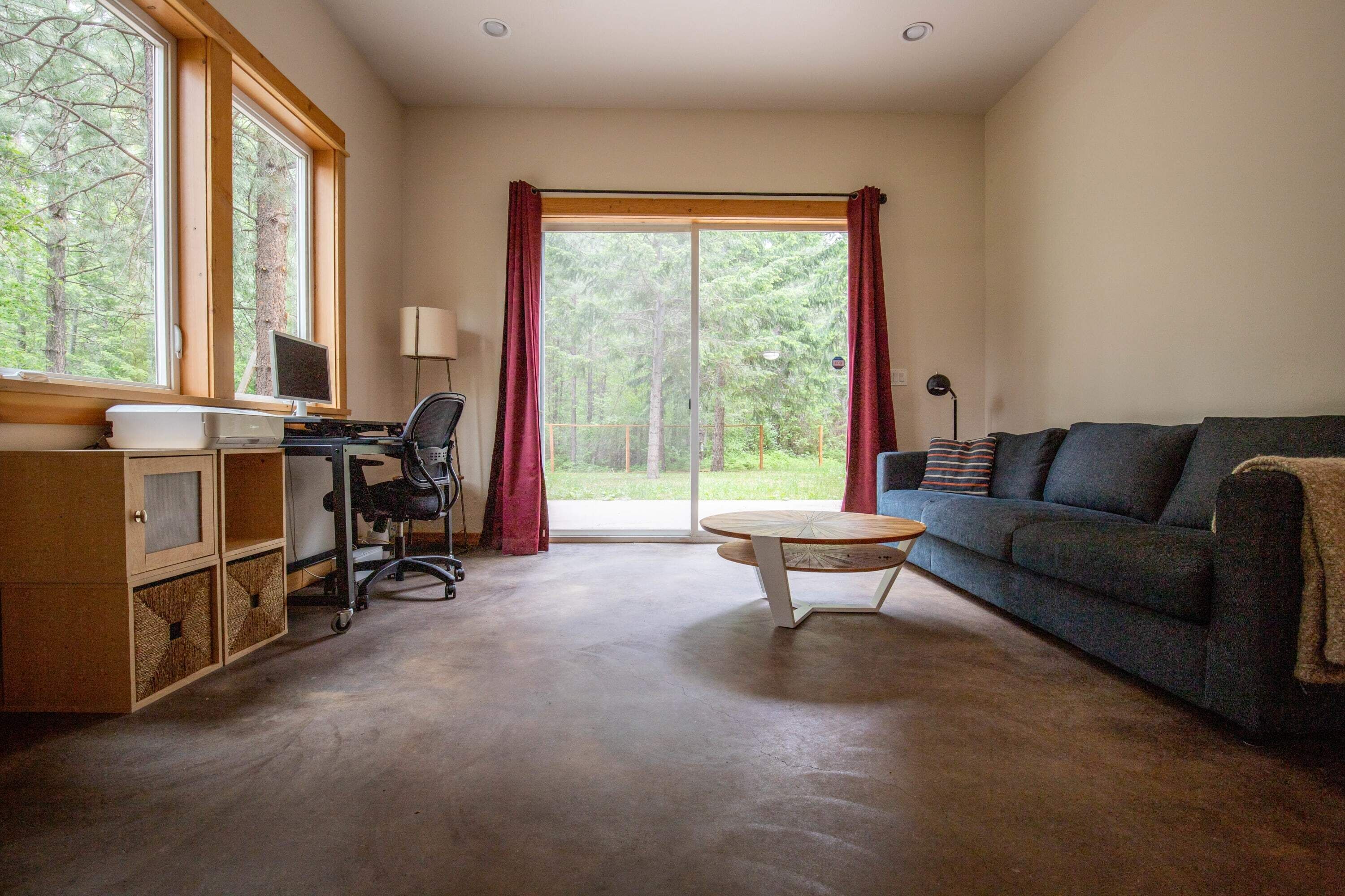 Treehouse - modern cabin near Mazama Summary:The Mazama Treehouse is a modern home located within walking distance to the Methow Valley Community Trail. The acres of natural common area lead you to the community river access. Enjoy the convenient location as a launching point for your hiking, biking and skiing adventures and return to your spacious home nestled within towering Douglas fir and Ponderosa pine.The Space:The Treehouse comfortably sleeps eight guests, however there is room for up to ten. The layout and amenities make it a wonderful retreat for families! The master bedroom/bath are located on the 2nd floor, as is the bunkroom, which has two twin bunk beds. There is an additional bedroom, with queen bed, located on the ground floor. The spacious upstairs living area includes a well-stocked kitchen and living space. The additional flex space on the ground floor features a pullout couch and desk. The house is equipped with Starlink, providing high-speed broadband internet access. There is a whole house water filtration system, including UV filtration and softener, ensuring the purest drinking water.Please note:* There is no television at the house* Pets visitors are unfortunately not allowed, however the owners do have a dog that joins them on their stays. If you are highly allergic to pet hair please do not book this cabin.Other Things to Note:EXTRA GUESTS AND MAXIMUM OCCUPANCYEIGHT guests are included in the nightly rental rate, additional guests are charged at $20 per person per night. Maximum occupancy is 10.PRICINGPlease note that the nightly rental rate varies with seasons and weekdays, please enter your proposed dates for an accurate quote (some listings may show an 'average price per night' when in fact this is our minimum rate, we are working to rectify this). Weekly discount of 5% and monthly discount of 15% is automatically applied and calculated in any quotes for this duration.The Inn Pool - guests of our cabin may use The Inn at Mazama outdoor pool (open from Memorial Day to Labor Day) and tennis/pickleball court located at 15 Country Road in Mazama. The cost to use the pool is $10/guest/day and you should check in at the front desk before heading to the pool. The Inn also has a co-working space and private offices available to rent by the day in case you need space to work during your stay.