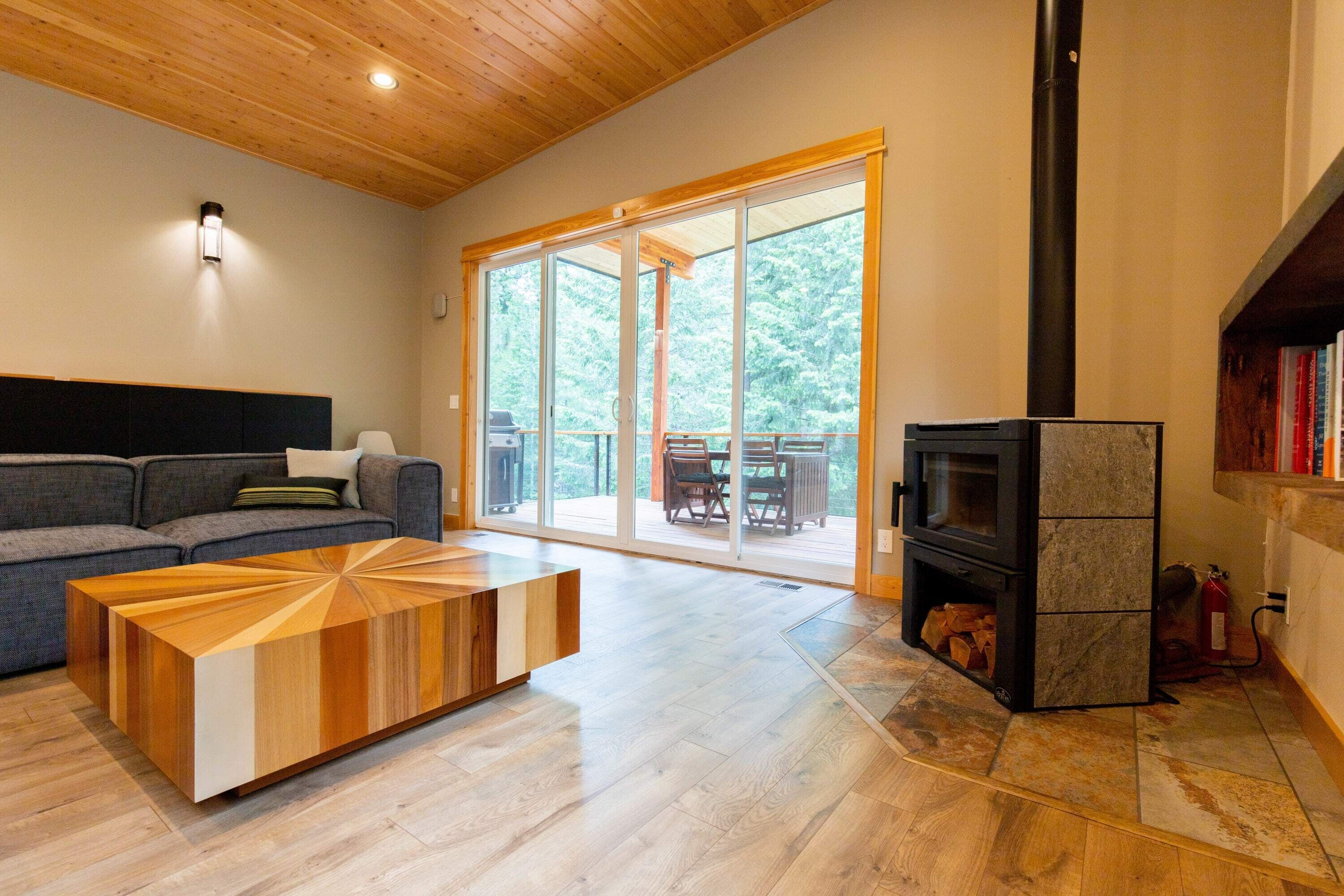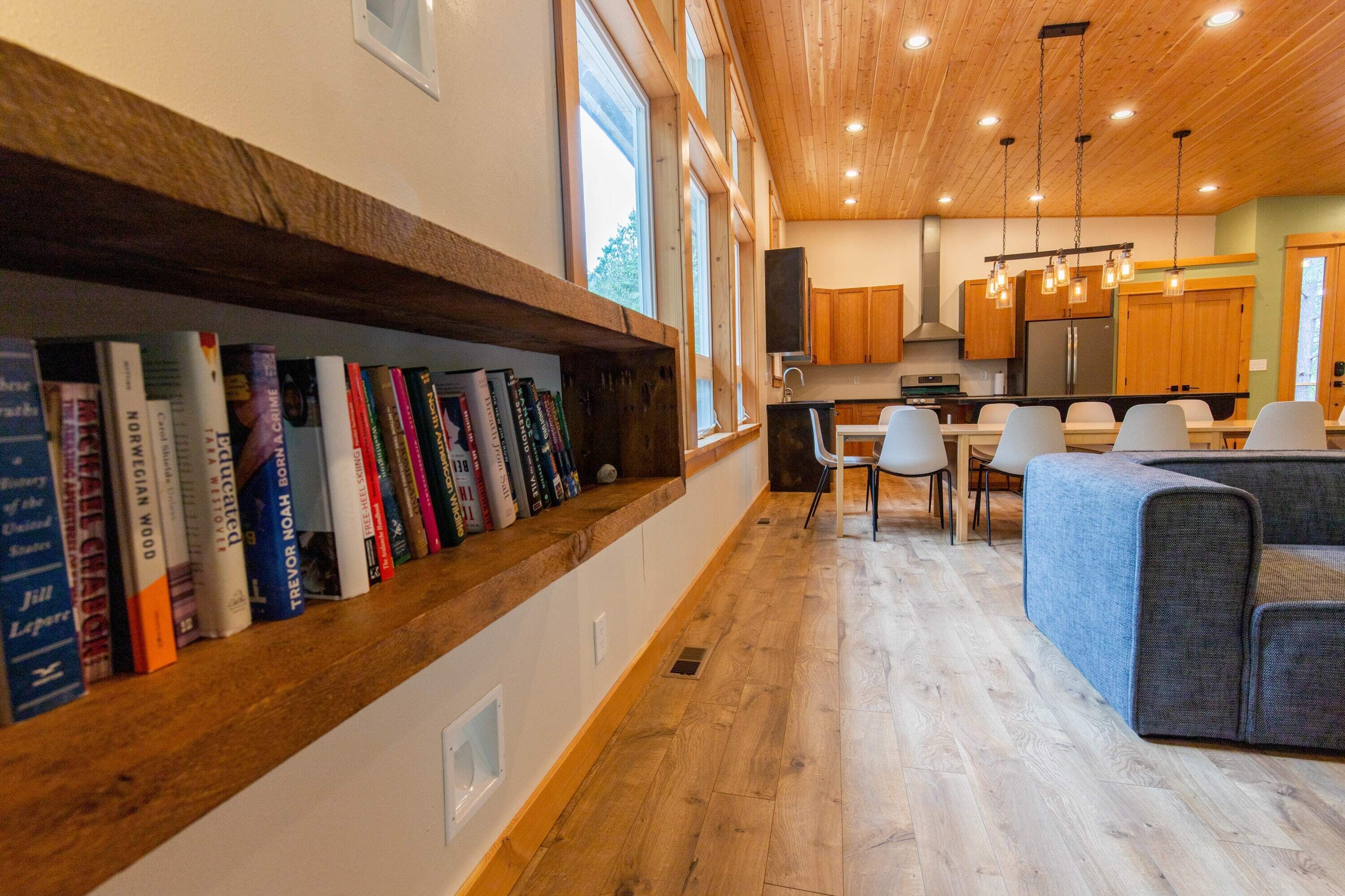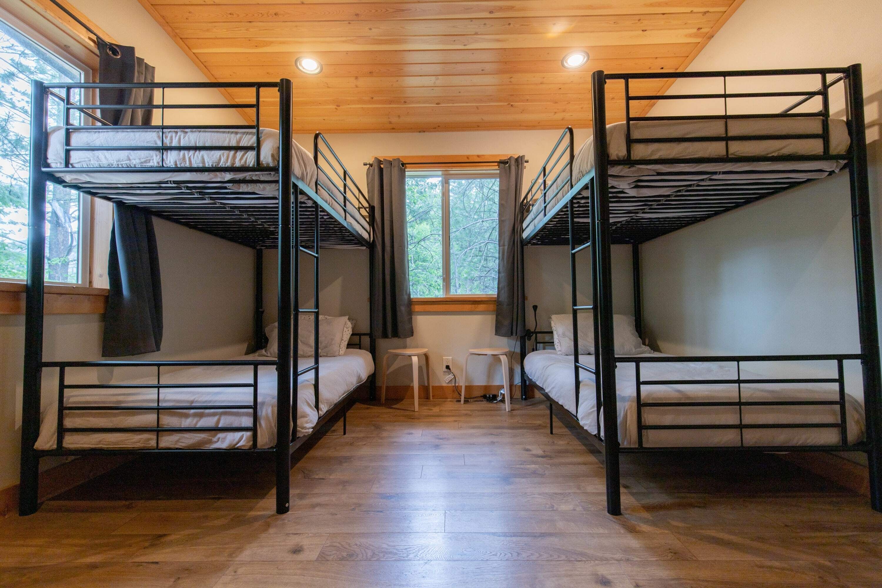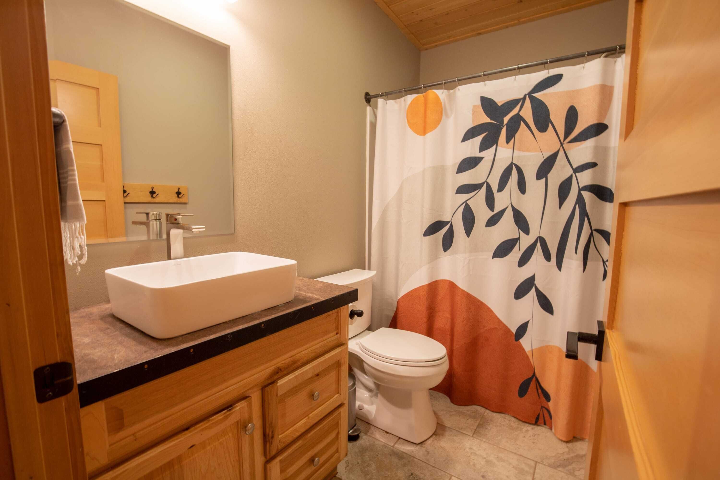 Treehouse - modern cabin near Mazama Summary:The Mazama Treehouse is a modern home located within walking distance to the Methow Valley Community Trail. The acres of natural common area lead you to the community river access. Enjoy the convenient location as a launching point for your hiking, biking and skiing adventures and return to your spacious home nestled within towering Douglas fir and Ponderosa pine.The Space:The Treehouse comfortably sleeps eight guests, however there is room for up to ten. The layout and amenities make it a wonderful retreat for families! The master bedroom/bath are located on the 2nd floor, as is the bunkroom, which has two twin bunk beds. There is an additional bedroom, with queen bed, located on the ground floor. The spacious upstairs living area includes a well-stocked kitchen and living space. The additional flex space on the ground floor features a pullout couch and desk. The house is equipped with Starlink, providing high-speed broadband internet access. There is a whole house water filtration system, including UV filtration and softener, ensuring the purest drinking water.Please note:* There is no television at the house* Pets visitors are unfortunately not allowed, however the owners do have a dog that joins them on their stays. If you are highly allergic to pet hair please do not book this cabin.Other Things to Note:EXTRA GUESTS AND MAXIMUM OCCUPANCYEIGHT guests are included in the nightly rental rate, additional guests are charged at $20 per person per night. Maximum occupancy is 10.PRICINGPlease note that the nightly rental rate varies with seasons and weekdays, please enter your proposed dates for an accurate quote (some listings may show an 'average price per night' when in fact this is our minimum rate, we are working to rectify this). Weekly discount of 5% and monthly discount of 15% is automatically applied and calculated in any quotes for this duration.The Inn Pool - guests of our cabin may use The Inn at Mazama outdoor pool (open from Memorial Day to Labor Day) and tennis/pickleball court located at 15 Country Road in Mazama. The cost to use the pool is $10/guest/day and you should check in at the front desk before heading to the pool. The Inn also has a co-working space and private offices available to rent by the day in case you need space to work during your stay.