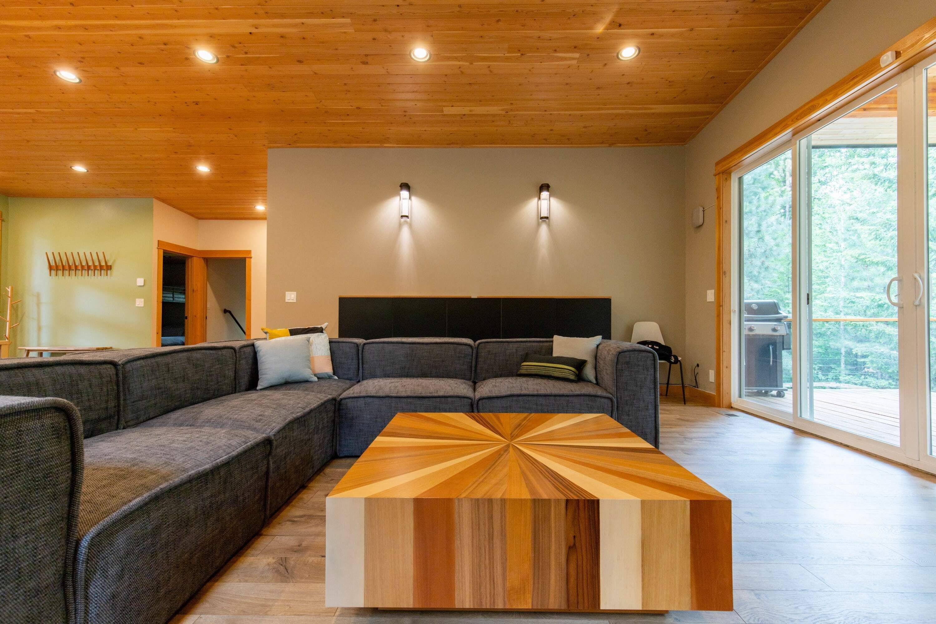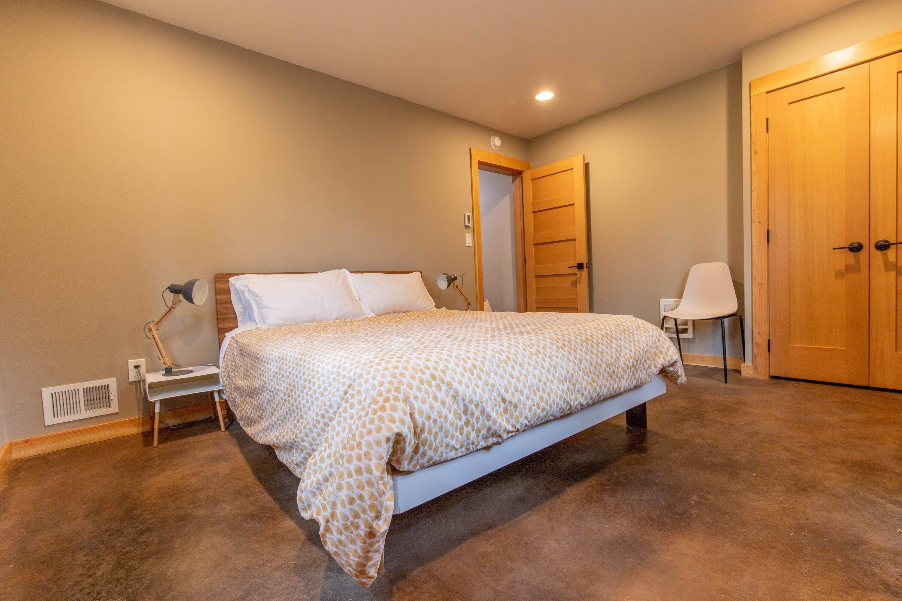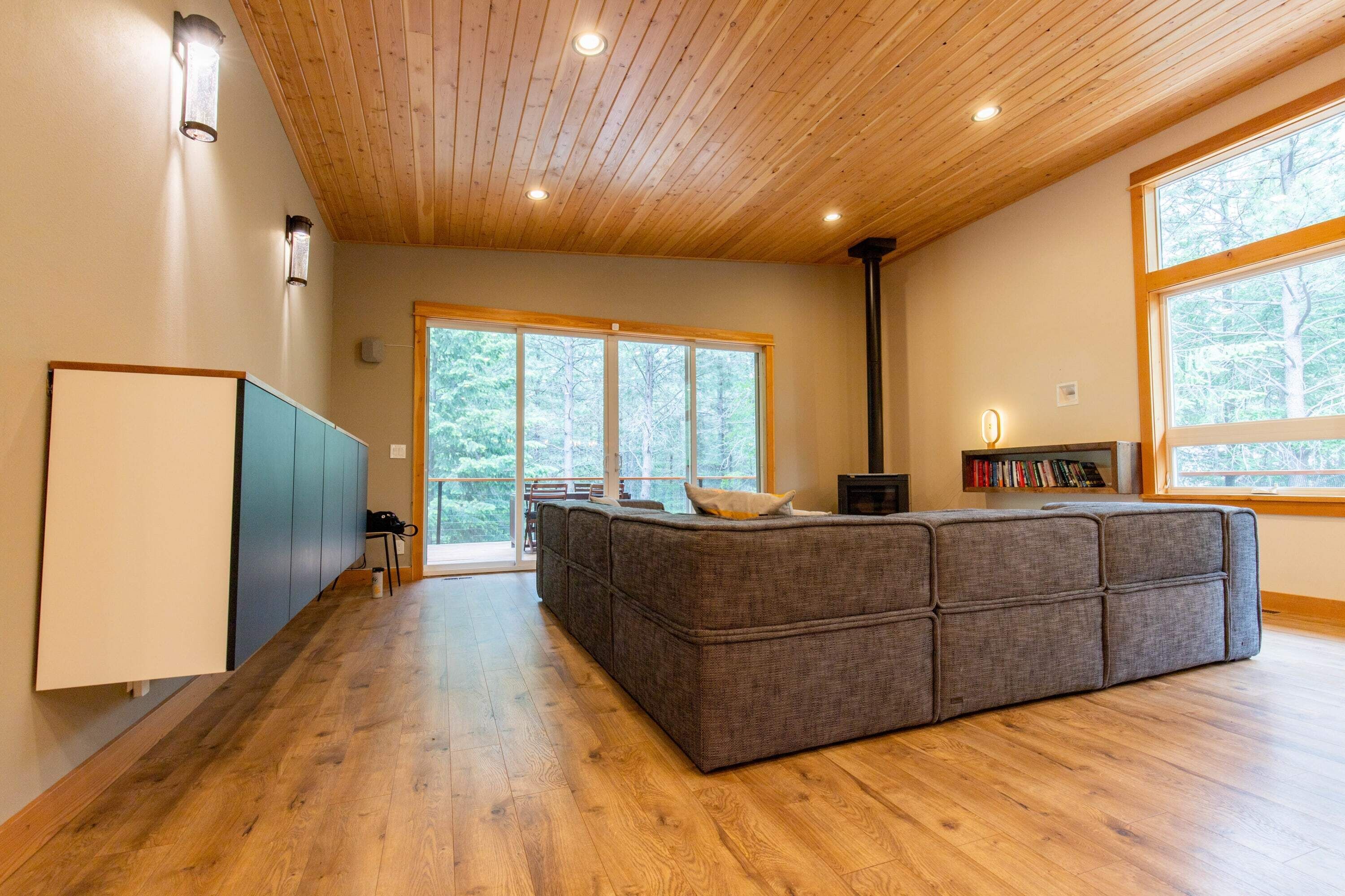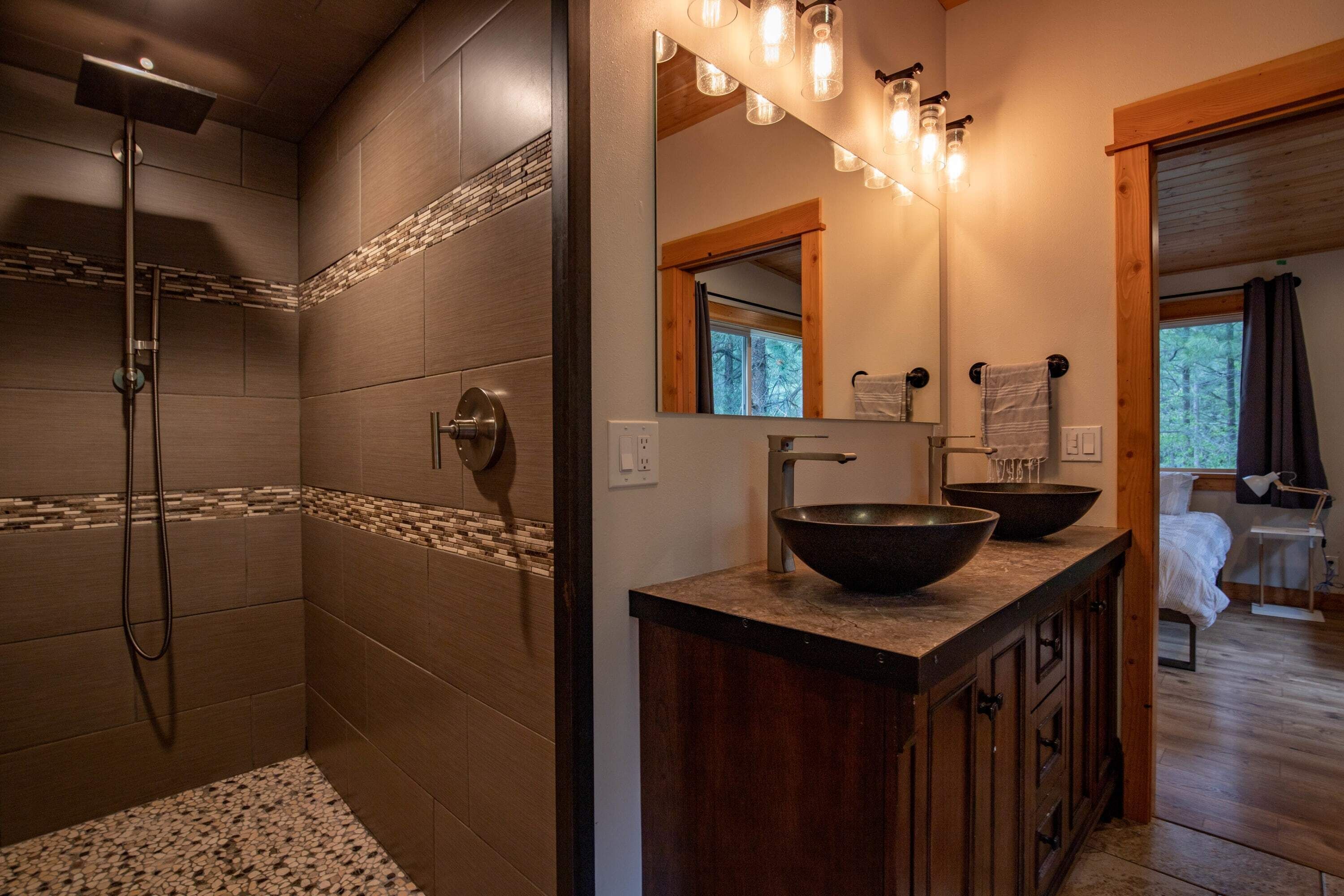 Treehouse - modern cabin near Mazama Summary:The Mazama Treehouse is a modern home located within walking distance to the Methow Valley Community Trail. The acres of natural common area lead you to the community river access. Enjoy the convenient location as a launching point for your hiking, biking and skiing adventures and return to your spacious home nestled within towering Douglas fir and Ponderosa pine.The Space:The Treehouse comfortably sleeps eight guests, however there is room for up to ten. The layout and amenities make it a wonderful retreat for families! The master bedroom/bath are located on the 2nd floor, as is the bunkroom, which has two twin bunk beds. There is an additional bedroom, with queen bed, located on the ground floor. The spacious upstairs living area includes a well-stocked kitchen and living space. The additional flex space on the ground floor features a pullout couch and desk. The house is equipped with Starlink, providing high-speed broadband internet access. There is a whole house water filtration system, including UV filtration and softener, ensuring the purest drinking water.Please note:* There is no television at the house* Pets visitors are unfortunately not allowed, however the owners do have a dog that joins them on their stays. If you are highly allergic to pet hair please do not book this cabin.Other Things to Note:EXTRA GUESTS AND MAXIMUM OCCUPANCYEIGHT guests are included in the nightly rental rate, additional guests are charged at $20 per person per night. Maximum occupancy is 10.PRICINGPlease note that the nightly rental rate varies with seasons and weekdays, please enter your proposed dates for an accurate quote (some listings may show an 'average price per night' when in fact this is our minimum rate, we are working to rectify this). Weekly discount of 5% and monthly discount of 15% is automatically applied and calculated in any quotes for this duration.The Inn Pool - guests of our cabin may use The Inn at Mazama outdoor pool (open from Memorial Day to Labor Day) and tennis/pickleball court located at 15 Country Road in Mazama. The cost to use the pool is $10/guest/day and you should check in at the front desk before heading to the pool. The Inn also has a co-working space and private offices available to rent by the day in case you need space to work during your stay.