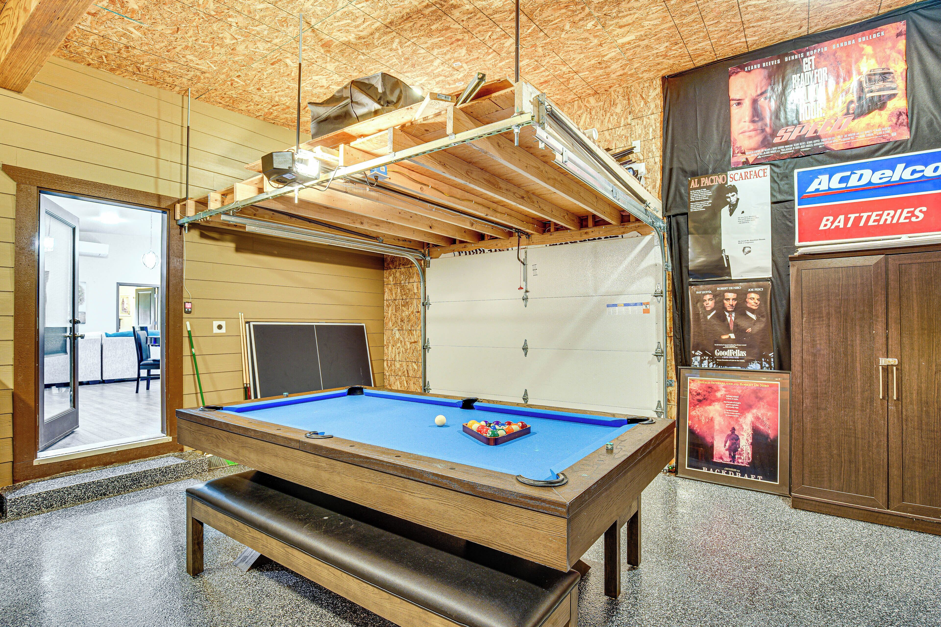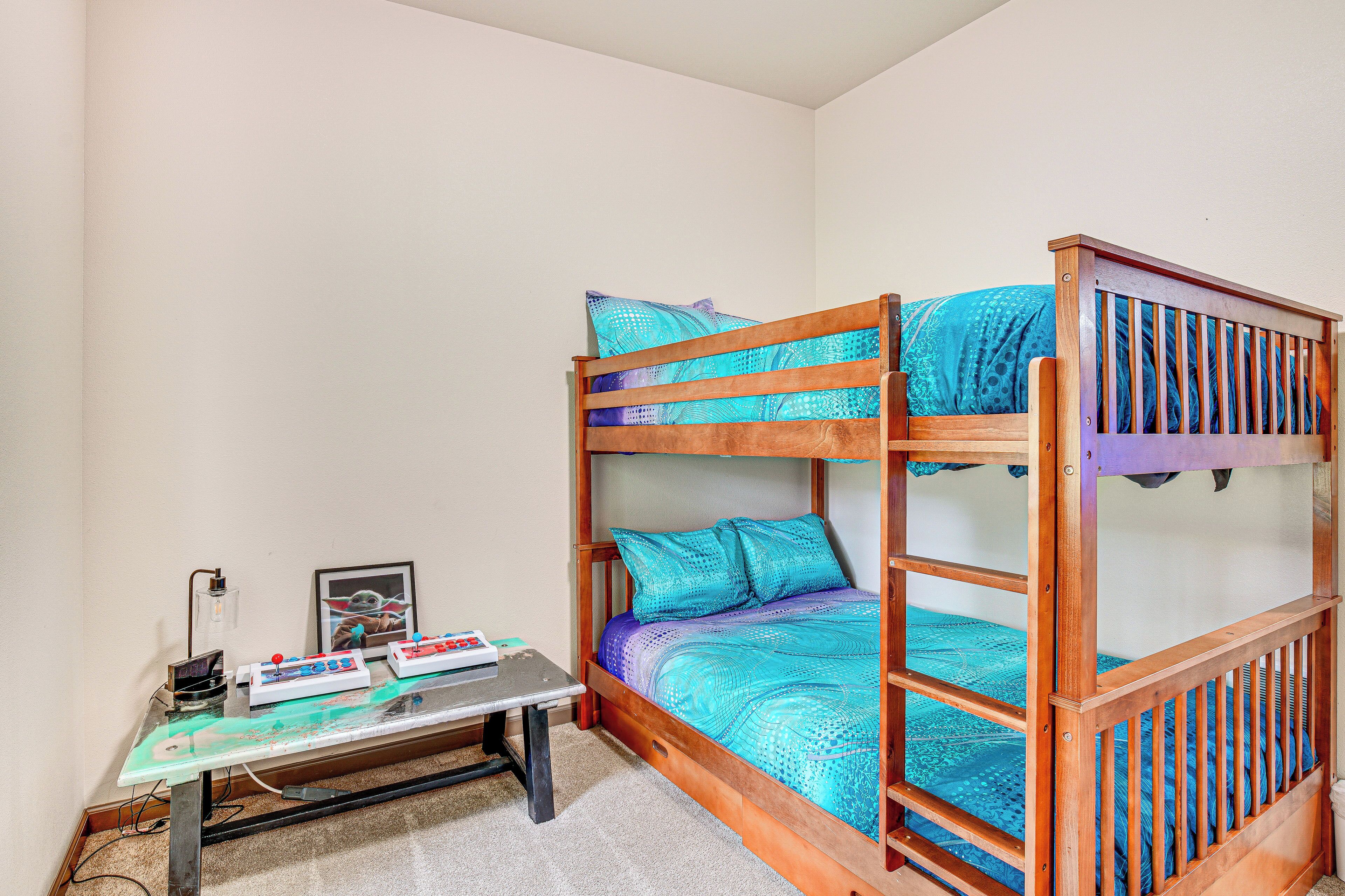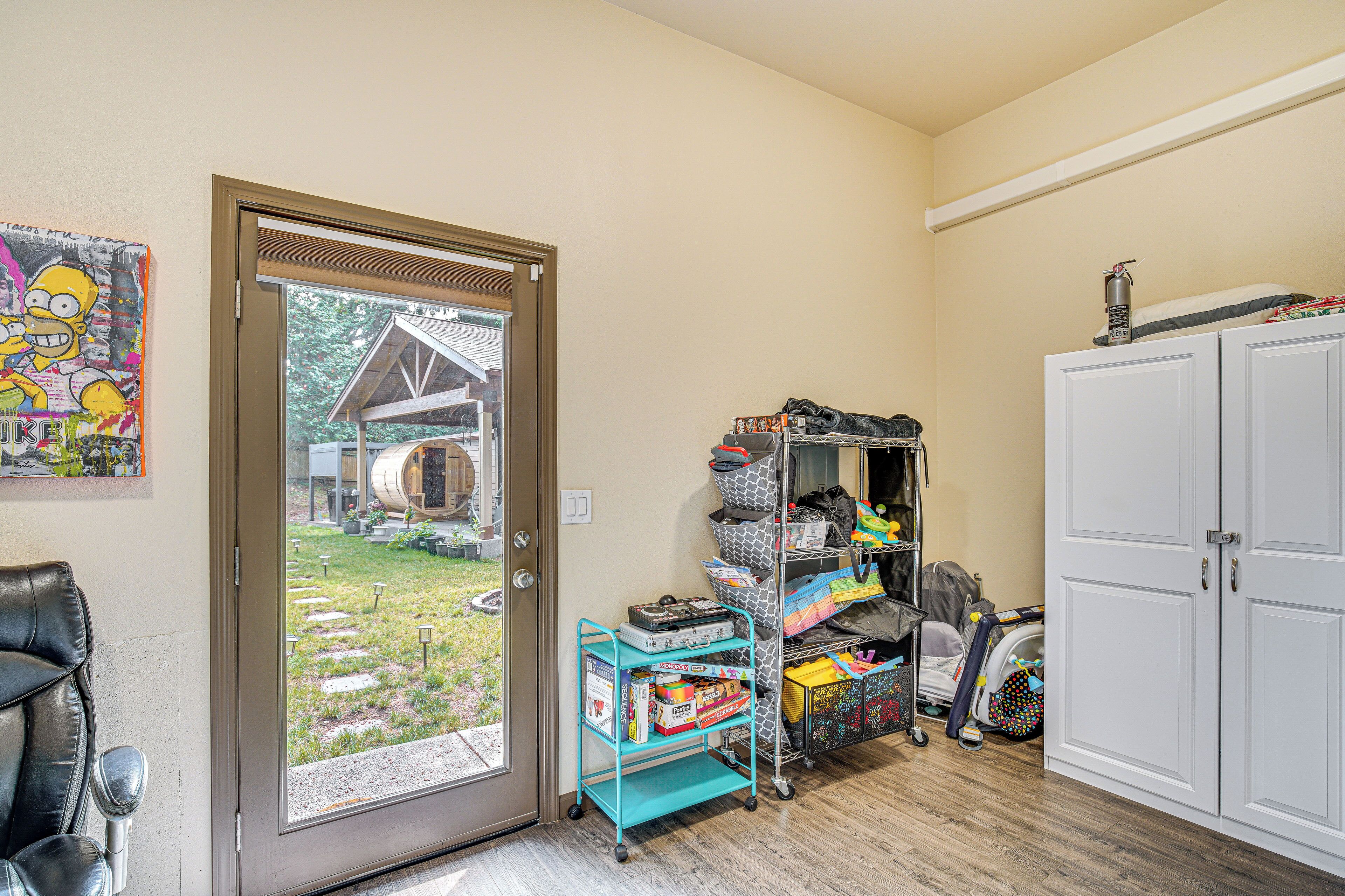 Bonney Lake Retreat: Patio, Hot Tub & Mtn View! Embark on the ultimate PNW adventure at this 3-bedroom, 1-bath vacation rental! Explore attractions like Lake Tapps Park or relax in the backyard and enjoy peaceful surroundings. The fun doesn't stop indoors — discover endless entertainment with a Smart TV, featuring an Xbox, a 3-in-1 pool table, and a treasure trove of games for the kids! Whether you're grilling on the patio or gearing up for game night, you'll experience the perfect mix of relaxation and family fun at this Bonney Lake home!-- THE PROPERTY --Family Friendly | Private Patio | Mt. Rainier View | Game Room | SaunaBedroom 1: King Bed | Bedroom 2: Full Bunk Bed | Bedroom 3: Queen Murphy Bed | Game Room: Full Bunk Bed w/ Lofted Full Bed | Additional Sleeping: Queen Air Mattress, Pack 'n PlayOUTDOOR LIVING: Gazebo w/ hot tub, fire pit, charcoal/pellet grillINDOOR LIVING: Smart TVs w/ cable, game room w/ ping pong/pool table & Pac-Man arcade game, poker table w/ dining tabletop, Xbox Series S, Mini NES Console, LED gaming lights, board games, laptop-friendly workspace, dart board, karaoke machine, laser tagKITCHEN: Fridge, stove, microwave, cooking basics, toaster, trash bags/paper towelsGENERAL: Free WiFi, keyless entry, central A/C & heating, complimentary toiletries, linens/towels, washer/dryer, hair dryer, iron/board, safeFAQ: Homeowner on-site (separate unit), pet fee (paid pre-trip)ACCESSIBILITY: Single-story home, 2 steps to enterPARKING: Garage (2 vehicles), driveway (5 vehicles), EV charger, RV parking allowed (hookups available)-- THE LOCATION --THINGS TO DO: High Cedars Golf Club (7 miles), Tapps Island Golf Course (7 miles), Muckleshoot Casino Resort (13 miles), Wild Waves Theme and Water Park (16 miles), Debbie Dolittle's Petting Zoo (22 miles) LOCAL ATTRACTIONS: White River Amphitheatre (16 miles), Emerald Downs (18 miles), Pacific Raceways (23 miles) OPT OUTSIDE: Victor Falls City Park (3 miles), Fennel Creek Trail Head (4 miles), Foothills Trail Trailhead (9 miles), Catapult Adventure Park Puyallup (10 miles), Game Farm Wilderness Park (13 miles), Dash Point State Park (24 miles) AIRPORT: Seattle-Tacoma International Airport (33 miles)-- REST EASY WITH US --Evolve makes it easy to find and book properties you'll never want to leave. You can relax knowing that our properties will always be ready for you and that we'll answer the phone 24/7. Even better, if anything is off about your stay, we'll make it right. You can count on our homes and our people to make you feel welcome — because we know what vacation means to you.-- POLICIES --- No smoking indoors- Pet friendly w/ $50 fee (+ taxes & fees)- No events, parties, or large gatherings- Must be at least 21 years old to book- Photo ID may be required upon check-in- NOTE: This single-story home requires 2 steps to enter - NOTE: The homeowner lives on-site, in a completely separate unit, and may be present during your stay