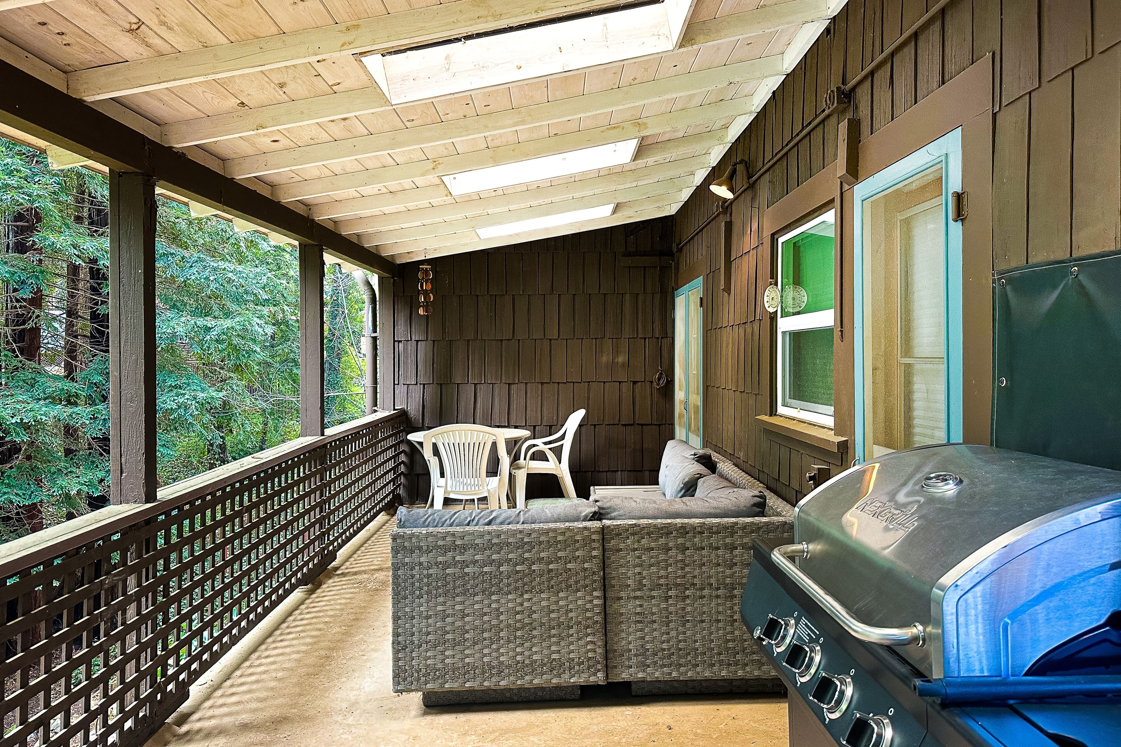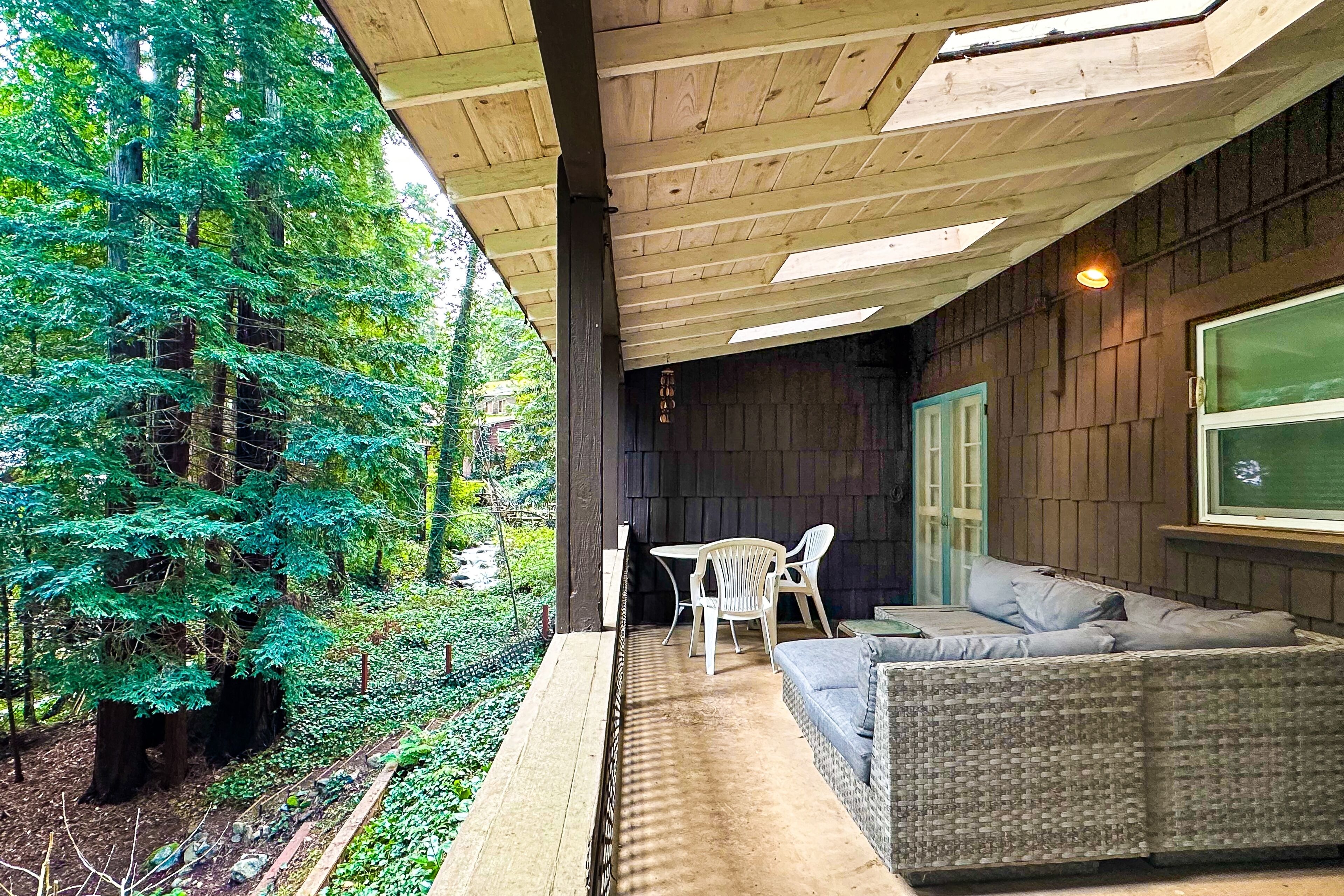 Rustic chic retreat set back among the trees with furnished deck Forest BrookOur calendar is updated in real-time & our nightly rates are accurately displayed. Simply enter your desired dates and click 'Book Now!'Permit number 231430If you're looking for the perfect "get away from it all" cabin, you've found it here at Forest Brook! Set back among the redwoods and brimming with plenty of rustic charm, this updated retreat offers a very private setting for you and your guests while still being conveniently close to a number of local attractions. Venture out a bit to discover several scenic parks including Henry Cowell Redwoods State Park and the Loch Lomond Recreation Area as well as the exciting city of Santa Cruz, home of the Kuumbwa Jazz Center and Neptune's Kingdom Family Entertainment Center, all less than 15 miles from your door.Most everything inside this wonderful home has been updated including new hardwood floors, kitchen tiles, blinds, and more. Prepare all your favorite dishes in the well-equipped, full kitchen complete with a suite of stainless steel appliances to make meal prep a breeze! Dine together or play board games at the nearby dining table, and then relax in the main living area where you can enjoy forest views through multiple windows while you stream all your favorite TV channels using your own accounts.Outdoors, dine or just relax and watch native birds in the trees from the privacy of your furnished deck or patio. You'll also find a gas grill here if you want to fire it up for a family cookout!Things to KnowThe detached suite is not available to guests.No cell service - only WiFi.Parking notes: There is free parking available for 3 vehicles.Damage waiver: The total cost of your reservation for this Property includes a nightly damage waiver fee, plus tax if applicable (the “Damage Waiver”). (A discount may be applied for stays of 28 nights or longer, if permitted.) The Damage Waiver covers you for up to $3,000 of accidental damage to the Property or its contents (such as furniture, fixtures, and appliances) as long as you report the incident to the host prior to checking out. The Damage Waiver fee eliminates the need for a traditional security deposit.More information can be downloaded from the "Rental Agreement" on the checkout page.Due to local laws or HOA requirements, guests must be at least 21 years of age to book. Guests under 21 must be accompanied by a parent or legal guardian for the duration of the reservation.