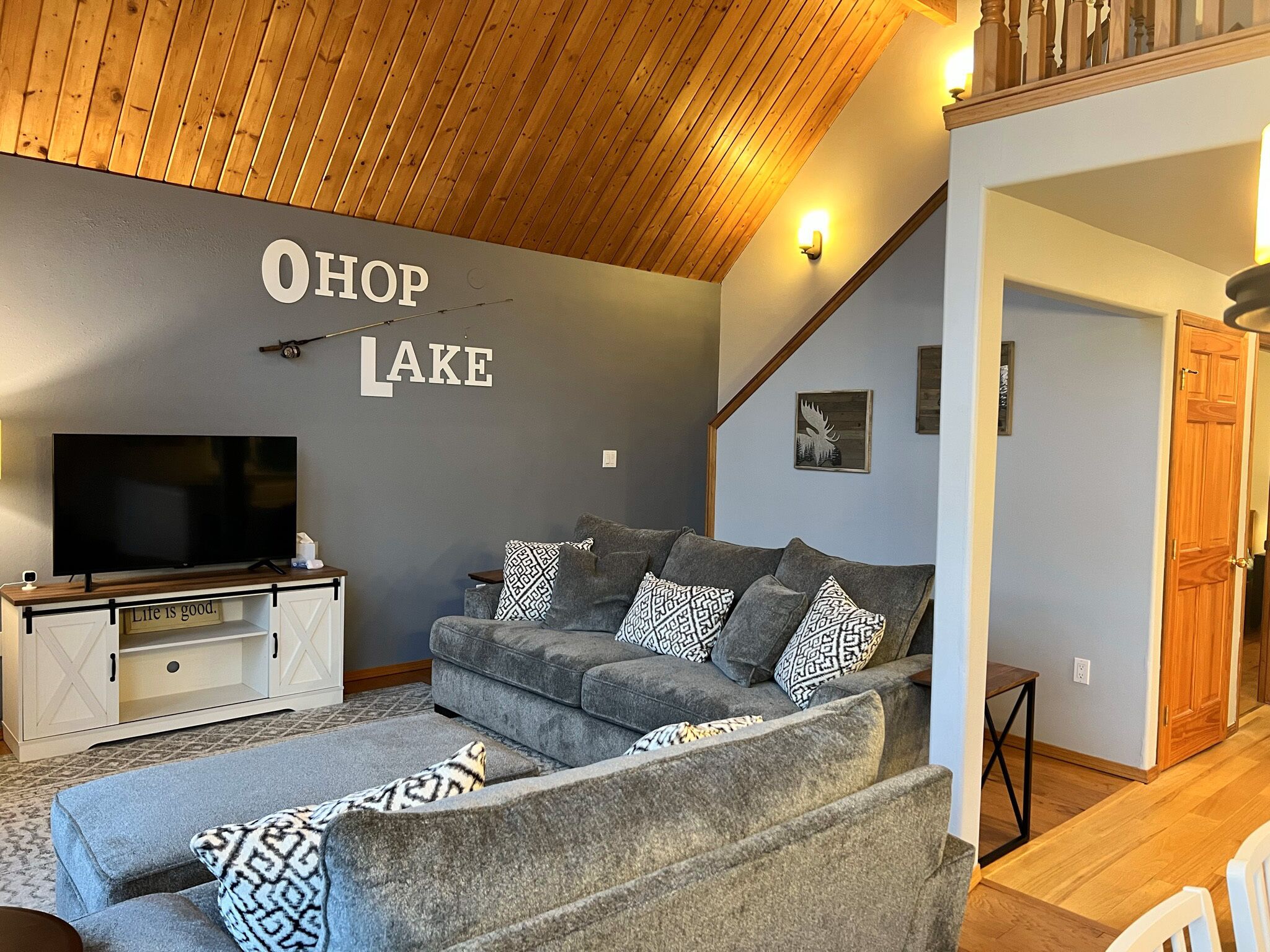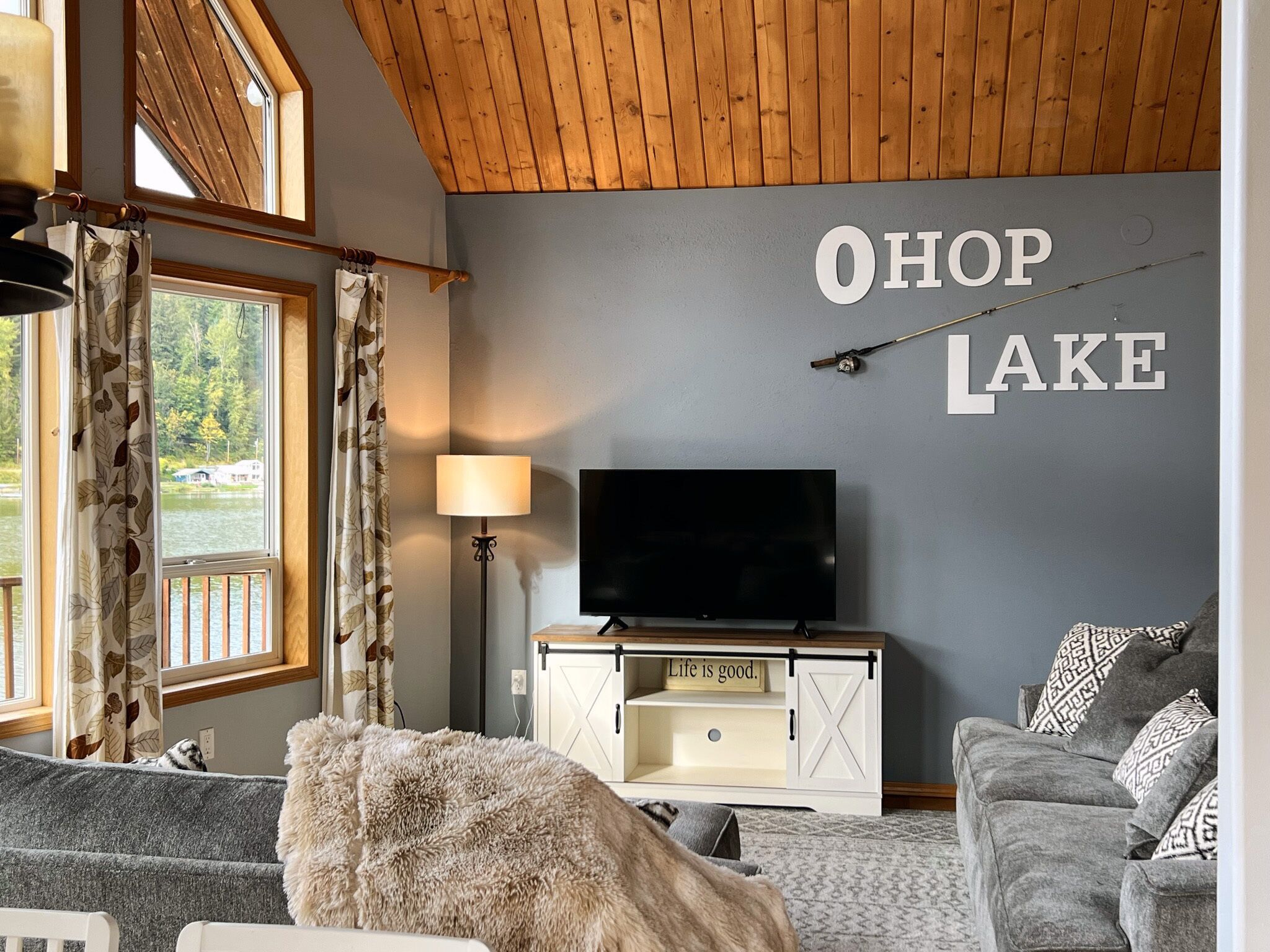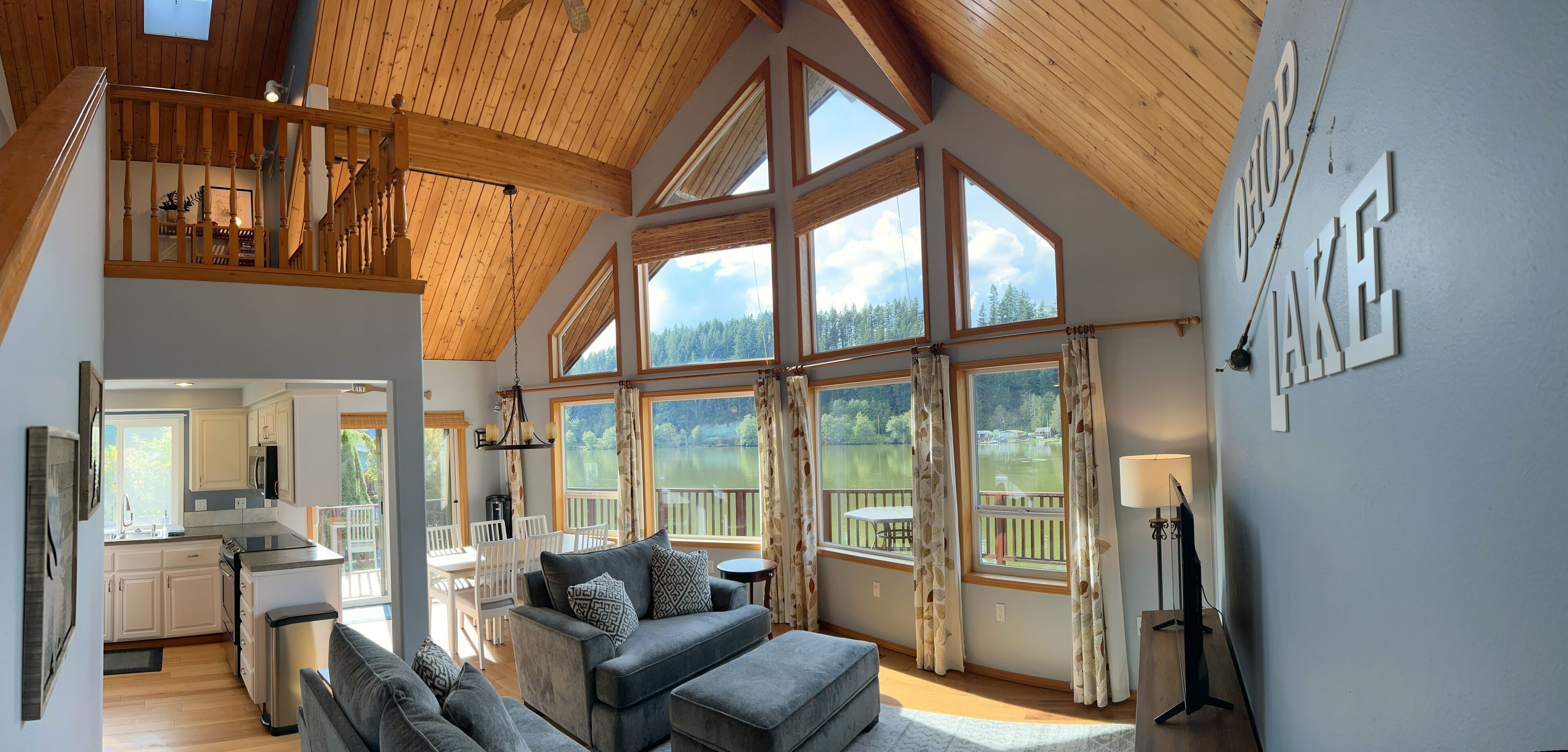 ~Lakefront Property ~ 23 miles to Mt. Rainier! Craving tranquility, nature's beauty, and unforgettable moments? Look no further than Ohop Lake Escape, where serenity meets adventure. As you gaze out the expansive front windows, the breathtaking views of the lake will instantly soothe your soul. Our private dock beckons you to cast a fishing line or simply lounge and dream the day away. Rest easy in the embrace of Ohop Lake's serenity, reconnect with family and loved ones, and cherish every moment! We do our absolute best to provide our guests with a wide range of amenities to help make everyone's stay as convenient and comfy as possible:) Ohop Lake Escape is equipped with a full sized fridge/freezer, oven/stovetop, pots, pans, dishwasher, glassware, utensils, kiddos plates, bowls & cups, paper towels, silverware, knives, coffee pot (regular), toaster, microwave, blender, toaster, crockpot, fresh sheets and towels, extra blankets, soap, shampoo, coffee, tea, toilet paper, bath/shower, hair dryer, iron, 2 Amazon Fire 50” 4K UHD Smart TV's (enabling our guests to use their personal accounts to watch whatever they choose), smoke alarm, carbon monoxide detector and fire extinguisher. **Liability Waiver:Campfires, swimming, and the use of any watercrafts are at your own risk. There is no lifeguard on duty, and you accept full responsibility for any bodily injury arising during you stay at Ohop Lake Escape and hold the Property Owner, Host, and Lakeview Getaways, LLC harmless. You understand there are potential dangers that campfires, swimming, and watercrafts may present to children who are not carefully supervised, as well as the danger to any person swimming or using watercrafts if a person has health risks, or while intoxicated or using any kind of drugs or medication, or while pregnant. You agree to be fully and solely responsible for all accidents or injury that may occur inside or outside the home. You understand the risks discussed above and agree that you will assume all responsibility for yourself and for those in your party. You agree to waive any claim whatsoever against owners, the host, and Lakeview Getaways, LLC for accidents or claims regarding any and all incidents that may occur on the property. All Guests in your party acknowledge and agree that they have read and understand this waiver and they acknowledge that confirmation by booking this home constitutes a binding and enforceable contract between all Guests, the Host, Lakeview Getaways, LLC and the Property Owners.Your vacation experience is of utmost importance to us, and we want to ensure you thoroughly enjoy your stay! If there's anything you require, please don't hesitate to inform us. We reside nearby and are committed to accommodating your needs to the best of our abilities. Whether you seek advice on local attractions or have specific preferences regarding host interaction, we're here for you. We strive to be attentive to each guest's unique desires and respect your privacy wholeheartedly.Ohop Lake Escape is located in a rural area, and you will need to access by car. If you are looking for restaurants, or small-town city life, the little town of Eatonville is 2.9 miles south on Hwy 161. The town of Graham is 17 miles north on Hwy 161, which is where you will find grocery stores (Safeway) and other amenities. Puyallup is only 20 miles away from the house, which is where you will find many restaurants, movie theaters, and any other entertainment type things that you would expect from a local city.You have exclusive access to the entire three-story home, yard, and private dock during your stay! Every inch of space is set up for you to enjoy! Bring your ski boat and watercrafts and enjoy a day full of watersport adventures! There is a public boat ramp conveniently located about a six-minute drive from the lake house. Once your boat is in the water you can keep it at your very own private dock for your entire visit. Motorized vessels are permitted on Ohop Lake from 11:00am-3:30 every day! Non-motorized (and motorized) vessels with a rate of speed of 8mph or less are permitted on Ohop Lake all hours from dawn until dusk. Our fishing and swimming enthusiasts benefit greatly from the peace and tranquility Ohop Lake offers during all hours of the day, but especially during our morning and late afternoon/evening hours! Bring your swimwear, trolling motors, kayaks, and smiles! We hope you cherish the peace and tranquility by the lake as much as we do!Create Timeless Memories! Here, time slows down, and memories are etched in the hearts of your loved ones. Capture the essence of Ohop Lake in every smile, laugh, and shared adventure.Don't let life's commotion steal your peace. Plan your escape to Ohop Lake today, and experience the serenity, adventure, and cherished moments that await. Or, if you're feeling adventurous, bring your ski boat and watercraft for an action-packed day on the water. Your lake paradise is just a booking away!And there's more!! The scenic 23-mile drive to Mt. Rainier National Park's only year-round entrance is a breathtaking journey that promises to fill your days with adventure and natural beauty. Whether you're an outdoor enthusiast or simply looking to enjoy the serenity of the mountain, Ohop Lake Escape offers an opportunity to create cherished memories with your family and loved ones as you explore Mt. Rainier!Accommodations include:**Keypad entrance**GORGEOUS water views!Top Floor PRIVATE MASTER SUITE:**Bedroom #1: King Bed**Attached Bathroom, Stand-up Shower, Walk in Closet**Book Nook!! Enjoy!! Main Floor:**Bedroom #2: Queen Bed***Kitchen, fully stocked kitchen with an abundance of cooking supplies, full sized refrigerator, oven, stove, microwave, dishwasher & coffee pot (drip).***Dining Room with seating for 8***Full Bath with full tub/shower***Living Room with 50” 4K UHD Smart TV ***Washer and Dryer!***Direct access to Full Sized DeckLowest Level:**Bedroom #3: 4 twin beds (2 bunk beds)***Fa
