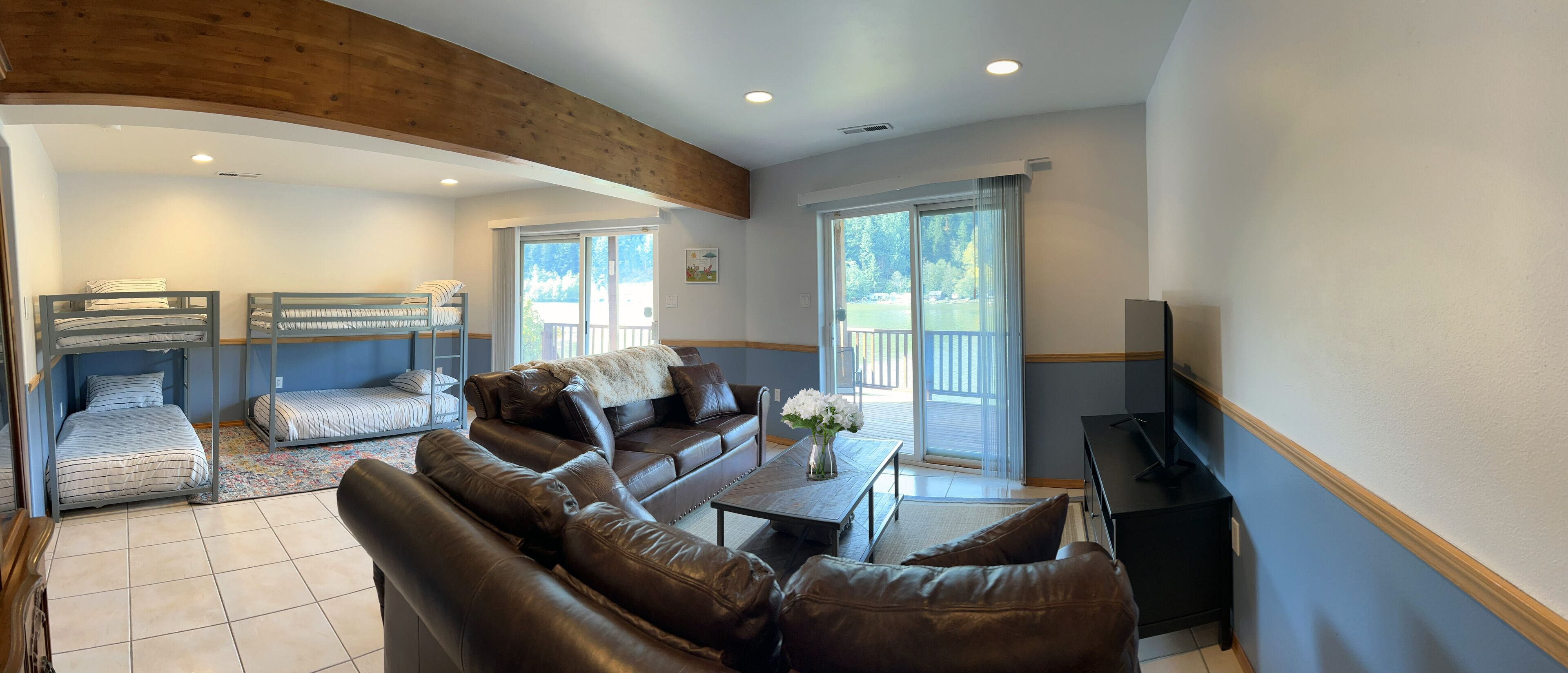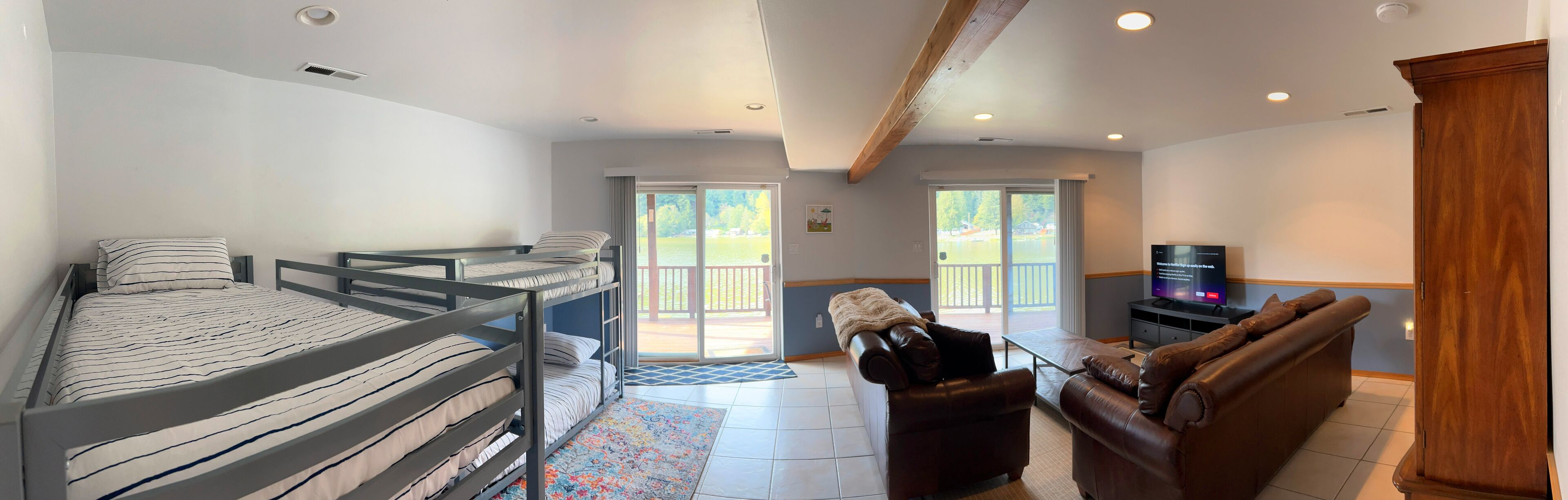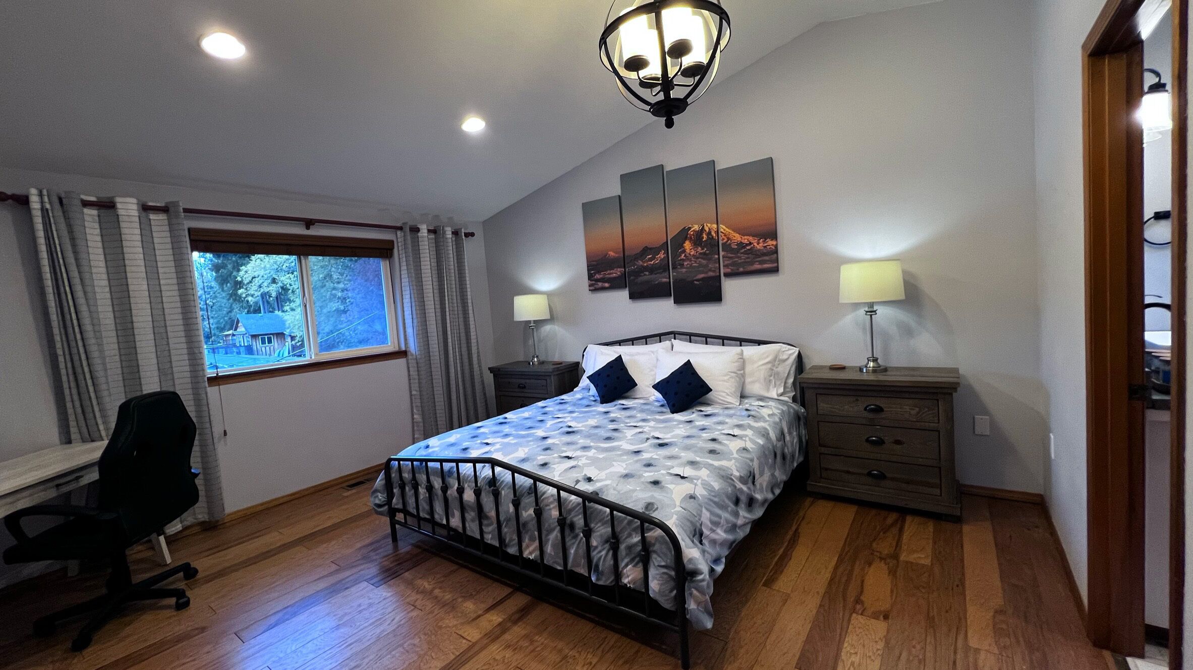 ~Lakefront Property ~ 23 miles to Mt. Rainier! Craving tranquility, nature's beauty, and unforgettable moments? Look no further than Ohop Lake Escape, where serenity meets adventure. As you gaze out the expansive front windows, the breathtaking views of the lake will instantly soothe your soul. Our private dock beckons you to cast a fishing line or simply lounge and dream the day away. Rest easy in the embrace of Ohop Lake's serenity, reconnect with family and loved ones, and cherish every moment! We do our absolute best to provide our guests with a wide range of amenities to help make everyone's stay as convenient and comfy as possible:) Ohop Lake Escape is equipped with a full sized fridge/freezer, oven/stovetop, pots, pans, dishwasher, glassware, utensils, kiddos plates, bowls & cups, paper towels, silverware, knives, coffee pot (regular), toaster, microwave, blender, toaster, crockpot, fresh sheets and towels, extra blankets, soap, shampoo, coffee, tea, toilet paper, bath/shower, hair dryer, iron, 2 Amazon Fire 50” 4K UHD Smart TV's (enabling our guests to use their personal accounts to watch whatever they choose), smoke alarm, carbon monoxide detector and fire extinguisher. **Liability Waiver:Campfires, swimming, and the use of any watercrafts are at your own risk. There is no lifeguard on duty, and you accept full responsibility for any bodily injury arising during you stay at Ohop Lake Escape and hold the Property Owner, Host, and Lakeview Getaways, LLC harmless. You understand there are potential dangers that campfires, swimming, and watercrafts may present to children who are not carefully supervised, as well as the danger to any person swimming or using watercrafts if a person has health risks, or while intoxicated or using any kind of drugs or medication, or while pregnant. You agree to be fully and solely responsible for all accidents or injury that may occur inside or outside the home. You understand the risks discussed above and agree that you will assume all responsibility for yourself and for those in your party. You agree to waive any claim whatsoever against owners, the host, and Lakeview Getaways, LLC for accidents or claims regarding any and all incidents that may occur on the property. All Guests in your party acknowledge and agree that they have read and understand this waiver and they acknowledge that confirmation by booking this home constitutes a binding and enforceable contract between all Guests, the Host, Lakeview Getaways, LLC and the Property Owners.Your vacation experience is of utmost importance to us, and we want to ensure you thoroughly enjoy your stay! If there's anything you require, please don't hesitate to inform us. We reside nearby and are committed to accommodating your needs to the best of our abilities. Whether you seek advice on local attractions or have specific preferences regarding host interaction, we're here for you. We strive to be attentive to each guest's unique desires and respect your privacy wholeheartedly.Ohop Lake Escape is located in a rural area, and you will need to access by car. If you are looking for restaurants, or small-town city life, the little town of Eatonville is 2.9 miles south on Hwy 161. The town of Graham is 17 miles north on Hwy 161, which is where you will find grocery stores (Safeway) and other amenities. Puyallup is only 20 miles away from the house, which is where you will find many restaurants, movie theaters, and any other entertainment type things that you would expect from a local city.You have exclusive access to the entire three-story home, yard, and private dock during your stay! Every inch of space is set up for you to enjoy! Bring your ski boat and watercrafts and enjoy a day full of watersport adventures! There is a public boat ramp conveniently located about a six-minute drive from the lake house. Once your boat is in the water you can keep it at your very own private dock for your entire visit. Motorized vessels are permitted on Ohop Lake from 11:00am-3:30 every day! Non-motorized (and motorized) vessels with a rate of speed of 8mph or less are permitted on Ohop Lake all hours from dawn until dusk. Our fishing and swimming enthusiasts benefit greatly from the peace and tranquility Ohop Lake offers during all hours of the day, but especially during our morning and late afternoon/evening hours! Bring your swimwear, trolling motors, kayaks, and smiles! We hope you cherish the peace and tranquility by the lake as much as we do!Create Timeless Memories! Here, time slows down, and memories are etched in the hearts of your loved ones. Capture the essence of Ohop Lake in every smile, laugh, and shared adventure.Don't let life's commotion steal your peace. Plan your escape to Ohop Lake today, and experience the serenity, adventure, and cherished moments that await. Or, if you're feeling adventurous, bring your ski boat and watercraft for an action-packed day on the water. Your lake paradise is just a booking away!And there's more!! The scenic 23-mile drive to Mt. Rainier National Park's only year-round entrance is a breathtaking journey that promises to fill your days with adventure and natural beauty. Whether you're an outdoor enthusiast or simply looking to enjoy the serenity of the mountain, Ohop Lake Escape offers an opportunity to create cherished memories with your family and loved ones as you explore Mt. Rainier!Accommodations include:**Keypad entrance**GORGEOUS water views!Top Floor PRIVATE MASTER SUITE:**Bedroom #1: King Bed**Attached Bathroom, Stand-up Shower, Walk in Closet**Book Nook!! Enjoy!! Main Floor:**Bedroom #2: Queen Bed***Kitchen, fully stocked kitchen with an abundance of cooking supplies, full sized refrigerator, oven, stove, microwave, dishwasher & coffee pot (drip).***Dining Room with seating for 8***Full Bath with full tub/shower***Living Room with 50” 4K UHD Smart TV ***Washer and Dryer!***Direct access to Full Sized DeckLowest Level:**Bedroom #3: 4 twin beds (2 bunk beds)***Fa
