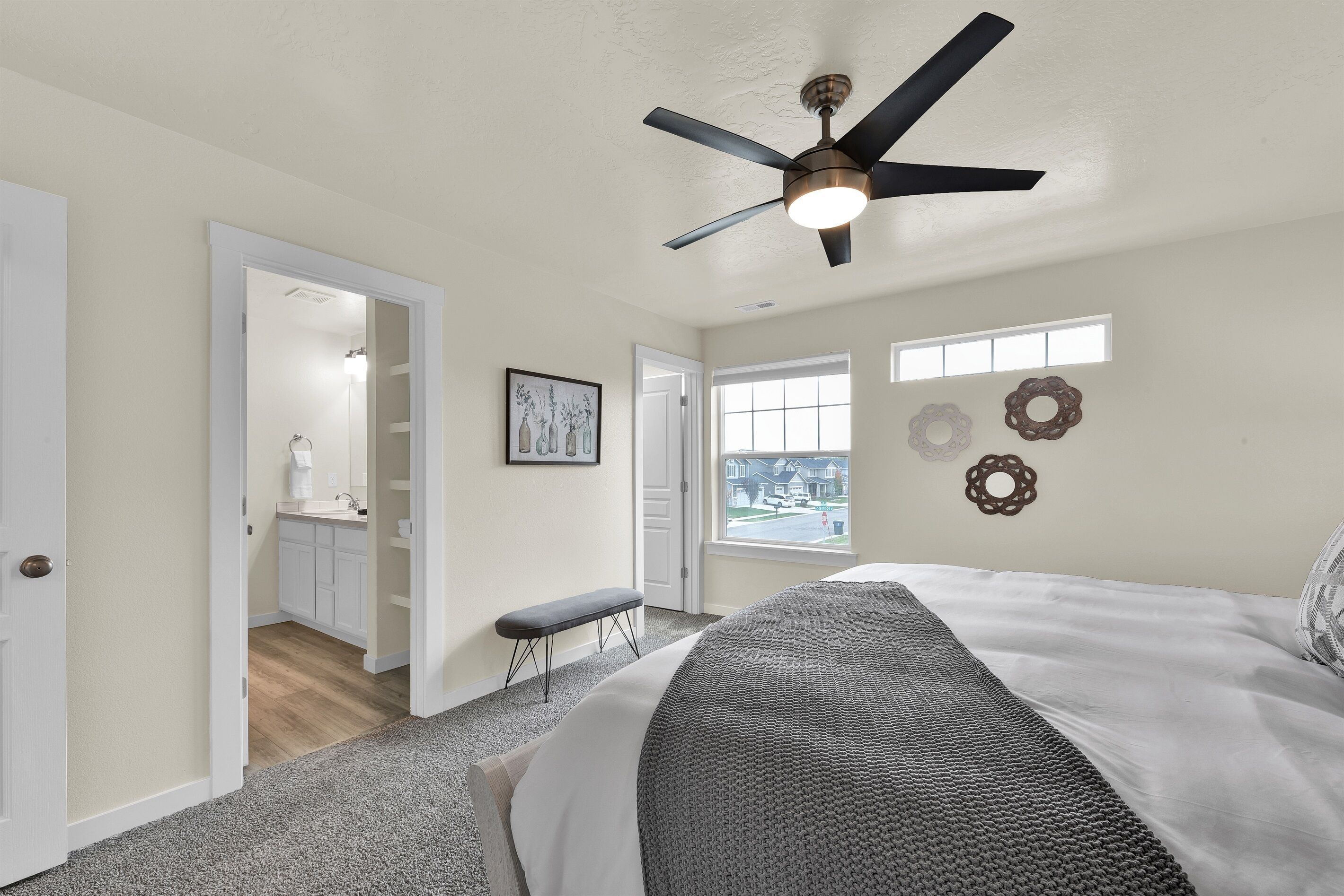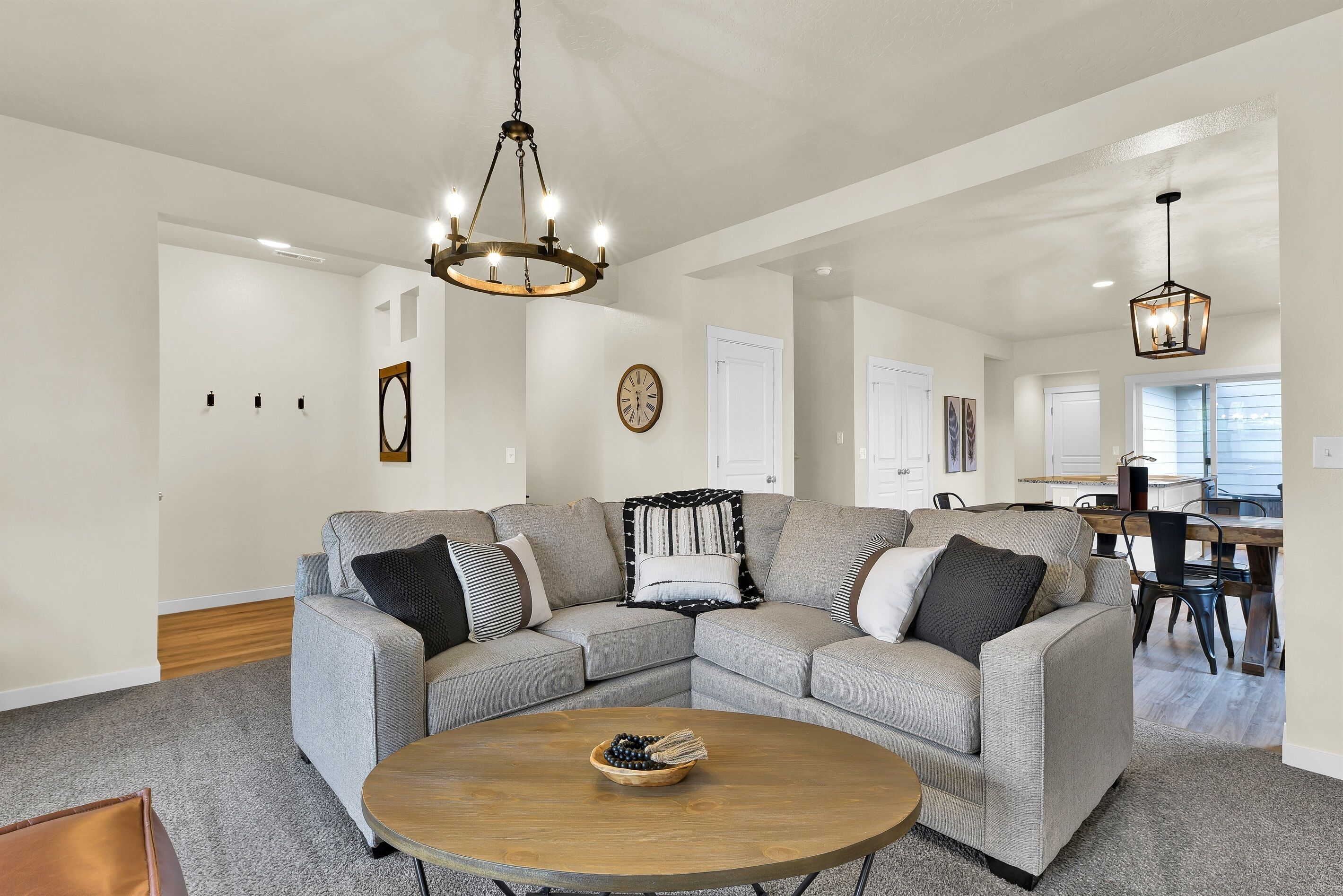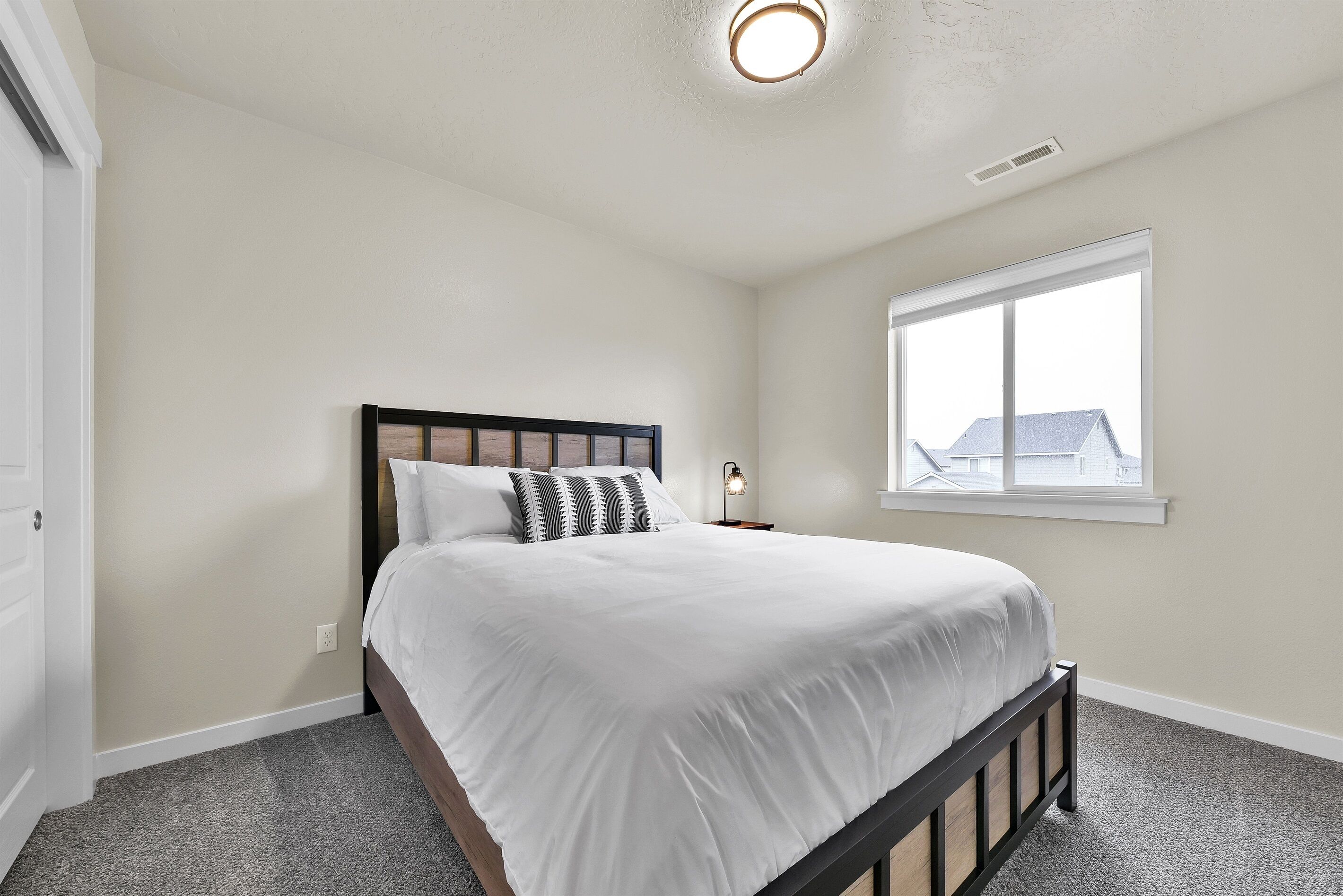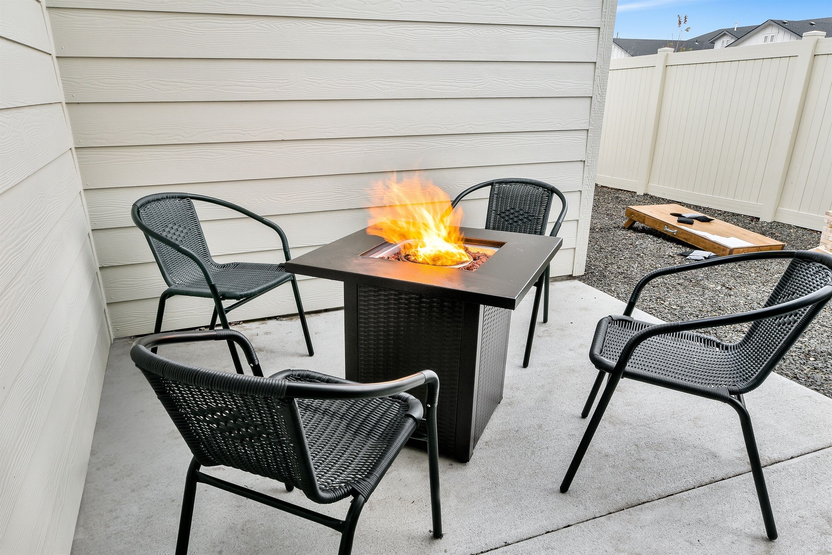 Highland Haven w/ seasonal community pool! • 1700 sq ft Single Family Home• Sleeps 8• Pet Friendly• Community Park and Seasonal Pool• Propane Firepit• Yard Games• In House Washer and Dryer• Fully stocked Kitchen• Professionally Cleaned and Sanitized• Self Check-inHighland Haven is the ultimate modern farmhouse lovingly named after the cute Highland cow art featured in the cozy living room. Just off the main living are is an office nook perfect for remote work and school, or a fun coloring space for kids. The neighborhood has a community park and pool (open seasonally typically Memorial Day to Labor Day, weather dependent) perfect for cooling off in the summer, but as the weather cools down warm up on the patio with the propane firepit while you play some yard games - Jumbo Jenga or Cornhole with our custom Idaho boards! This 3 bedroom, 2.5 bathroom home sleeps 8 making it perfect for families or groups of friends. Just down the street from the neighborhood entrance is the expansive Settler's park featuring baseball fields, horseshoe and pickle ball courts, a large playground with swings and splash pad, and a seasonal disc golf course ( typically open November-February). A few miles away is Meridian's outdoor mall, The Village, or Roaring Springs Water Park and Wahooz Family Fun Zone. If you want to branch out of Meridian enjoy quick freeway access for exploring more of what the Treasure Valley has to offer! Please Note: Guests are expected to read and be willing to honor House Rules. No gatherings/parties allowed, only booked guests can be there at any time (unless discussed/approved and any additional fees paid in advance). Additional security deposit may be required depending on pets and/or length of stay. Booking implies agreement to pay any fees/deposits and honor House Rules. Unsigned rental agreement means no entry. Pets must be discussed/approved and paid in advance. This is a pet friendly home up to 2 pets. To maintain the condition of the home the pet fee will be $60 for 1 pet and $120 for 2 pets. Failure to disclose a pet at this property before check-in could result in a $500 fine, immediate eviction with no refund and additional expenses may be charged. Top bunk weight limit is 200lbs.