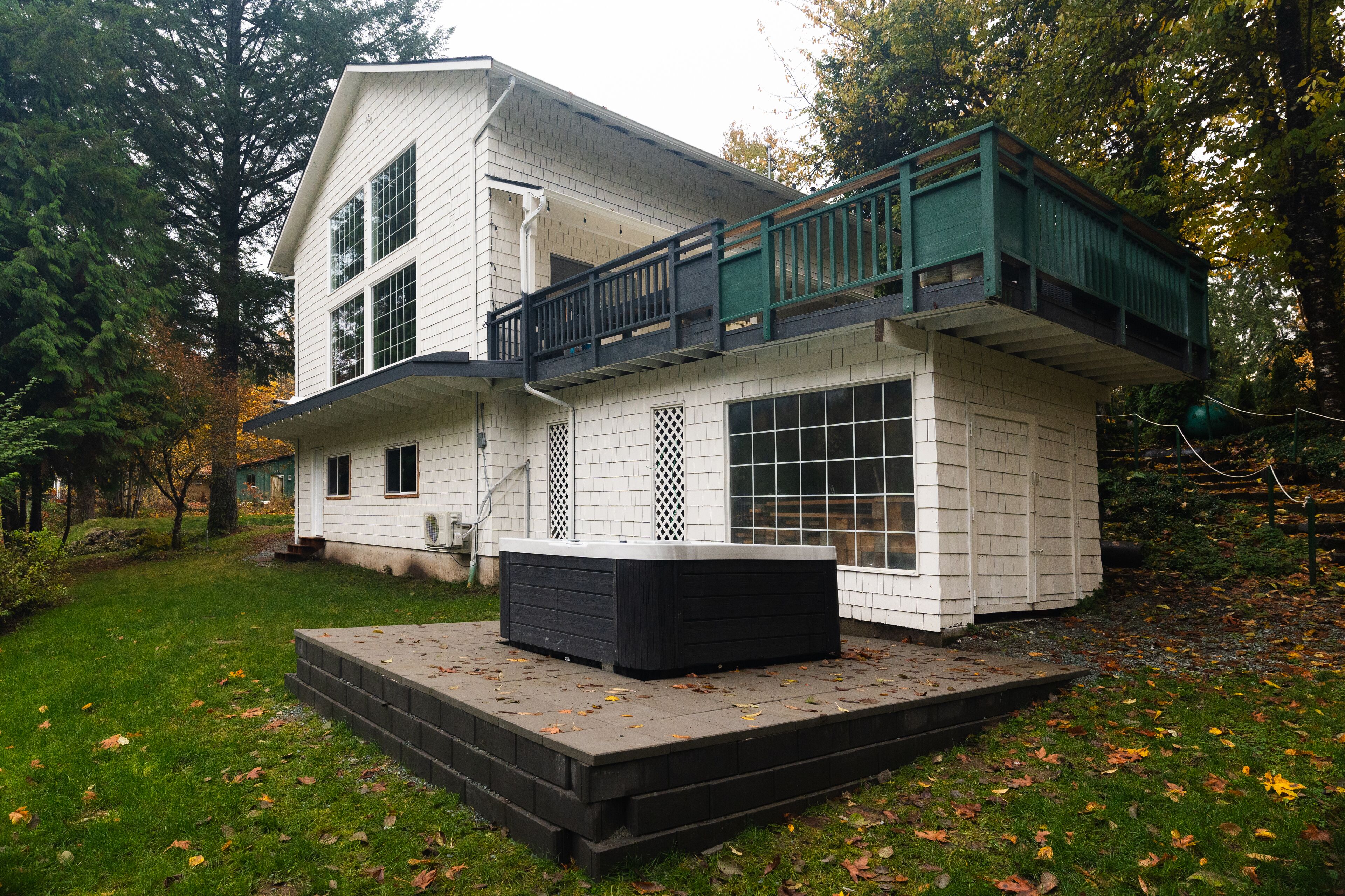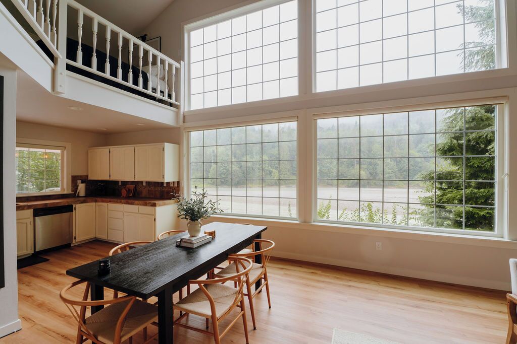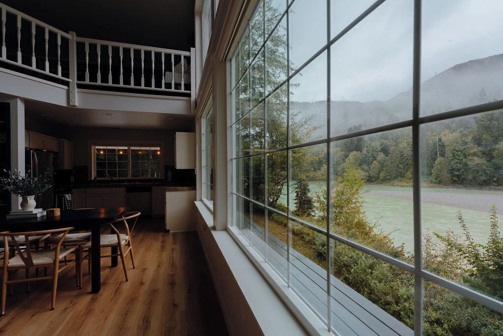 Riverside Retreat - Skagit River with hot tub+fire pit+views About this spaceNestled in the beautiful North Cascades, Riverside Retreat on Skagit River brings the tranquility of the Pacific Northwest. Come and enjoy a cup of freshly brewed coffee from the coffee bar as you gaze on the rushing river right from your living room. Unwind in the hot tub after a long day. Wake up in one of the cozy king-sized beds in the stylish bedrooms, ready to discover the treasures of the mountain range. Don't miss the game room for a fun time with your friends and family, followed by a crackling fire as the night sets in.The spaceRiverside Retreat on Skagit River is located right on the banks of Skagit River. The property boasts of breathtaking views of the mountains and river. The closest city is Sedro-Woolley, which is around a 30 min drive. Closest grocery store is just a convenient 7 mins away. The town of Concrete has some delicious foods to try, and there are hiking trails off of highway-20 for you to discover. Baker Lake is also a short drive away.Bald Eagles make an appearance on Skagit, so be sure to keep your eyes out for them!HOME• Bedroom 1: king size bed, TV and window seating• Bedroom 2: king size bed• Loft: queen bed and TV area with 2 couches, and seating area with river view• Bathroom: vintage bathtub, shower, basic bathroom necessities provided• Kitchen: basic spices, utensils, pots and pans, knives, dinnerware, gas stove and oven, microwave, dishwasher.• Garage: ping pong table (more games coming soon)FEATURES AND AMENITIES• Fully equipped kitchen• Formal dining area fitted for 6• Espresso machine• Smart TV• BBQ grill• Dishwasher• Washer/Dryer• Propane fireplaceOUTDOOR FEATURES• River views• Mountain views• BBQ• Balcony• Fire pit on property• On-site parkingGuest accessYou will have access to the whole space, including the game room in the garage and the fire pit right outside.There is river access through the forest part of the property, but I would recommend going on the neighboring property to access the river (it's a tiny state park that consists of a boat launch and a short trail to access the riverfront with lots of rocks and riverbanks you can walk around on). In general, there is a bit more space and maintance there.Other things to note• Children are more than welcome to be here and it's such a fun place for them to enjoy. They'll definitely enjoy throwing rocks in the river and the games provided. But the home/property is not childproof, so keeping an eye on the kids is required (ex. home has a loft that overlooks the living room. This is a riverfront property, and the river does have a strong current.)• Coffee bar consists of an espresso machine and grinder, as well as a French press and an electric kettle. Bring your favorite coffee beans, or enjoy the ones provided.• Bring your own firewood! A limited amount of firewood will be provided.