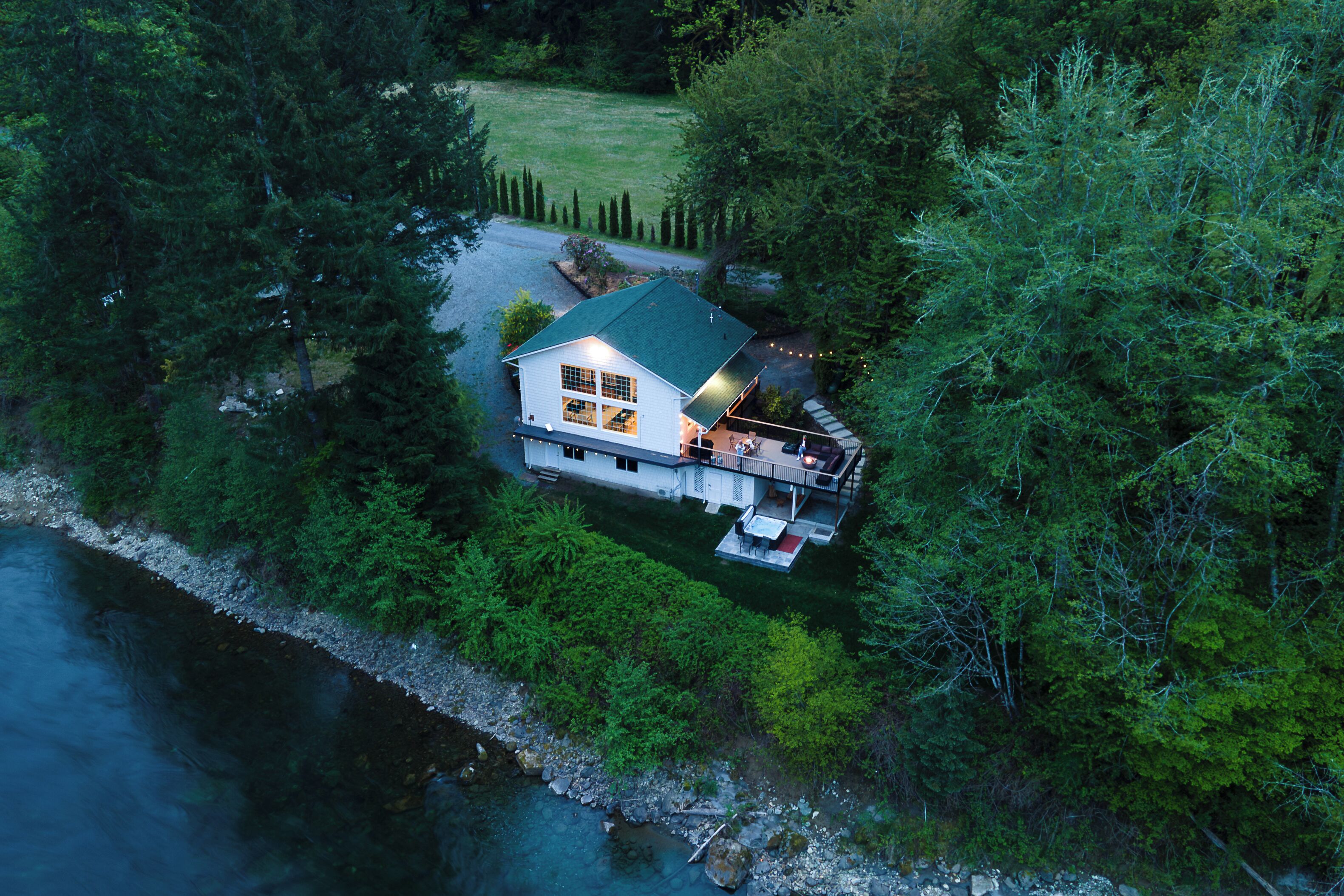 Riverside Retreat - Skagit River with hot tub+fire pit+views About this spaceNestled in the beautiful North Cascades, Riverside Retreat on Skagit River brings the tranquility of the Pacific Northwest. Come and enjoy a cup of freshly brewed coffee from the coffee bar as you gaze on the rushing river right from your living room. Unwind in the hot tub after a long day. Wake up in one of the cozy king...