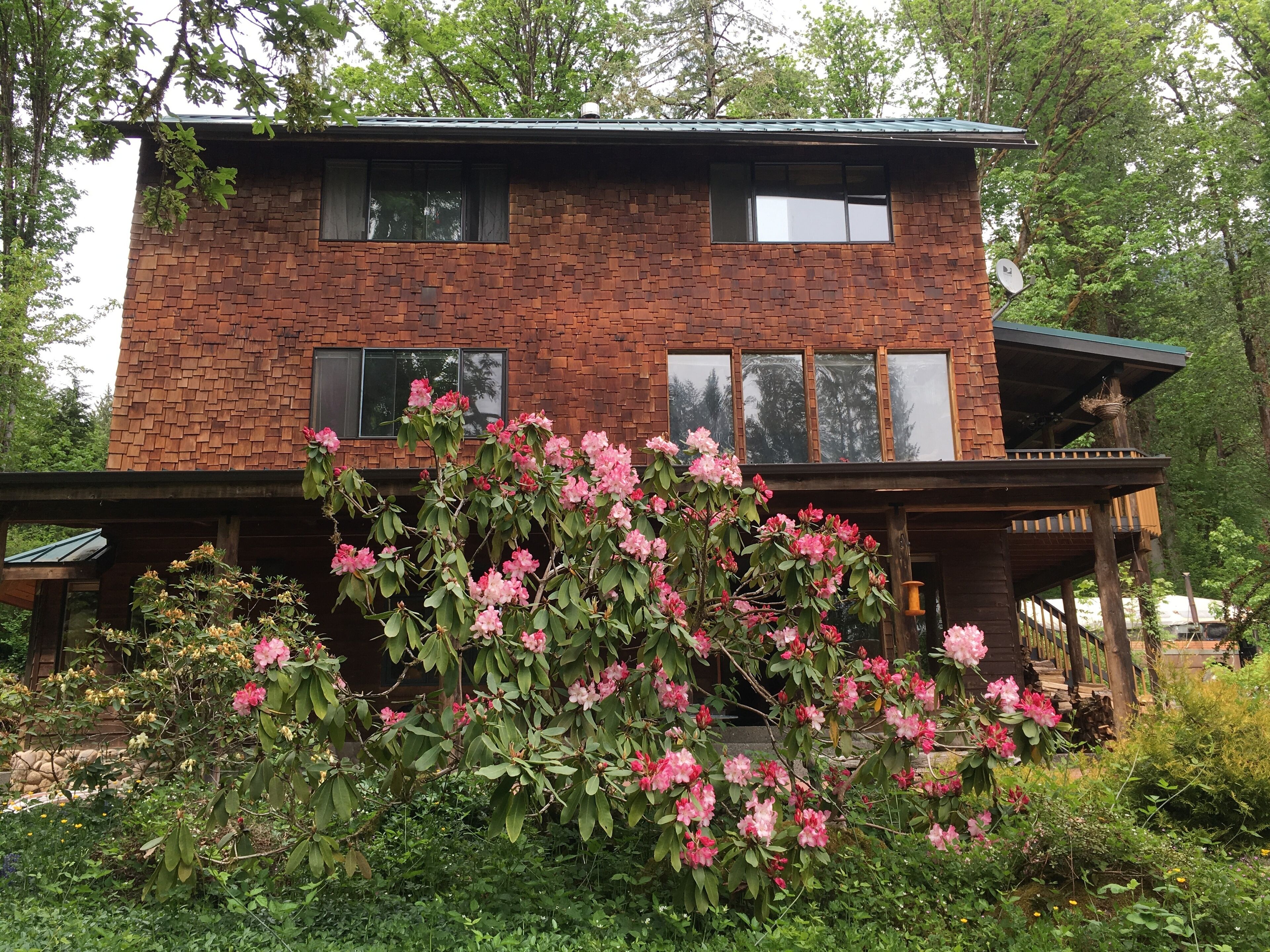 Artistic Comfort at North Cascades EcoGarden! --Non-toxic -see below Three story villa nestled in the foothills of majestic Sauk Mountain, this house is comfortable and artistic with views of the woods, gardens and mountain. Many inviting places for relaxation and socializing including a sunny, full southern windowed living room, an upstairs balcony and a sprawling covered patio. The penthouse su...
