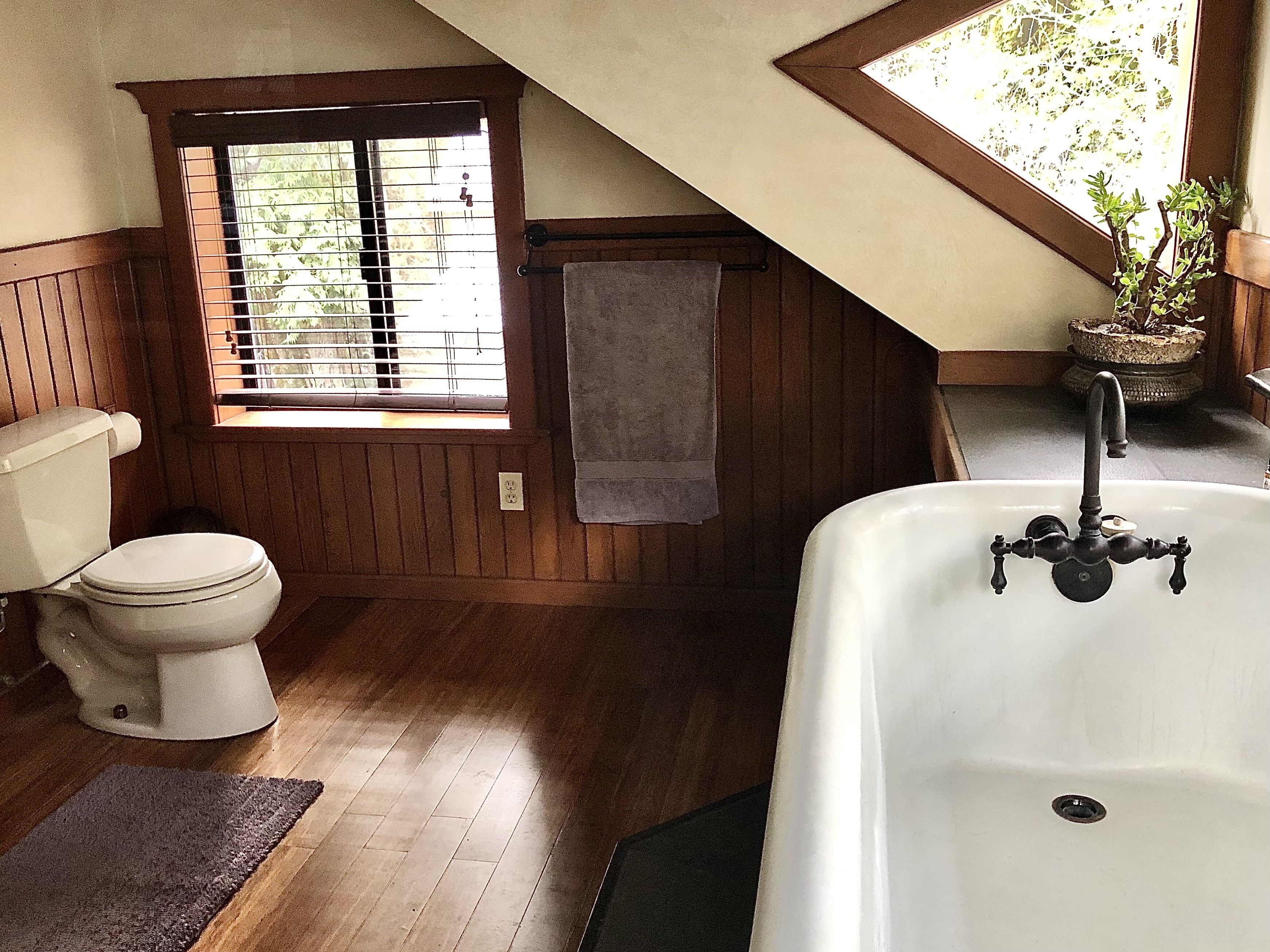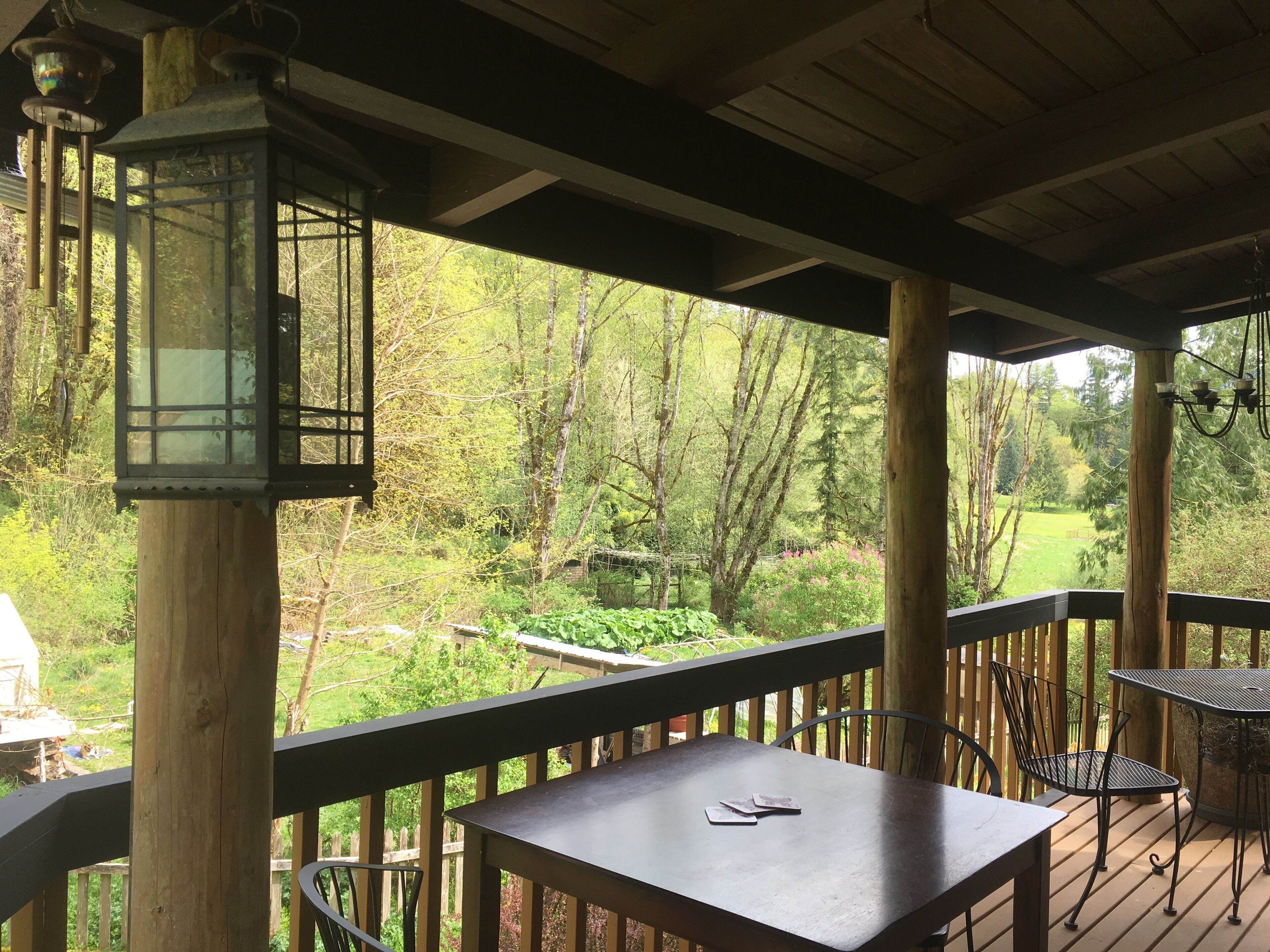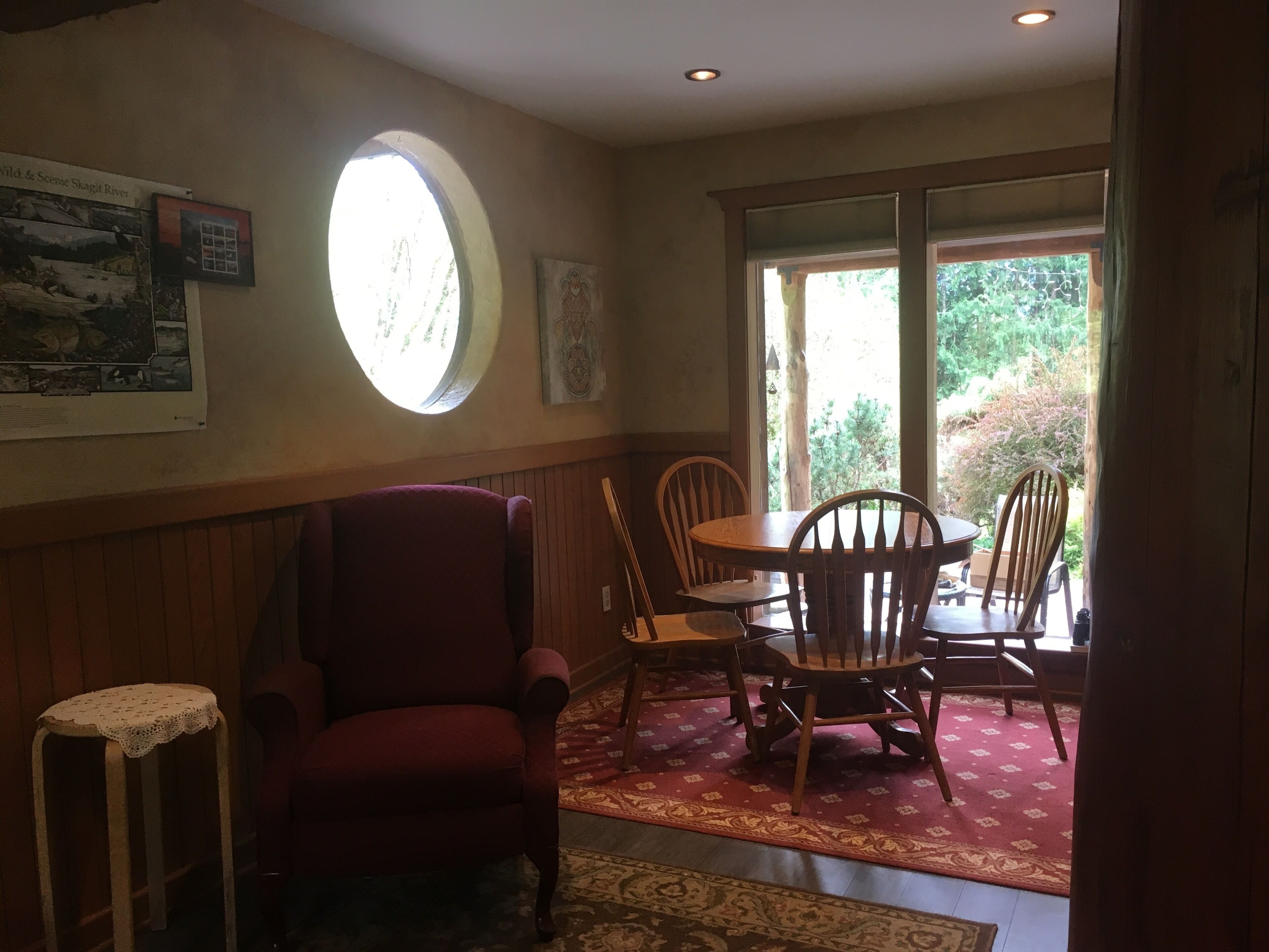 Artistic Comfort at North Cascades EcoGarden! --Non-toxic -see below Three story villa nestled in the foothills of majestic Sauk Mountain, this house is comfortable and artistic with views of the woods, gardens and mountain. Many inviting places for relaxation and socializing including a sunny, full southern windowed living room, an upstairs balcony and a sprawling covered patio. The penthouse suite has a large open office and claw foot bathtub. **This house shares the property with an active permaculture farm, the gardeners who live here, cats, dogs and poultry. Though separate, we are open to sharing information about our sustainable gardening techniques...and maybe some fresh eggs and produce. *We pride ourselves in keeping a non-toxic home by using only safe cleaning and body products. We welcome guests with chemical sensitivities, and all who desire a healthy indoor environment. We ask that you refrain from using products with artificial scents or toxic ingredients while here and before you arrive. We provide safe soaps, shampoos and cleaning products for your stay. To learn toxicity information about your body products you can visit www.ewg.org , for the Environmental Working Group's ratings. Thank you so much for helping us with this. It allows residents and guests with chemical sensitivities to stay here. We are happy to share more info on this. The water from our tap is from a deep, cold, clean well and is healthy drinking water so you do not need to bring any.We look forward to your visit!