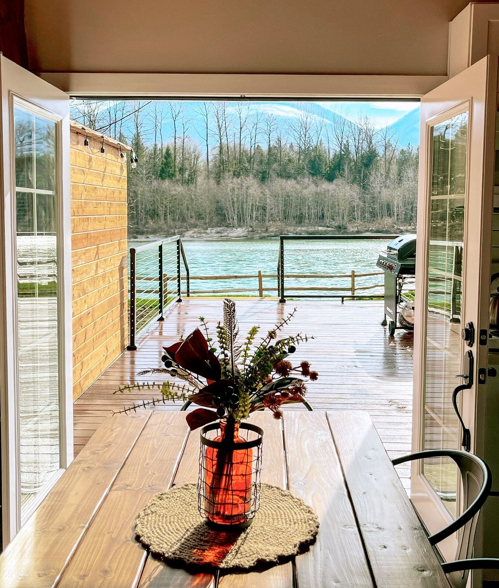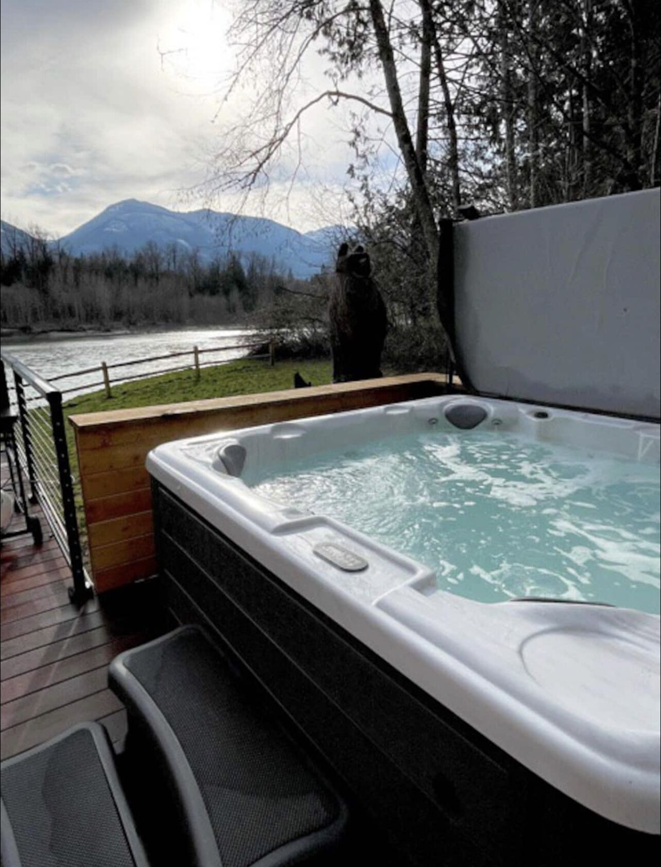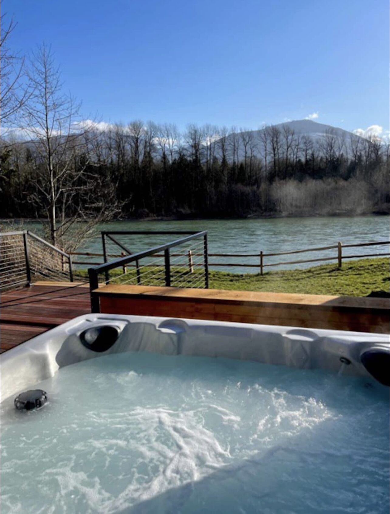 Charming Cabin Getaway w/Hot Tub & River Mt. Views Welcome to "La Cabin"! It sits on the high bank of the Skagit River. We are located in Eastern Skagit County, just 35 miles east of Mt. Vernon. The North Cascades National Park is approx. 35 min. away with so many hikes & adventures !Our chic & cozy cabin is nestled in Concrete, WA. It's perfect for folks looking to get away, friend group outings, honeymooners or anyone on vacation. Unwind in the hot tub as you enjoy natures sounds. "La Cabin" is the perfect oasis to disconnect and recharge.Our charming newly remodeled cabin is just what you've been looking for! The cabin can sleep six comfortably. The bedroom loft has a secure staircase but please walk up and down with caution. On a rainy night, if you get lucky enough to sleep upstairs in the loft, you'll fall asleep to the sounds of rain drops falling on the roof. The sound is very therapeutic.There is a fun secret door to the bedroom! Swing open the book case and you'll walk into the room. You'll be able to plug in your phone chargers in the back of two of the night stands. As you walk into the bathroom, it has heated floors for comfort and also a bluetooth speaker so you can rock out to music while showering. The cabin has a full kitchen with everything you'll need.Walk out the french doors to BREATHTAKING views of the Skagit River & Mountains. We provide 2 bath robes for your hot tub spa experience. As you decompress in the hot tub, on a beautiful day, you will see Eagles soar. At night you'll be able to see a trillion stars as you enjoy sitting next to the fire pit as you listen to sound of the river flowing. Whether you're here to unwind on the couch next to the fireplace, sit and enjoy the river & mountain views, or explore the many hikes and adventures in The North Cascades, we got you covered. Enjoy your getaway experience at "La Cabin".