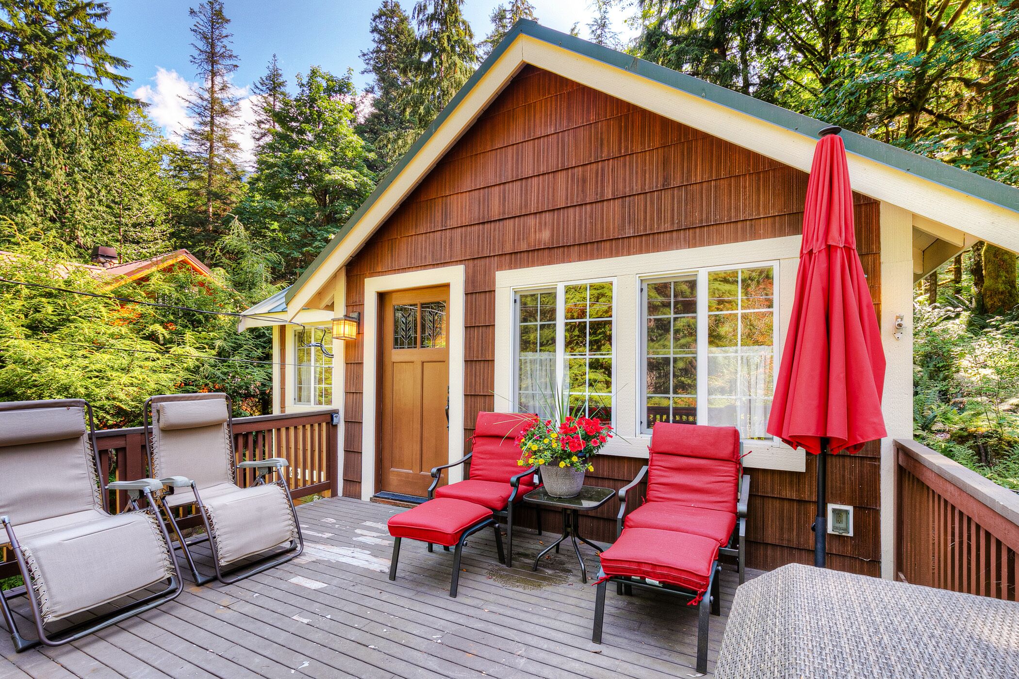 Hearthstone Cottage: hot tub deep in the woods w/ sounds of the creek Hearthstone Cottage is the perfect quaint and tranquil getaway for anyone looking for that iconic Pacific Northwest retreat, whether it be for recreation, relaxation, or recharge. Kick back in the new hot tub surrounded by 10 magical wooded acres. The sounds of Index Creek across the road will lull you into a state of serenity s...