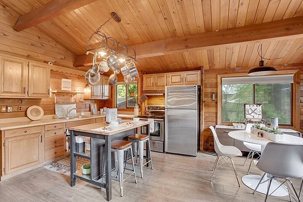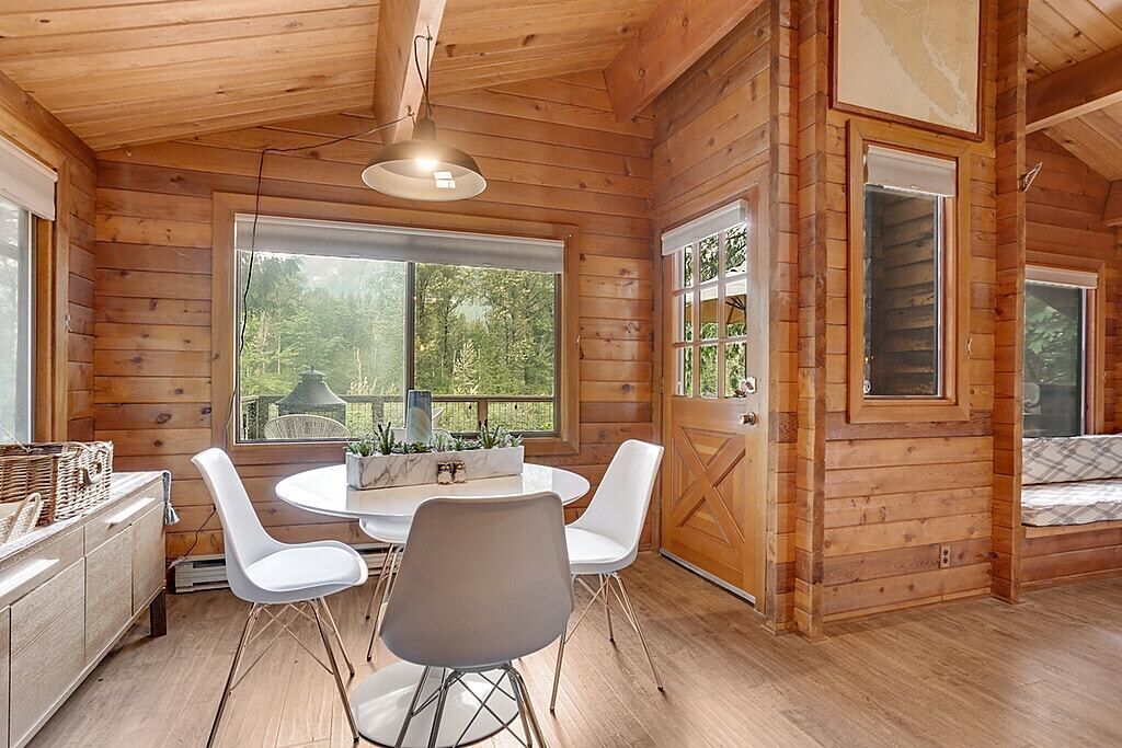 Teague's Cabin on the River Fantastic wood cabin right on the Skykomish river, nestled at the bottom of the Cascades and set among big Fir trees in idyllic Gold Bar. This cabin retreat is 20 min to Stevens Pass & minutes to Wallace Falls State park, Lake Isabel, Lake Serene, and more, offering all year activities such as snowshoeing, skiing, kayaking, and hiking. Air mattress available for up to 4 guests total.Check-in at 4PM or later and Checkout by 11AM.Amenities:Outdoor patio fire pitCoffeeHigh speed WI-FIOutdoor LoungeCoffee MachineAmazon FirestickFully stocked kitchen (pots, pans, utensils, toaster, kettle, and more)Washer and DryerBRING EARPLUGS if you're a light sleeper as some reviewers suggest. We supply generic ones. Cabin is in community off of Highway 2 and a train runs byBring your own firewood for indoor stove (fireplace)Guest accessYou'll have access to the whole house and contactless checkin. However, if you bring a dog, it must be potty and house trained. Please also pick up after your dog out of respect for other guests!Other things to noteThere is a train that goes by a few times / day. If you're a light sleeper, it may bother you.We do no accommodate early check-ins. Please check in at 4PM or later.There will be a $25 fee for every 15 minutes per late check out. Our cleaners are on a schedule and it takes a few hours to clean up each and every time. Out of respect for other guests and out cleaners, we ask that checkout is on time.There will be a $35 fee for every extra set of linens used. This is because we have to take them to the cleaners and pay for the additional time and cost to clean extra linens. For every stay, we make sure to set aside enough linens for the # of guests staying with us.
