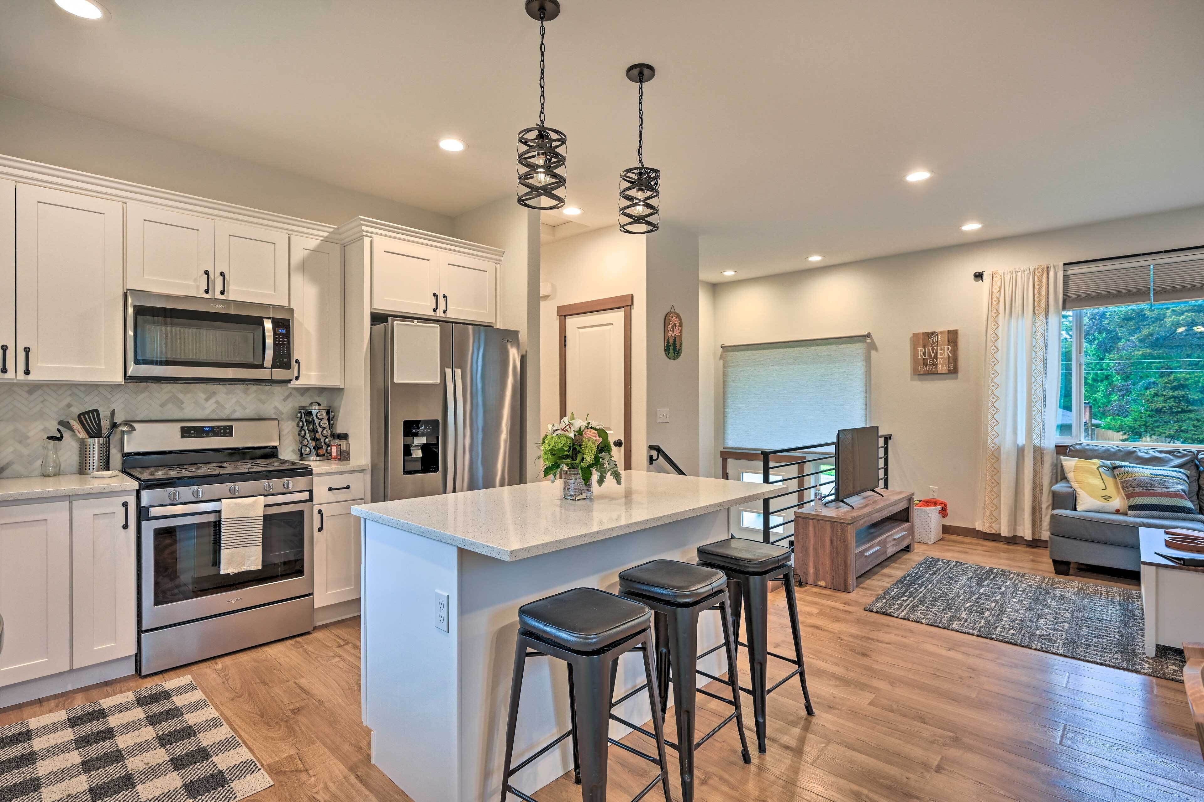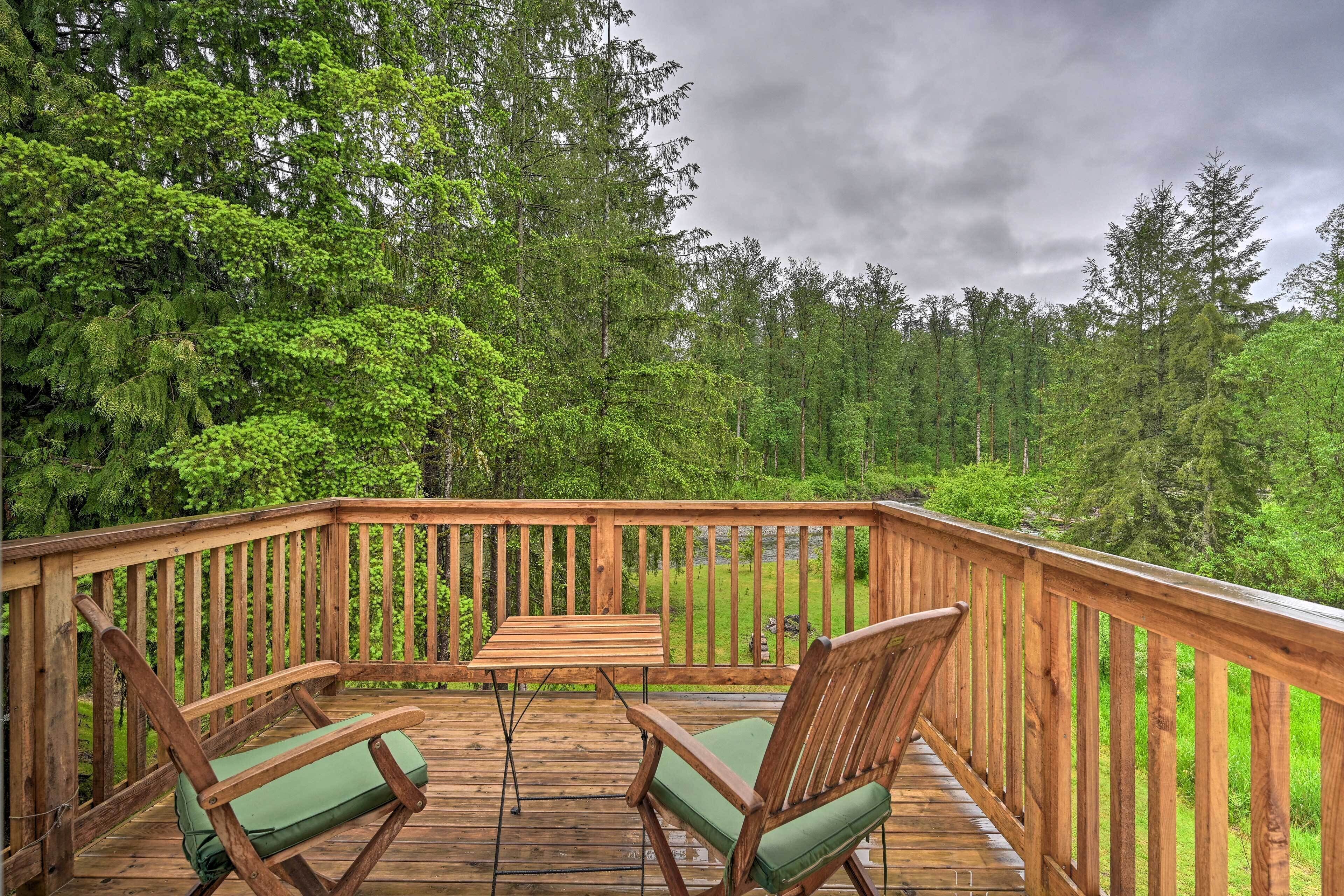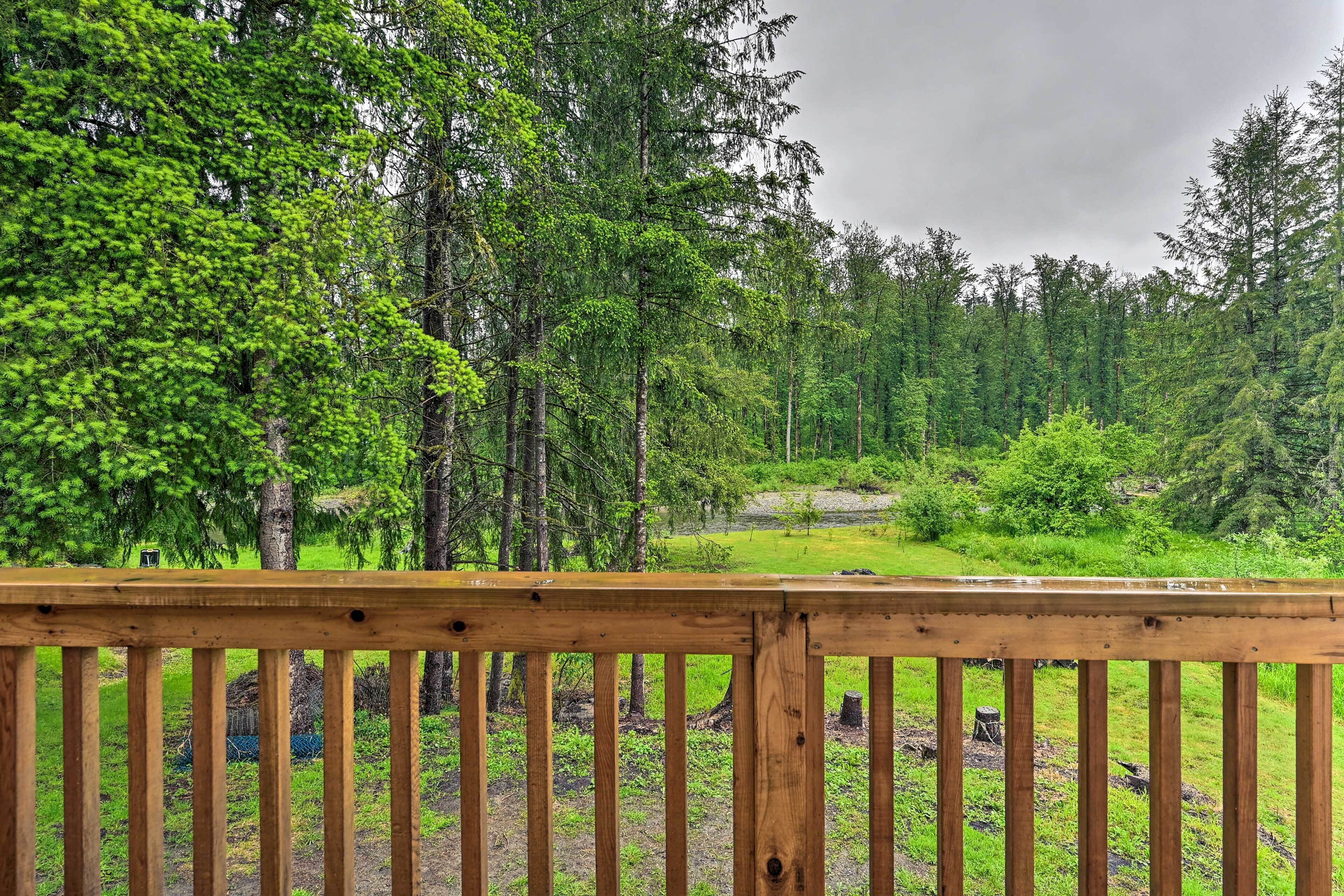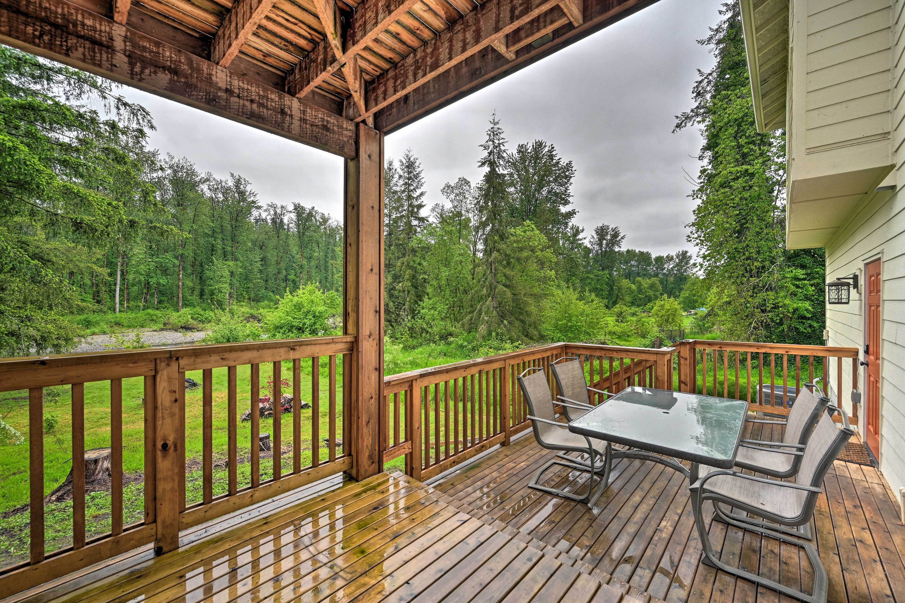 Lake Stevens Getaway: 2 Decks w/ River Views Between the Cascade Mountains and the Pilchuck River, this charming vacation rental home has picturesque views all around. Take in the sights on either of the furnished patios with a glass of wine or dinner cooked in the well-equipped kitchen. Bring the beach chairs and towels to Lake Stevens, just 4 miles away. After you’ve admired the natural views, d...