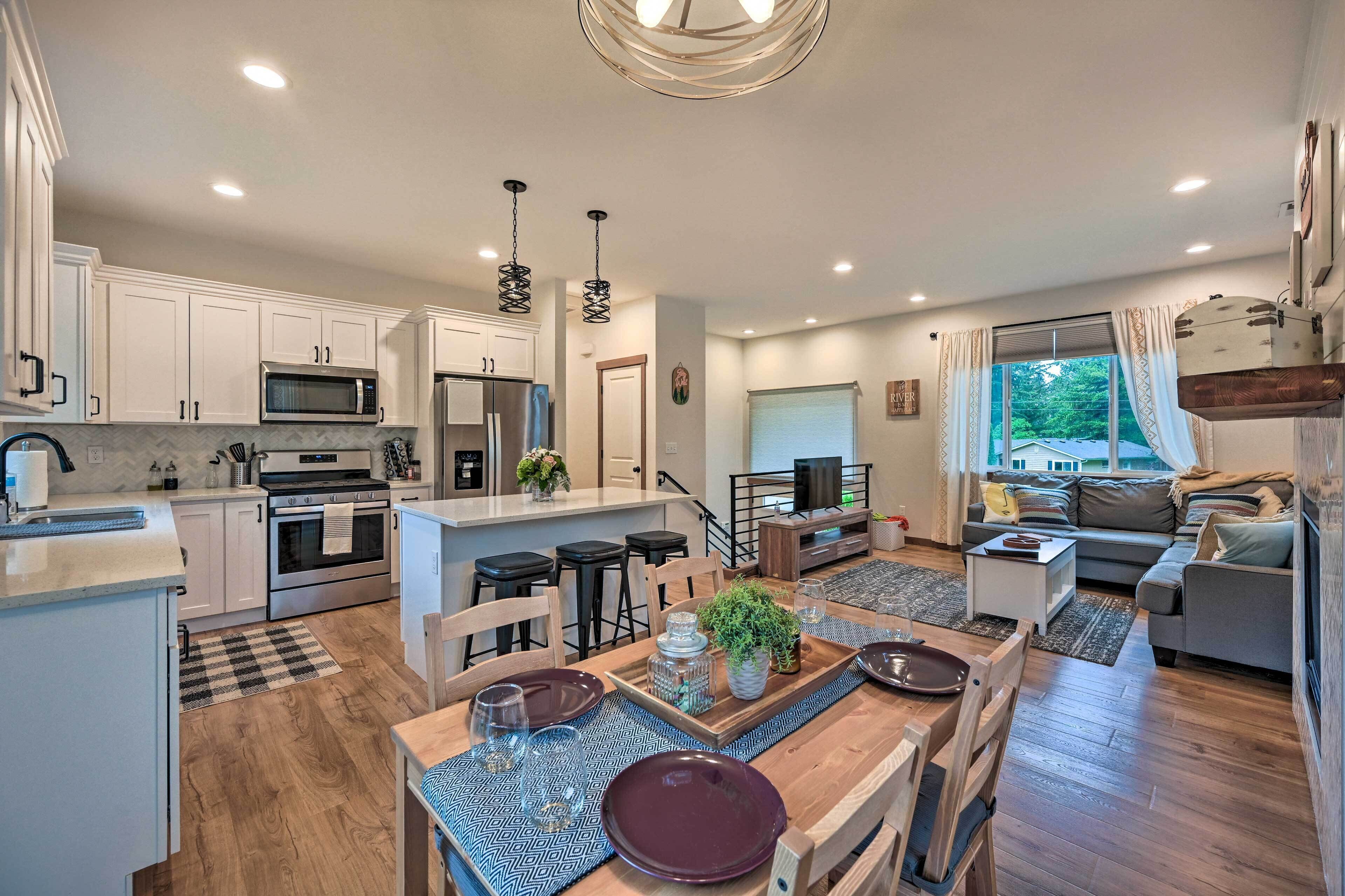 Lake Stevens Getaway: 2 Decks w/ River Views Between the Cascade Mountains and the Pilchuck River, this charming vacation rental home has picturesque views all around. Take in the sights on either of the furnished patios with a glass of wine or dinner cooked in the well-equipped kitchen. Bring the beach chairs and towels to Lake Stevens, just 4 miles away. After you’ve admired the natural views, drive 40 miles to Seattle to experience the iconic Space Needle! Enjoy all Puget Sound has to offer in this modern 3-bedroom, 3-bathroom home!-- THE PROPERTY --Laptop-Friendly Workspace w/ Free WiFi | Outdoor Dining | Open Floor Plan | Walk to Swimming Beach Bedroom 1: Queen Bed | Bedroom 2: Queen Bed | Bedroom 3: Twin Bunk Bed | Additional Sleeping: Pack 'n PlayINDOOR LIVING: Fireplace, board games, books, flat-screen TV OUTDOOR LIVING: 2 furnished decks, beach chairs, beach towels KITCHEN: Crockpot, coffee maker, microwave, stovetop, oven, toaster, spices GENERAL: Central A/C & heating, clothing steamer, washer/dryer FAQ: Ring doorbell (facing entryway), stairs required to accessPARKING: Driveway (4 vehicles)-- THE LOCATION --BEACHES: North Lakeshore Swimming Beach (4.4 miles), Machias Pilchuk Rock Beach (5.5 miles), Davies Beach (7.1 miles), Pigeon Creek Beach (12.6 miles), Edgewater Beach Park (17.7 miles), Marina Beach Park (32.4 miles) EXPLORE OUTDOORS: Centennial Trail (11.7 miles), Lowell Riverfront Trail (13.9 miles), North Creek Trail (26.7 miles), Bridle Trails State Park (32.4 miles), Wallace Falls State Park (34.1 miles) VINEYARDS & BREWERIES: Lantz Cellars (8.6 miles), Sound to Summit Brewing (11.9 miles), Haywire Brewing (13.6 miles), Market Vineyards (26.1 miles), Dancing Fish Vineyards (34.6 miles, includes ferry), Chateau NoElle Vineyards & Winery (53.9 miles), Vintage by Port Townsend Vineyards (72.6 miles) SEATTLE: Fremont Troll (37.5 miles), Museum of Pop Culture (39.3 miles), Space Needle (39.4 miles), Pike Place Market (39.9 miles), Olympic Sculpture Park (40.0 miles), The Museum of Flight (48.2 miles)AIRPORT: Seattle-Tacoma International Airport (51.4 miles)-- REST EASY WITH US --Evolve makes it easy to find and book properties you’ll never want to leave. You can relax knowing that our properties will always be ready for you and that we’ll answer the phone 24/7. Even better, if anything is off about your stay, we’ll make it right. You can count on our homes and our people to make you feel welcome--because we know what vacation means to you.-- POLICIES --- No smoking- No pets allowed- No events, parties, or large gatherings- Must be at least 25 years old to book- Additional fees and taxes may apply- Photo ID may be required upon check-in- NOTE: Your safety matters. This property features a Ring doorbell device with an exterior security camera facing the front outdoor entry including the front lawn, porch, and driveway. The camera does not look into any interior spaces. The camera actively records video and sound when motion is detected by the device or when the video doorbell button is pressed- NOTE: The property requires outdoor stairs to access the front and back doors. The property is a split-level home so stairs are required inside to access the main floor- NOTE: River access is available at a public beach, about a 7-minute walk or 3-minute drive from the property. Please do not drop from the yard to the river bank at the edge of the property, as this is not safe. You are welcome to enjoy the river from the edge of the bank. Use caution, as the bank can be unstable in places- NOTE: Fishing is only permitted with proper licensing on the public beach. The game warden is very strict in the area so please follow local guidelines