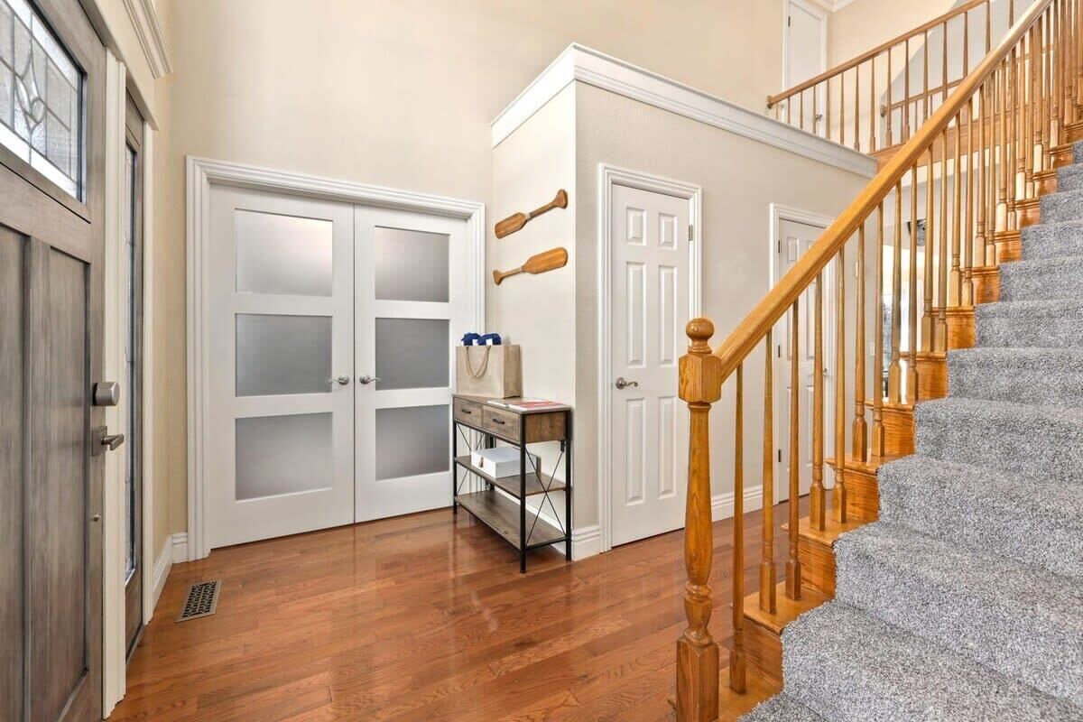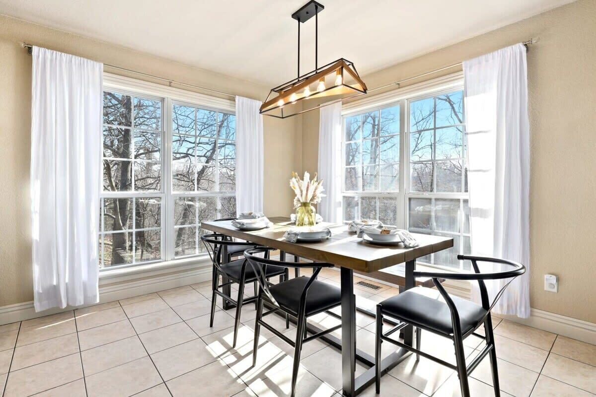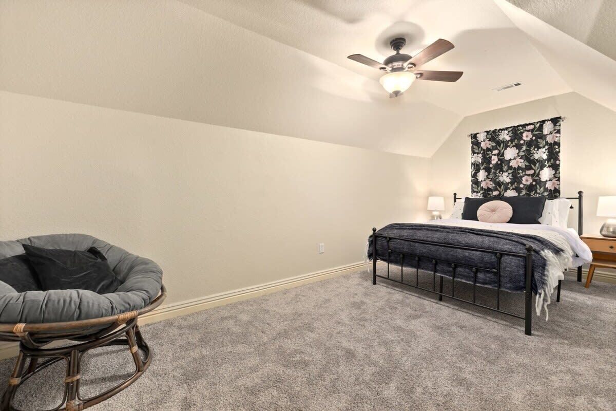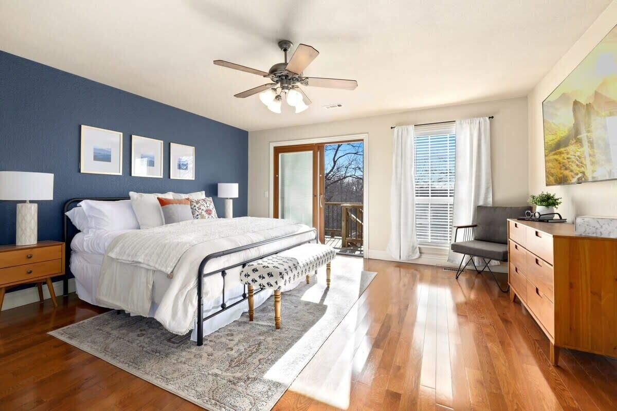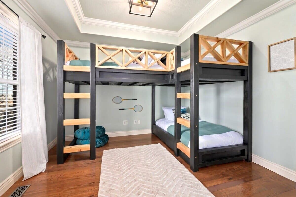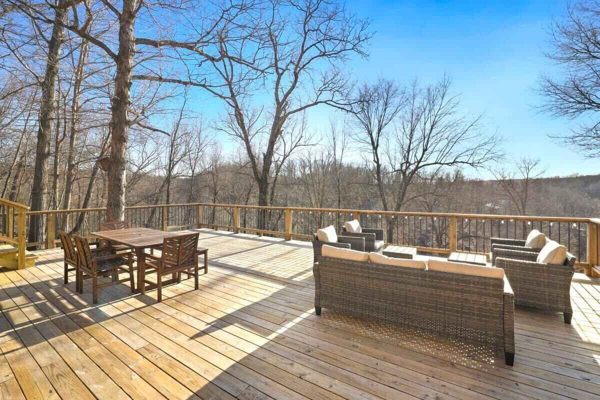 Blue Haven-Epic game room-Lake Views Summary:Round up your friends and family and escape to Blue Haven! Our 4-bedroom, 3.5-bath lake house sleeps 12 guests. Immerse yourself in entertainment with a game room that mirrors the ambiance of a night on the town; complete with 2 TV screens, a bar, basketball arcade game, ping pong, darts, baggo, and a pool table. Outside, enjoy lake views from the spacious deck or kick back by the fire pit! When it is time to hit the water, Hickory Creek Marina is just 3 miles away.The Space:Highlights:★ Epic climate controlled game room in the garage complete with 2 TVs, a bar, basketball arcade game, ping pong. pool, darts, and colorful LED lighting!★ HUGE outdoor deck with grill, seating, dinning table and fire pit!★ 3.4 miles from Hickory Creek Marina. ★ Lake look out point- follow the path from the back yard. ★ Sleeps 12! 2 King bedroom suites, Queen Bedroom, Bunk bedroom for 3, & pull out couches in the garage for 3. ★ Board games and playing cards provided in the living room. ★ Fully stocked kitchen with the essentials you'll need to whip up your favorite meals!★ Kid-friendly - Children's dinnerware available.★ Dog-Friendy with a small fee.Welcome to Blue Haven! When you walk in you will be greeted by our living room with tall ceilings and large windows to take in the scenery. This space is the perfect place to gather and enjoy the large smart tv, plush couches, fire place, bar cart, and various games. Head into the kitchen to find our dinning table for 6 and fully stocked kitchen. In the detached garage, is where you will find our game room! This room beats a night out on the town by having your own personal bar, 2 large smart Tvs, basketball arcade game, baggo, darts, ping pong, pool table, and a crazy amount of neon lighting. This is the place memories are made! When it is time to turn in for the night choose from one of our 5 bedrooms;1. The King Suite on the main floor has a smart tv, desk space, access to the back patio, and an attached full bathroom.2. The second king suite is downstairs and has a smart tv, access to the back patio, and an attached full bathroom. 3. The third bedroom has a queen sized bed, smart tv, desk space, and an attached full bathroom.4. The fourth bedroom has a bunk bed with 3 twin mattresses. 2 on top, and 1 on bottom. 5. The detached garage has a queen pull out couch and a twin pull out couch to sleep 3 more guests. Outside, step onto our double- deck back patio complete with a gas grill, lounge seating, dinning table, and fire pit with 4 Adirondack chairs. This is the perfect setting for enjoying conversation with friends, taking in wildlife views, or enjoying a meal al fresco! Follow the path down to the water from the backyard! Depending on water levels it may be high enough to hop in. Please note there is no dock access.Guest Access:------Water levels are subject to change at any time due to environmental factors outside of the host’s control which may impact the accessibility and appearance of the lake. Cancelations due to water levels will not be honored outside of the cancelation policy. Guests are solely responsible for preparing for their stays accordingly by checking water levels ahead of their stays.----- PLEASE NOTE: The dock in the backyard is not for guest use, it is owned by a neighbor.Guest Access and Amenities:Guests will have access to the entire pictured house, all appliances, any kitchen supplies, and all amenities. We provide amenities in the bathrooms, kitchen, and laundry room with enough to get you started on your trip. We do not provide excess for more than a couple of days' worth, and guests are responsible for purchasing these items for personal use if they run out during their stay. Exterior cameras may be at the property for security purposes.The Neighborhood:Our cozy lakeside home is located off of a beautiful, windy drive through a quiet neighborhood in Lowell, Arkansas! Enjoy lake views from the house or head to Hickory Creek Marina to get in. Drive just 10 minutes to town, 20 minutes to Springdale's Downtown, or 23 minutes to Rogers Downtown.Getting Around:Our house is located just 10 minutes from the main roads in Lowell. The house can park about 4-5 cars.Other Things to Note:★ Washer and Dryer for guest use. ★ Dog-Friendy with a small fee.House Rules Strictly Enforced:Parties or guest’s actions that result in disturbances, property damage, extensive extra cleaning, or smoking indoors will incur a fine of $1,000.This property only allows dogs, with a maximum of 3, and requires a fee of $40 per dog to be paid prior to your stay. Dogs discovered at the property without prior notice or cats discovered at the property will incur a fine of $400.Unauthorized checkout delays will incur a fine of $100 per hour.