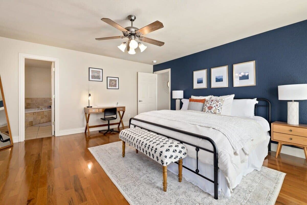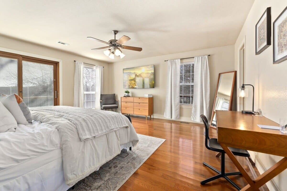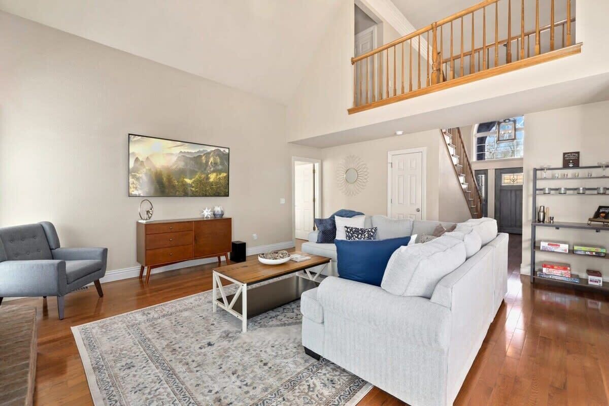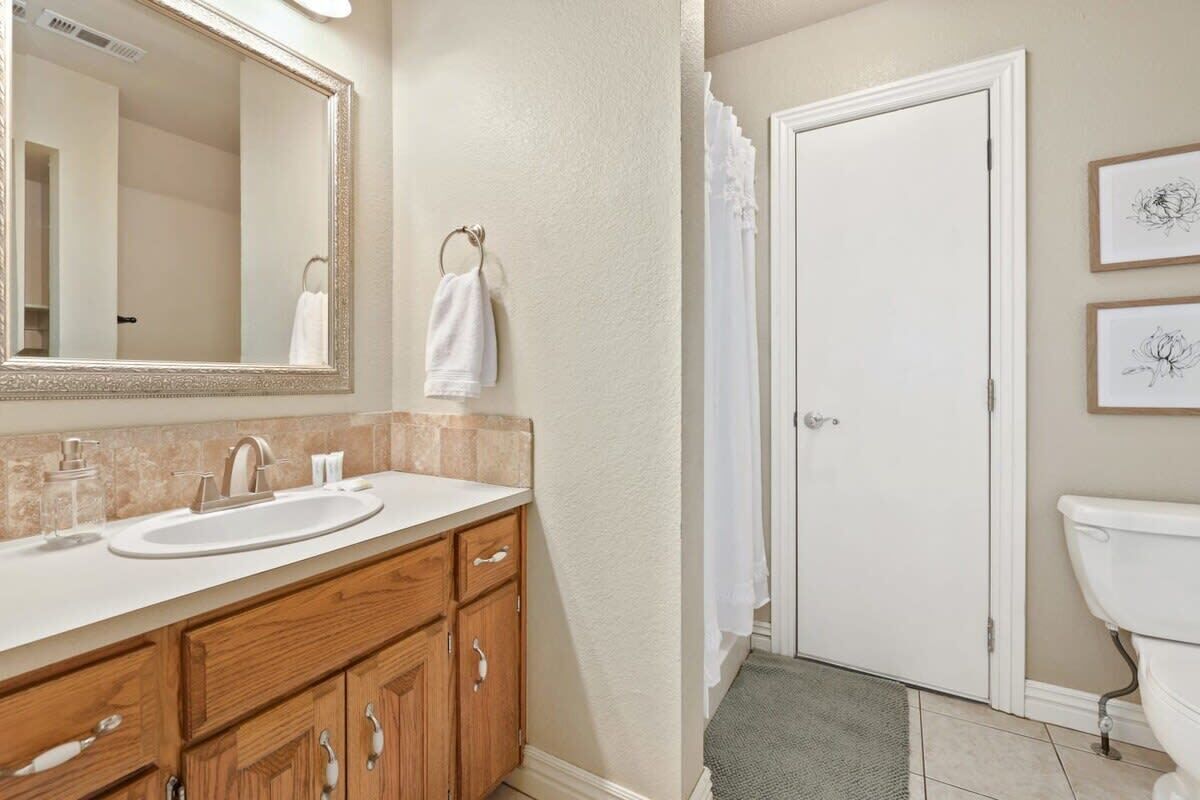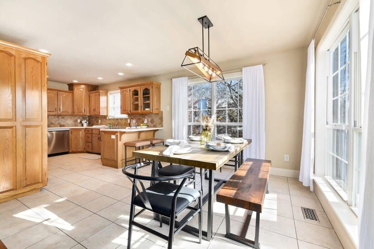 Blue Haven-Epic game room-Lake Views Summary:Round up your friends and family and escape to Blue Haven! Our 4-bedroom, 3.5-bath lake house sleeps 12 guests. Immerse yourself in entertainment with a game room that mirrors the ambiance of a night on the town; complete with 2 TV screens, a bar, basketball arcade game, ping pong, darts, baggo, and a pool table. Outside, enjoy lake views from the spacious deck or kick back by the fire pit! When it is time to hit the water, Hickory Creek Marina is just 3 miles away.The Space:Highlights:★ Epic climate controlled game room in the garage complete with 2 TVs, a bar, basketball arcade game, ping pong. pool, darts, and colorful LED lighting!★ HUGE outdoor deck with grill, seating, dinning table and fire pit!★ 3.4 miles from Hickory Creek Marina. ★ Lake look out point- follow the path from the back yard. ★ Sleeps 12! 2 King bedroom suites, Queen Bedroom, Bunk bedroom for 3, & pull out couches in the garage for 3. ★ Board games and playing cards provided in the living room. ★ Fully stocked kitchen with the essentials you'll need to whip up your favorite meals!★ Kid-friendly - Children's dinnerware available.★ Dog-Friendy with a small fee.Welcome to Blue Haven! When you walk in you will be greeted by our living room with tall ceilings and large windows to take in the scenery. This space is the perfect place to gather and enjoy the large smart tv, plush couches, fire place, bar cart, and various games. Head into the kitchen to find our dinning table for 6 and fully stocked kitchen. In the detached garage, is where you will find our game room! This room beats a night out on the town by having your own personal bar, 2 large smart Tvs, basketball arcade game, baggo, darts, ping pong, pool table, and a crazy amount of neon lighting. This is the place memories are made! When it is time to turn in for the night choose from one of our 5 bedrooms;1. The King Suite on the main floor has a smart tv, desk space, access to the back patio, and an attached full bathroom.2. The second king suite is downstairs and has a smart tv, access to the back patio, and an attached full bathroom. 3. The third bedroom has a queen sized bed, smart tv, desk space, and an attached full bathroom.4. The fourth bedroom has a bunk bed with 3 twin mattresses. 2 on top, and 1 on bottom. 5. The detached garage has a queen pull out couch and a twin pull out couch to sleep 3 more guests. Outside, step onto our double- deck back patio complete with a gas grill, lounge seating, dinning table, and fire pit with 4 Adirondack chairs. This is the perfect setting for enjoying conversation with friends, taking in wildlife views, or enjoying a meal al fresco! Follow the path down to the water from the backyard! Depending on water levels it may be high enough to hop in. Please note there is no dock access.Guest Access:------Water levels are subject to change at any time due to environmental factors outside of the host’s control which may impact the accessibility and appearance of the lake. Cancelations due to water levels will not be honored outside of the cancelation policy. Guests are solely responsible for preparing for their stays accordingly by checking water levels ahead of their stays.----- PLEASE NOTE: The dock in the backyard is not for guest use, it is owned by a neighbor.Guest Access and Amenities:Guests will have access to the entire pictured house, all appliances, any kitchen supplies, and all amenities. We provide amenities in the bathrooms, kitchen, and laundry room with enough to get you started on your trip. We do not provide excess for more than a couple of days' worth, and guests are responsible for purchasing these items for personal use if they run out during their stay. Exterior cameras may be at the property for security purposes.The Neighborhood:Our cozy lakeside home is located off of a beautiful, windy drive through a quiet neighborhood in Lowell, Arkansas! Enjoy lake views from the house or head to Hickory Creek Marina to get in. Drive just 10 minutes to town, 20 minutes to Springdale's Downtown, or 23 minutes to Rogers Downtown.Getting Around:Our house is located just 10 minutes from the main roads in Lowell. The house can park about 4-5 cars.Other Things to Note:★ Washer and Dryer for guest use. ★ Dog-Friendy with a small fee.House Rules Strictly Enforced:Parties or guest’s actions that result in disturbances, property damage, extensive extra cleaning, or smoking indoors will incur a fine of $1,000.This property only allows dogs, with a maximum of 3, and requires a fee of $40 per dog to be paid prior to your stay. Dogs discovered at the property without prior notice or cats discovered at the property will incur a fine of $400.Unauthorized checkout delays will incur a fine of $100 per hour.