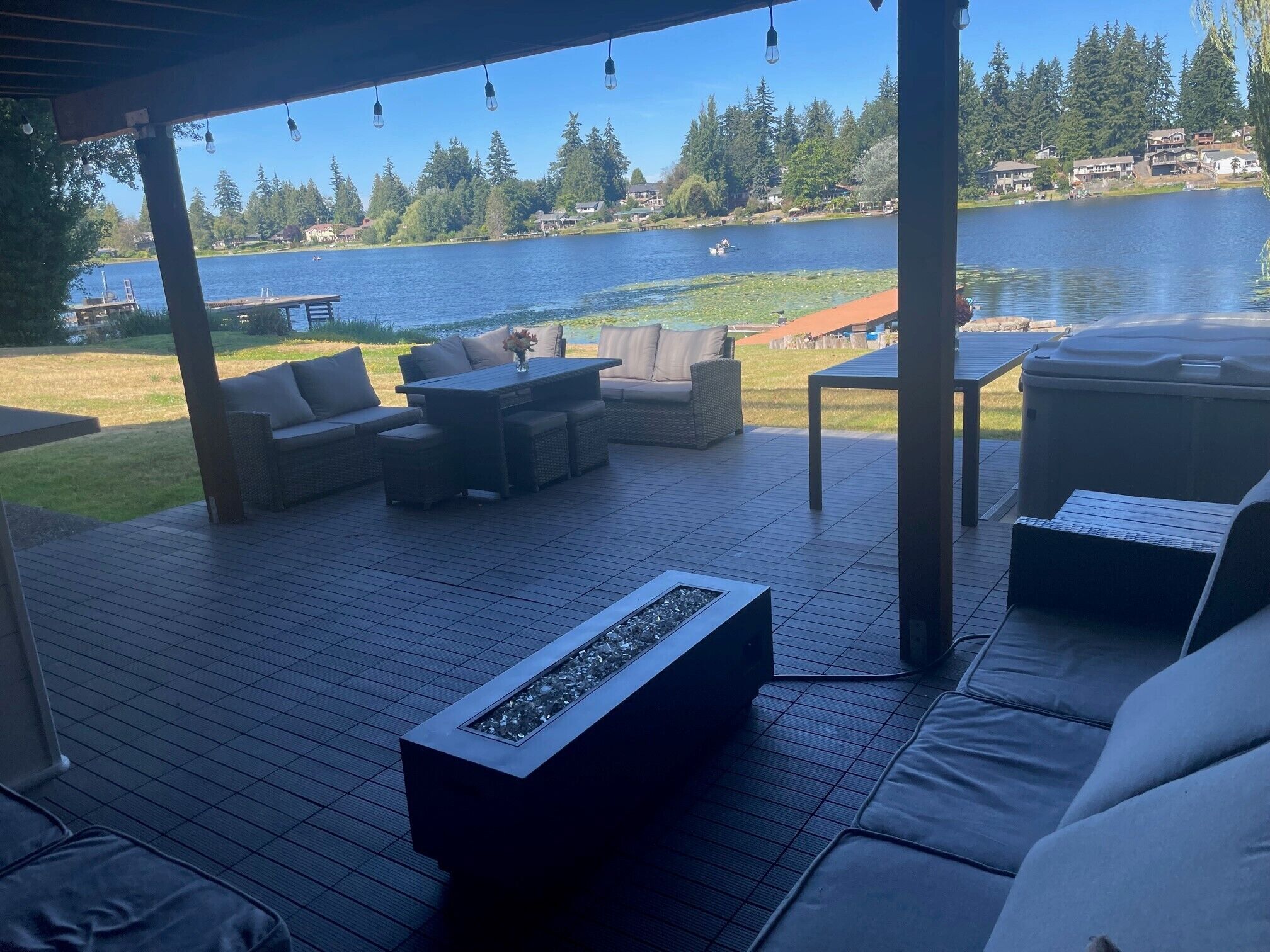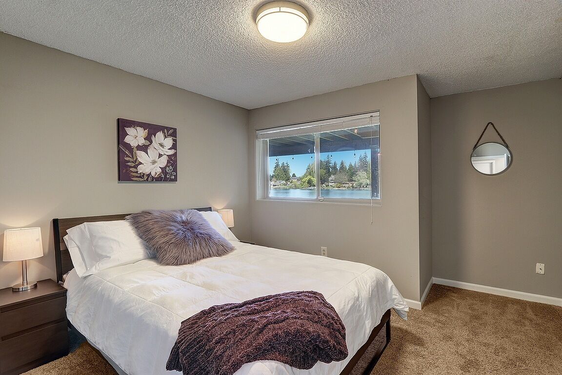 Lake Serene Beachfront, Lower- Level Unit Experience a comfortable and relaxing vacation with beautiful, Serene Lake views. Well suited for families, a get-away weekend with friends or business travelers. The property comes with a spacious backyard, Large patio & hot tub. Enjoy access to the beautiful lake and the houses Private Dock where you can swim, paddle board, pedal boat or kayak. Escape the stresses of city life in this lakefront beauty just minutes to I-5. This property is assured to provide an amazing experience! The Property Also has a Separate Studio with Separate Entrance with Shared access to Beach and Dock.The Property has Visible Motion lighting and Camera's around the Exterior Entrances/Exits of the Home.