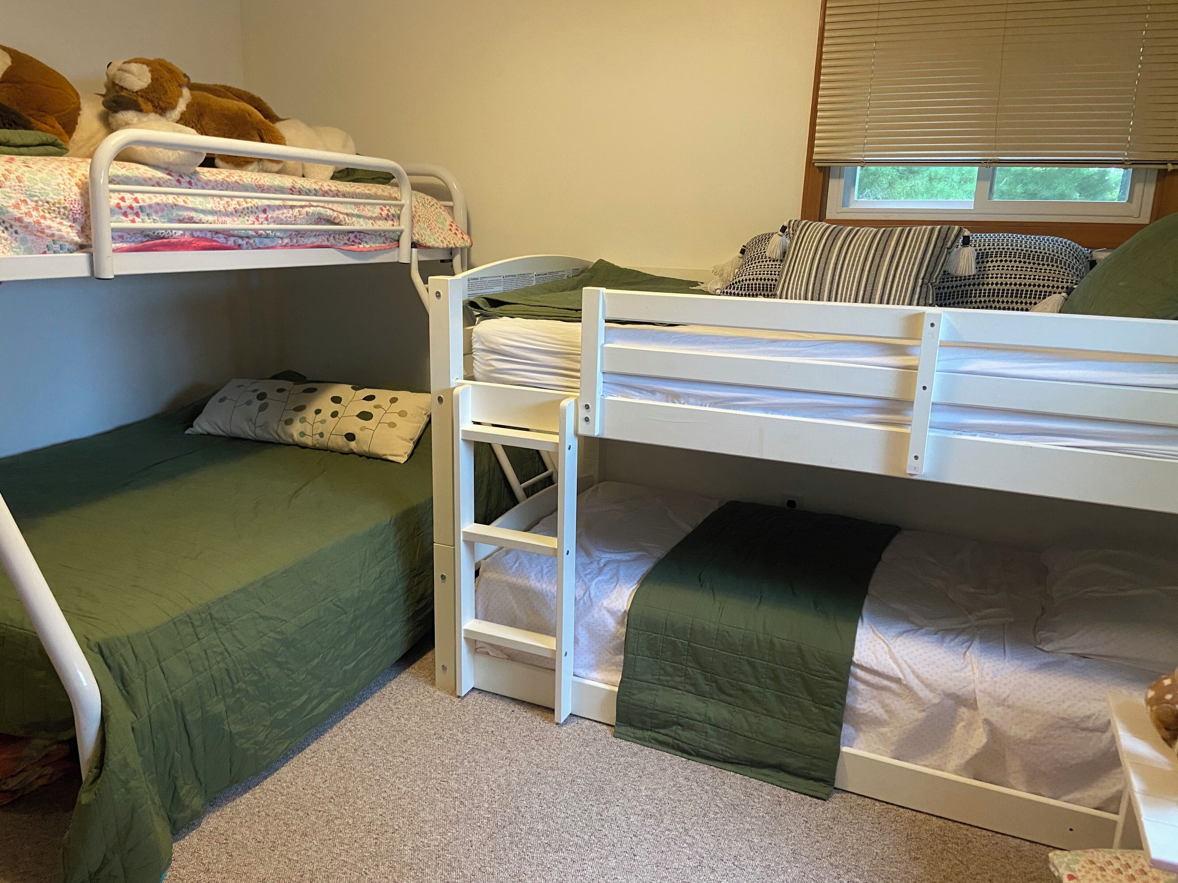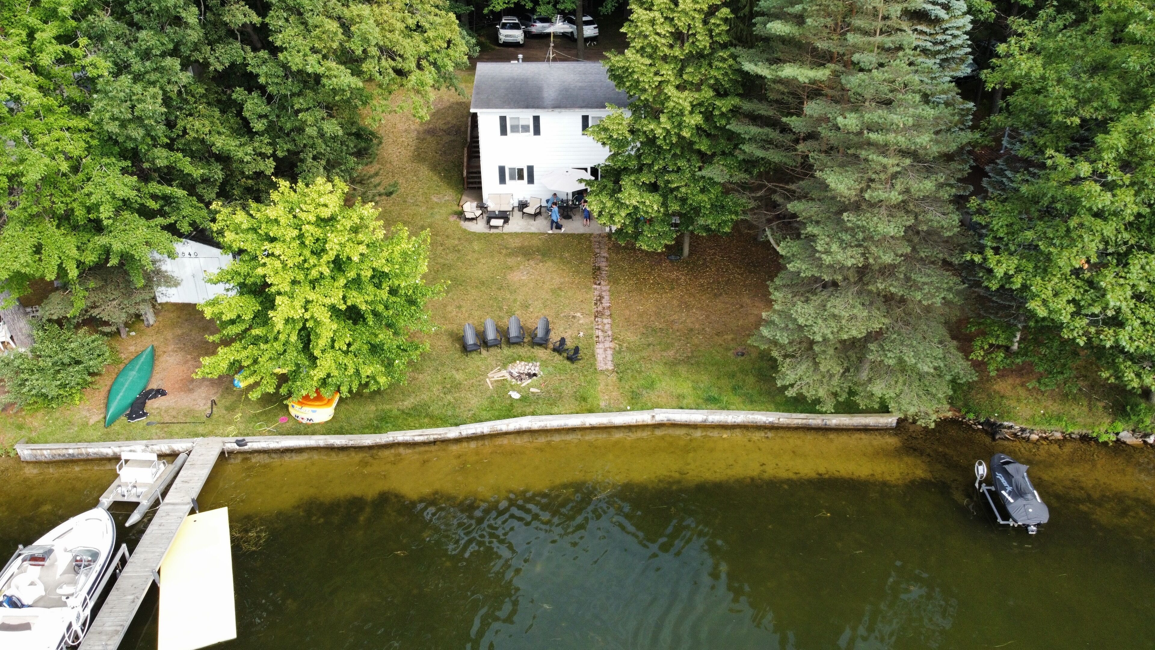 Charming Lakefront Cottage on All Sports Lake Relax and enjoy our spacious 1200 sf lakeside cottage on all-sports Lake Mecosta. Well-maintained, the inside features an open living space that opens up to stunning lake views and large yard.DOWNSTAIRS - The fully equipped kitchen, includes a stove, oven, microwave, dishwasher, fridge, and a cozy breakfast bar with stools. It is open to the living room and other sitting area which opens to stunning lake views. Washer and dryer included. TV comes with a large collection of DVDs for children and adults. Internet also available.UPSTAIRS - Master bedroom includes queen bed with direct access to full-bathroom. The bright guest bedroom (full bed) and cheerful 'bunkroom' (sleeping 4-5) are also upstairs. All bedrooms include large closets and dressers for storage. A baby crib and highchair are also available.OUTSIDE - Large trees frame the cottage creating lots of shade in the afternoons. A green lawn slopes gradually around the house to a flat grassy area between the house and lake. We have 100 ft of private lawn which leads to the lake with a nice sandy, shallow bottom to wade in; a dock, fire pit, gas grill, lawn games, canoe and paddle boat are all included.NEARBY - Country Corner is just five minutes away - there you will find a gas station, a convenience store, grocery store with movie rentals, a pizza restaurant, a family restaurant (Antlers), a fishing license office, a post office, banks, two health centers, a beauty parlor, a fudge shop, a flower shop, and tool store (Ace Hardware). The Royal, St. Ives and Tullymore golf courses also have their own restaurants, and mini-golf. If you like wine or cider, there is a winery, Young Farms, that has weekly food trucks and live music as well - definitely worth a visit and just a short 8 minute drive away!