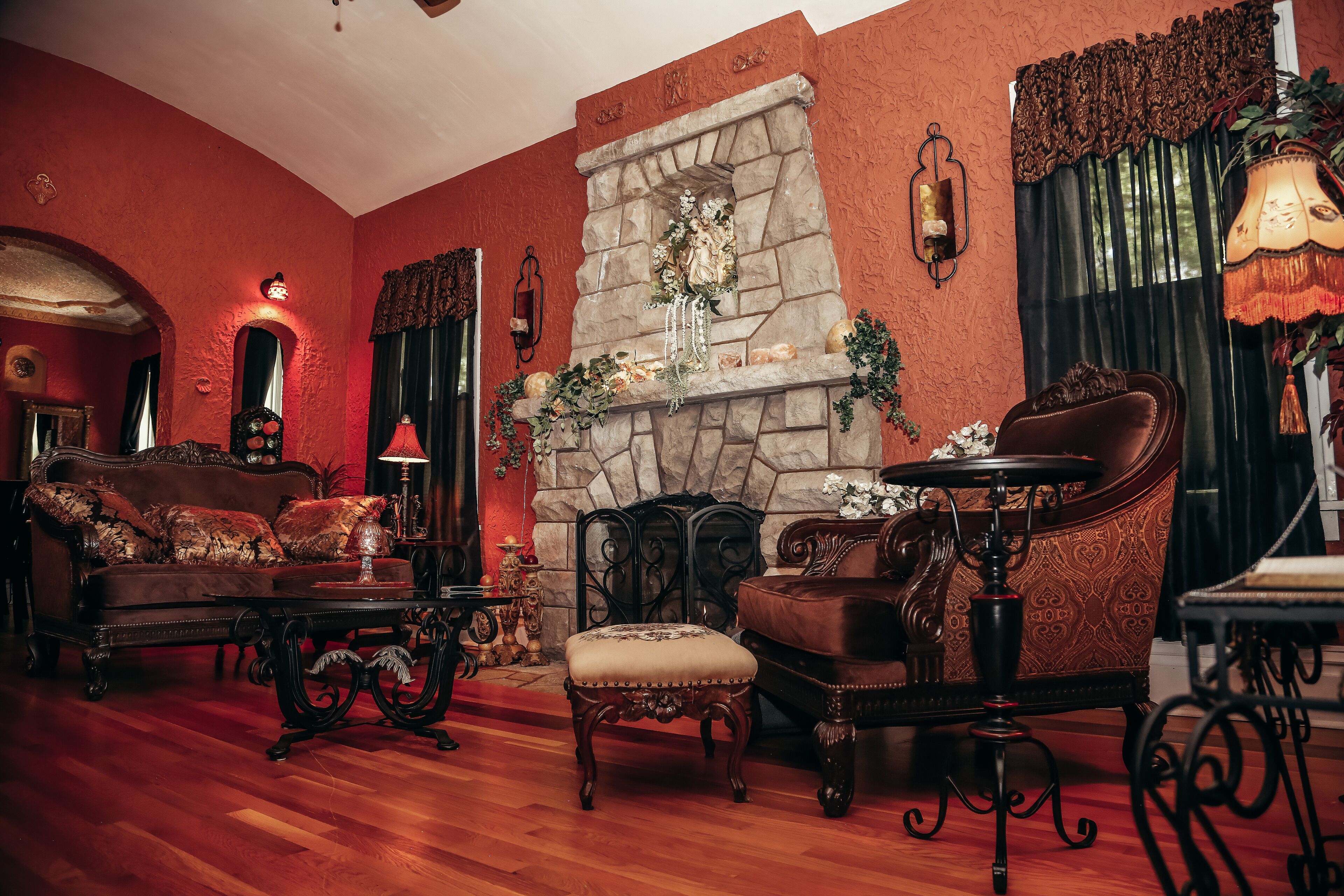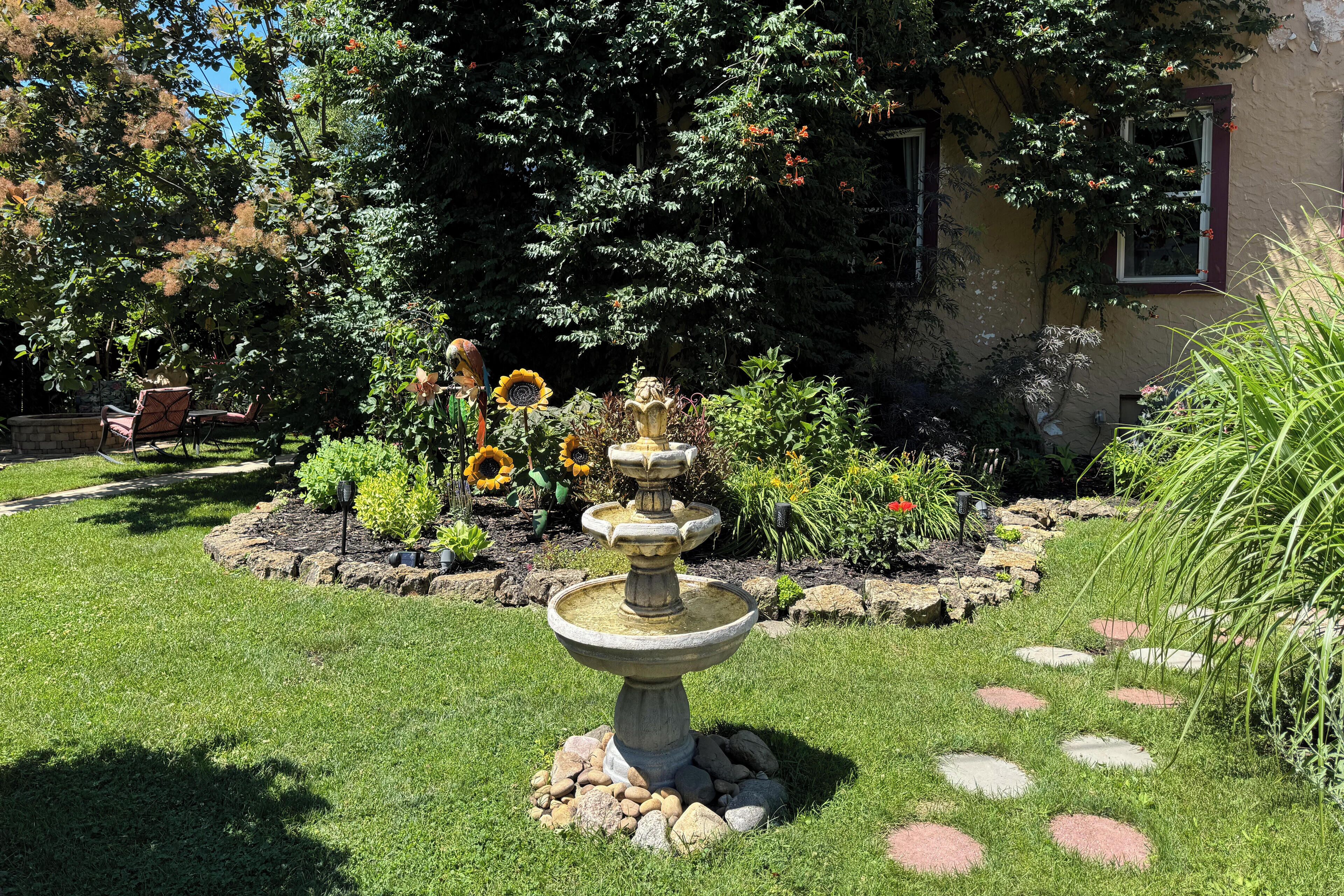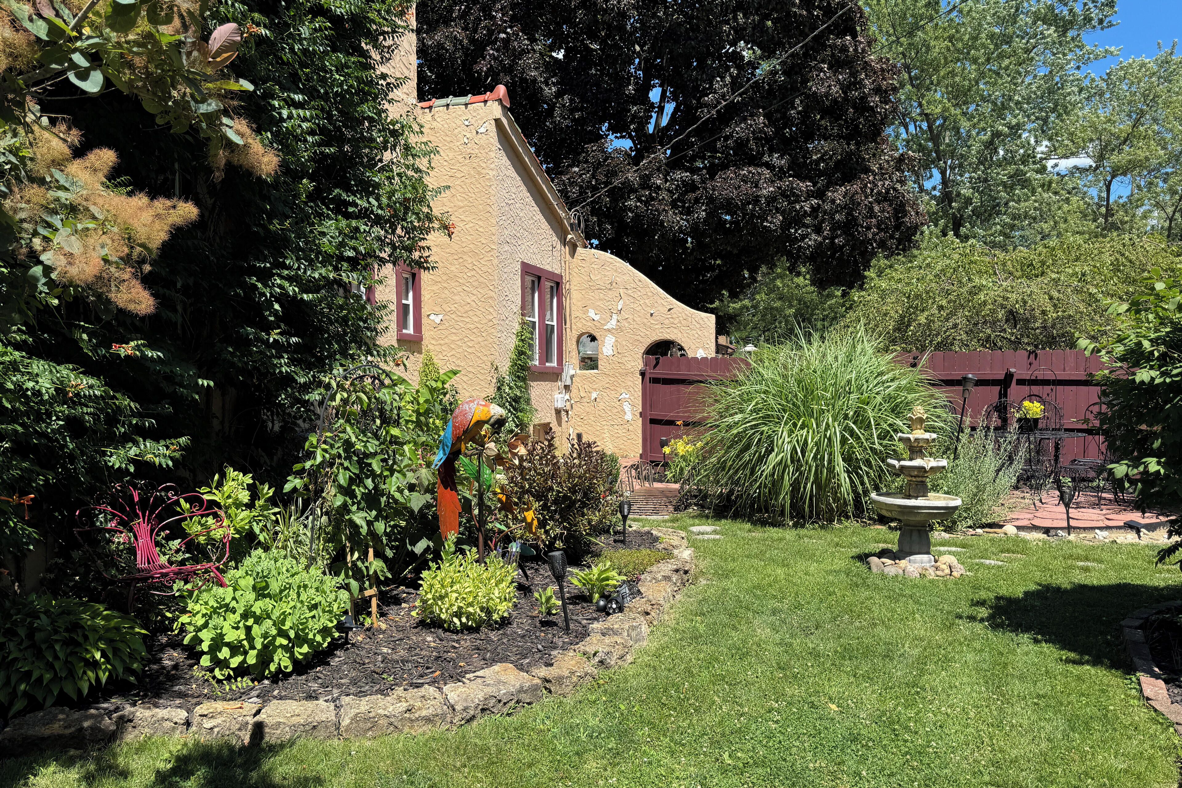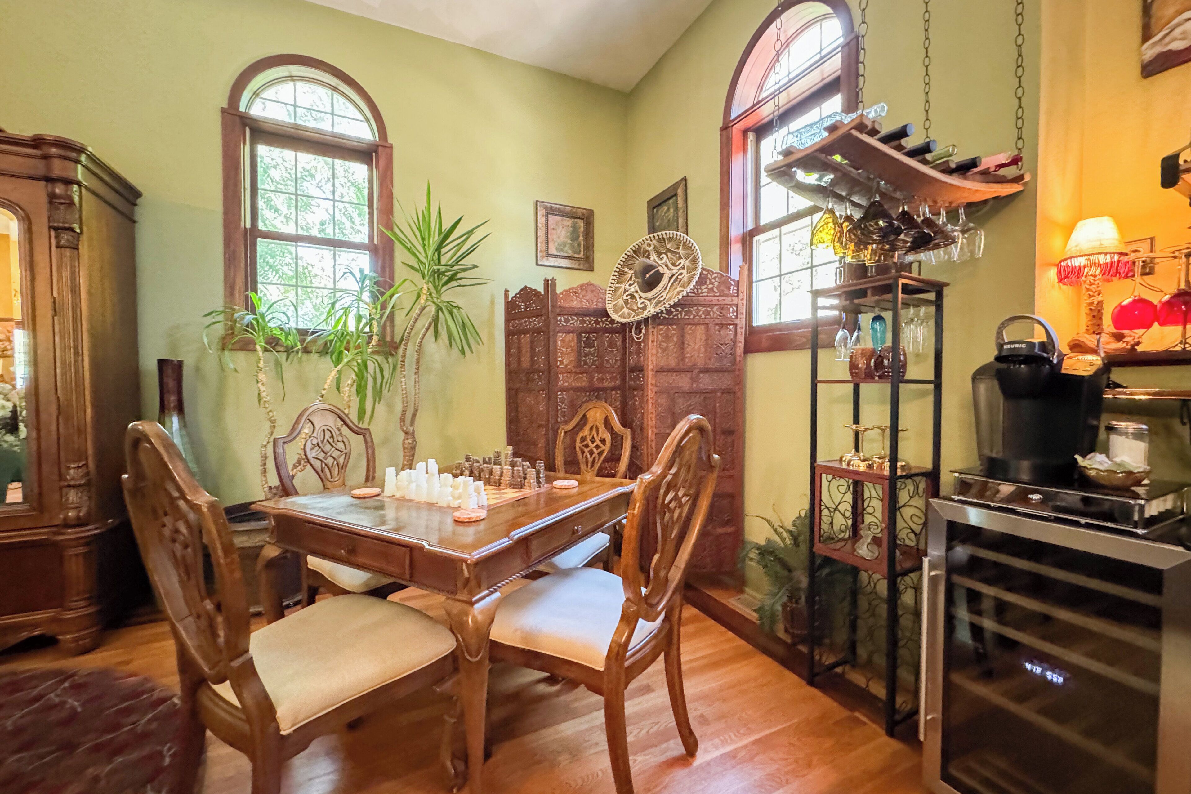 Hidden Gem SLEEPS 10+! Ask about Mon-Thurs SPECIAL! Stay 2 nights, get one free Unique to Northern Illinois, this Spanish style Villa boasts five patios, a furnished balcony, a gazebo for the perfect small wedding and capacity of 10 + for sleeping. An 1886 outdoor dry Cantina with funk is only one of the many surprises you will find as you look at every turn to something unexpected. This property is filled with beautiful furnishings and offers a gas fireplace, Bar & Coffee Bar, game table, two TVs hidden in beautiful armoires, many seating areas, a furnished balcony off of the upper level that boasts a 12 foot ceiling. A large walk in shower on the upper level and a jet tub in the lower bathroom offers any level of self-care desired.UPDATE!New remodel adds 7 ARCADES, ANOTHER BAR WITH TV AND SOUND SYSTEM, MORE SLEEPING CAPACITY, ANOTHER FULL BATHROOM WITH SHOWER, AND MORE!