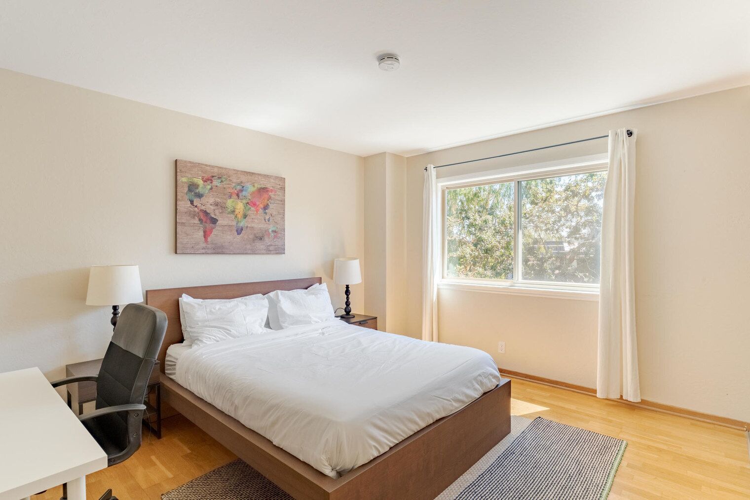 Hip Menlo Park 3BR w/ Pool + Patio, nr Great Schools, by Blueground Feel at home wherever you choose to live with Blueground. You’ll love this bright Menlo Park furnished three bedroom apartment with its modern decor, fully equipped kitchen, and comfortable living room . Ideally located, you’re close to all the best that South Bay has to offer! (ID #SFO1532)Designed with you in mindAs with any Blueground apartment, you’ll find a thoughtfully designed space complete with beautiful furniture and a fully-equipped kitchen in this three bedroom property. And, thanks to our superior quality mattresses, luxury linens, and towels, you can relax knowing you’ll always feel comfortably at home. When you’re ready for some fun, you can take in the South Bay vibes or bring the entertainment to you with the premium wireless speaker or smart TV. Sleeping arrangements Queen Bed, 63in/160cm Queen Bed, 63in/160cm Queen Bed, 63in/160cmAmenitiesBuilding amenities unique to this three bedroom apartment include an on-site: - Dryer in building - Swimming pool - Washing machine in building - Parking - Pets allowedArrival and ongoing supportThe entire apartment is yours to enjoy! You’ll either be personally greeted by a Blueground team member or given self check-in instructions.Throughout your stay, you’ll have access to our Client Experience team through the Blueground App. You can schedule additional cleanings, submit maintenance requests, and view our neighborhood recommendations with just a few taps.We’ll share all details upon confirmation of your stay.Ideally LocatedThis furnished home is located in Menlo Park which is directly north of Palo Alto. Here residents are friendly, the streets are lined with trees, and there are parks dotted throughout the neighborhoods. This city is home to many venture capital firms, primarily found on the infamous Sand Hill Road. There is a Caltrain station that can take you all the way north to San Francisco or as far south as San Jose.Other things to noteBuilding amenities may have an extra cost.This Blueground apartment has flexible lease options, allowing you to book it for one month, a year, or more.Pets are welcome, though weight limits and breed restrictions apply and may incur fees.Parking is offered based on availability and is subject to a fee.Please keep in mind that this is a walk up building.We take great pride in ensuring every photo displayed is shot in our own units with our actual furnishings. That said, we regularly refresh our decor and furniture arrangement, which may differ from what’s pictured.A security deposit of $500 is required at booking, which will be returned within 2-4 weeks after the check-out, minus any deductible damages. Also note - There are stairs leading up to the entrance of this apartment, but no elevator