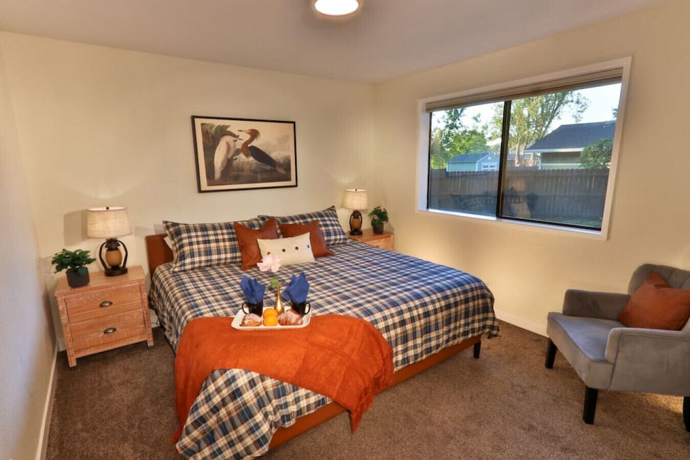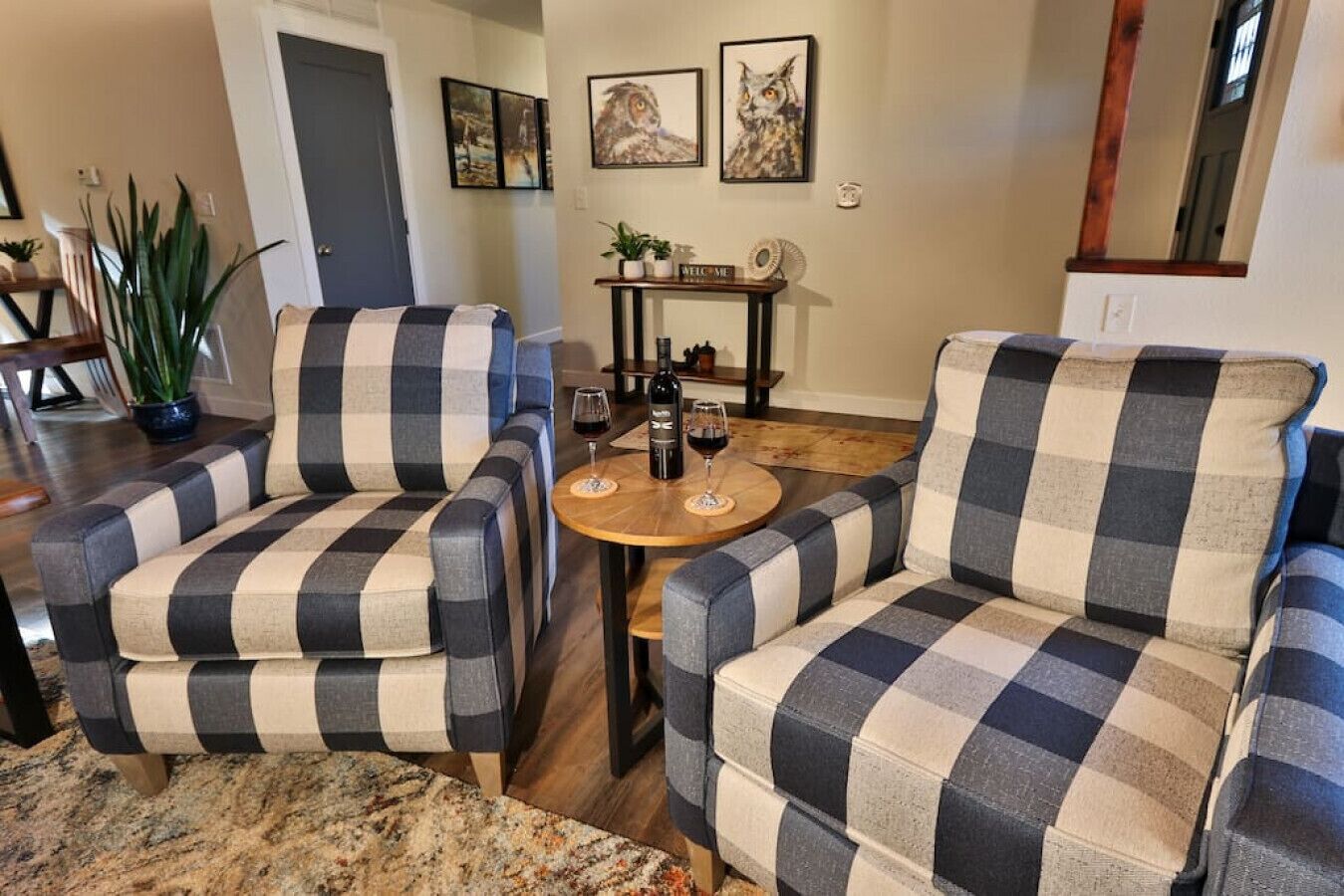The Pines, Newly Remodeled Lodge-Style Home in Quiet Cul-de-Sac Come relax and unwind at The Pines. Located in a quiet Cul-de-Sac nestled in a pine grove. Sip your coffee on the spacious back deck and watch the friendly squirrels frolic and play. Take an afternoon stroll to neighboring Lyon's Park; enjoy the nearby Southside wineries; prepare home cooked meals in the well equipped gourmet kitchen; stream your favorite movies in the large living room, then fall asleep in one of the 4 comfy king beds.4 king bedrooms, 2 full bathrooms, gourmet kitchen, 65" Smart TV (connect to your account), private backyard and outdoor space, outdoor dining, Weber gas BBQEntire home1 block to Lyon's Park, .5 miles to Walla Walla University, 3 miles to downtown Walla Walla, 5 minute drive to Southside wineries.