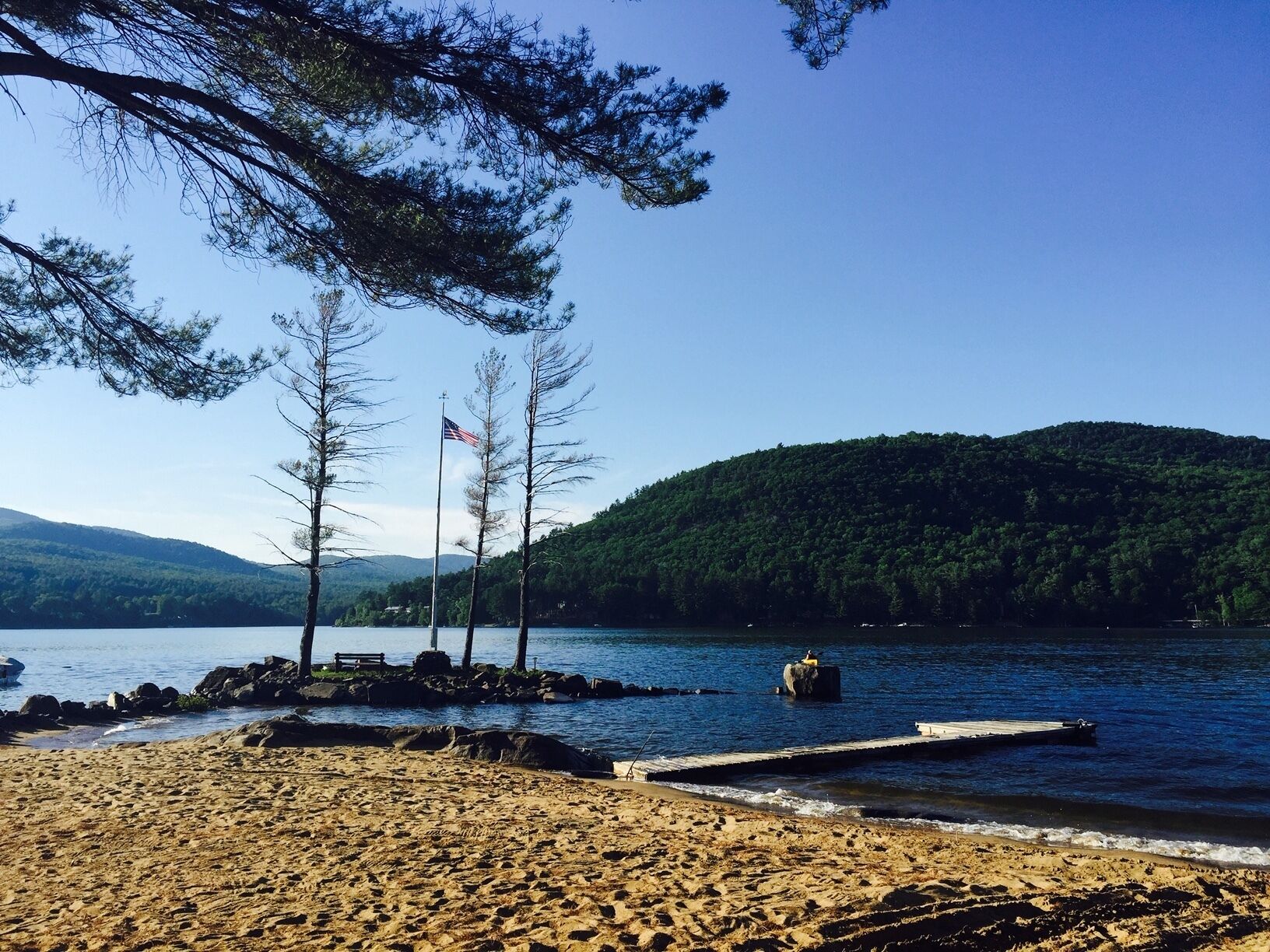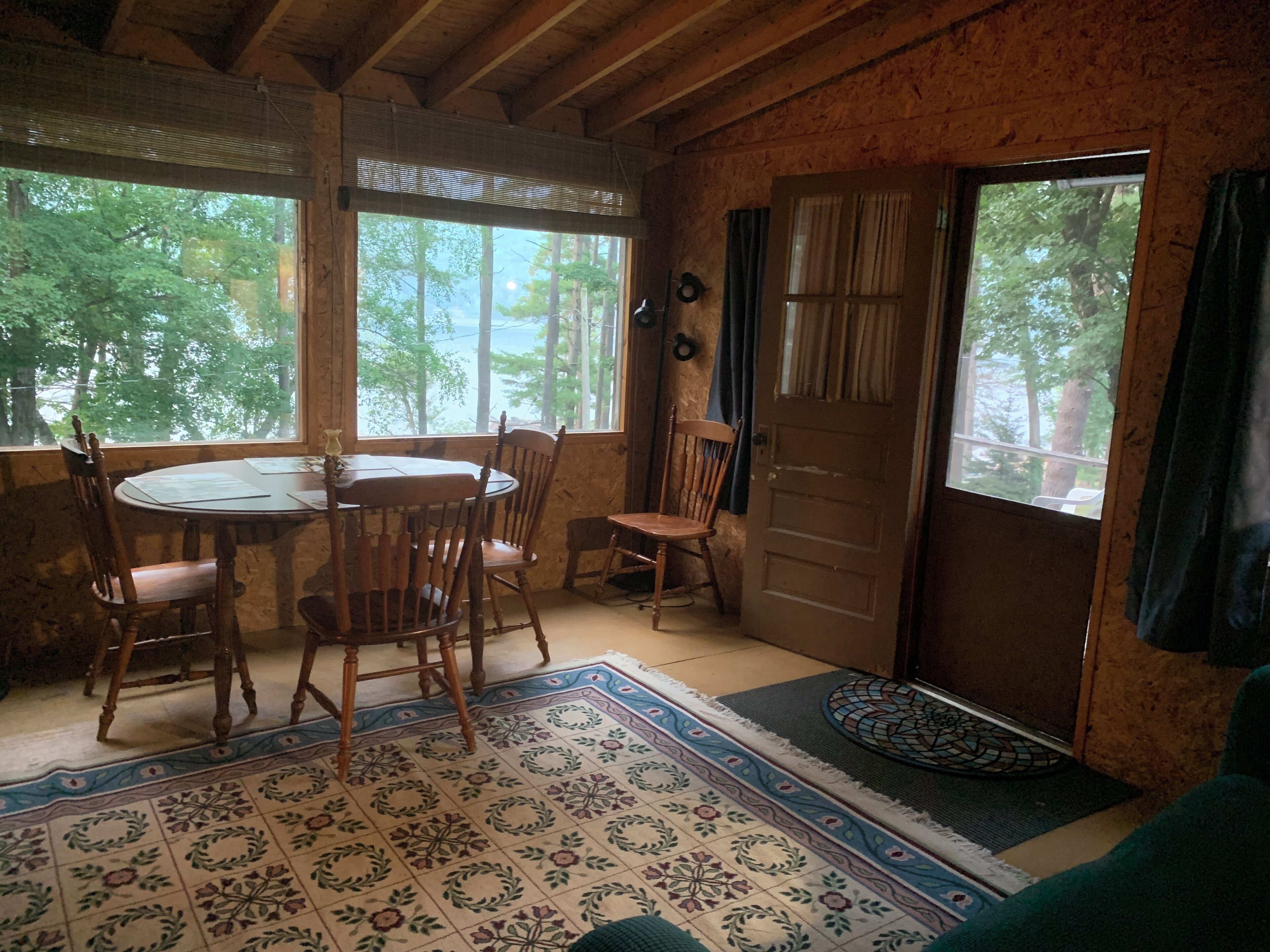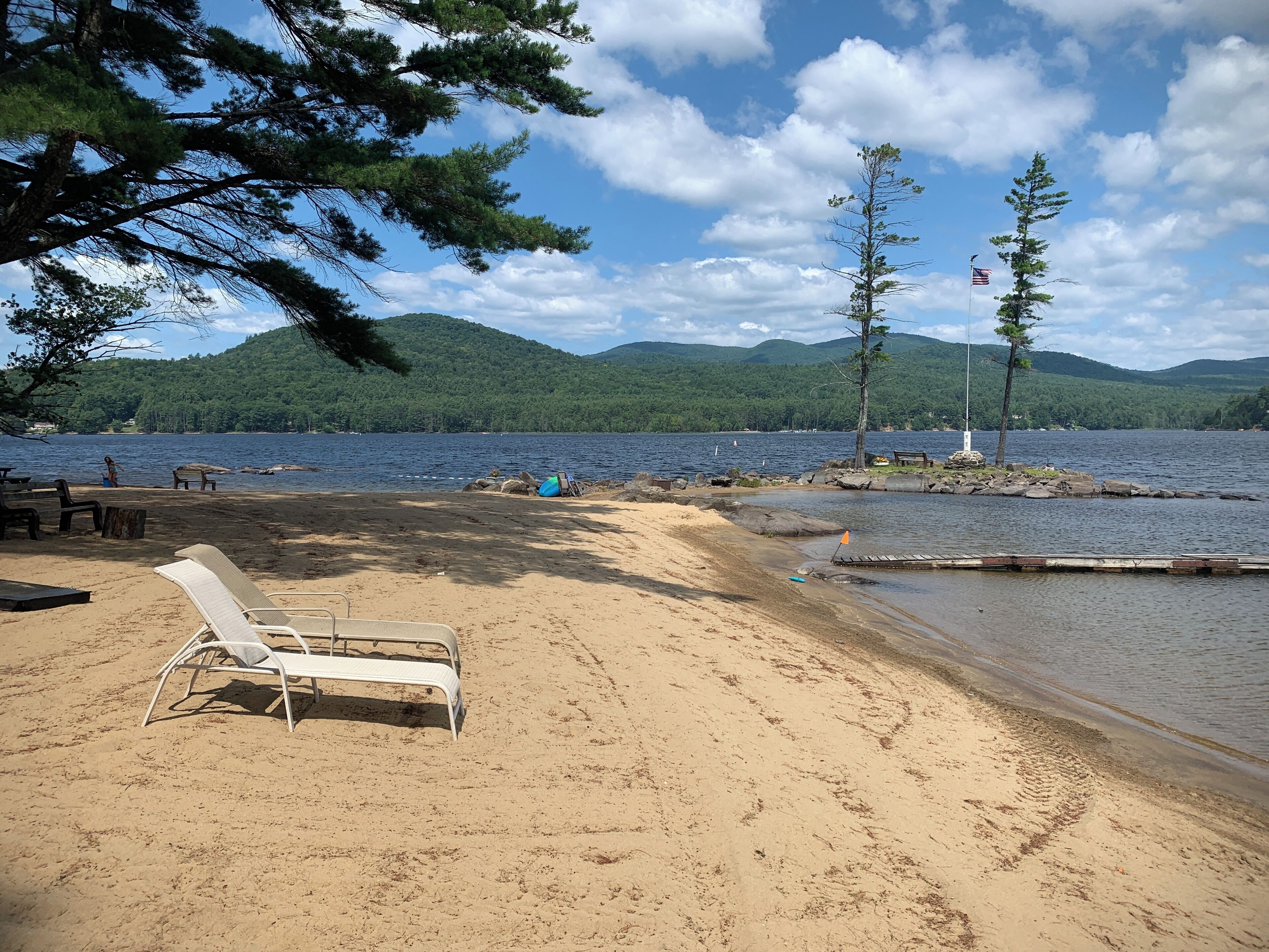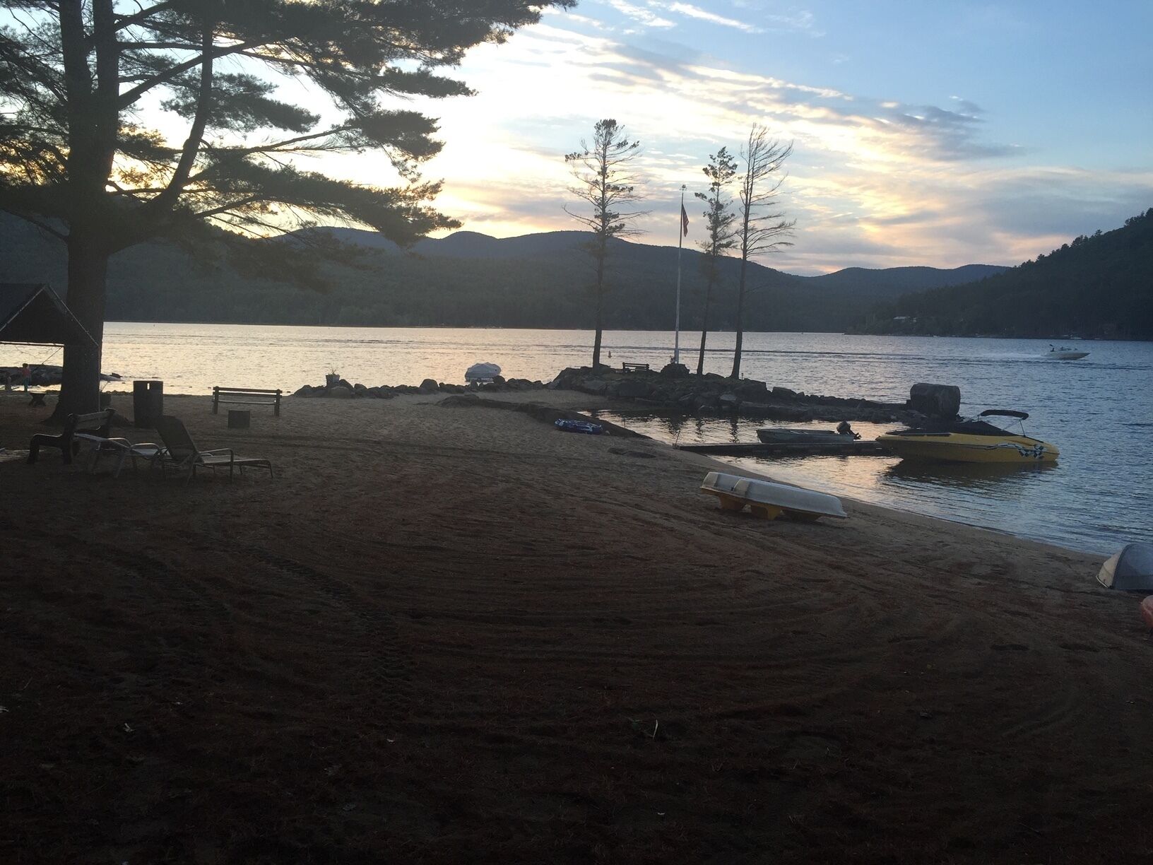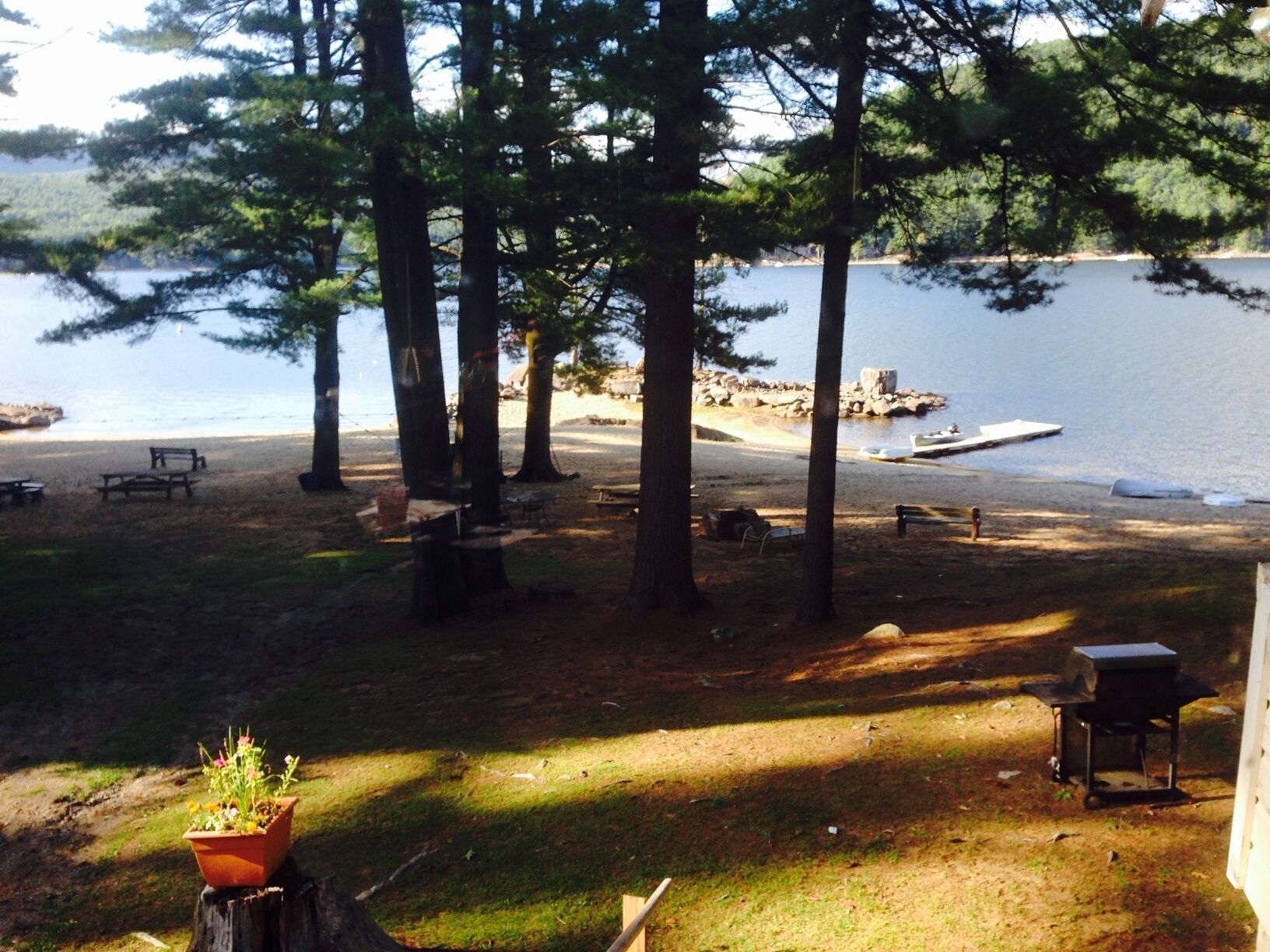"The Cabin" at Rocky Manor - Flagpole Point, Great Sacandaga Lake Rocky Manor is a private seasonal lakefront retreat directly on the shores of the Great Sacandaga Lake. "The Cabin" is located on a privately owned 2 acre lakeside lot and can accommodate up to 5 guests. Rocky manor cottages offer a large private sandy beach that can't be matched on the lake, a private seasonal island, and some of the most beautiful sunset views. If looking for more than 5 guests please see our other listings at Rocky Manor and check out "Camp Sammy" and "Placid 1 and 2.""The cabin" is fully furnished with an open floor plan, has an attached split-level deck to enjoy morning coffee or an evening outside overlooking the beautiful sandy beach and the Great Sacandaga Lake. The master bedroom has a full sized bed and the second bedroom has 1 twin bunk + 1 futon that pulls out if need be. There is also a pull out couch located in the living room. This cabin has a private driveway and a walkway leading down to the 400 ft sandy beach.A minimum of 5 night stay is preferred - exceptions may be made.Amenities include: outdoor fireplace, charcoal grill, rowboats, paddle boat, boat mooring and 1 dock slip (for larger boats), wifi, cable and 1 portable AC unit per cottage.There are 2 other rental houses located on Rocky Manor who share the same beach but have no worries - there is plenty of room for all to enjoy.We are 10 minutes from Edinburgh, 15 minutes from Northville and approximately 35 minutes from downtown Lake George and Saratoga Springs.Special note for early/late season renters: This is a seasonal rental, we do not provide full-time whole house heating. We collect a $100 non-returnable fee for a limit of 1 pet per cabin in addition to a cleaning deposit. If you wish to have the house cleaned - please notify us in advance and we will set up a cleaning service at an additional cost. There are portable space heaters provided in case of unseasonably cold weather.