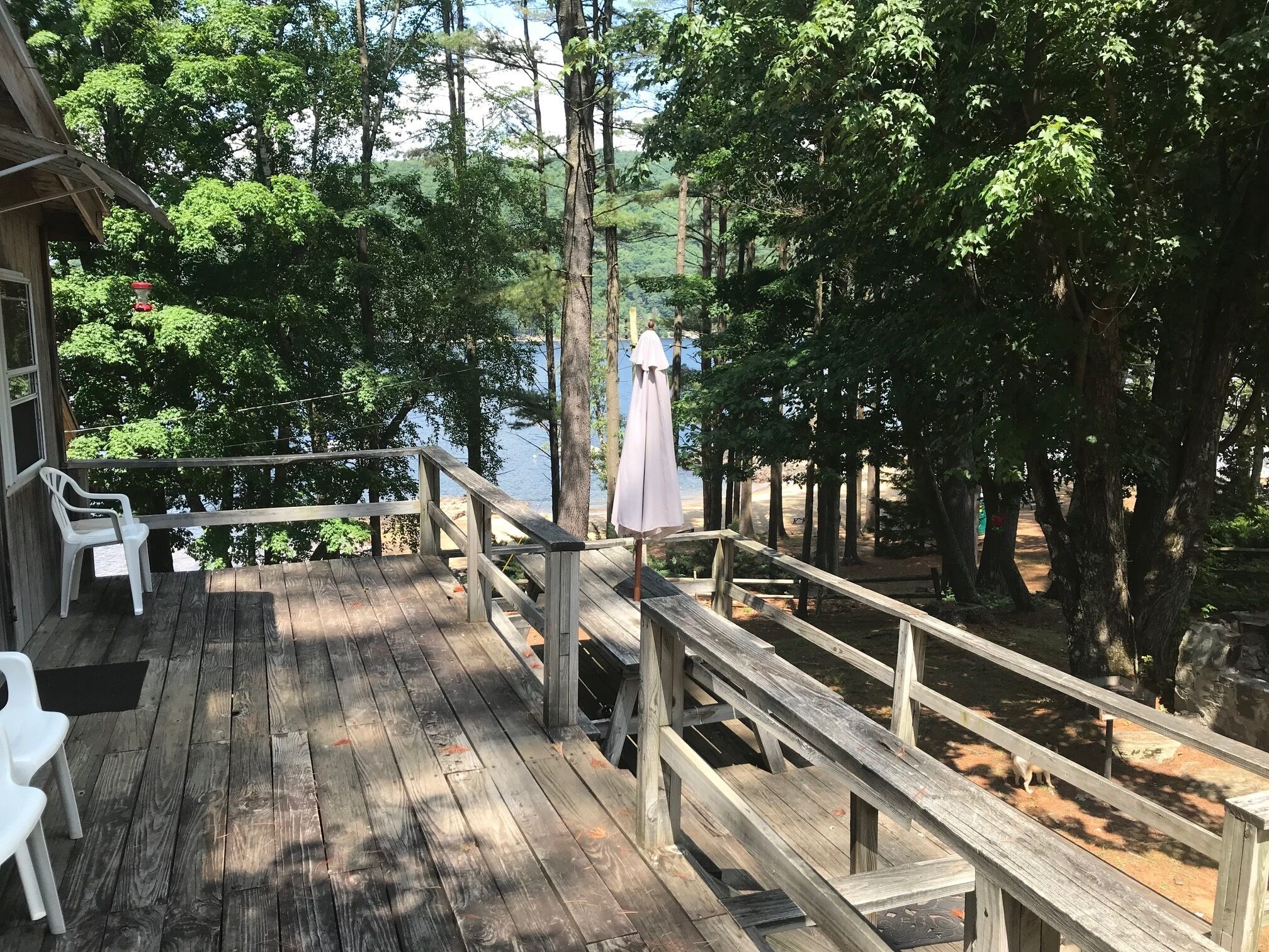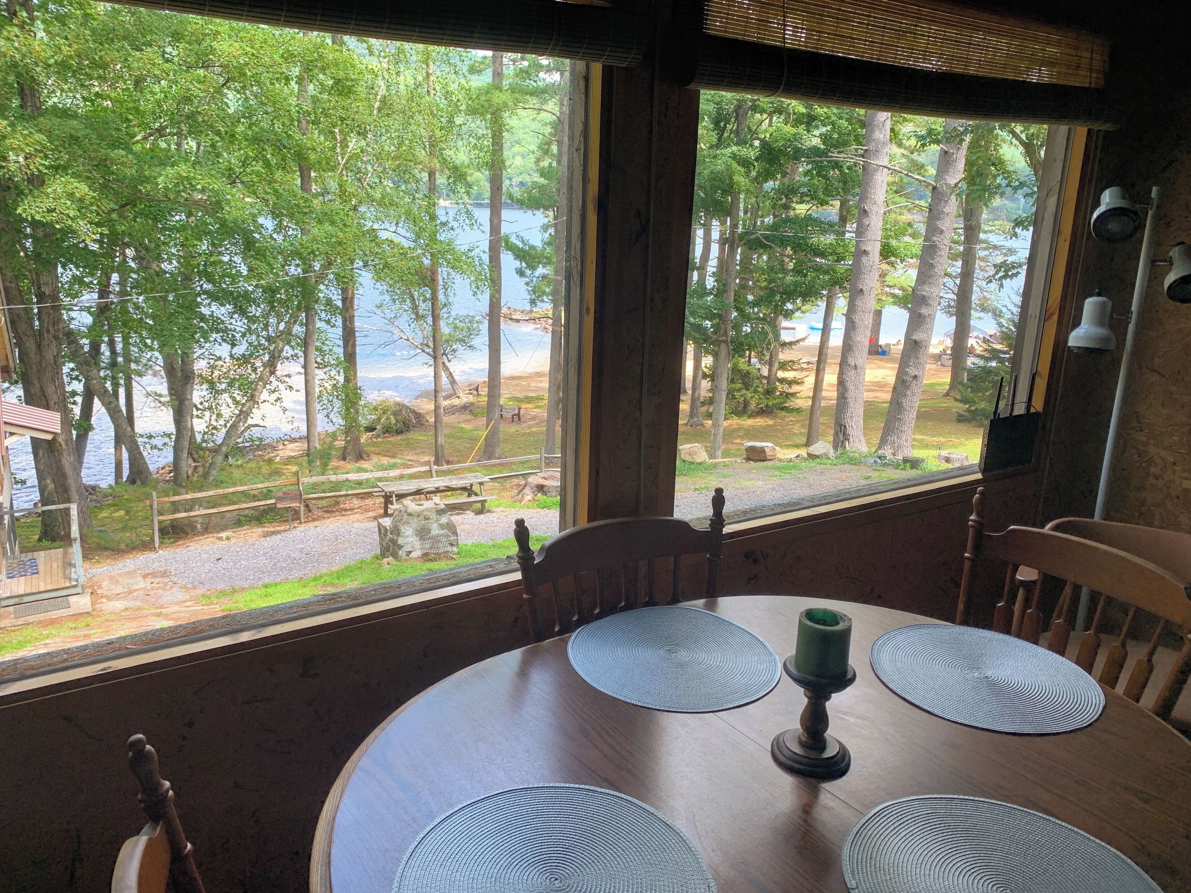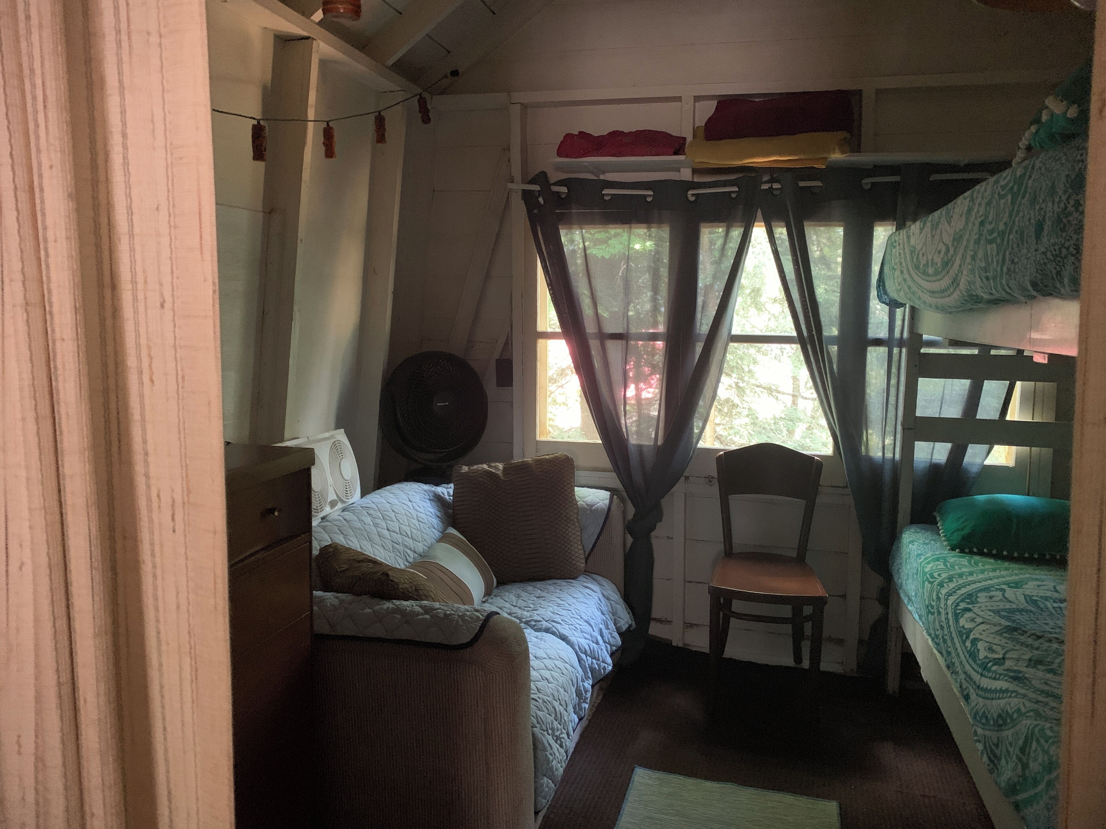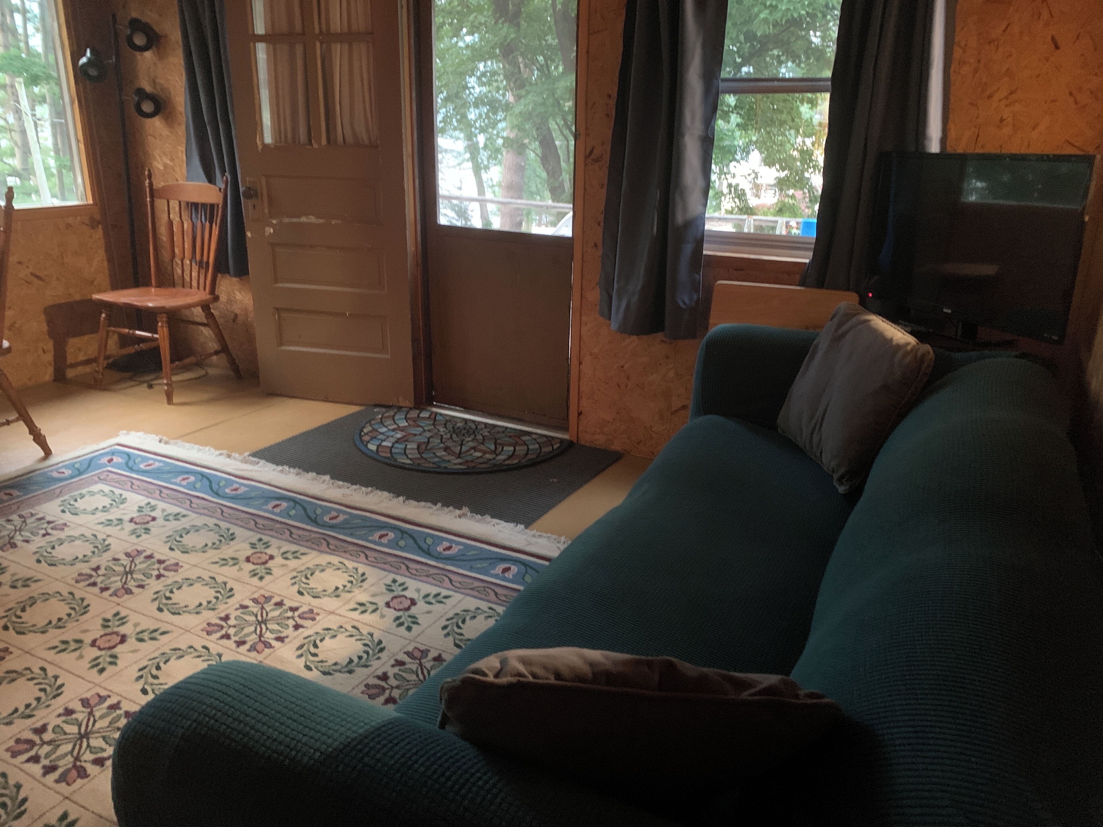 "The Cabin" at Rocky Manor - Flagpole Point, Great Sacandaga Lake Rocky Manor is a private seasonal lakefront retreat directly on the shores of the Great Sacandaga Lake. "The Cabin" is located on a privately owned 2 acre lakeside lot and can accommodate up to 5 guests. Rocky manor cottages offer a large private sandy beach that can't be matched on the lake, a private seasonal island, and some of the most beautiful sunset views. If looking for more than 5 guests please see our other listings at Rocky Manor and check out "Camp Sammy" and "Placid 1 and 2.""The cabin" is fully furnished with an open floor plan, has an attached split-level deck to enjoy morning coffee or an evening outside overlooking the beautiful sandy beach and the Great Sacandaga Lake. The master bedroom has a full sized bed and the second bedroom has 1 twin bunk + 1 futon that pulls out if need be. There is also a pull out couch located in the living room. This cabin has a private driveway and a walkway leading down to the 400 ft sandy beach.A minimum of 5 night stay is preferred - exceptions may be made.Amenities include: outdoor fireplace, charcoal grill, rowboats, paddle boat, boat mooring and 1 dock slip (for larger boats), wifi, cable and 1 portable AC unit per cottage.There are 2 other rental houses located on Rocky Manor who share the same beach but have no worries - there is plenty of room for all to enjoy.We are 10 minutes from Edinburgh, 15 minutes from Northville and approximately 35 minutes from downtown Lake George and Saratoga Springs.Special note for early/late season renters: This is a seasonal rental, we do not provide full-time whole house heating. We collect a $100 non-returnable fee for a limit of 1 pet per cabin in addition to a cleaning deposit. If you wish to have the house cleaned - please notify us in advance and we will set up a cleaning service at an additional cost. There are portable space heaters provided in case of unseasonably cold weather.
