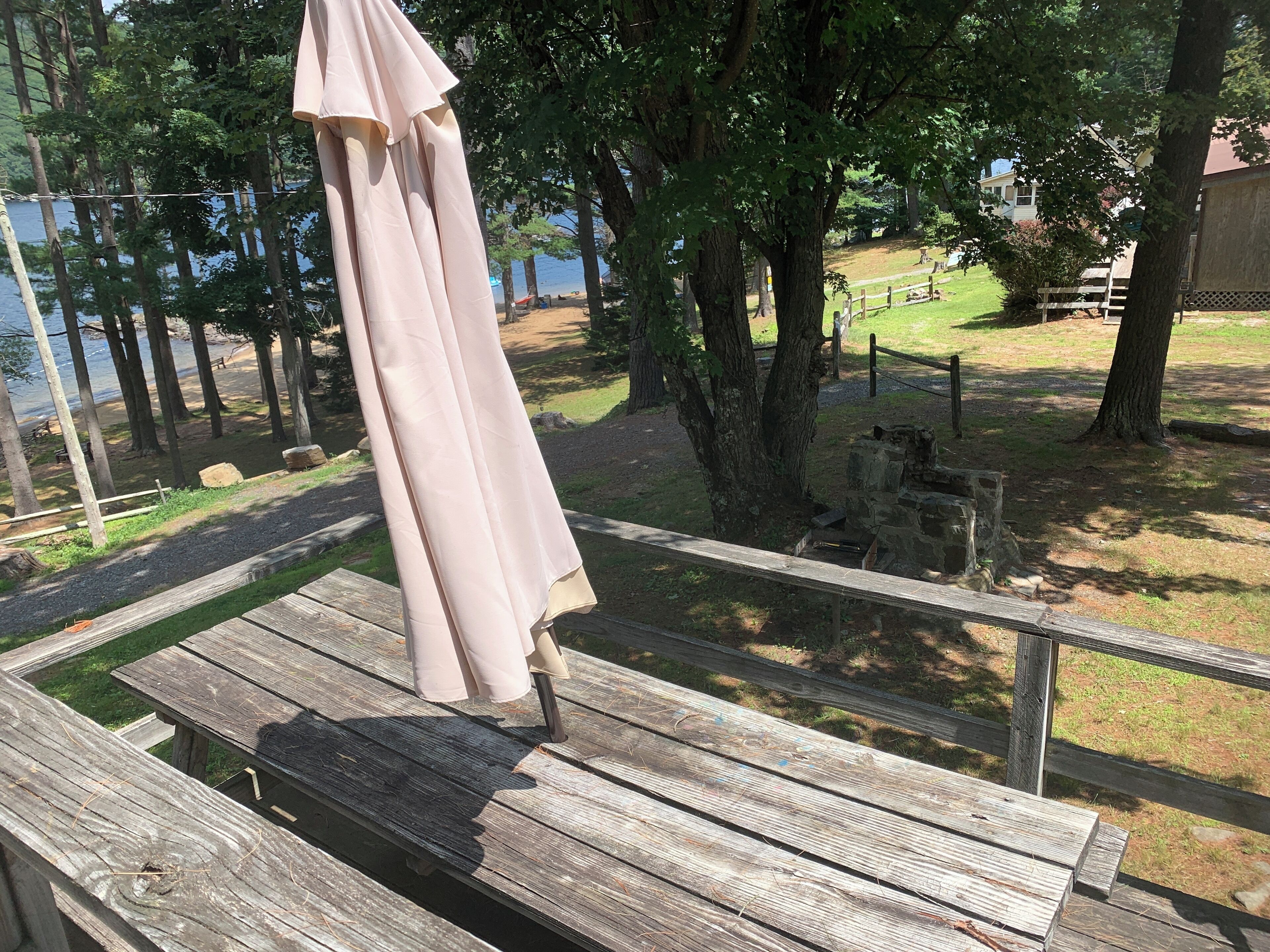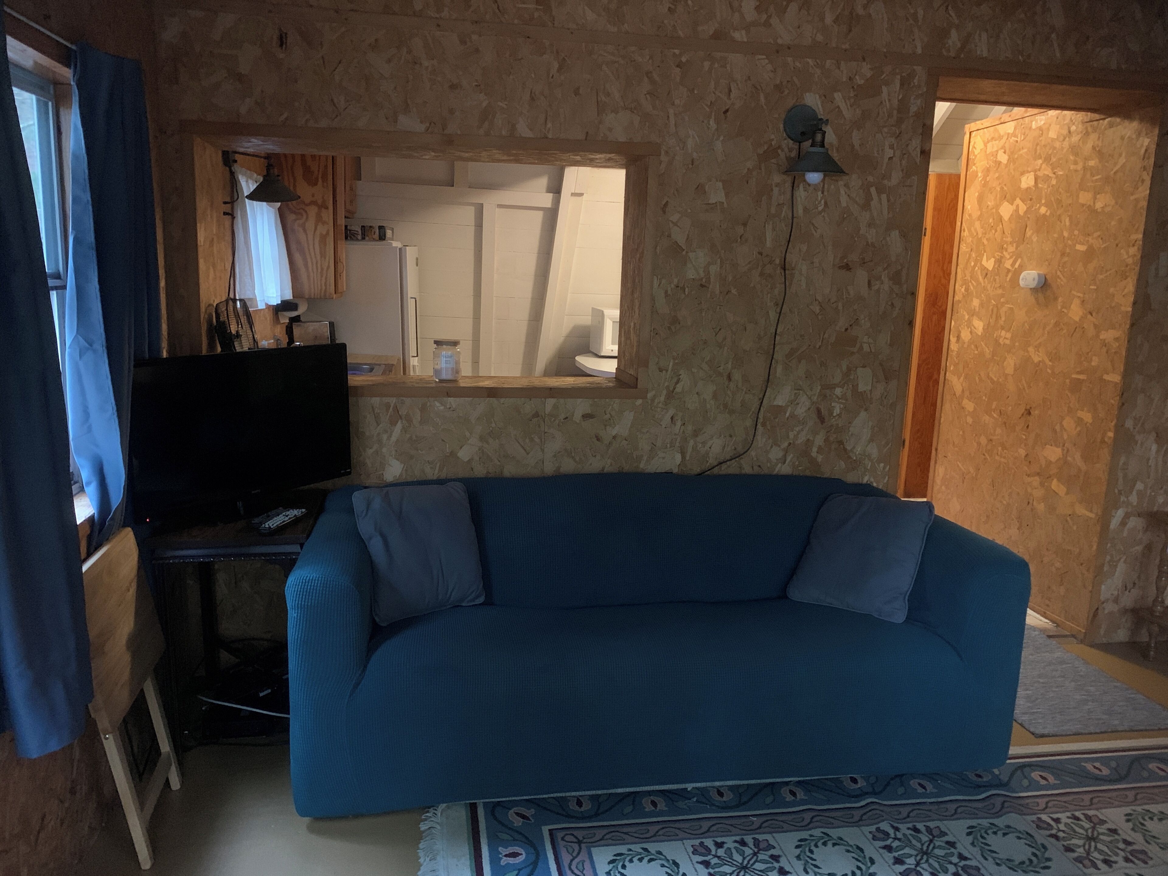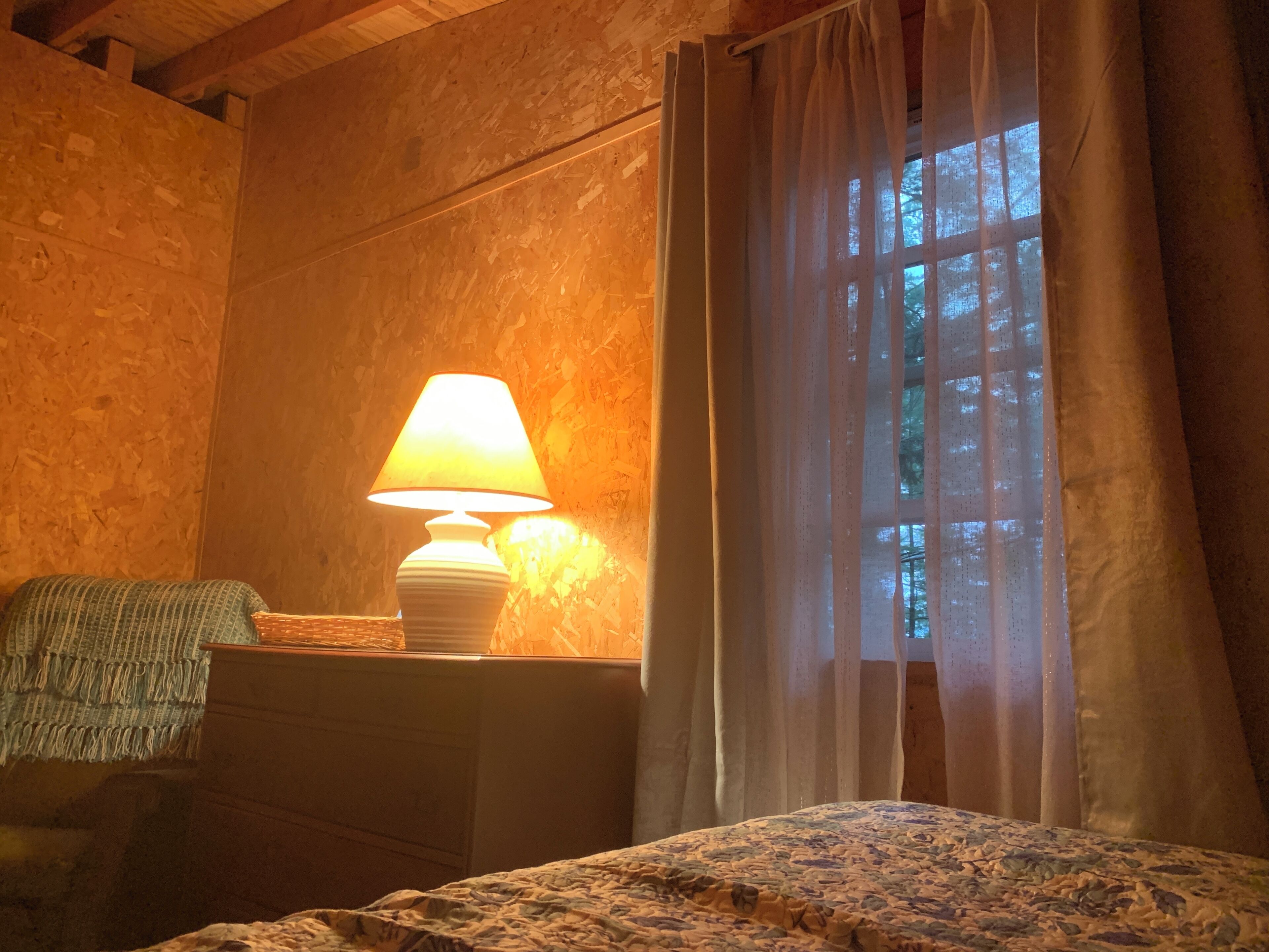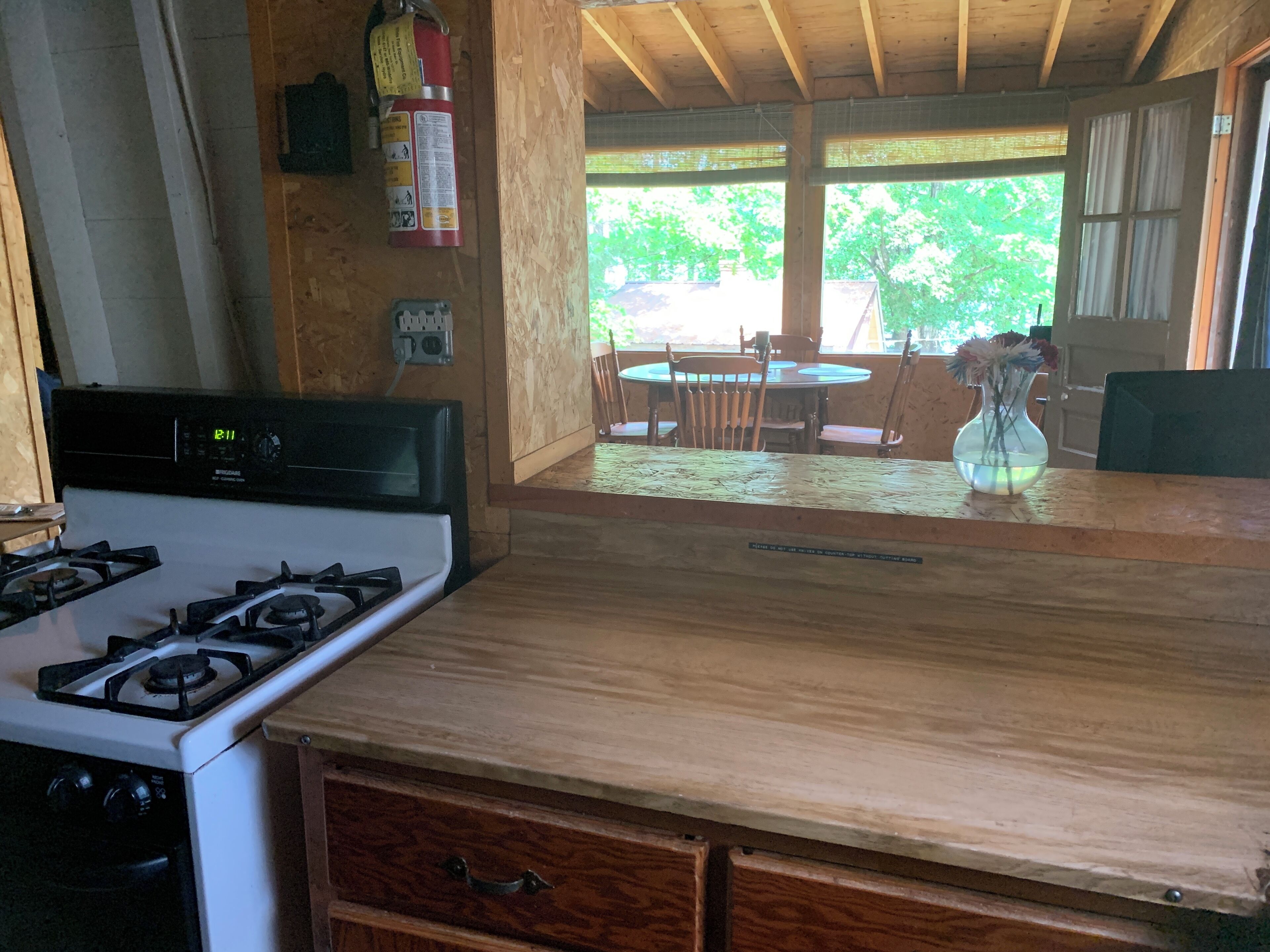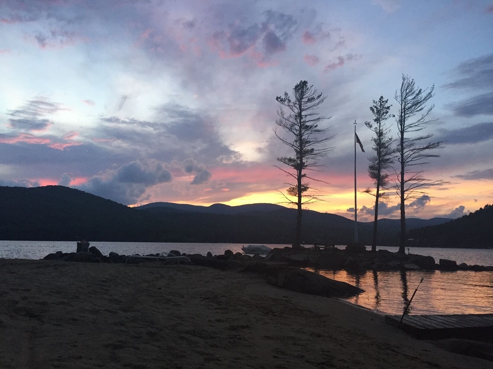 "The Cabin" at Rocky Manor - Flagpole Point, Great Sacandaga Lake Rocky Manor is a private seasonal lakefront retreat directly on the shores of the Great Sacandaga Lake. "The Cabin" is located on a privately owned 2 acre lakeside lot and can accommodate up to 5 guests. Rocky manor cottages offer a large private sandy beach that can't be matched on the lake, a private seasonal island, and some of the most beautiful sunset views. If looking for more than 5 guests please see our other listings at Rocky Manor and check out "Camp Sammy" and "Placid 1 and 2.""The cabin" is fully furnished with an open floor plan, has an attached split-level deck to enjoy morning coffee or an evening outside overlooking the beautiful sandy beach and the Great Sacandaga Lake. The master bedroom has a full sized bed and the second bedroom has 1 twin bunk + 1 futon that pulls out if need be. There is also a pull out couch located in the living room. This cabin has a private driveway and a walkway leading down to the 400 ft sandy beach.A minimum of 5 night stay is preferred - exceptions may be made.Amenities include: outdoor fireplace, charcoal grill, rowboats, paddle boat, boat mooring and 1 dock slip (for larger boats), wifi, cable and 1 portable AC unit per cottage.There are 2 other rental houses located on Rocky Manor who share the same beach but have no worries - there is plenty of room for all to enjoy.We are 10 minutes from Edinburgh, 15 minutes from Northville and approximately 35 minutes from downtown Lake George and Saratoga Springs.Special note for early/late season renters: This is a seasonal rental, we do not provide full-time whole house heating. We collect a $100 non-returnable fee for a limit of 1 pet per cabin in addition to a cleaning deposit. If you wish to have the house cleaned - please notify us in advance and we will set up a cleaning service at an additional cost. There are portable space heaters provided in case of unseasonably cold weather.