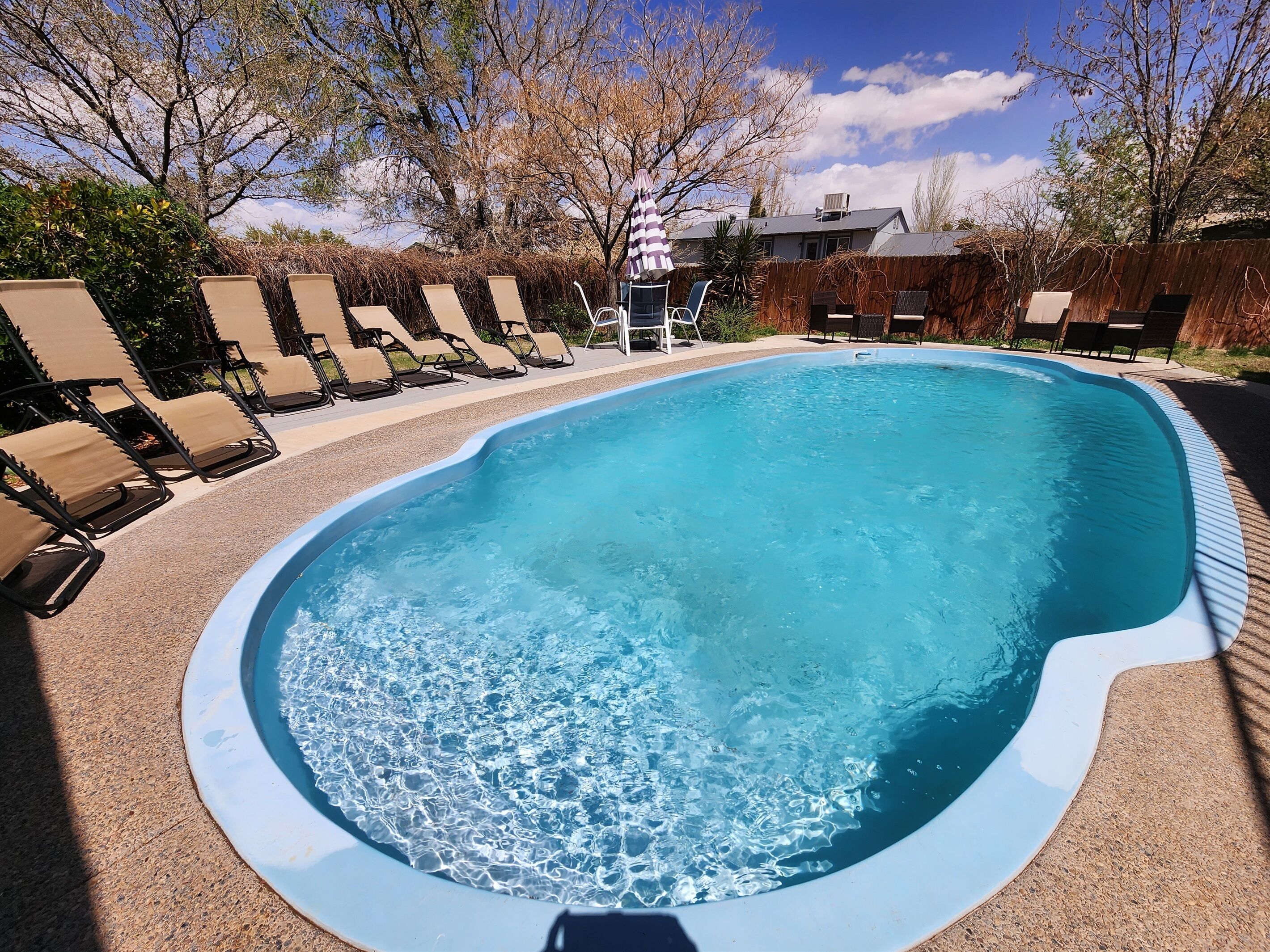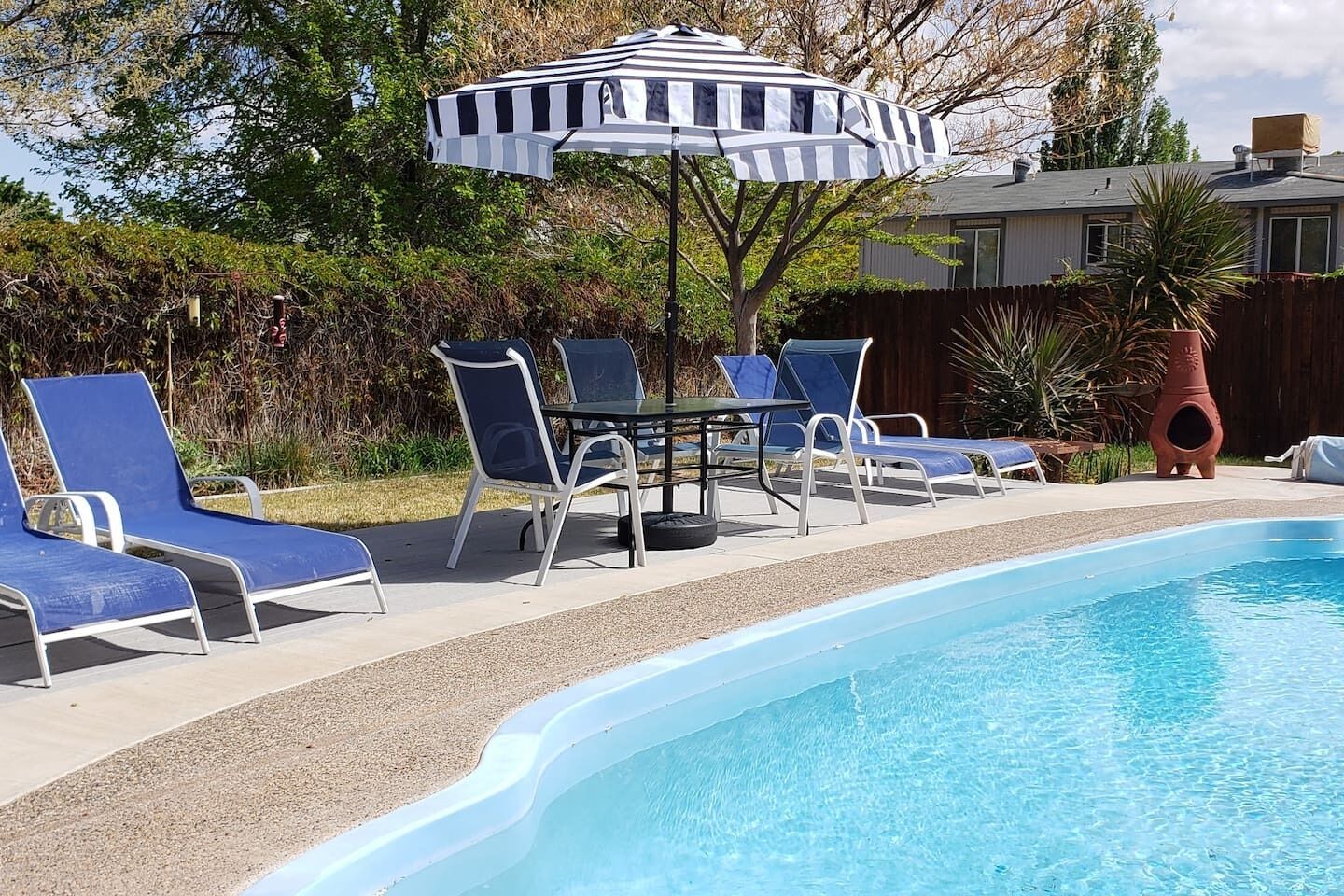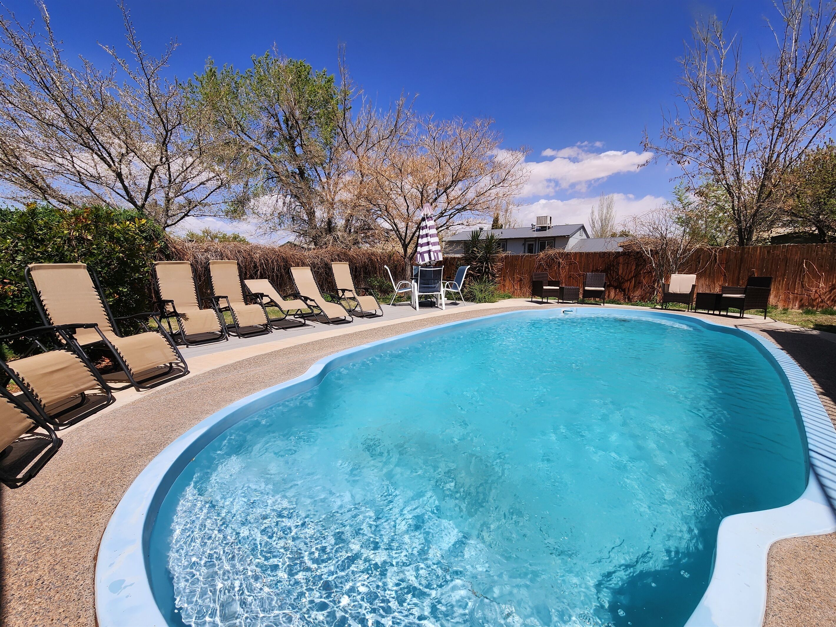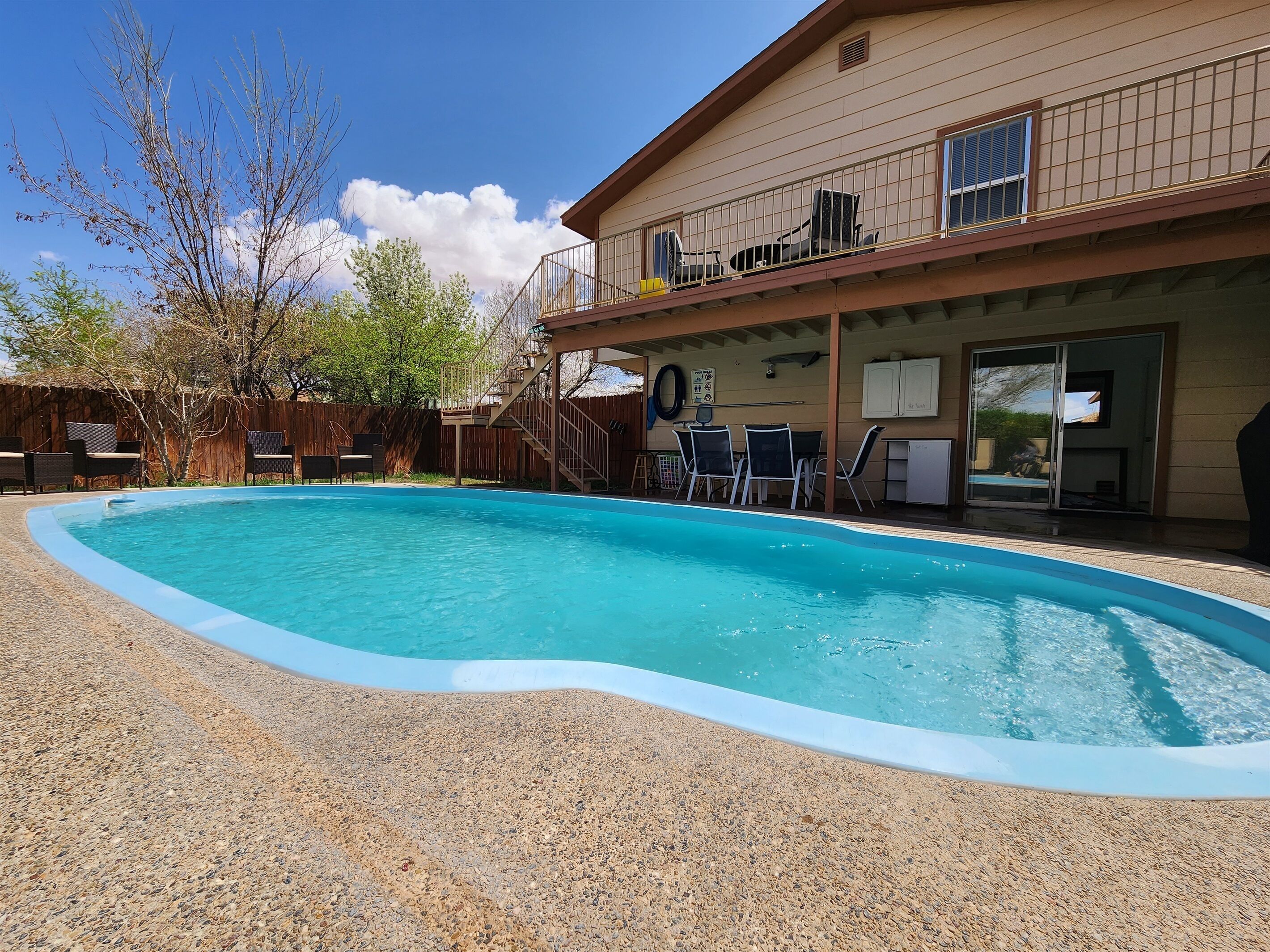 Lake Powell Home with Pool The home offers 5 bedrooms, 3 bathrooms and can accommodate up to 14 guests. Fully fence, large pool and seating area for families. NOTE: POOL IS NOT HEATED. The pool is winterized (closed) each year from November to April(Dates may vary based on current weather conditions,PLEASE INQUIRE BEFORE BOOKING).. Located in the heart of Page, Az & hub to The Grand Circle. W...