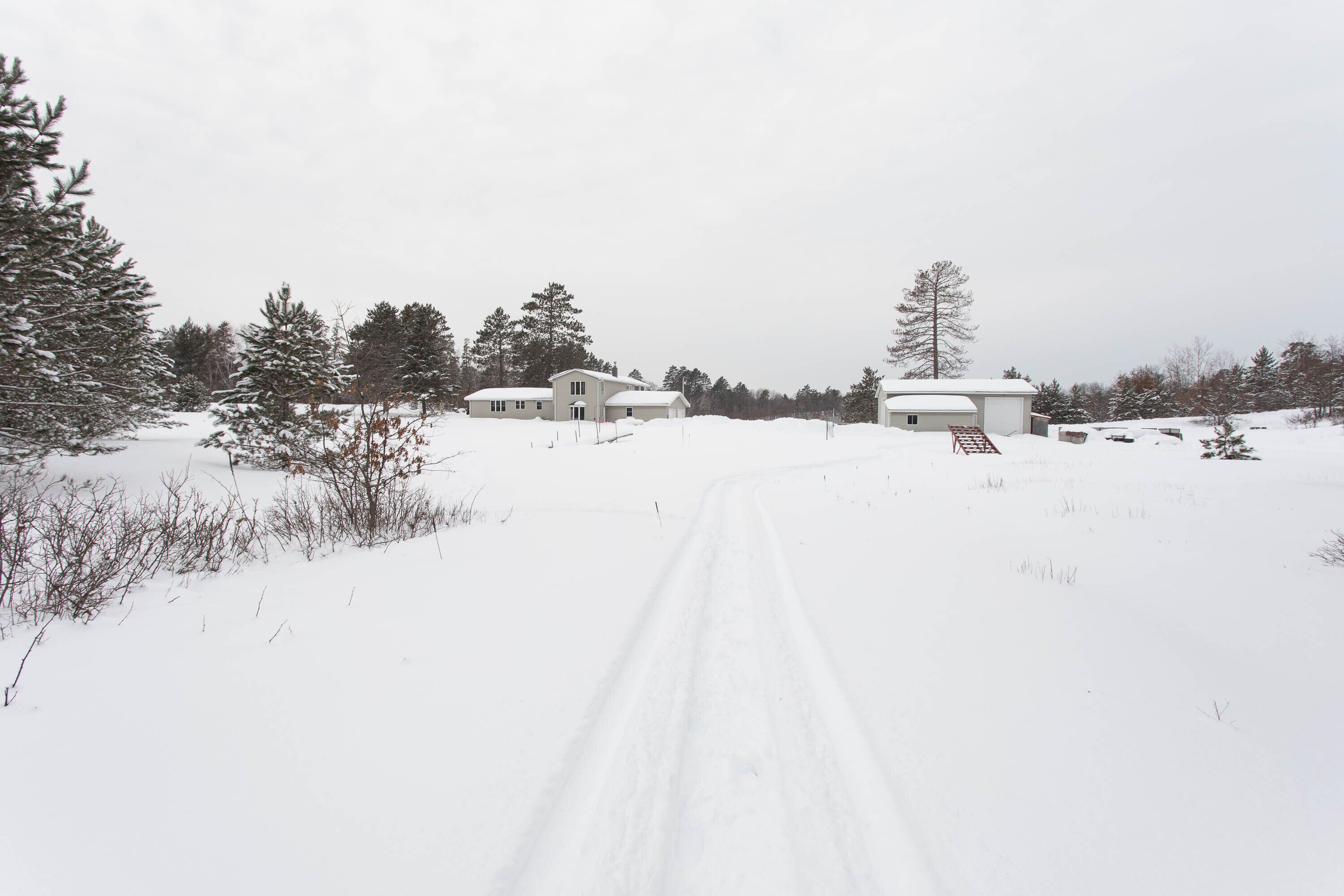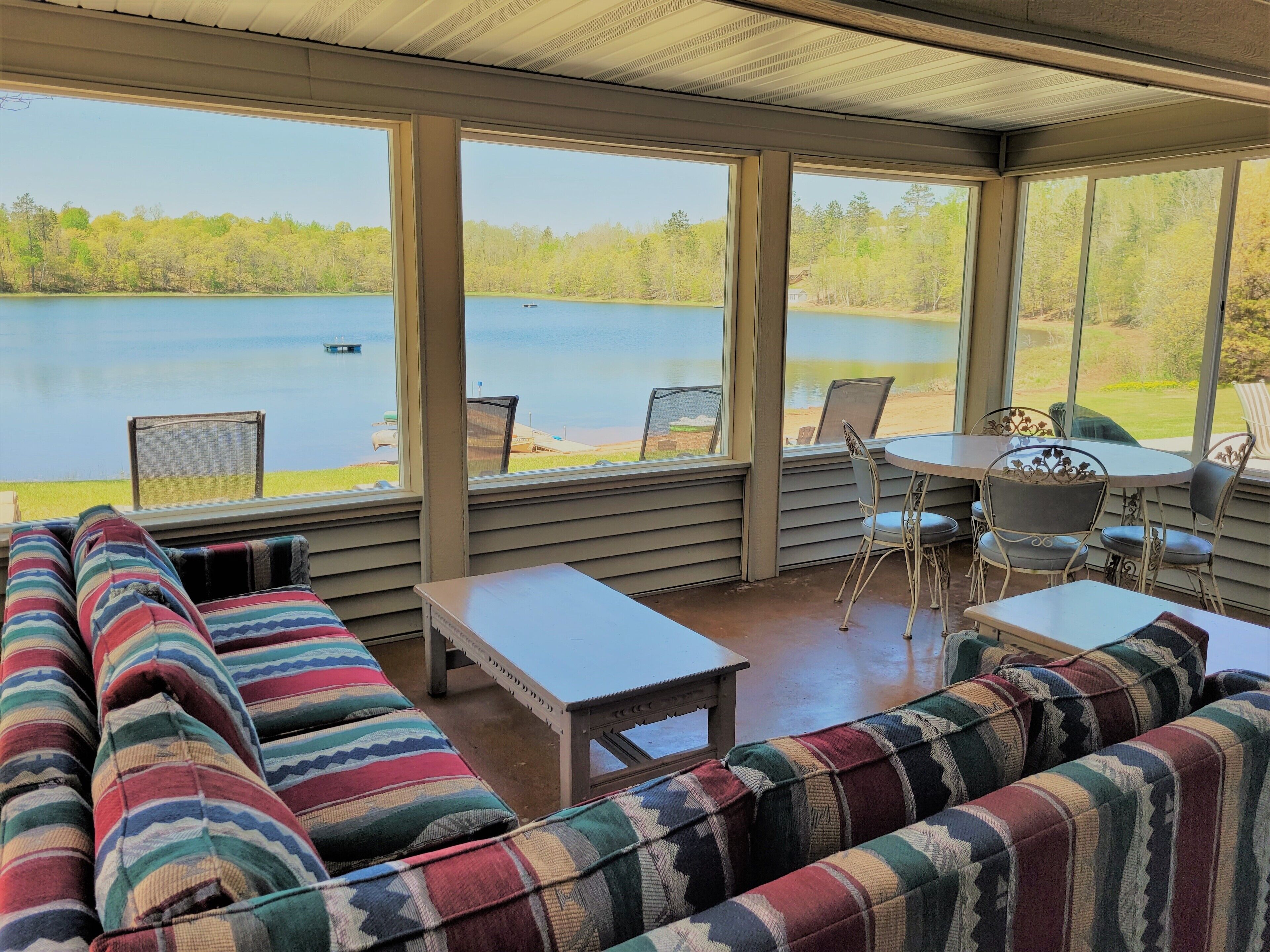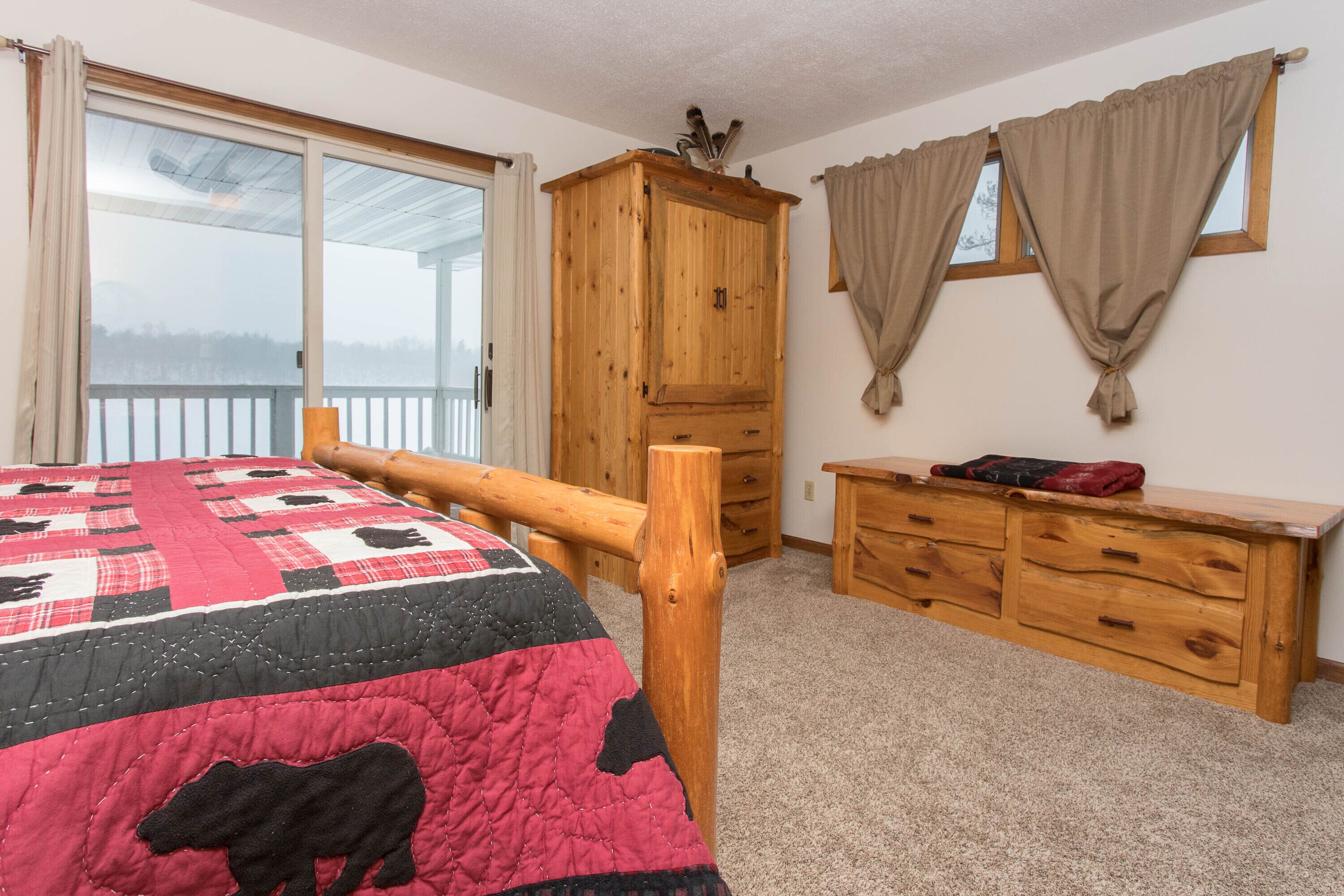 Exclusive Retreat! Private Lake, River Frontage and 100's of Acres with Trails This property is absolutely unique - with close to 260 acres of woods which include both a Private 15 Acre Lake and Eau Claire River frontage for you to enjoy. It has something to offer everyone during all seasons in Northern Wisconsin. Grab some snowshoes, a pair of cross-country skis, or take a stroll on the wooded trails encircling this lake or leading to the Eau Claire River. Enjoy a peaceful kayak ride on the lake, go for a swim or lounge on the dock with zero interruptions from the outside world. Drive just a few miles up the road and enjoy a three hour float or kayak adventure on the Eau Claire River with a convenient exit off the river right on the property. You can access 4-wheeler and snowmobile trails within 1/4 mile from the property.This 3 bedroom, 2 bath 2,000 sq ft home is located right on the lake with your own private beach, dock and raft including the use of a couple of kayaks, a canoe and rowboat. Gather on the outdoor patio for some grilling and a campfire and watch the sunset reflect off the water and surrounding pines.Head inside for some socializing after the sun goes down in the spacious, open area kitchen, dining room and living room. There's a place for everyone! This modern kitchen has brand new appliances and is fully stocked with everything you need. A dining room table that seats 10 and center island with stools provide adequate seating for everyone. Hang out in the lower level living room to watch T.V. or enjoy a view of the lake from the windows of a three season porch. Beat out the cold and cozy up in front of either of the two gas stoves on chilly nights or during the fall and winter months. Enjoy air conditioning as well on those hot summer days.You'll have the best view in the house in the master bedroom that overlooks the lake through double sliding glass doors that open onto a spacious enclosed deck; the perfect place to enjoy your morning cup of coffee and watch the sunrise.The house sleeps eight people with three bedrooms; two featuring queen beds and one with full size bottom and single top bunk bed and a single bed, but with a daybed and couch that has a full pull-out sleeper, it can accommodate at least eleven. There are two full bathrooms, one upstairs with a shower and one downstairs with a tub/shower including a washer and dryer for your convenience. You are right in the middle of all the major recreational towns that provide day excursions, shopping or festivals, with Hayward, Bayfield and Superior/Duluth all within an hour drive.If peace and quiet in the Northwoods is what you are looking for - this is the perfect lake house for you!