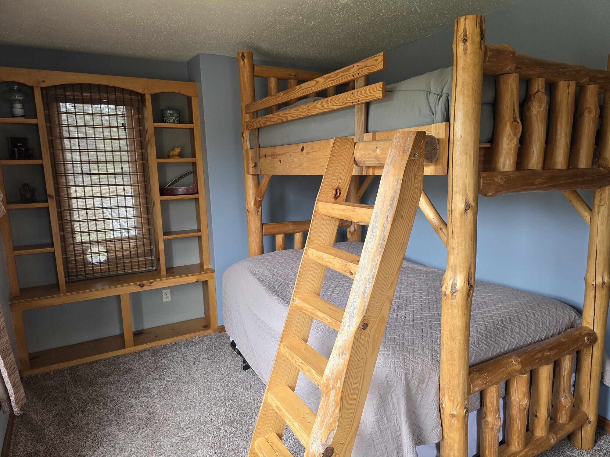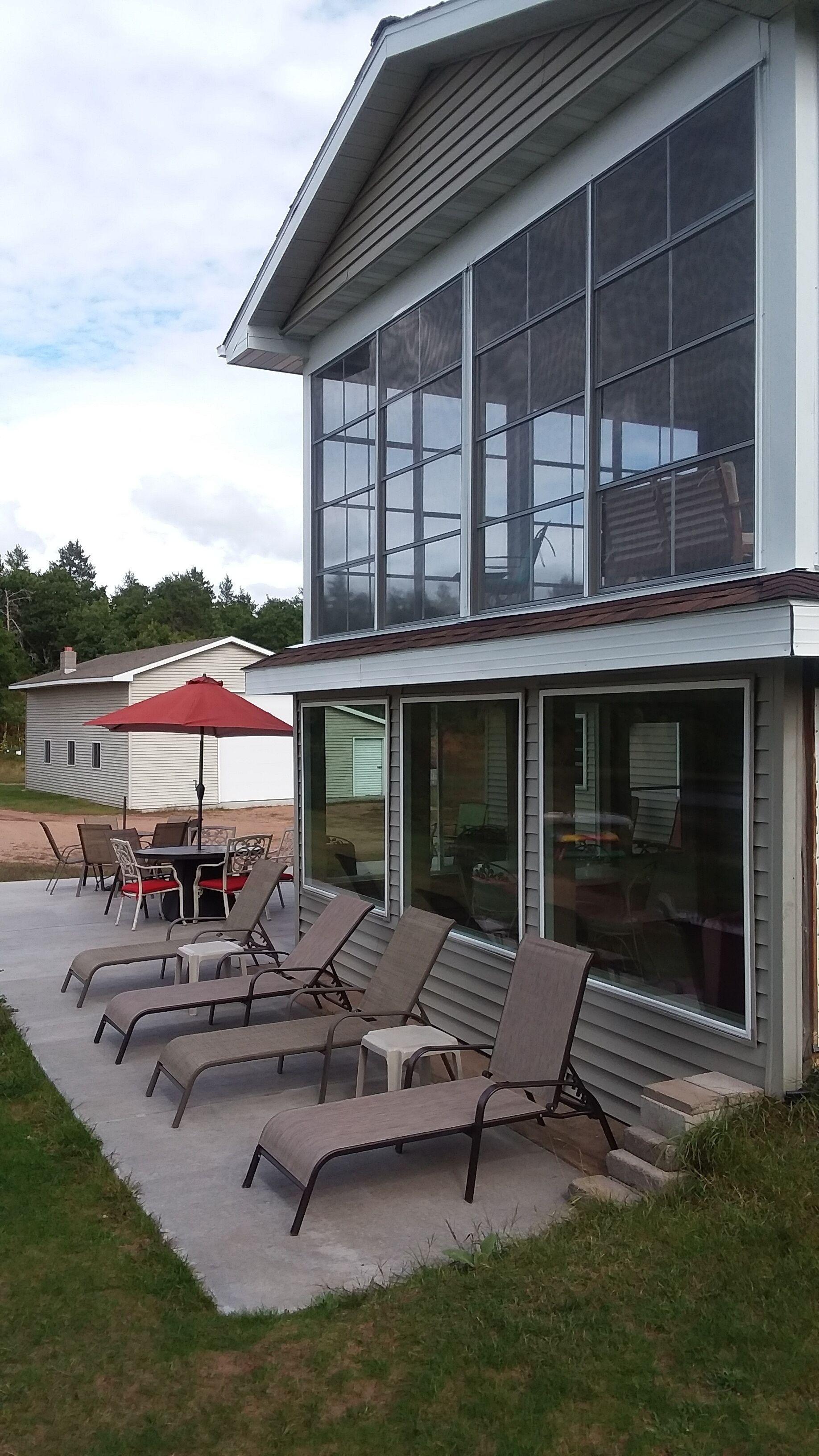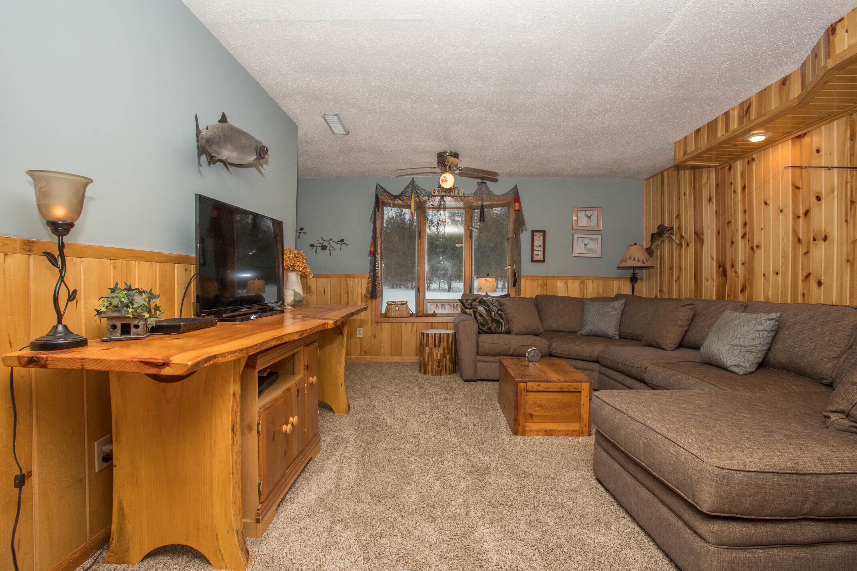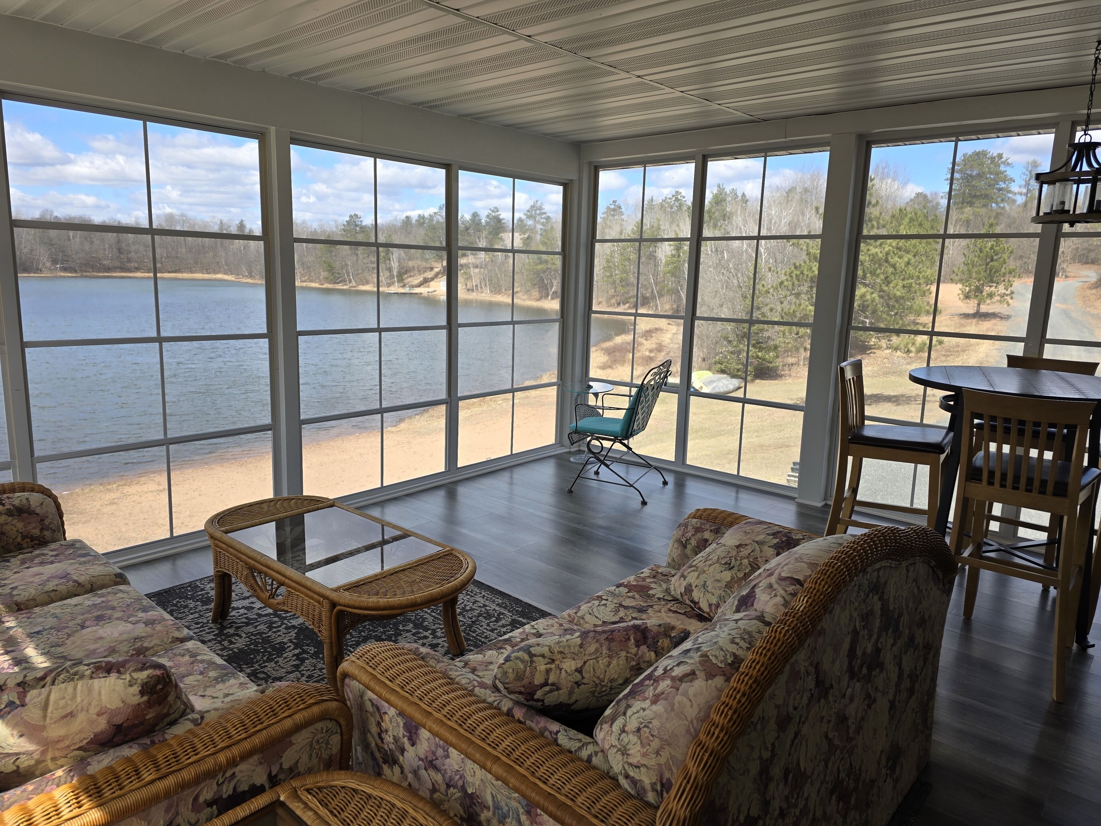Exclusive Retreat! Private Lake, River Frontage and 100's of Acres with Trails This property is absolutely unique - with close to 260 acres of woods which include both a Private 15 Acre Lake and Eau Claire River frontage for you to enjoy. It has something to offer everyone during all seasons in Northern Wisconsin. Grab some snowshoes, a pair of cross-country skis, or take a stroll on the wooded trails encircling this lake or leading to the Eau Claire River. Enjoy a peaceful kayak ride on the lake, go for a swim or lounge on the dock with zero interruptions from the outside world. Drive just a few miles up the road and enjoy a three hour float or kayak adventure on the Eau Claire River with a convenient exit off the river right on the property. You can access 4-wheeler and snowmobile trails within 1/4 mile from the property.This 3 bedroom, 2 bath 2,000 sq ft home is located right on the lake with your own private beach, dock and raft including the use of a couple of kayaks, a canoe and rowboat. Gather on the outdoor patio for some grilling and a campfire and watch the sunset reflect off the water and surrounding pines.Head inside for some socializing after the sun goes down in the spacious, open area kitchen, dining room and living room. There's a place for everyone! This modern kitchen has brand new appliances and is fully stocked with everything you need. A dining room table that seats 10 and center island with stools provide adequate seating for everyone. Hang out in the lower level living room to watch T.V. or enjoy a view of the lake from the windows of a three season porch. Beat out the cold and cozy up in front of either of the two gas stoves on chilly nights or during the fall and winter months. Enjoy air conditioning as well on those hot summer days.You'll have the best view in the house in the master bedroom that overlooks the lake through double sliding glass doors that open onto a spacious enclosed deck; the perfect place to enjoy your morning cup of coffee and watch the sunrise.The house sleeps eight people with three bedrooms; two featuring queen beds and one with full size bottom and single top bunk bed and a single bed, but with a daybed and couch that has a full pull-out sleeper, it can accommodate at least eleven. There are two full bathrooms, one upstairs with a shower and one downstairs with a tub/shower including a washer and dryer for your convenience. You are right in the middle of all the major recreational towns that provide day excursions, shopping or festivals, with Hayward, Bayfield and Superior/Duluth all within an hour drive.If peace and quiet in the Northwoods is what you are looking for - this is the perfect lake house for you!