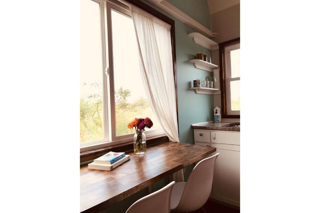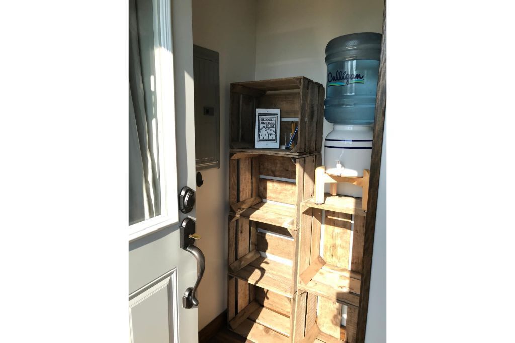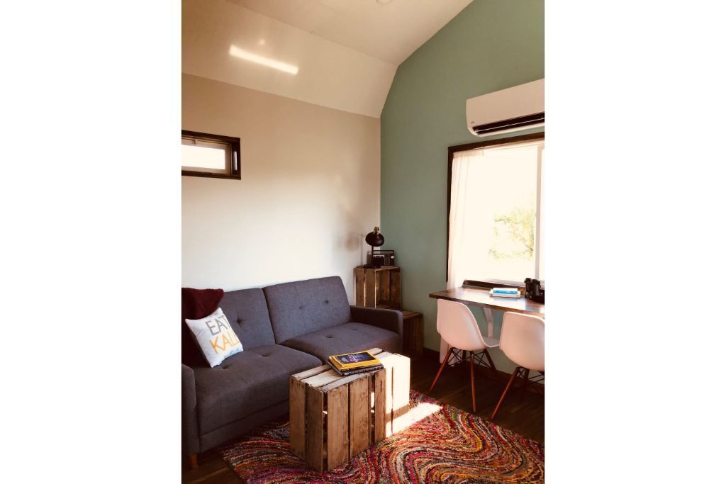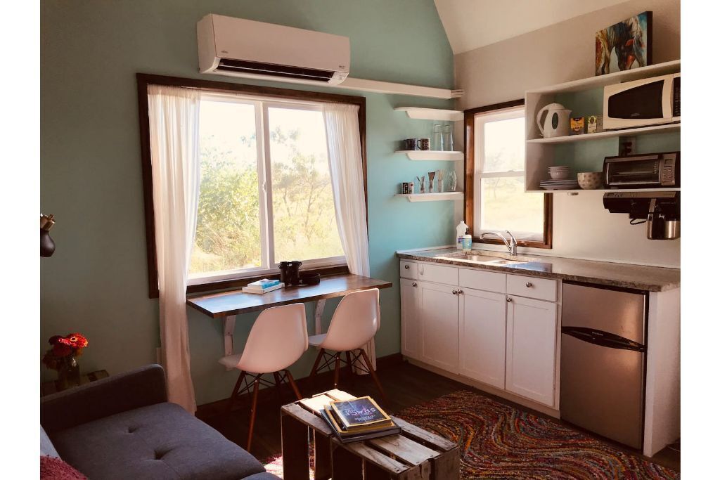 Grinnell Heritage Tiny House - On Organic Farm Grinnell Tiny House is a peaceful space with some of the best views of the farm. Sip morning coffee on the deck while overlooking the majestic views of the prairie, chestnut trees and listening to the birds sing. Take a stroll through the seasonal organic vegetable garden and sit in the hammock under a shade tree. Just a stones throw away from Ahrens...